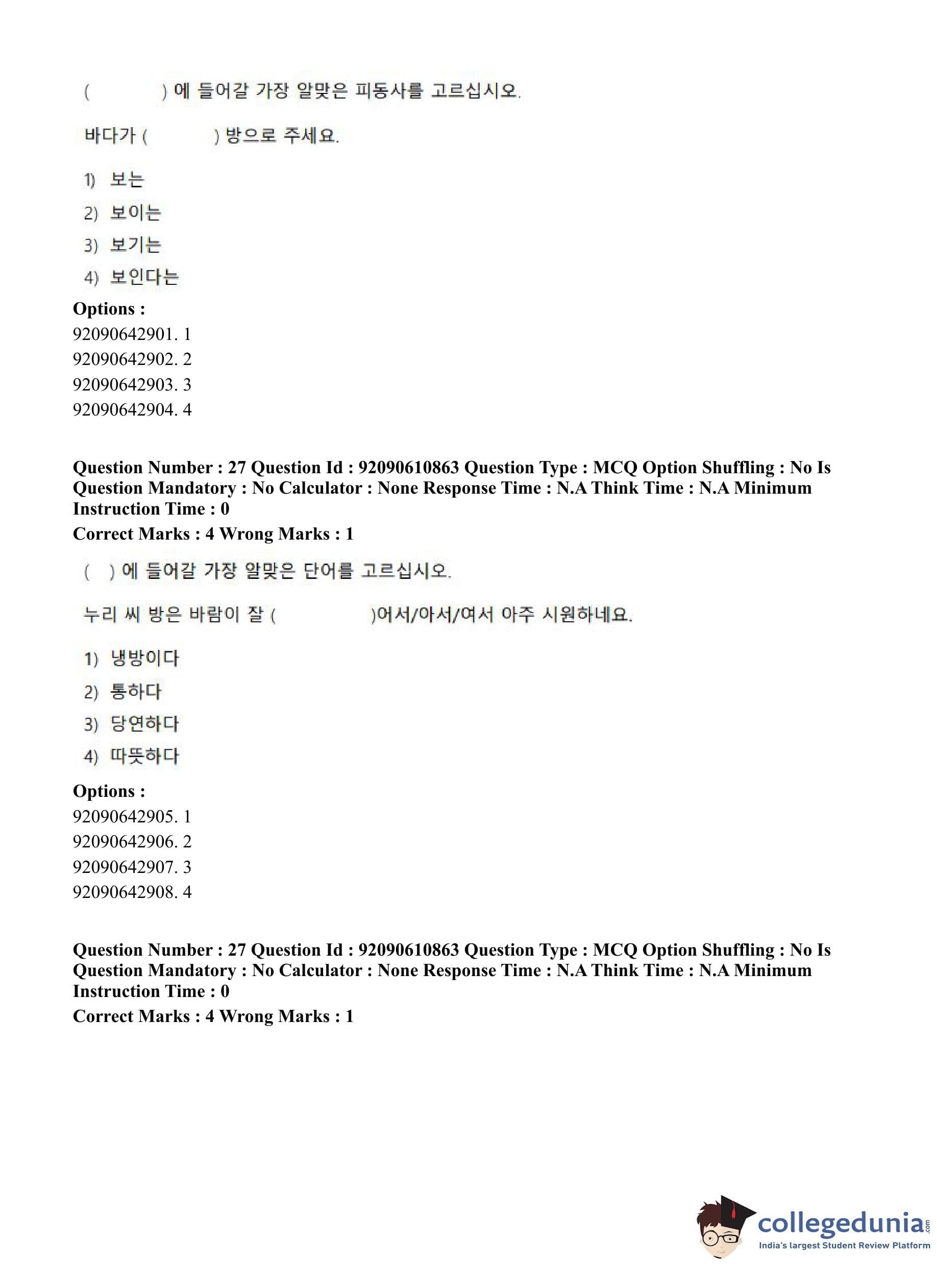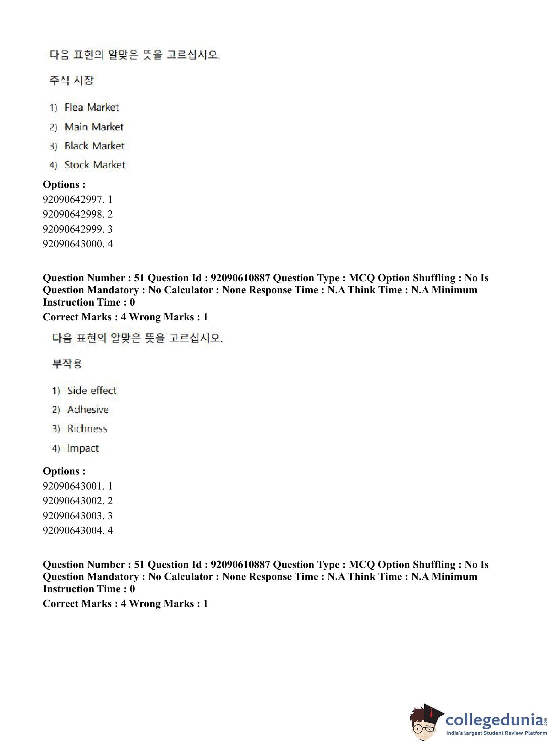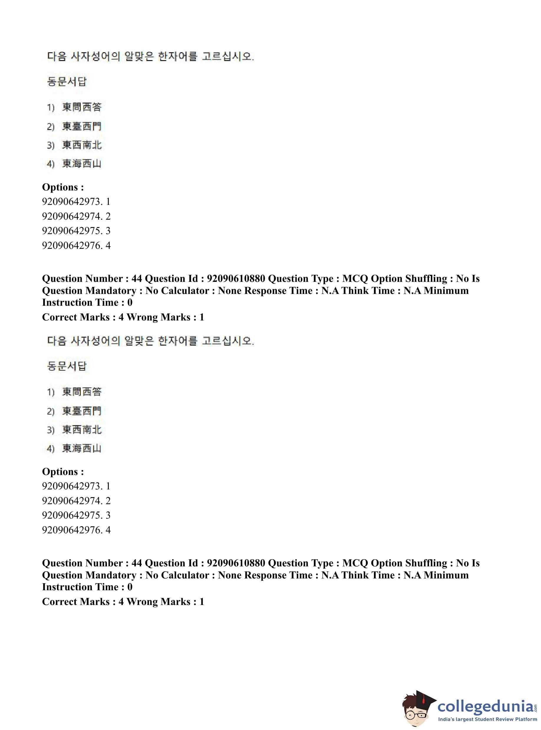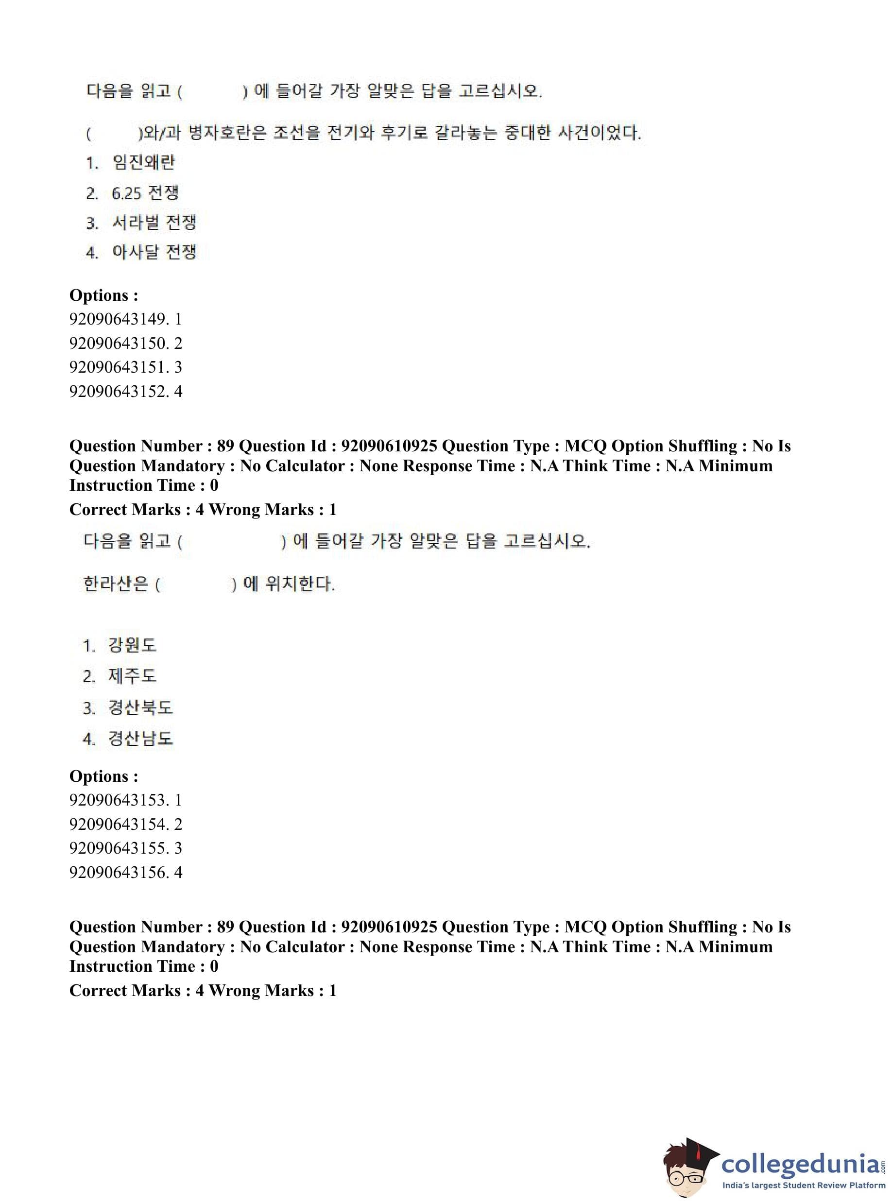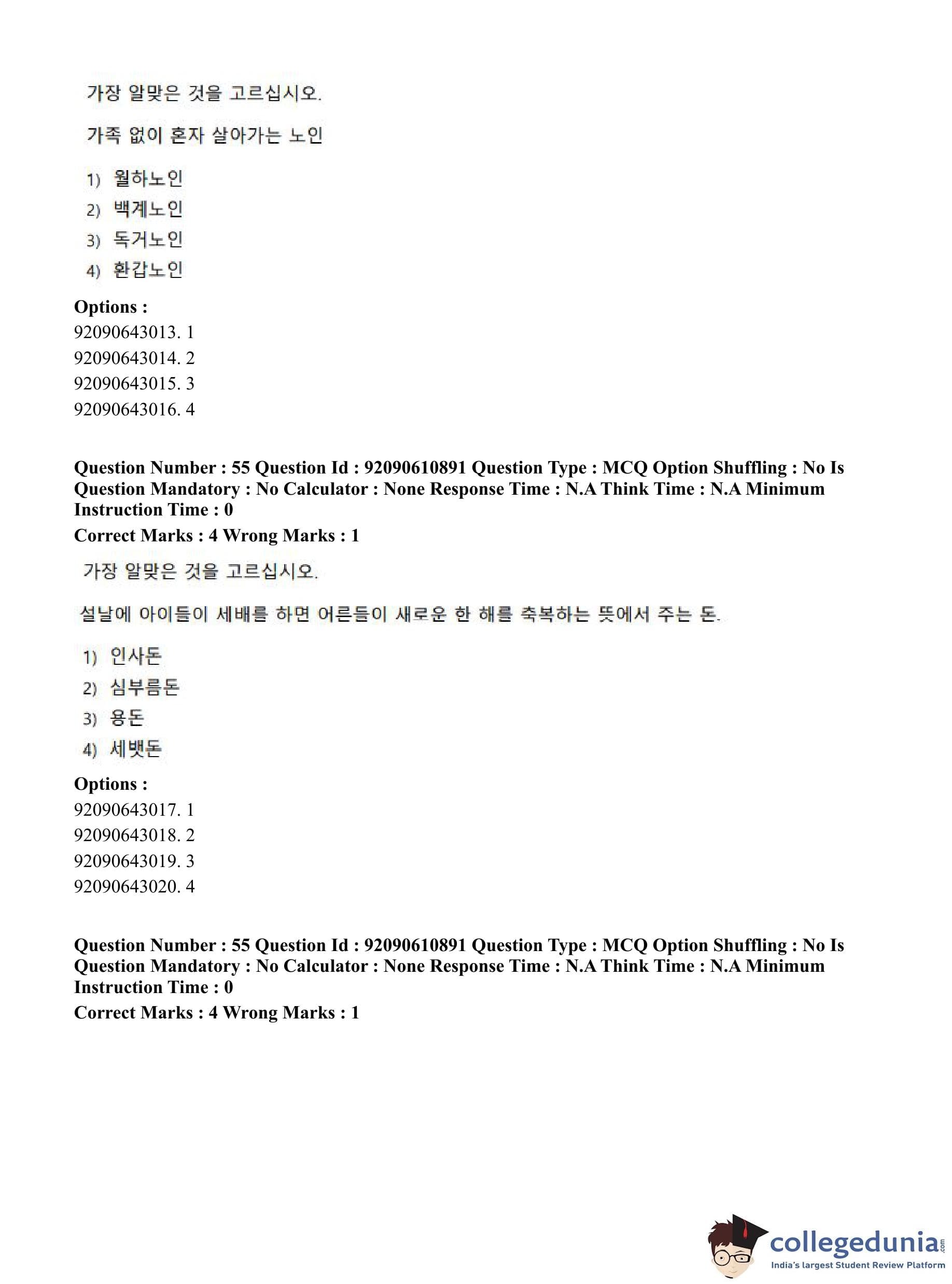 CUET PG 2023 Korean Question Paper in Hindi (June 10 - Shift 2)