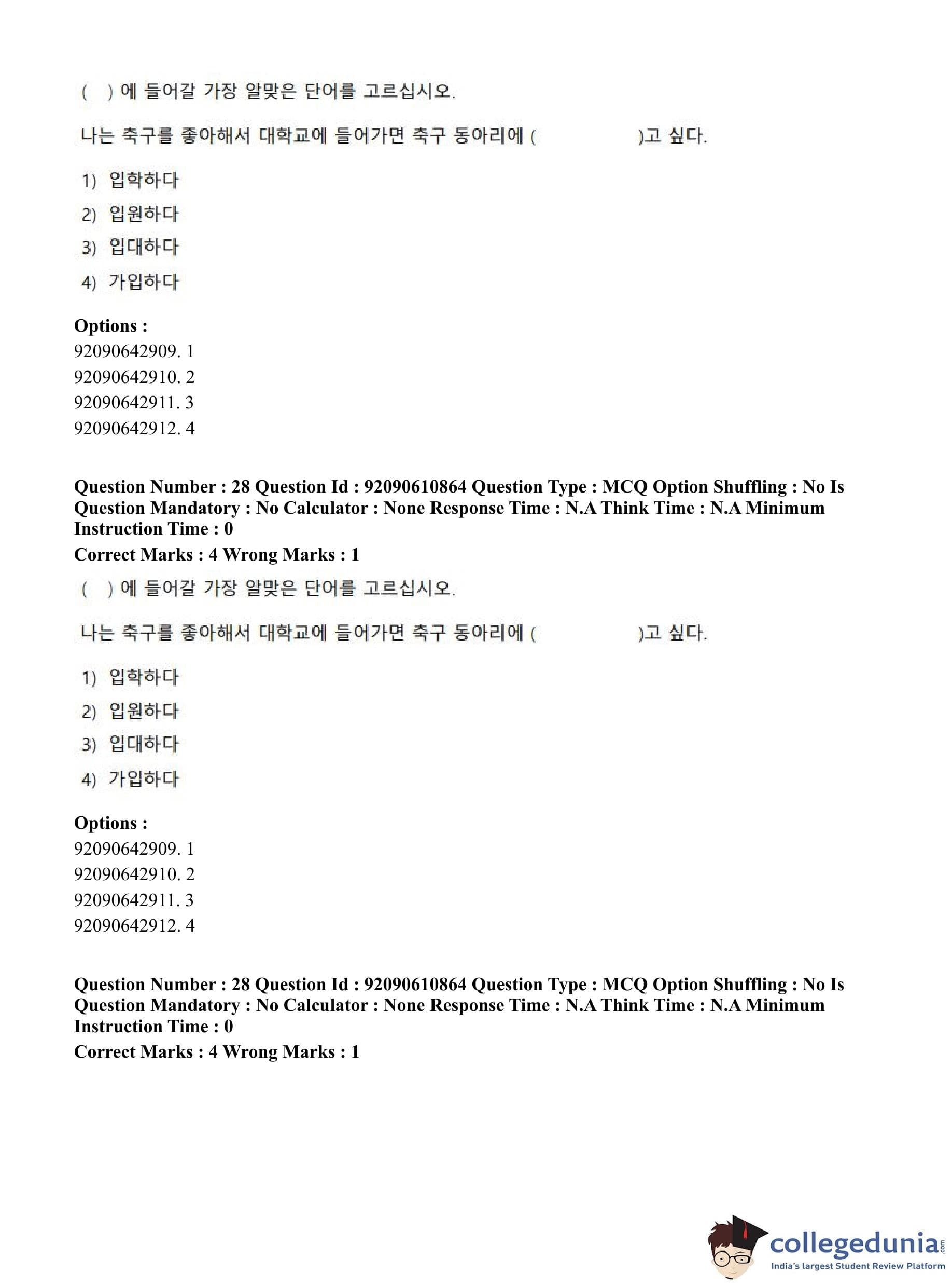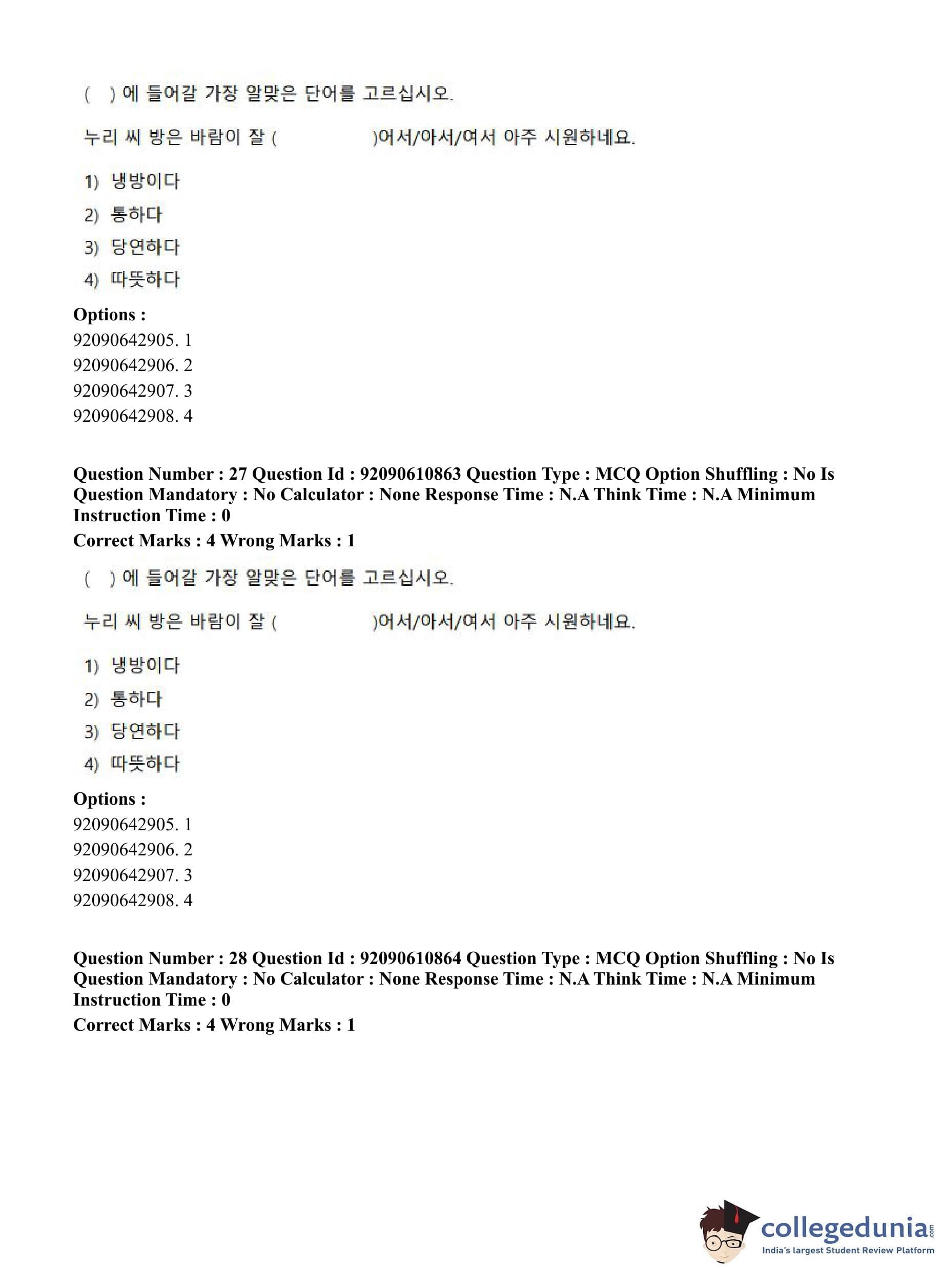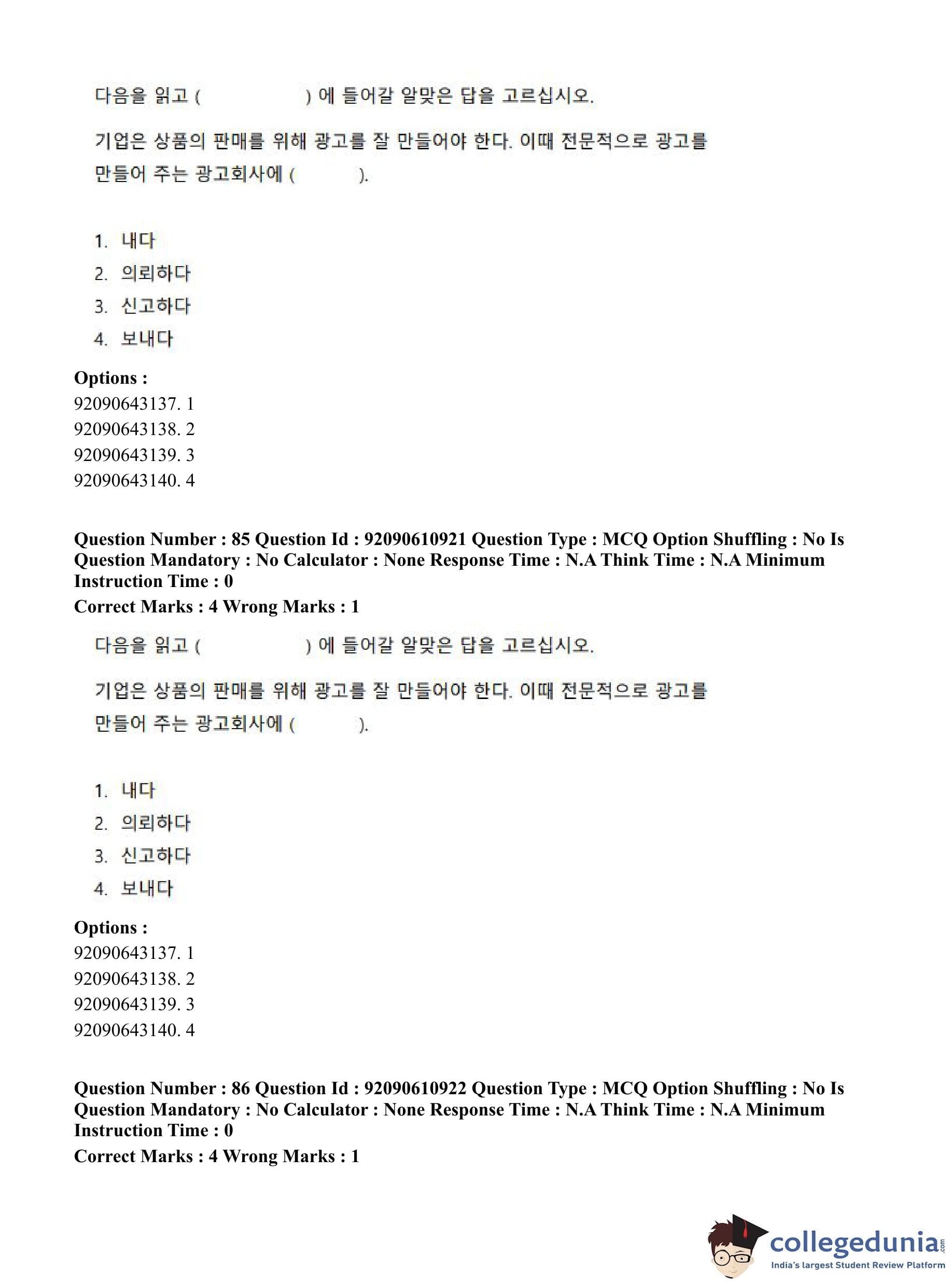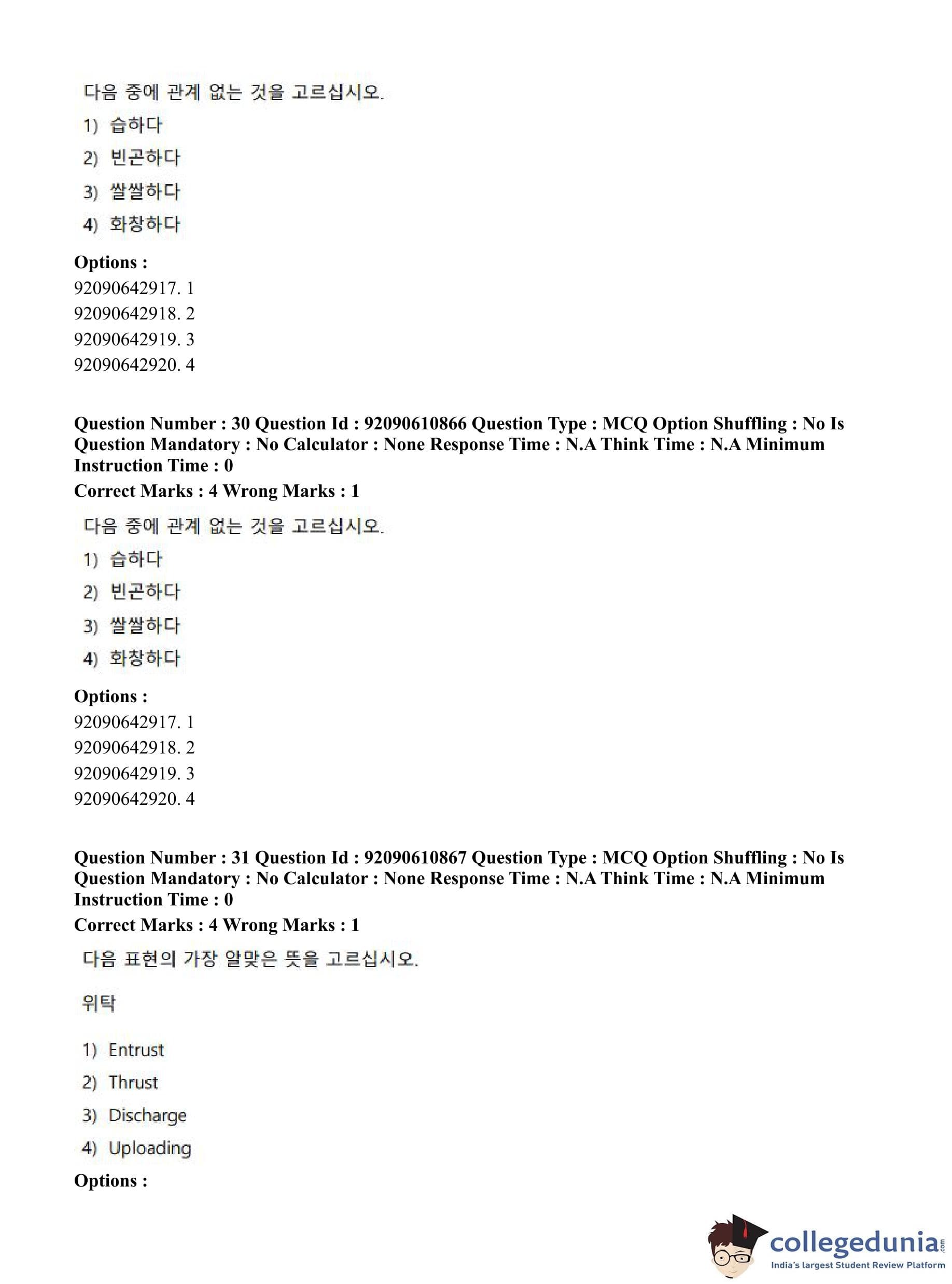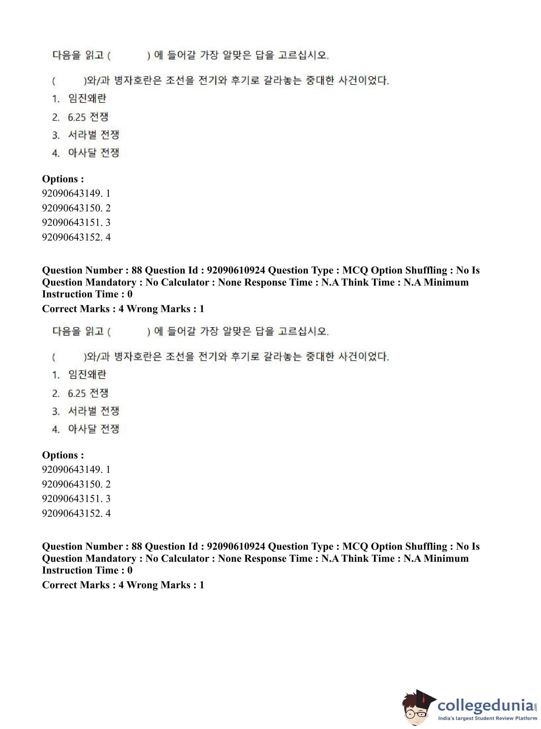 CUET PG 2023 Korean Question Paper in Hindi (June 10 - Shift 2)