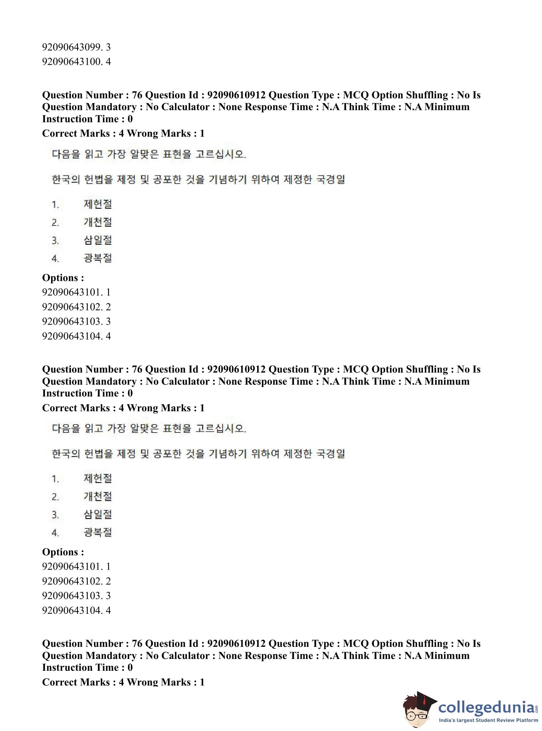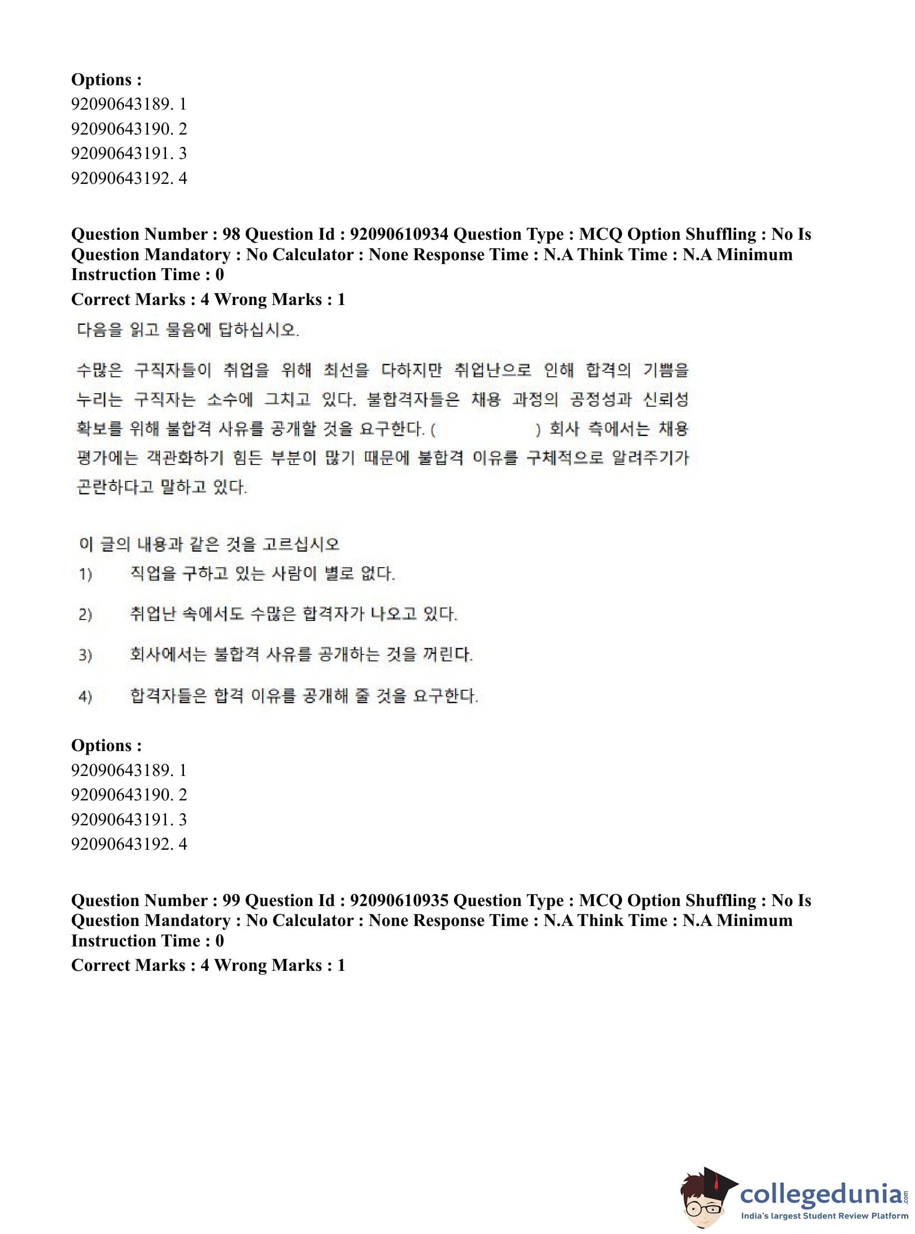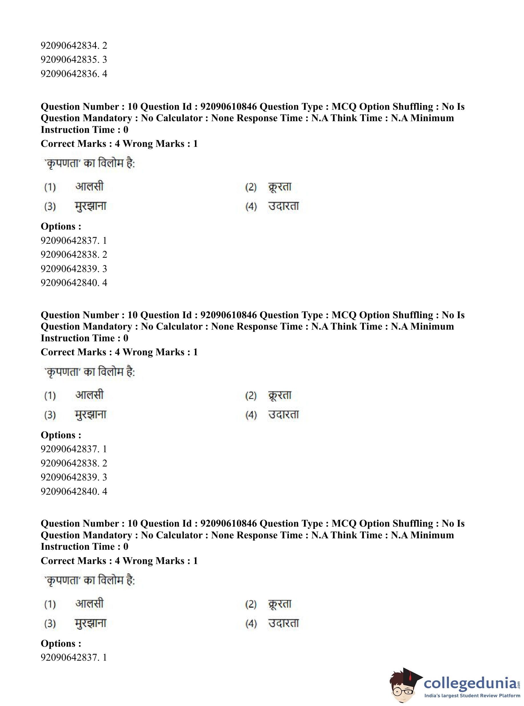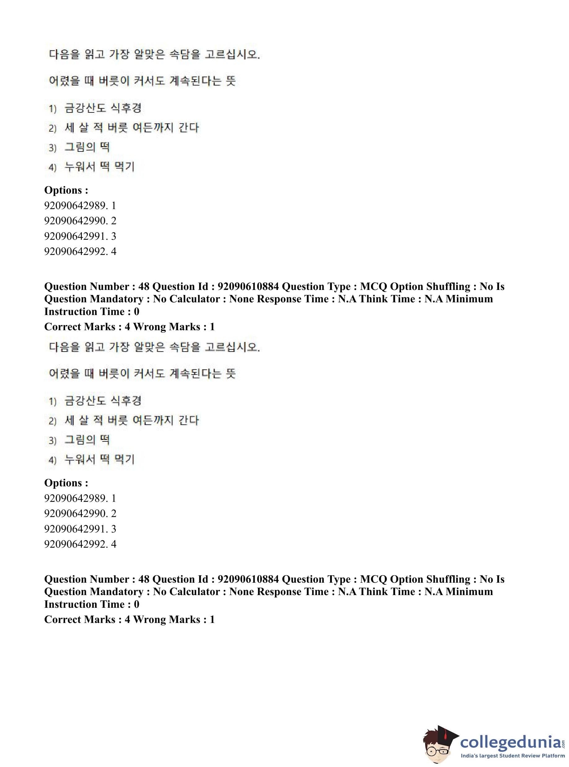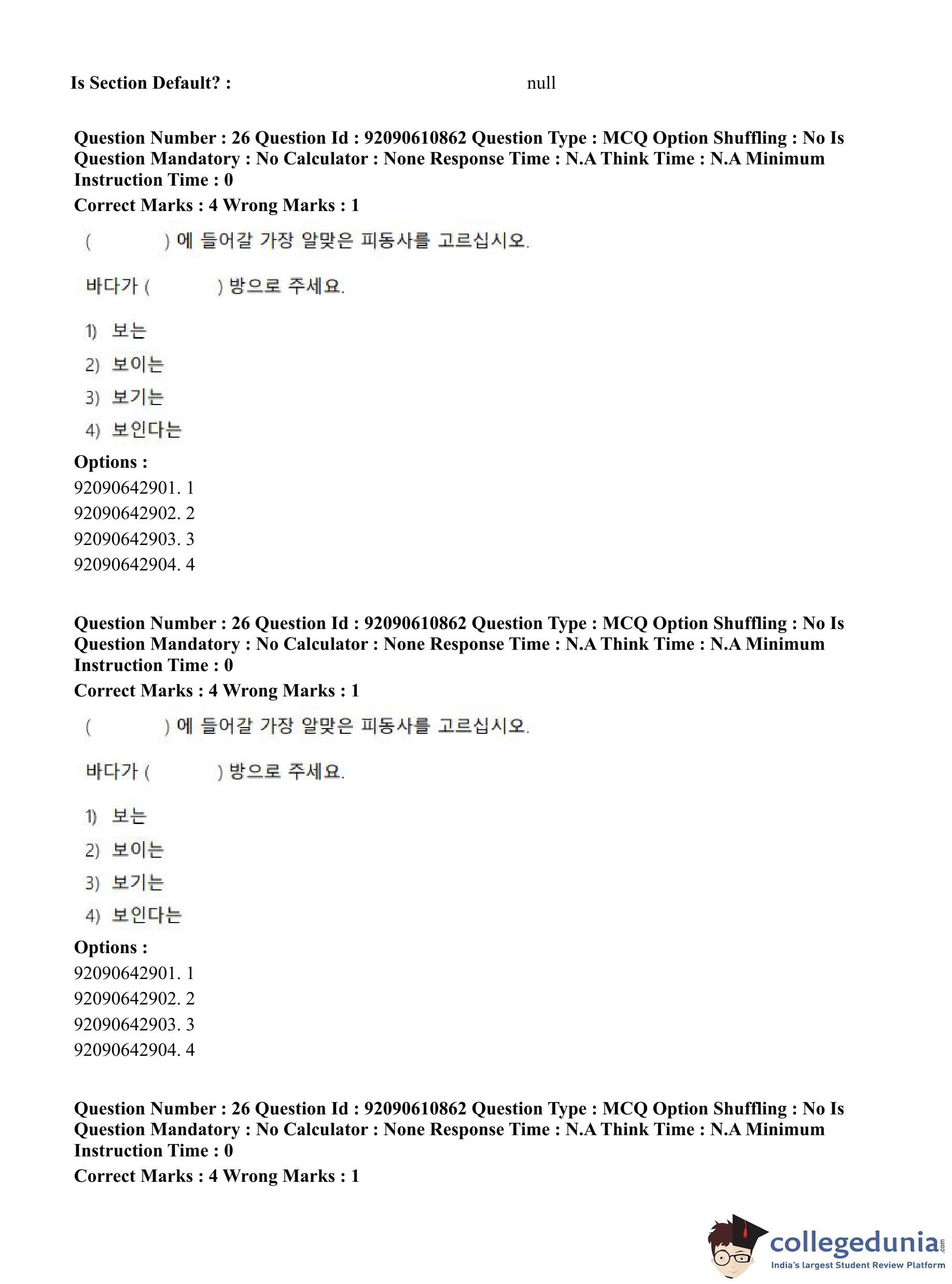 CUET PG 2023 Korean Question Paper in Hindi (June 10 - Shift 2)