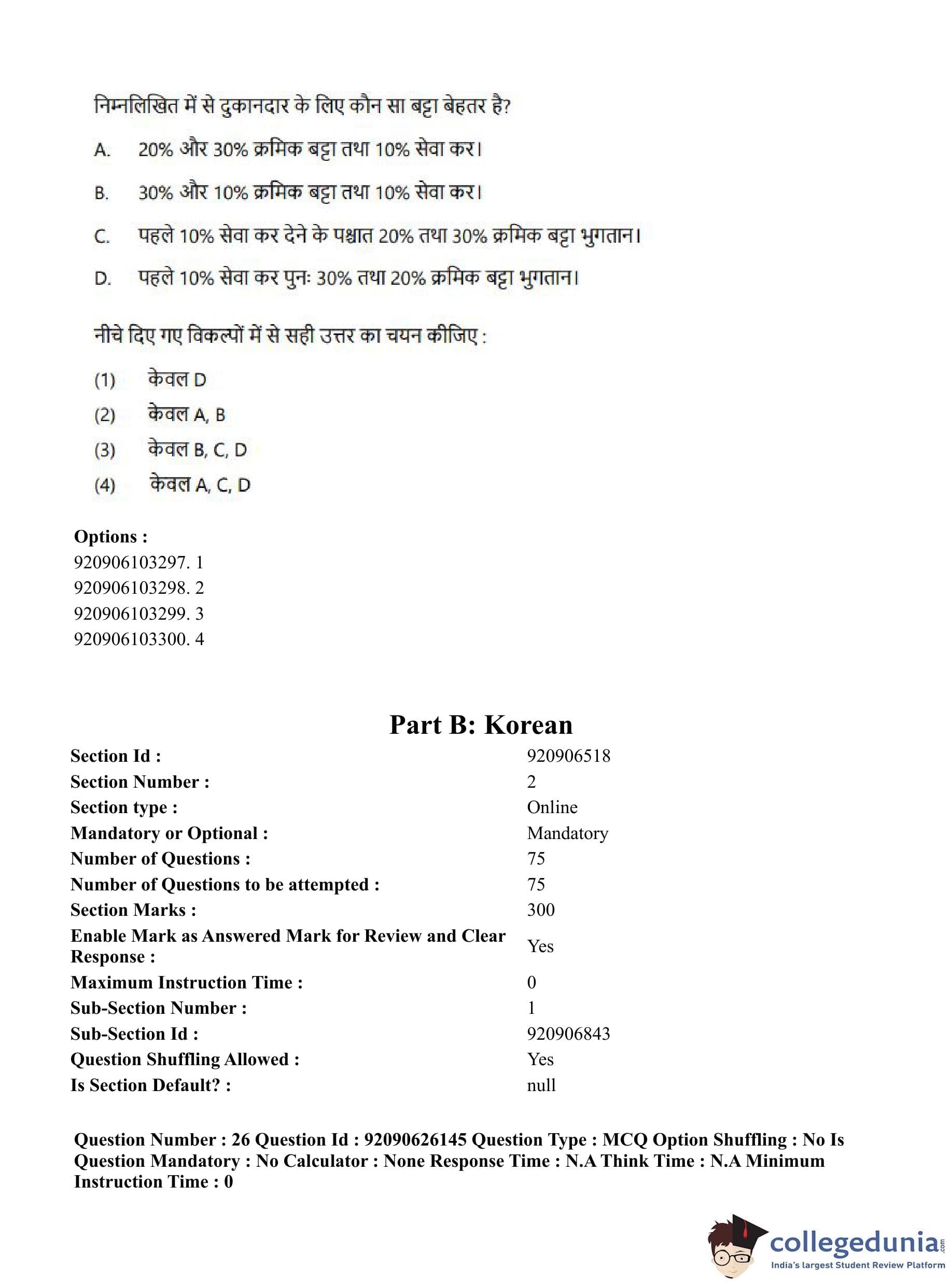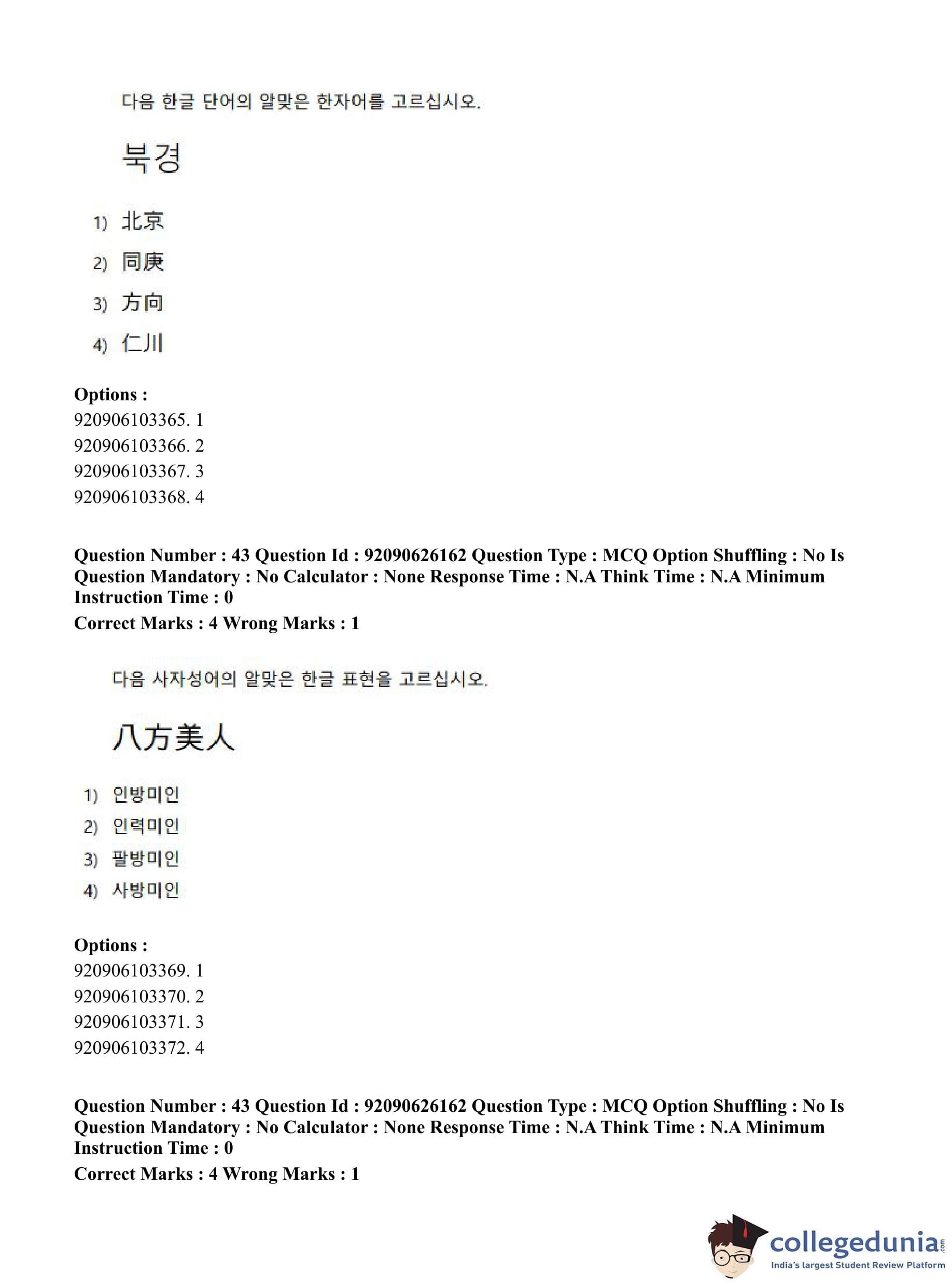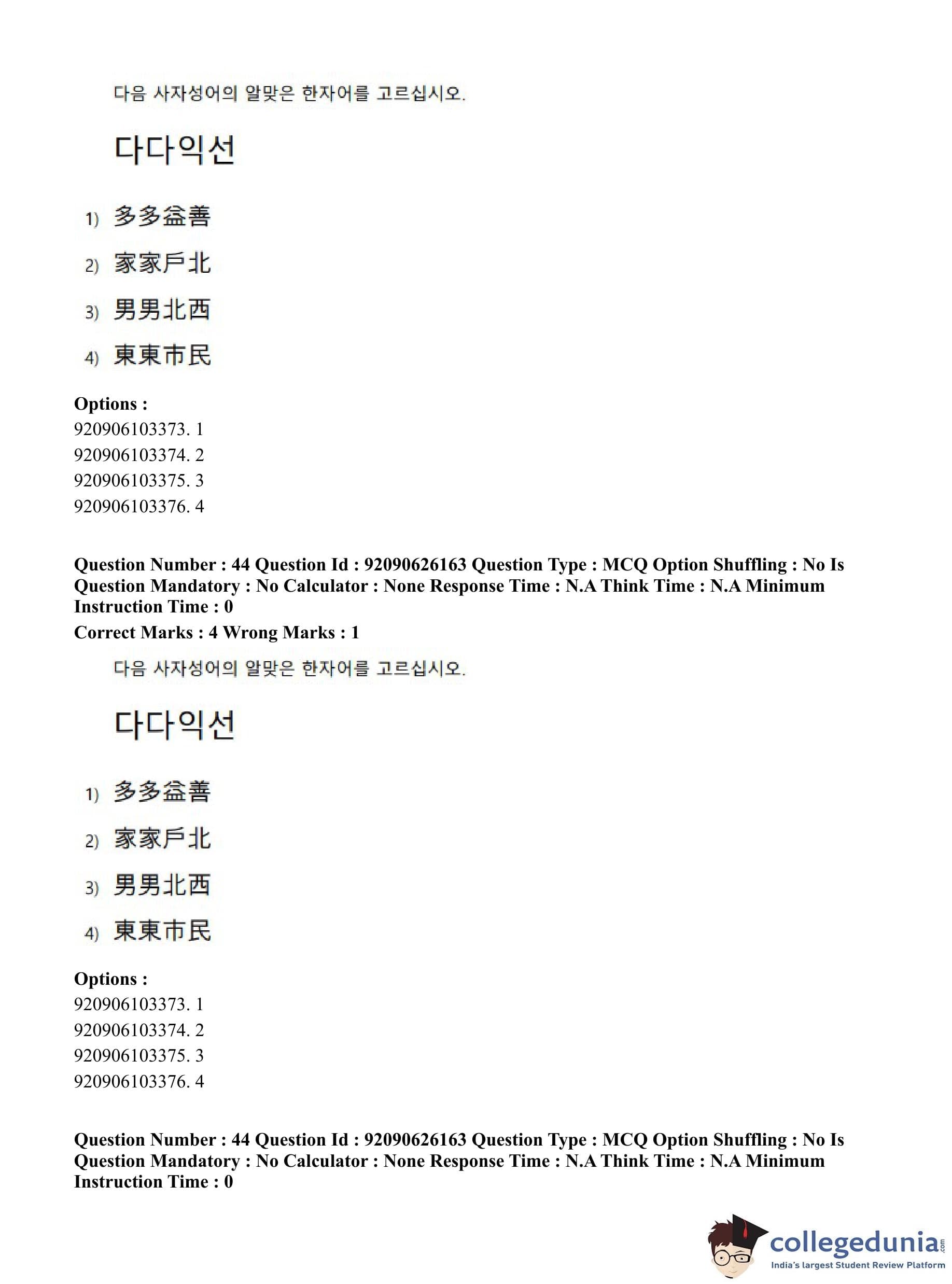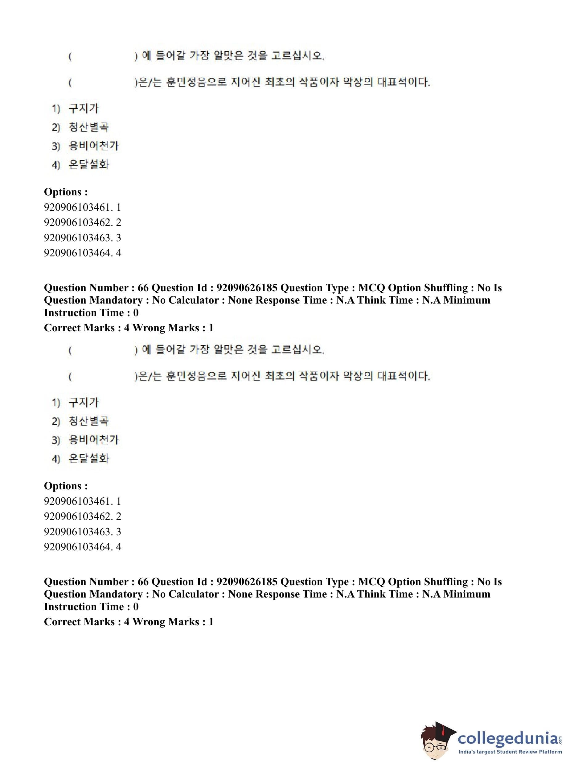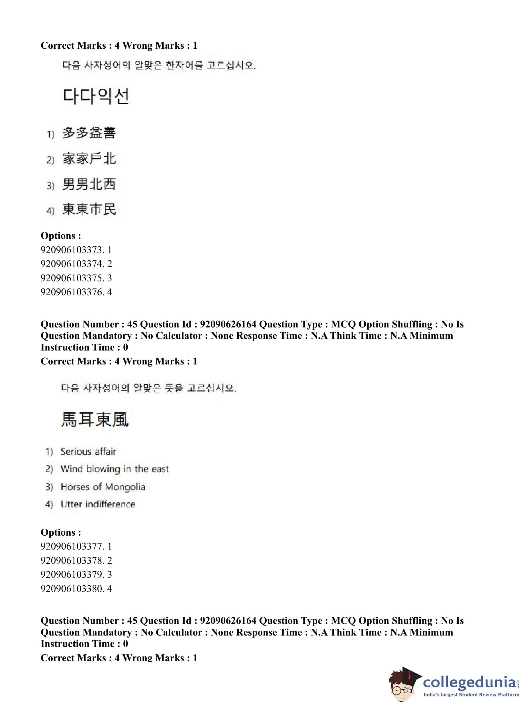 CUET PG 2023 Korean Question Paper in Hindi (June 26 - Shift 1)