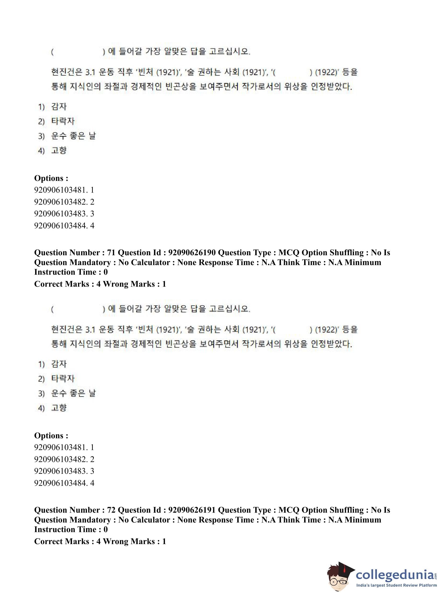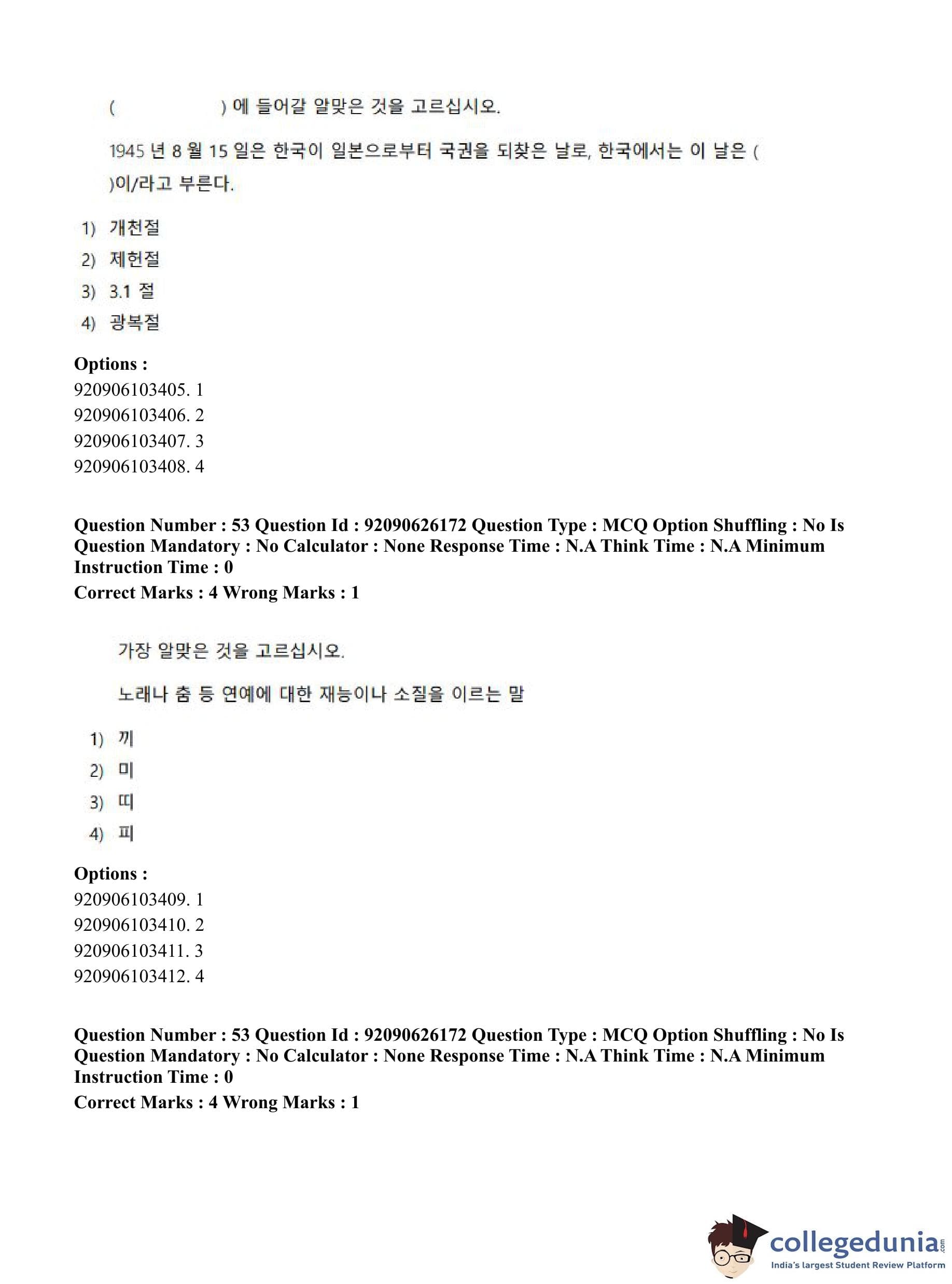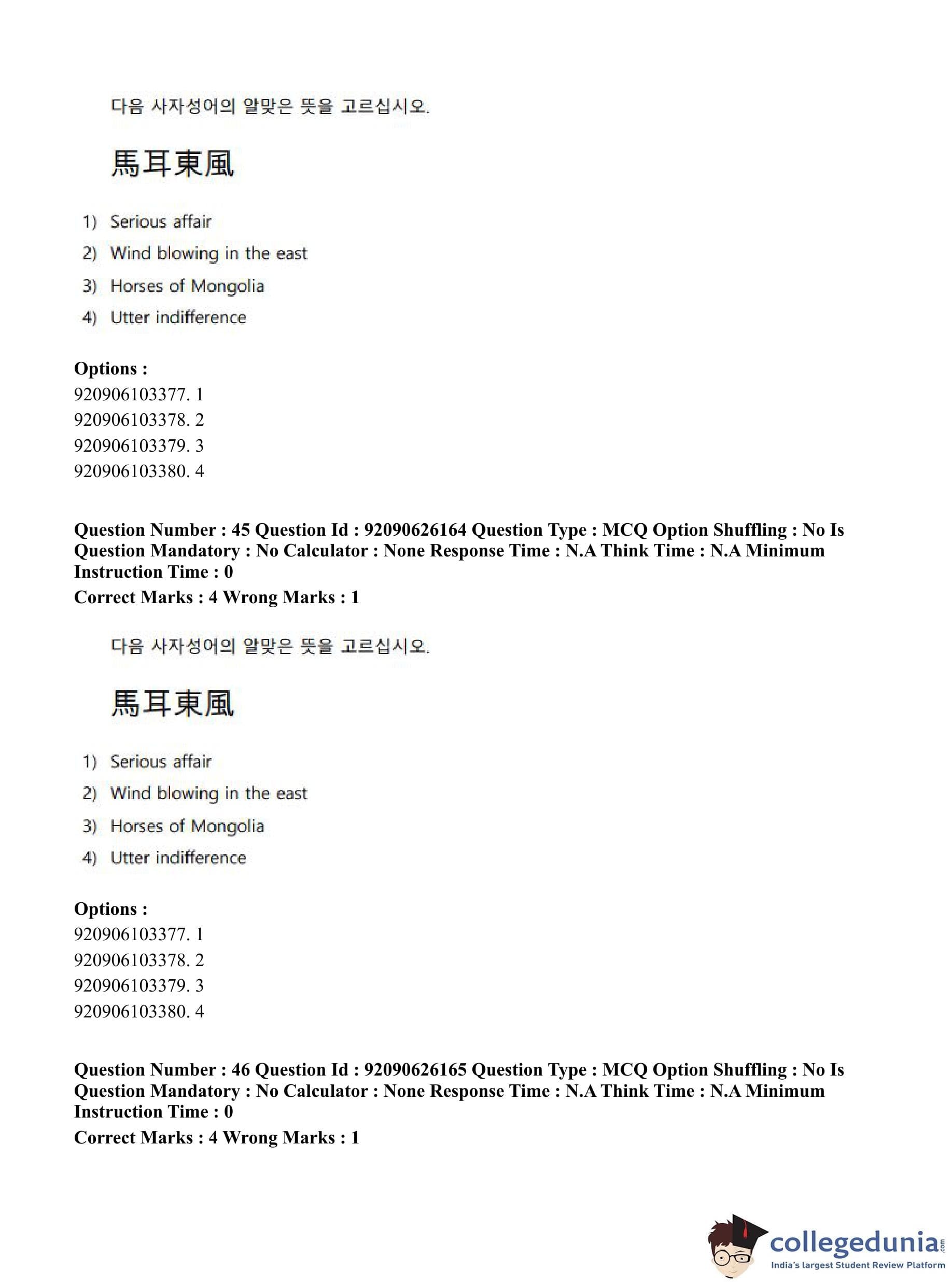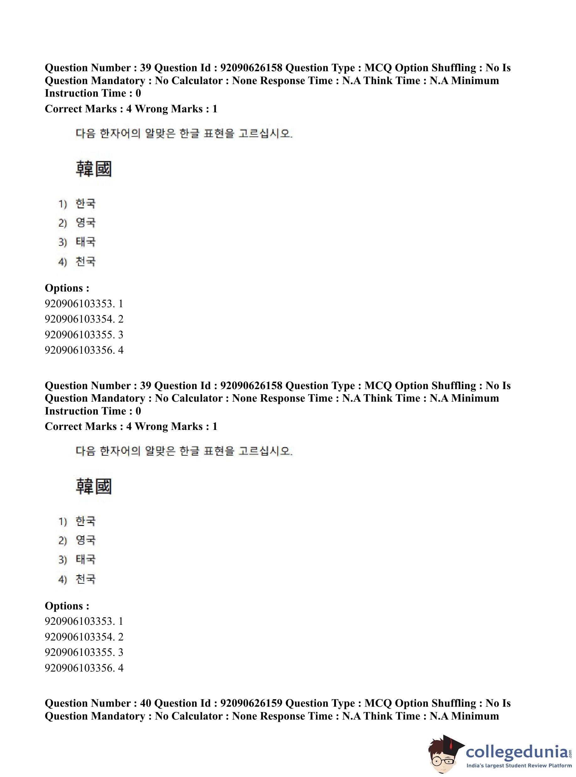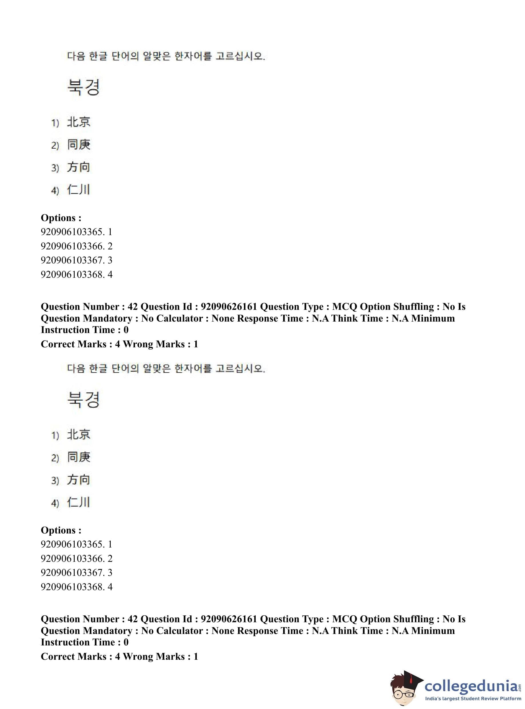 CUET PG 2023 Korean Question Paper in Hindi (June 26 - Shift 1)
