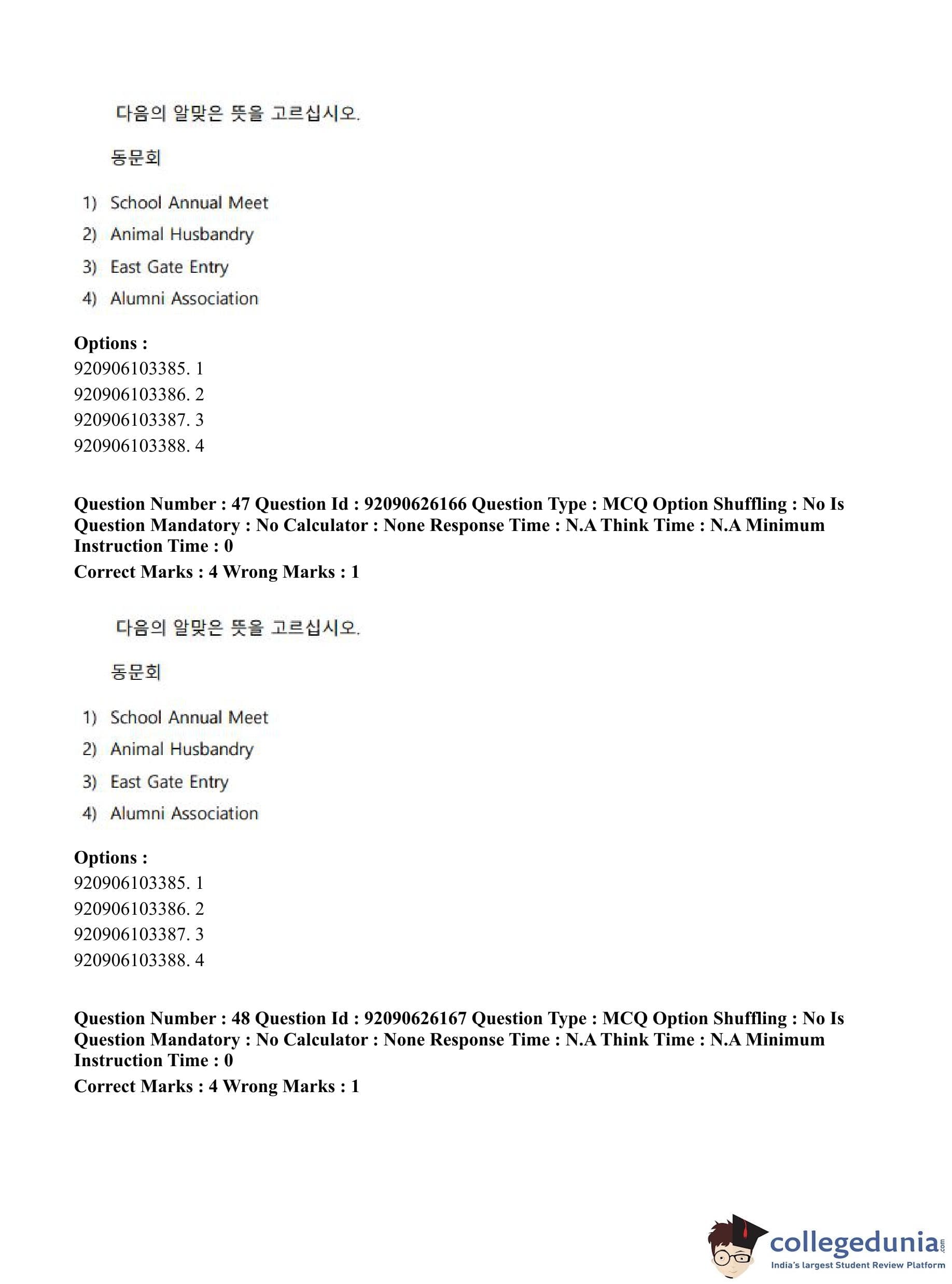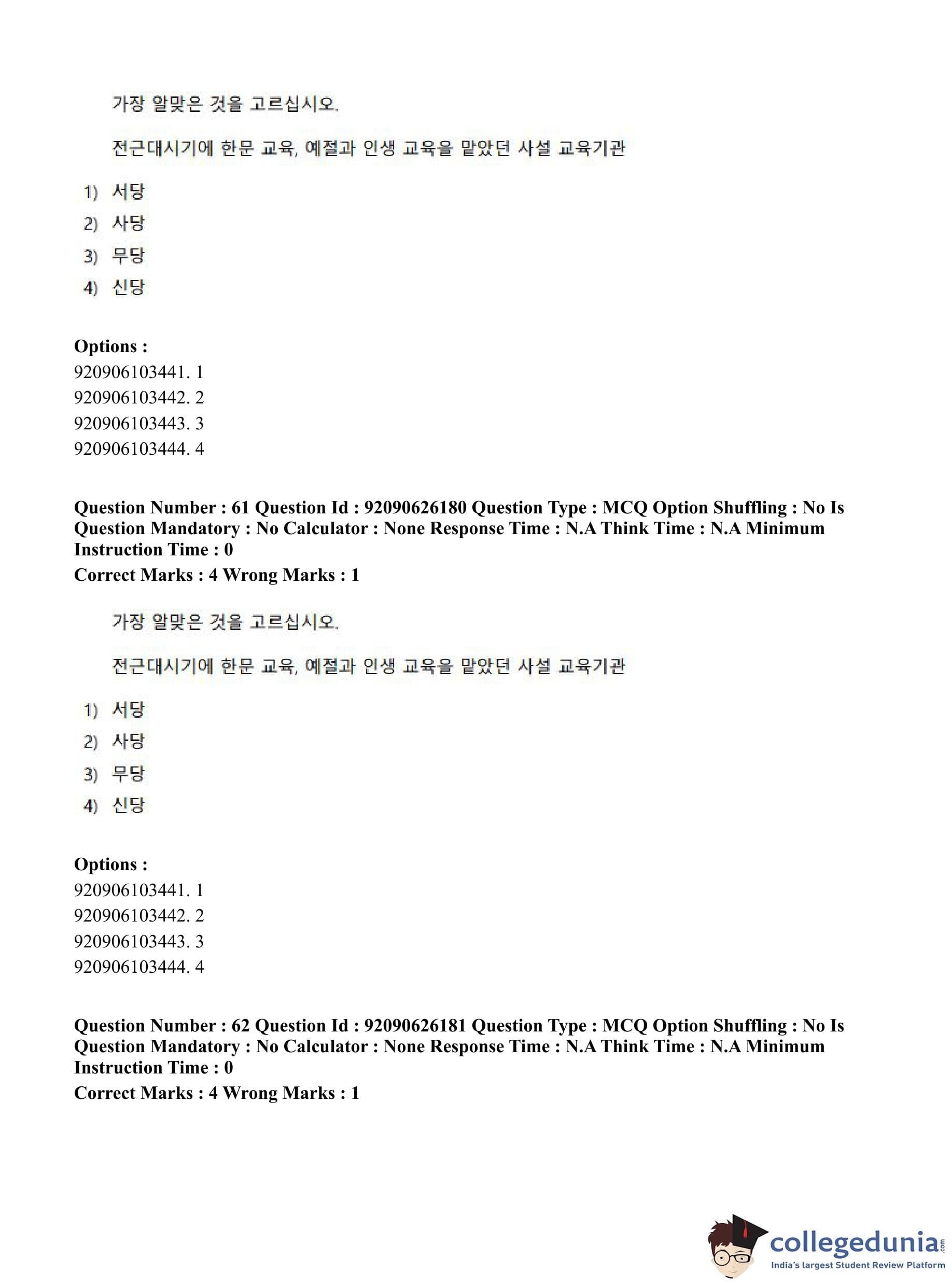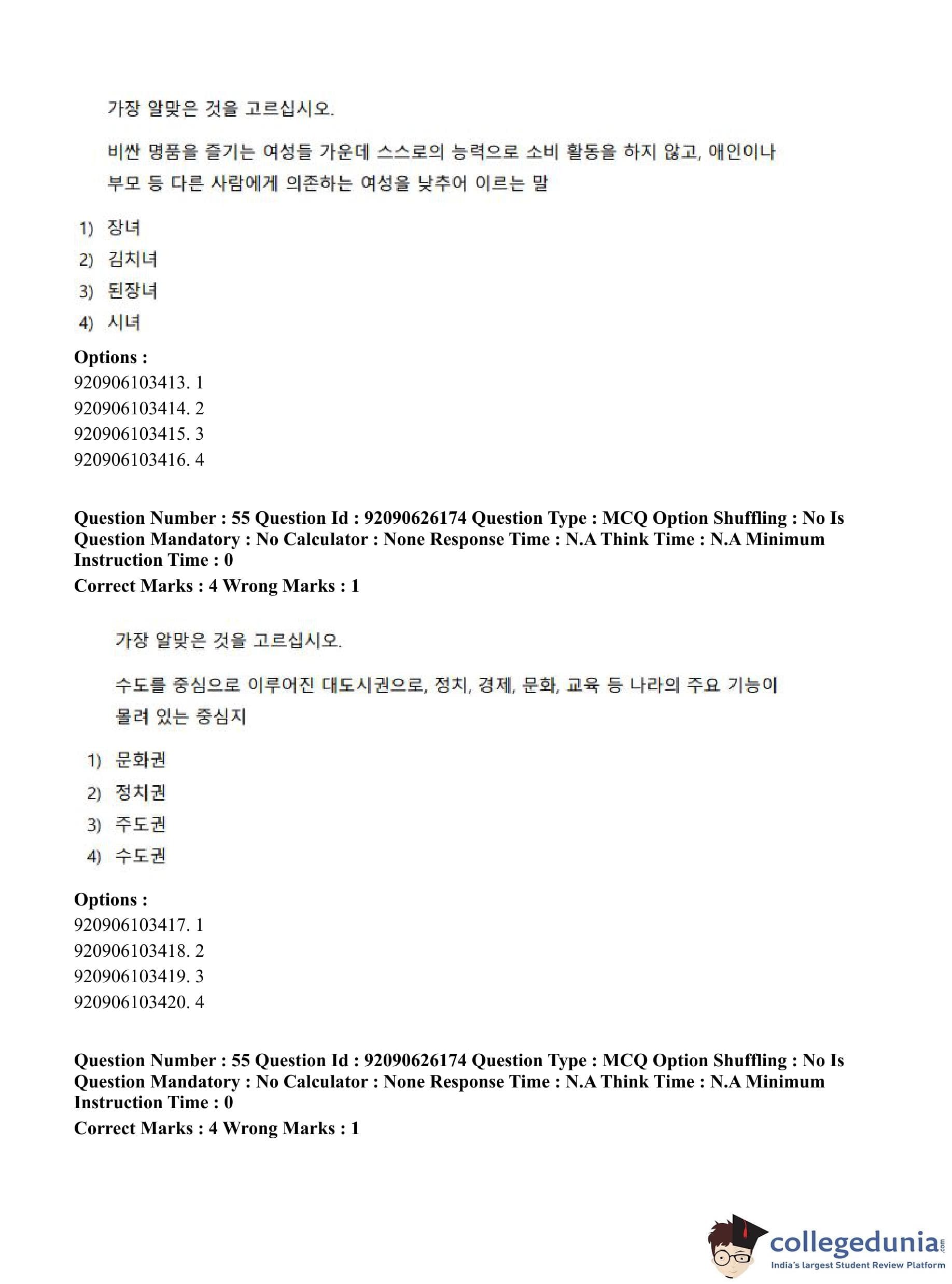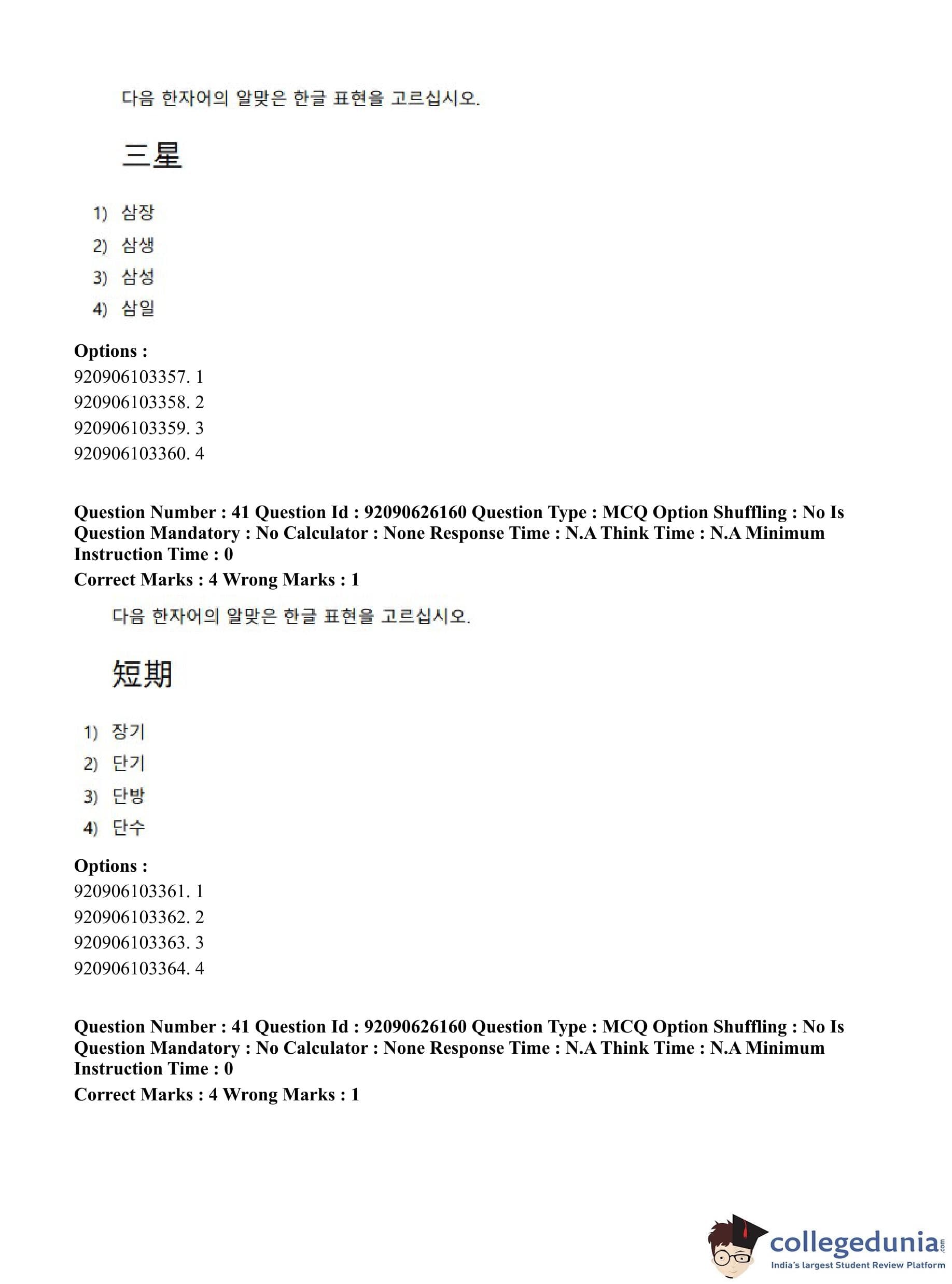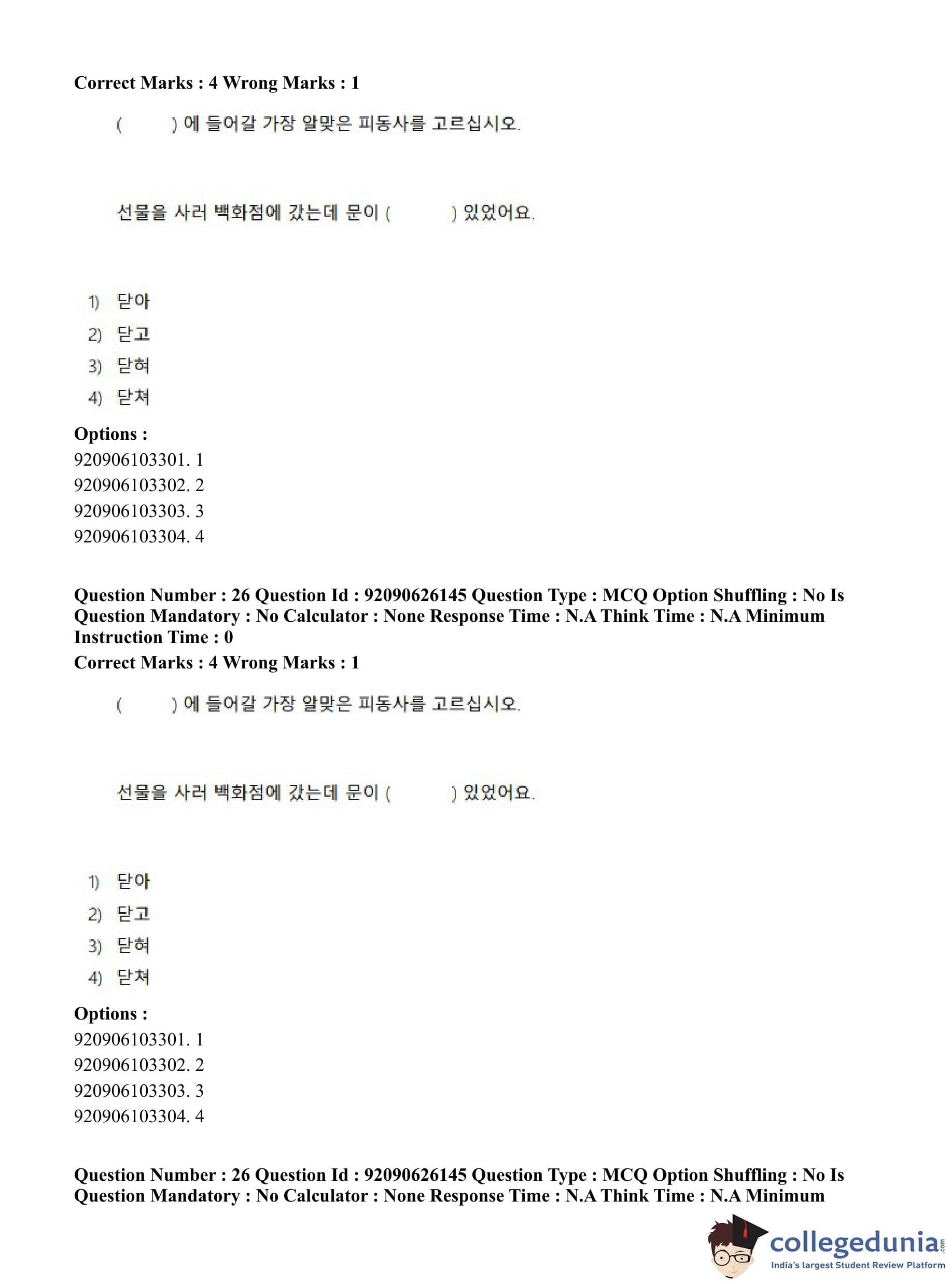 CUET PG 2023 Korean Question Paper in Hindi (June 26 - Shift 1)