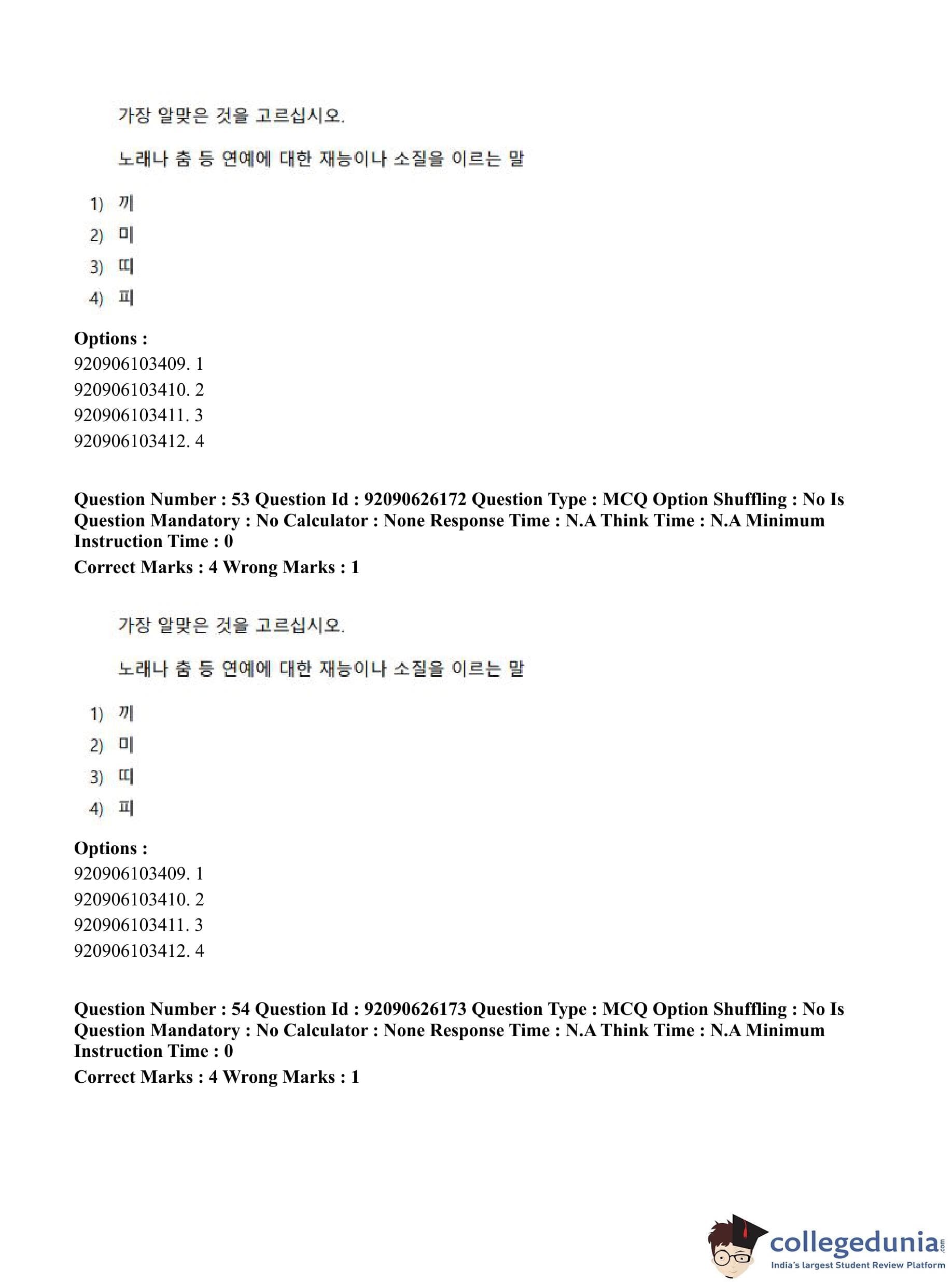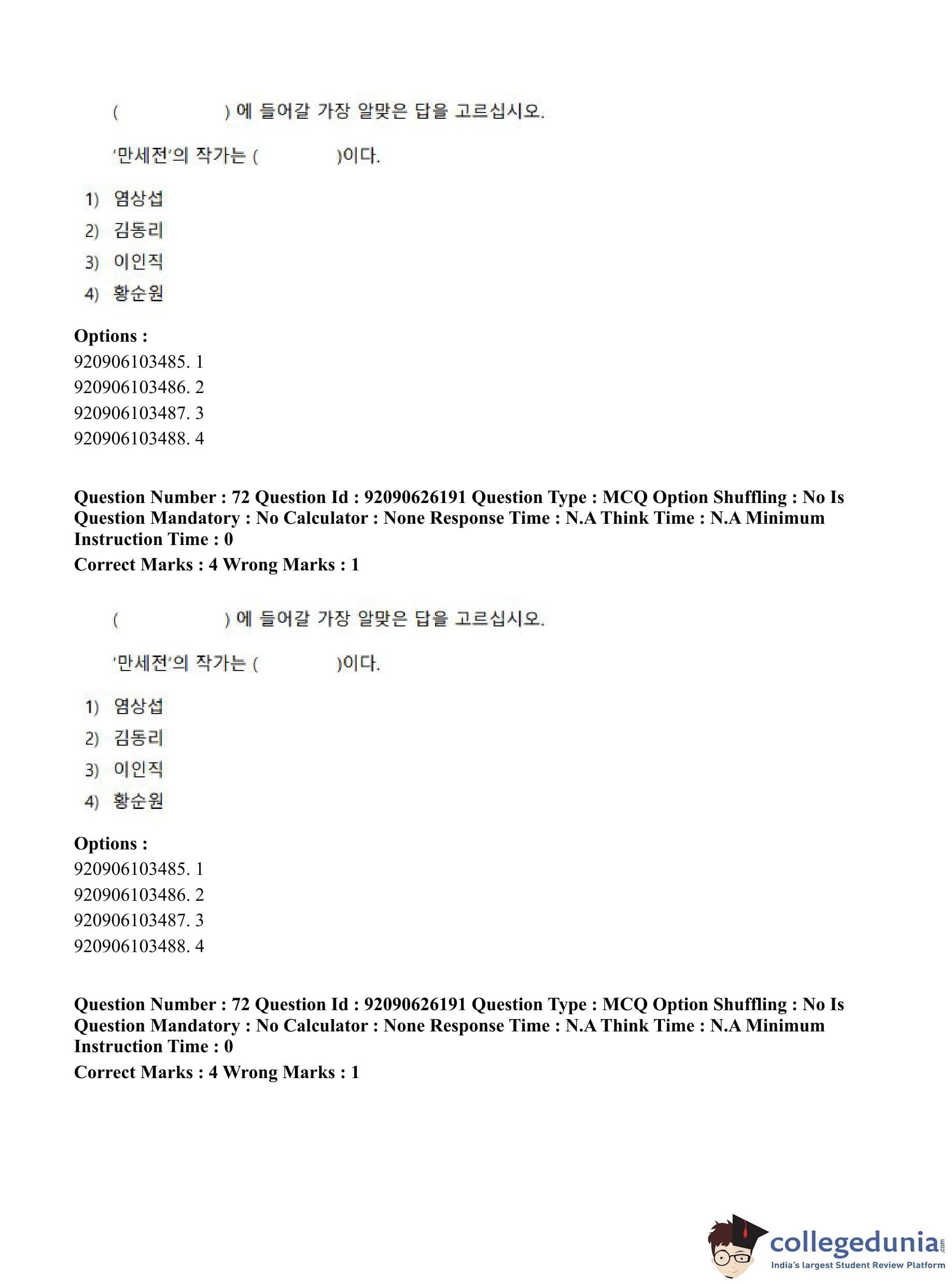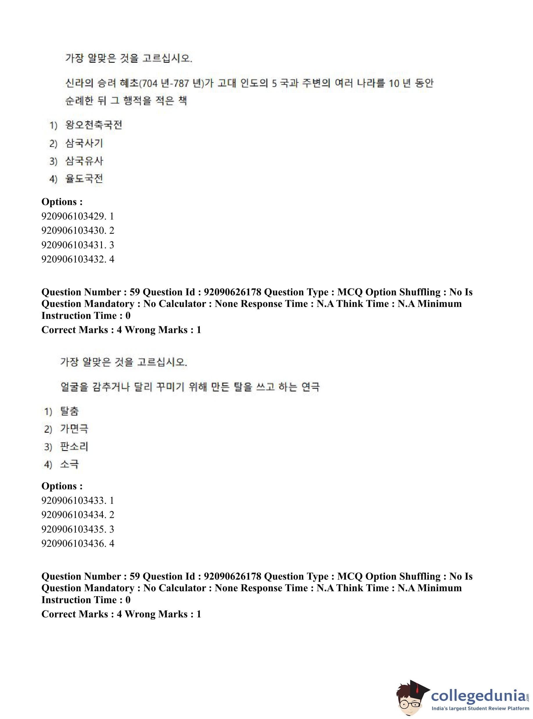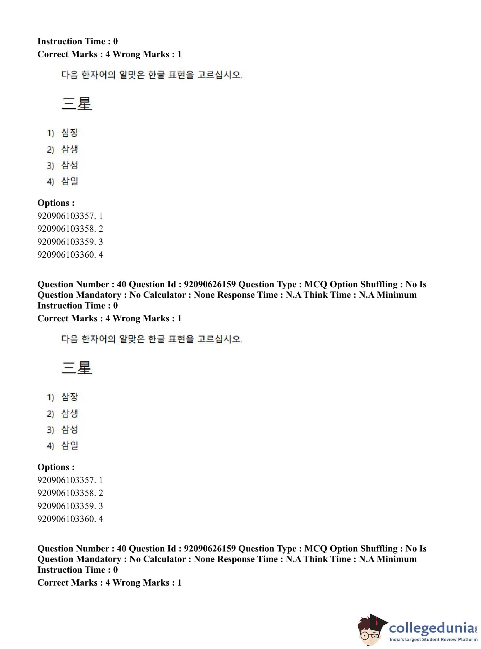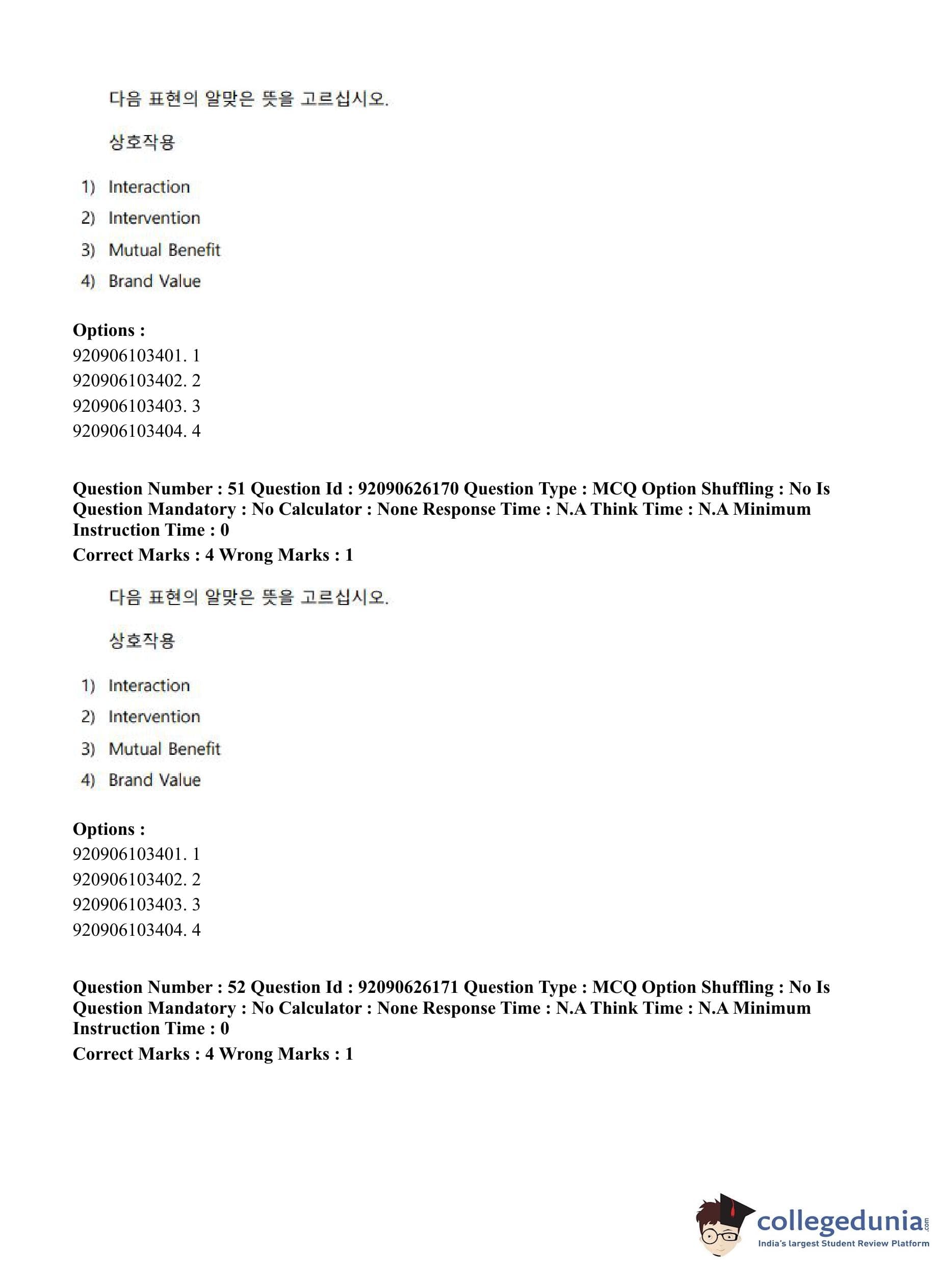CUET PG 2023 Korean Question Paper in Hindi (June 26 - Shift 1)