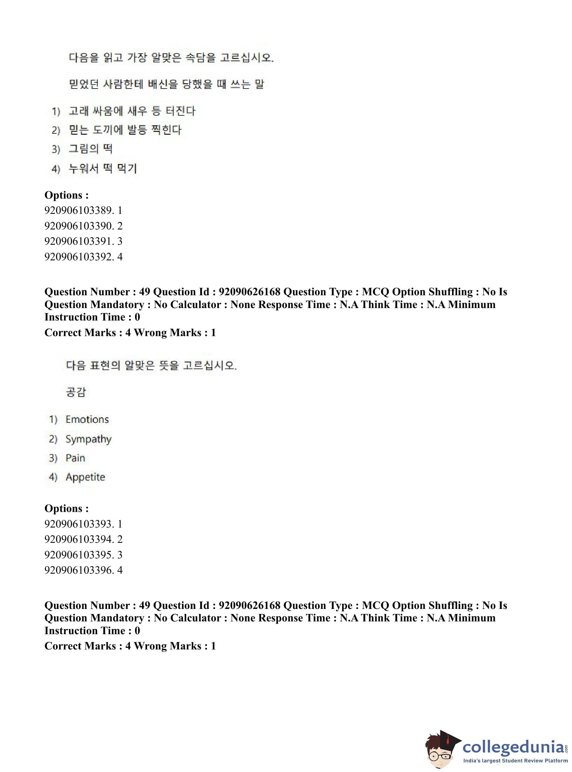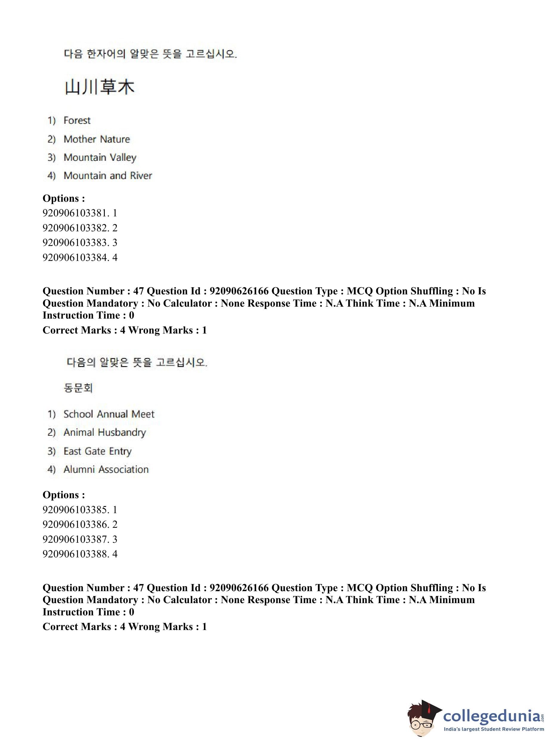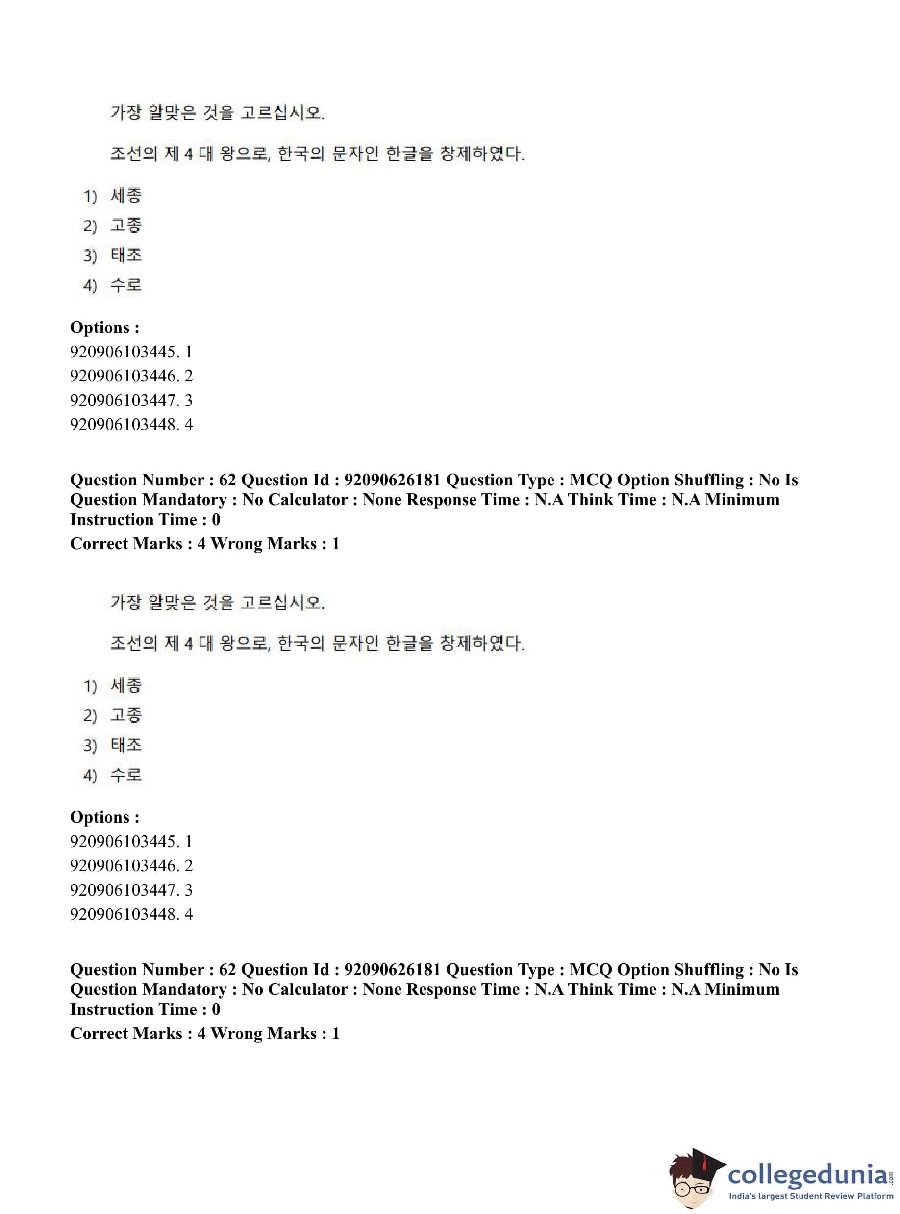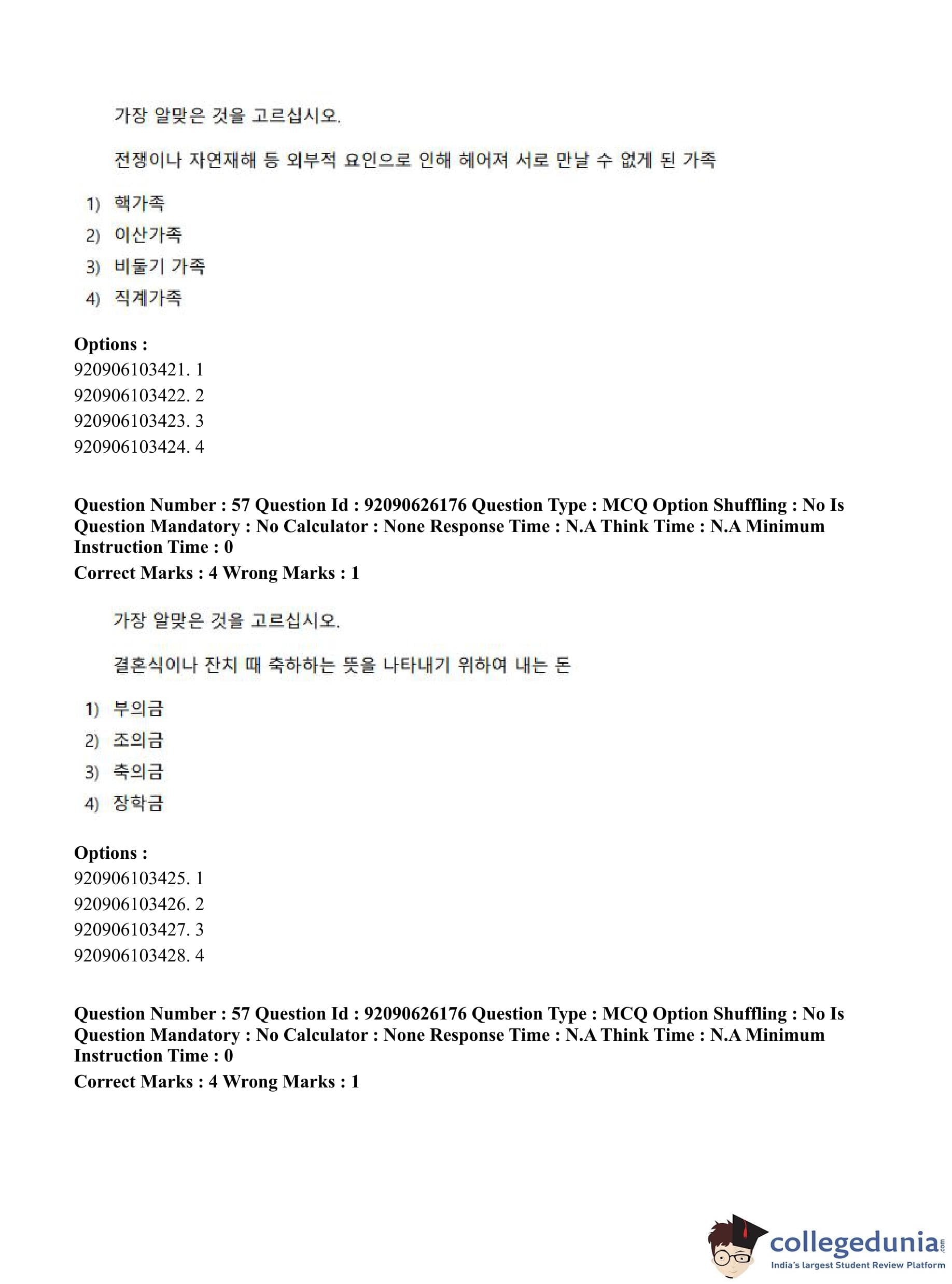 CUET PG 2023 Korean Question Paper in Hindi (June 26 - Shift 1)