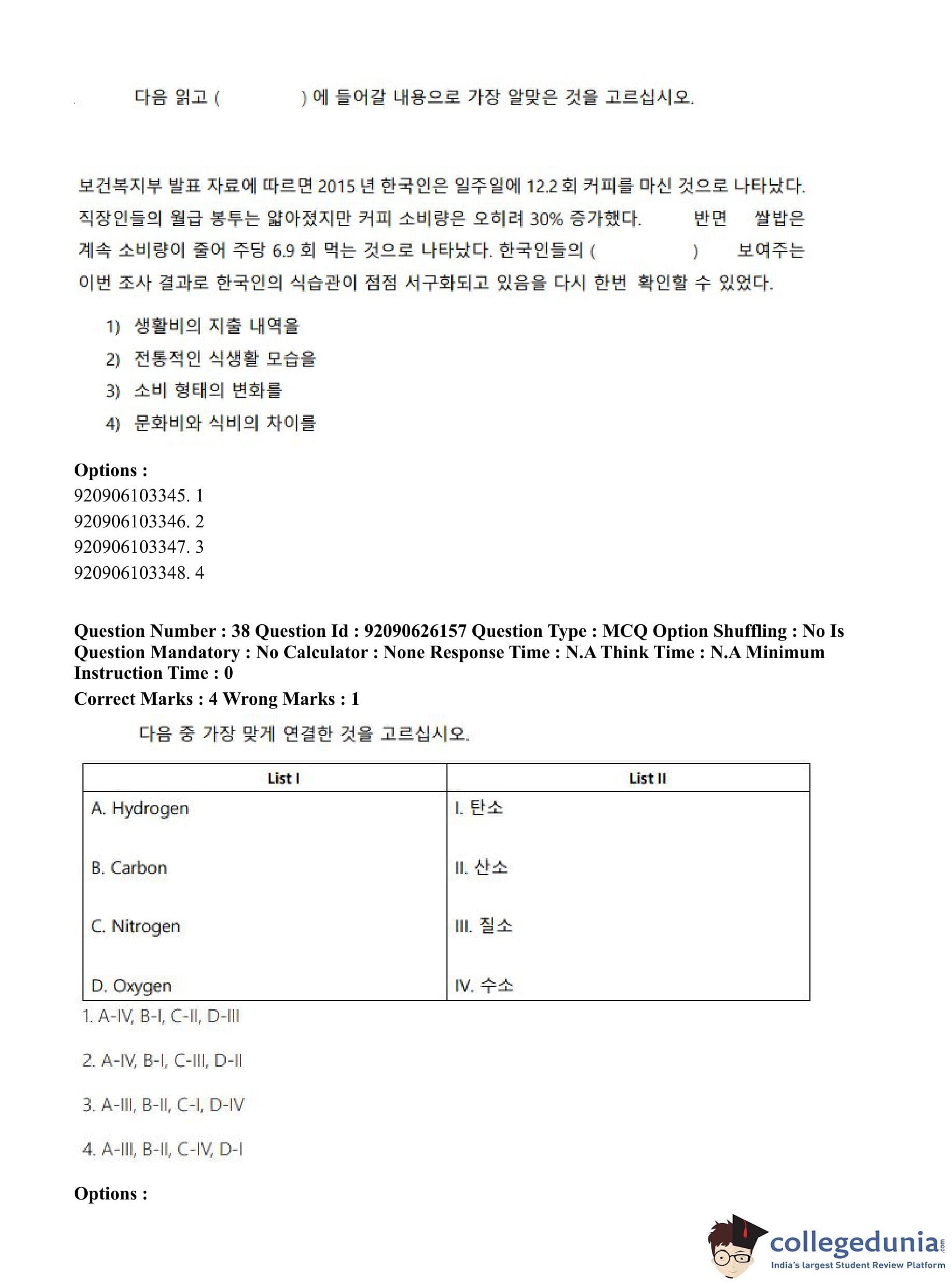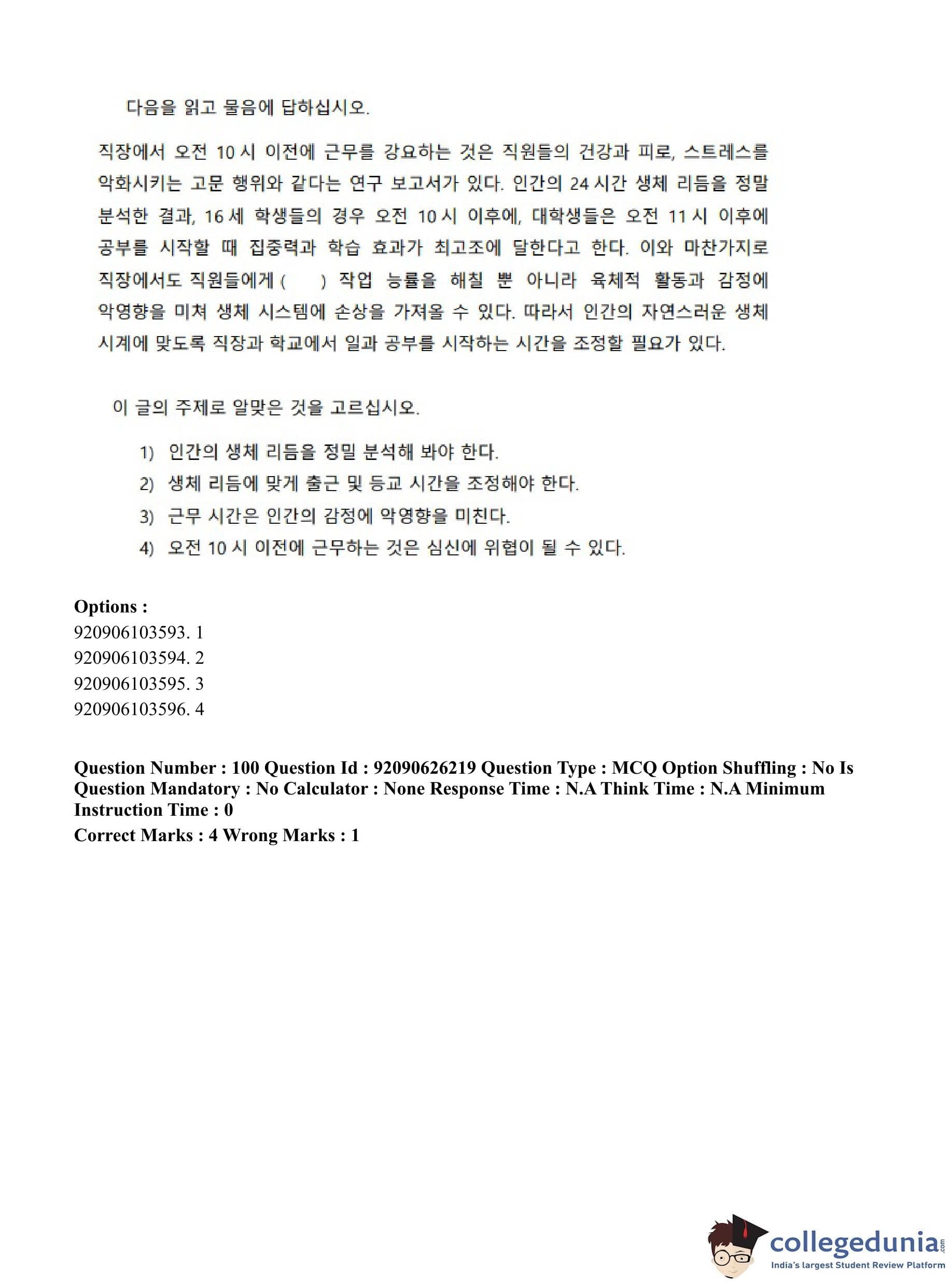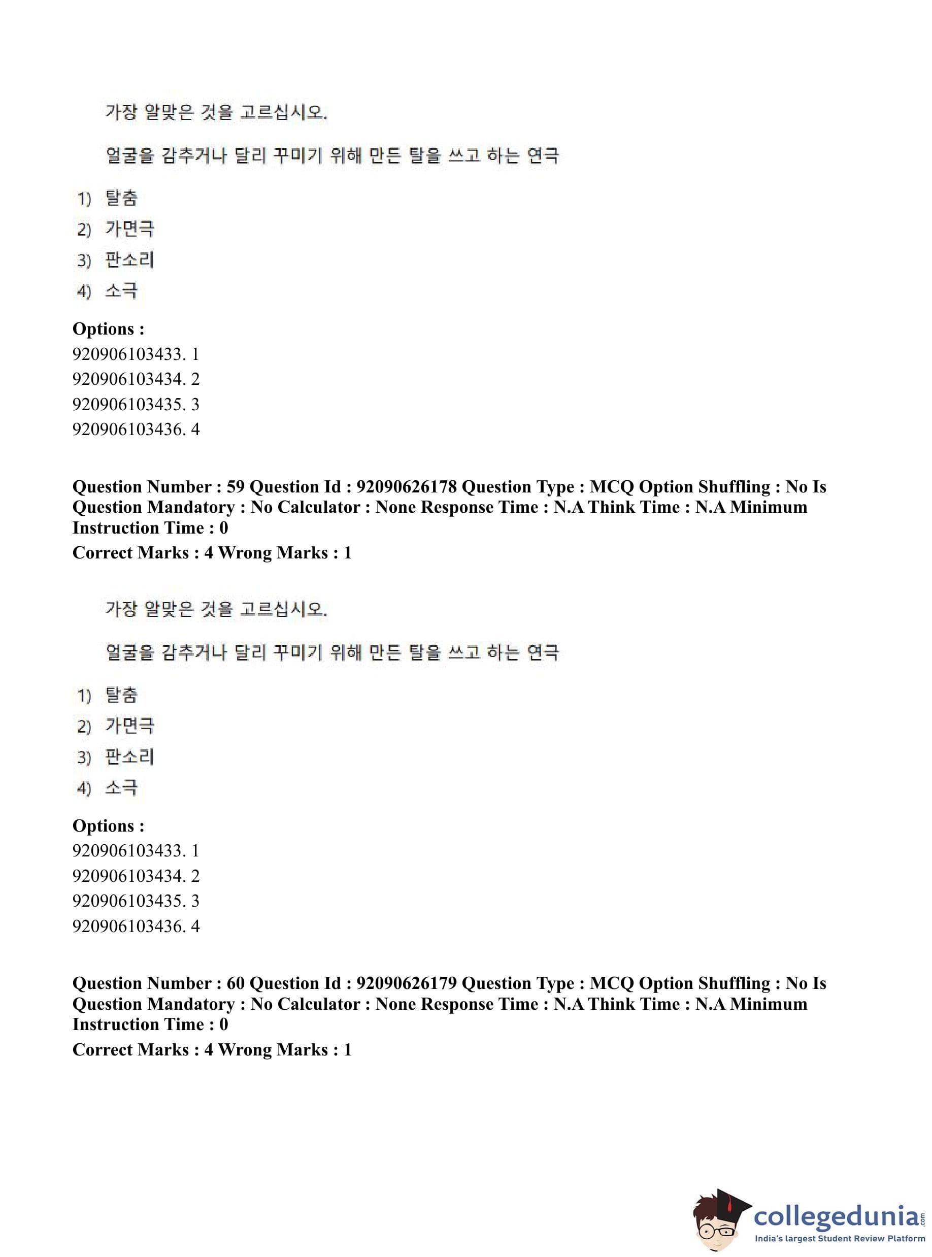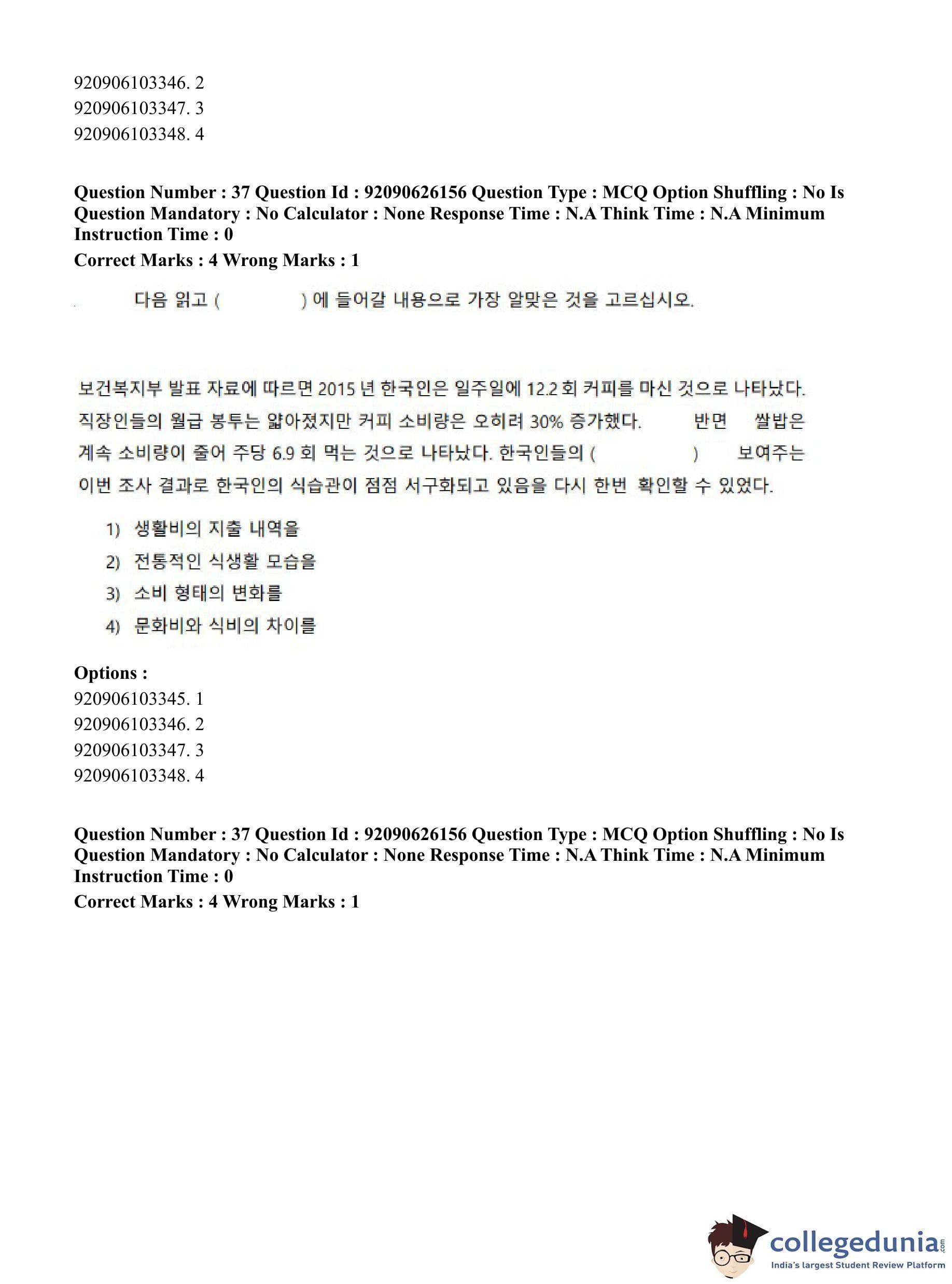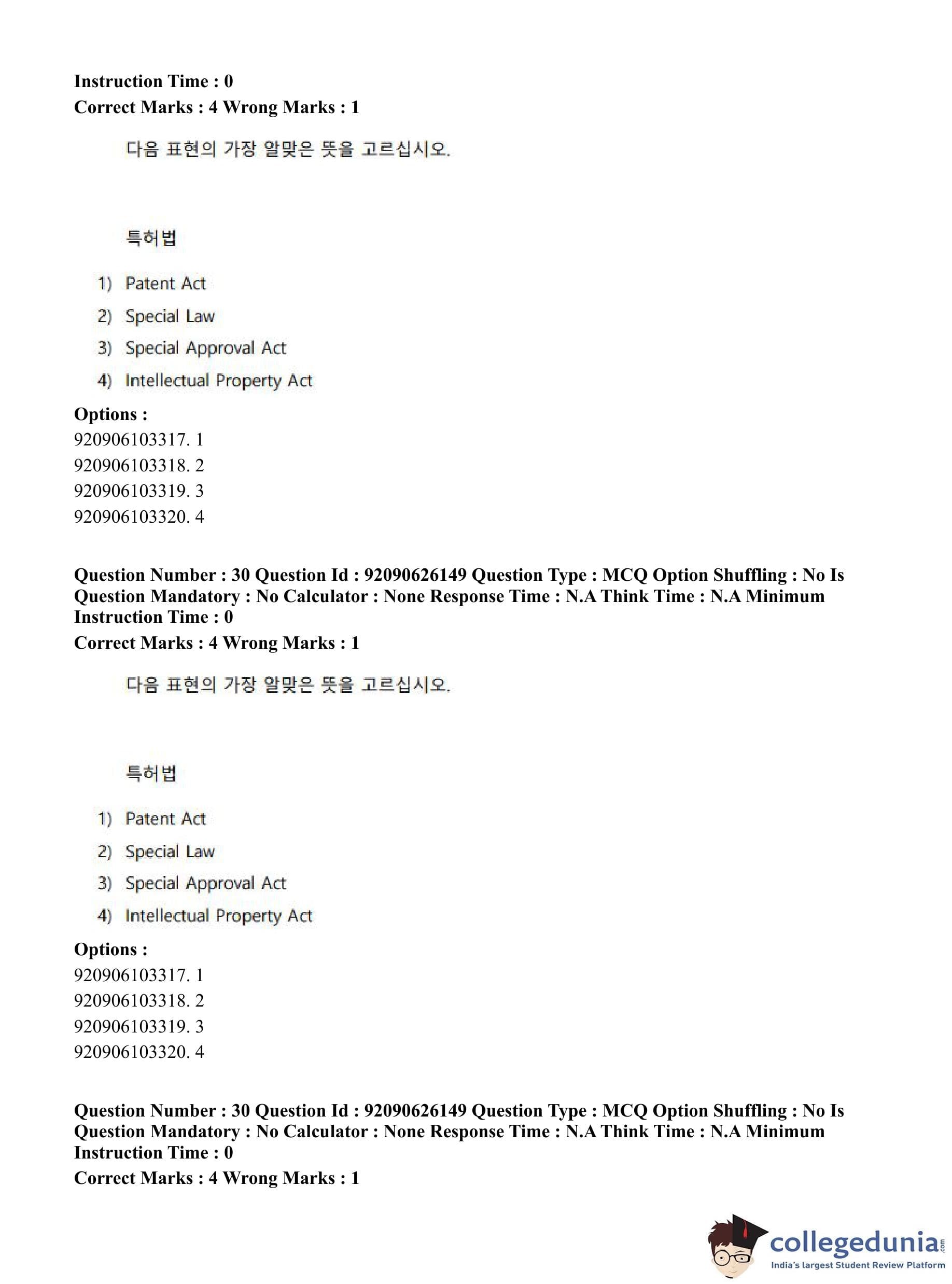 CUET PG 2023 Korean Question Paper in Hindi (June 26 - Shift 1)