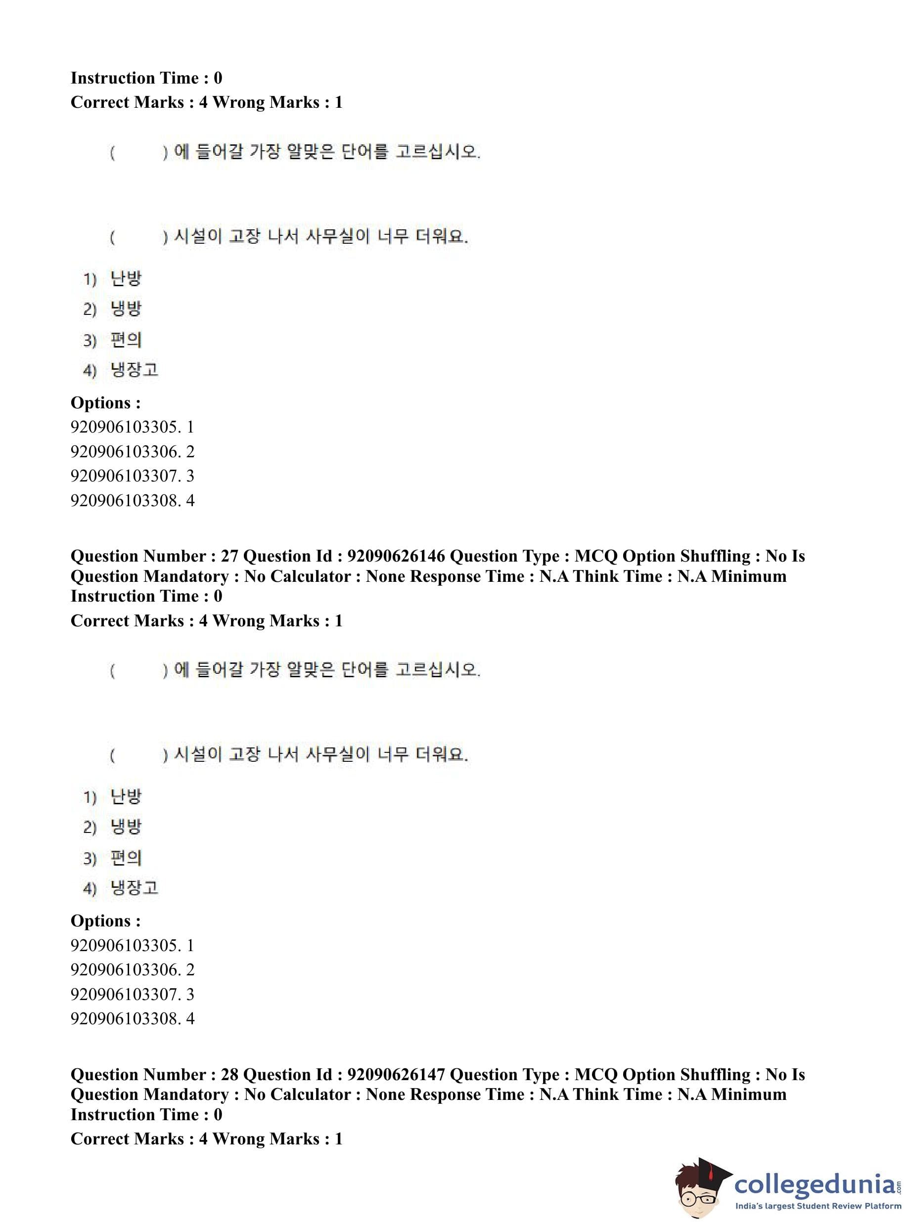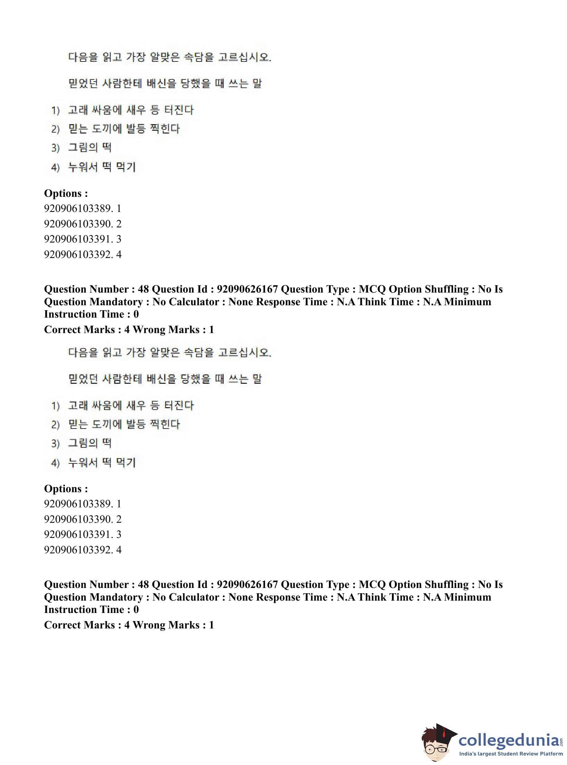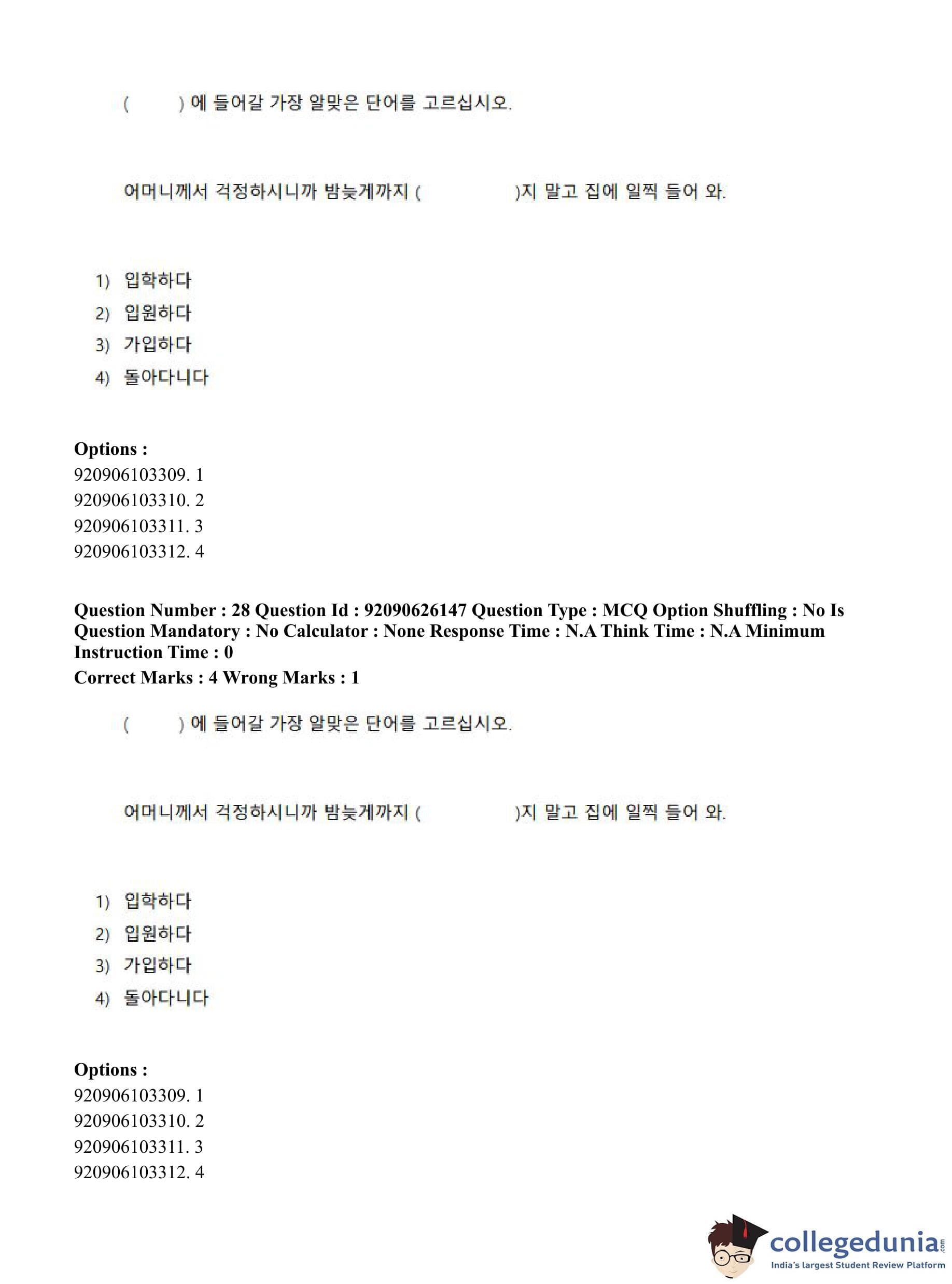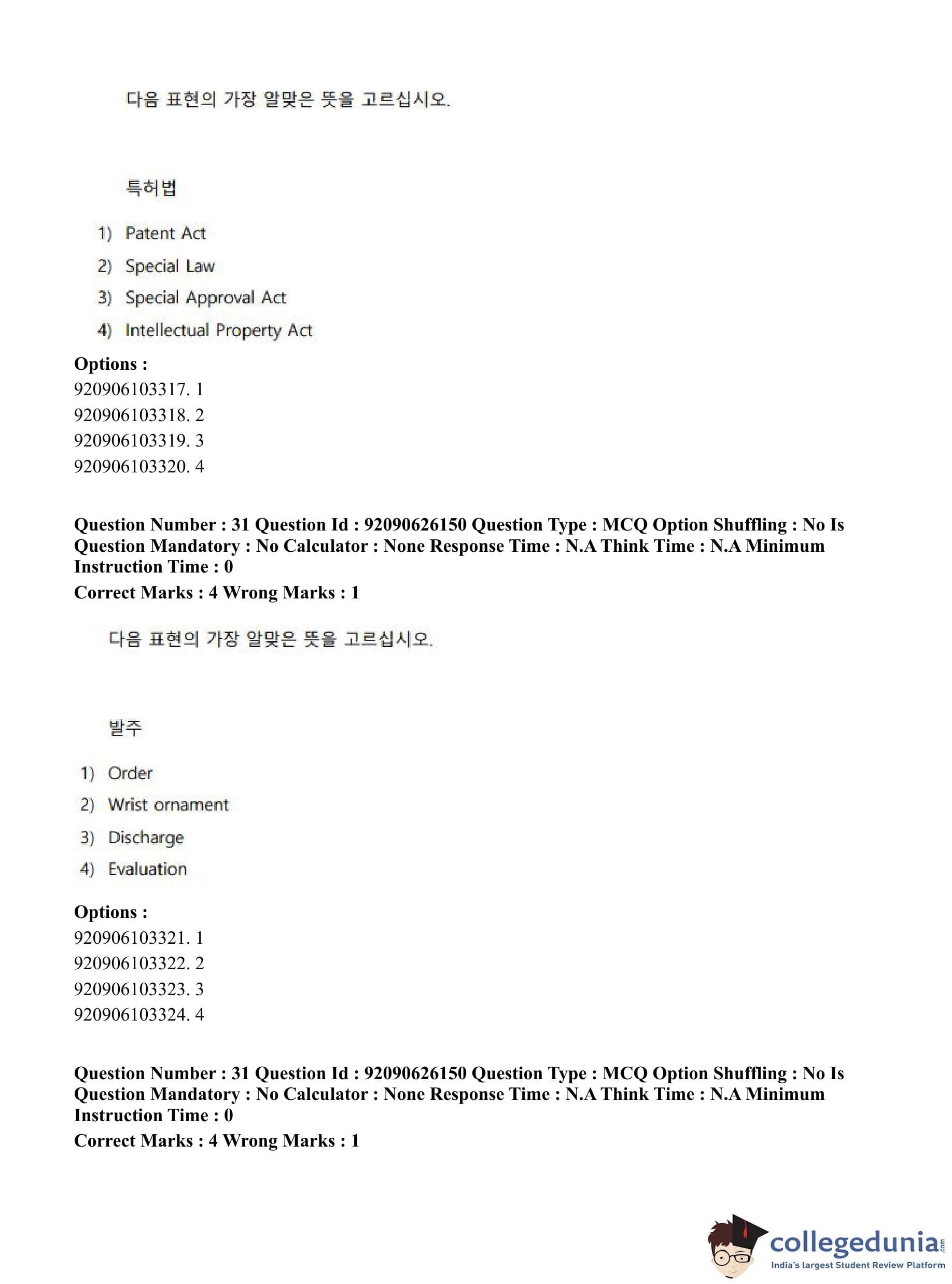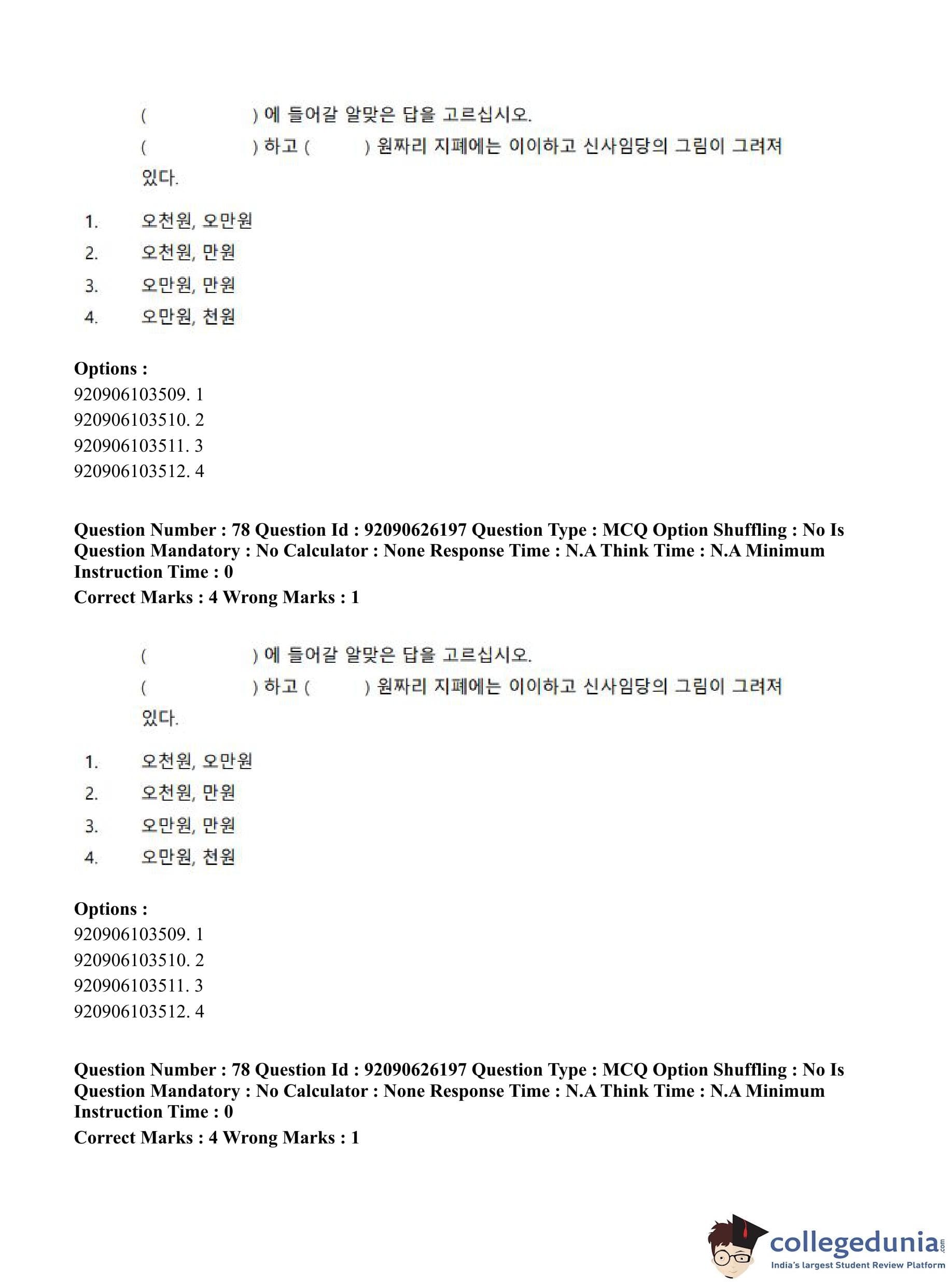 CUET PG 2023 Korean Question Paper in Hindi (June 26 - Shift 1)