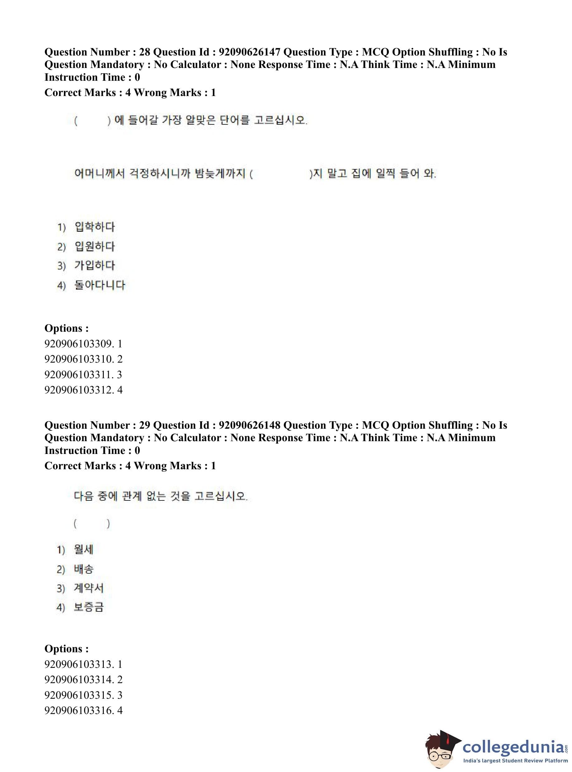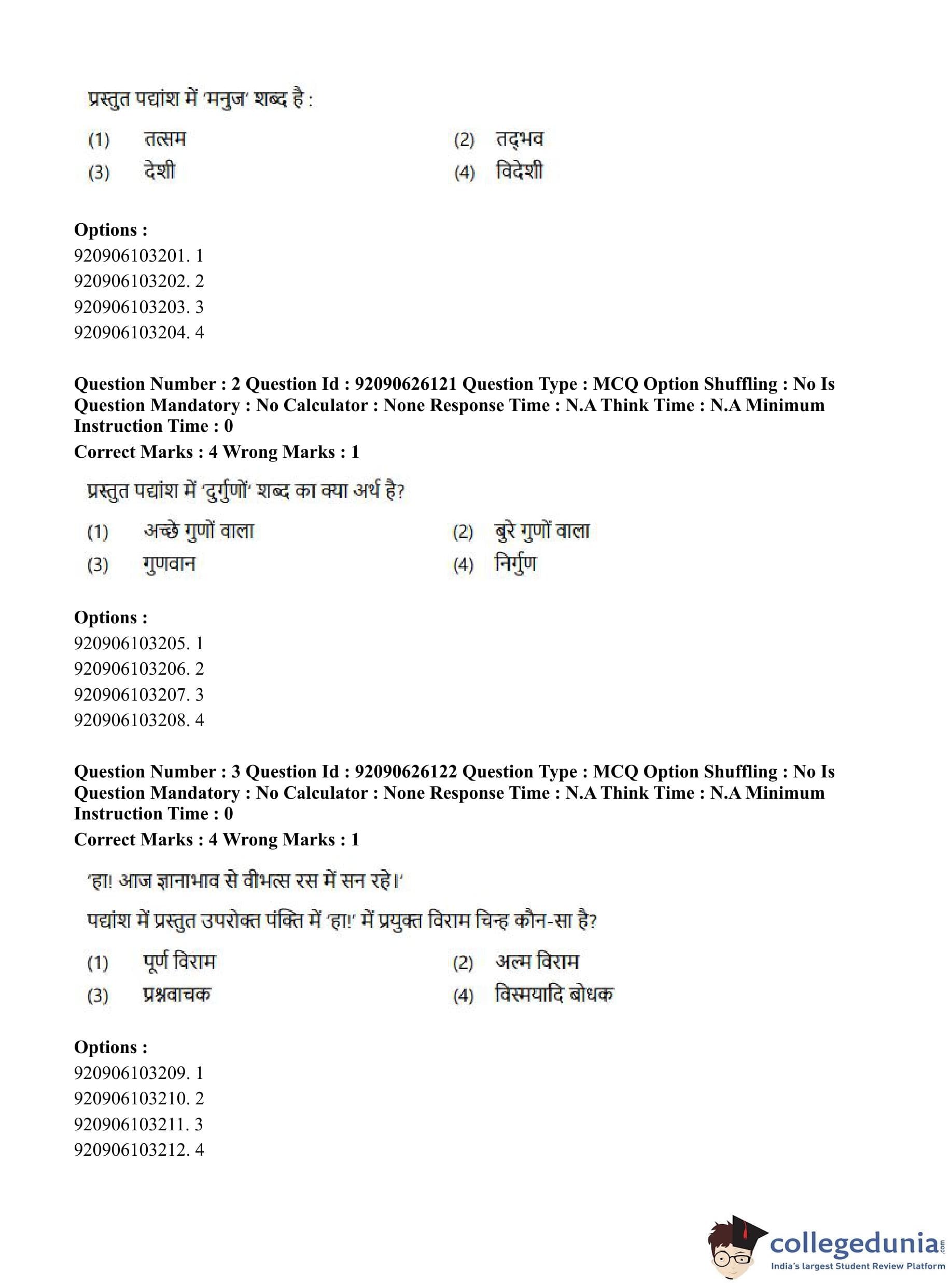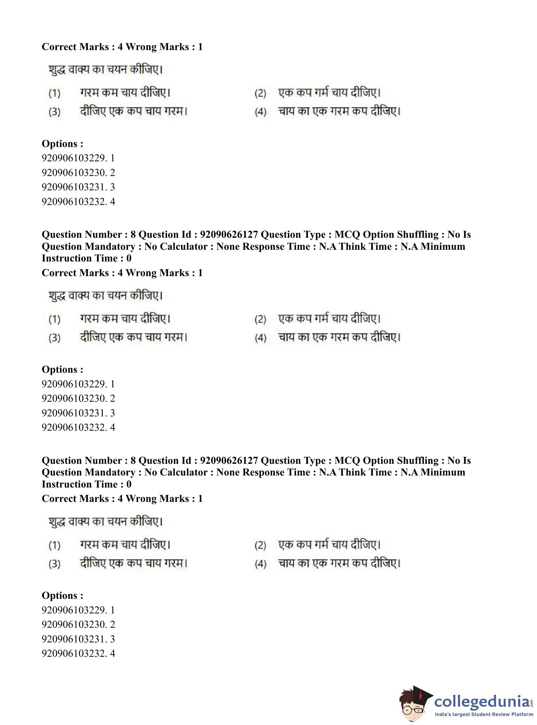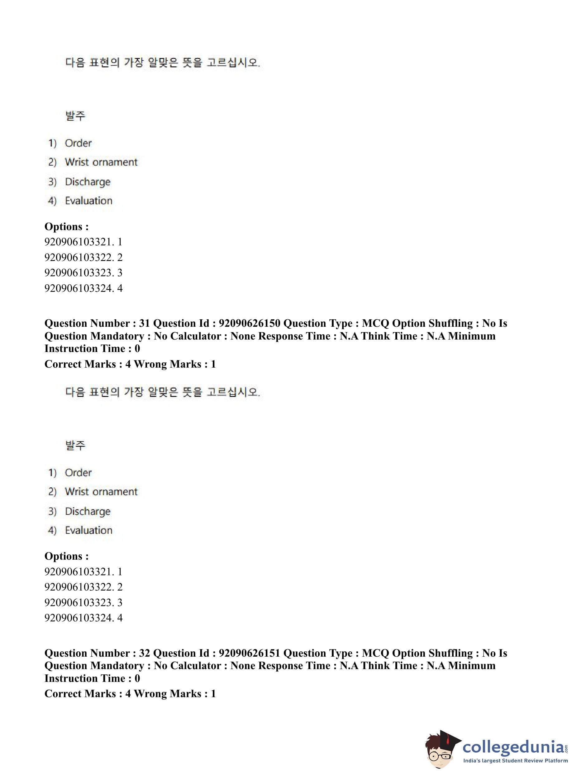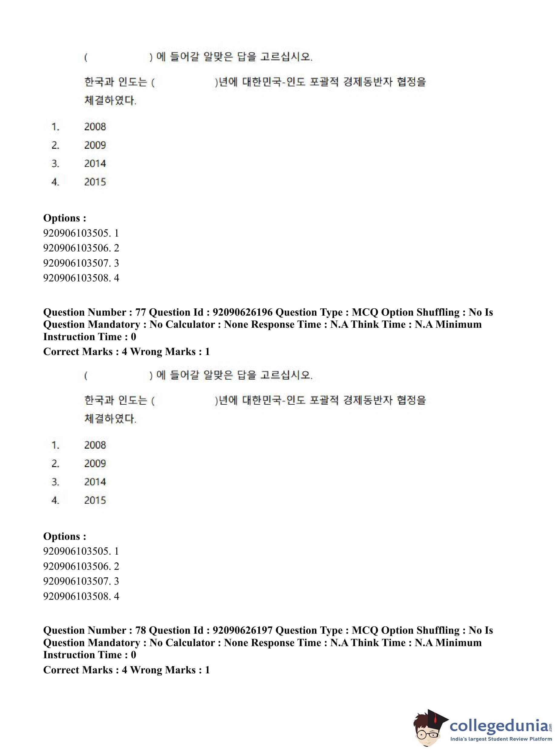 CUET PG 2023 Korean Question Paper in Hindi (June 26 - Shift 1)