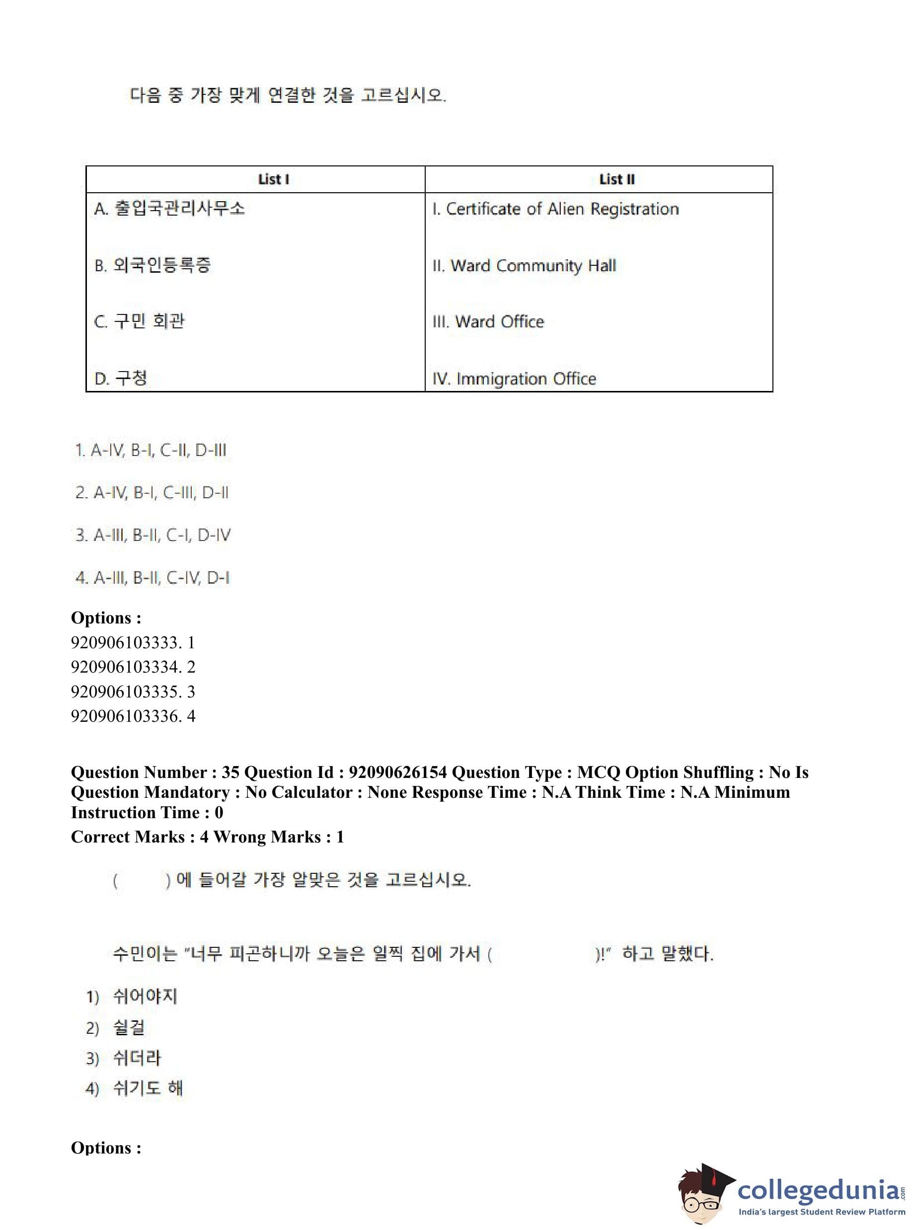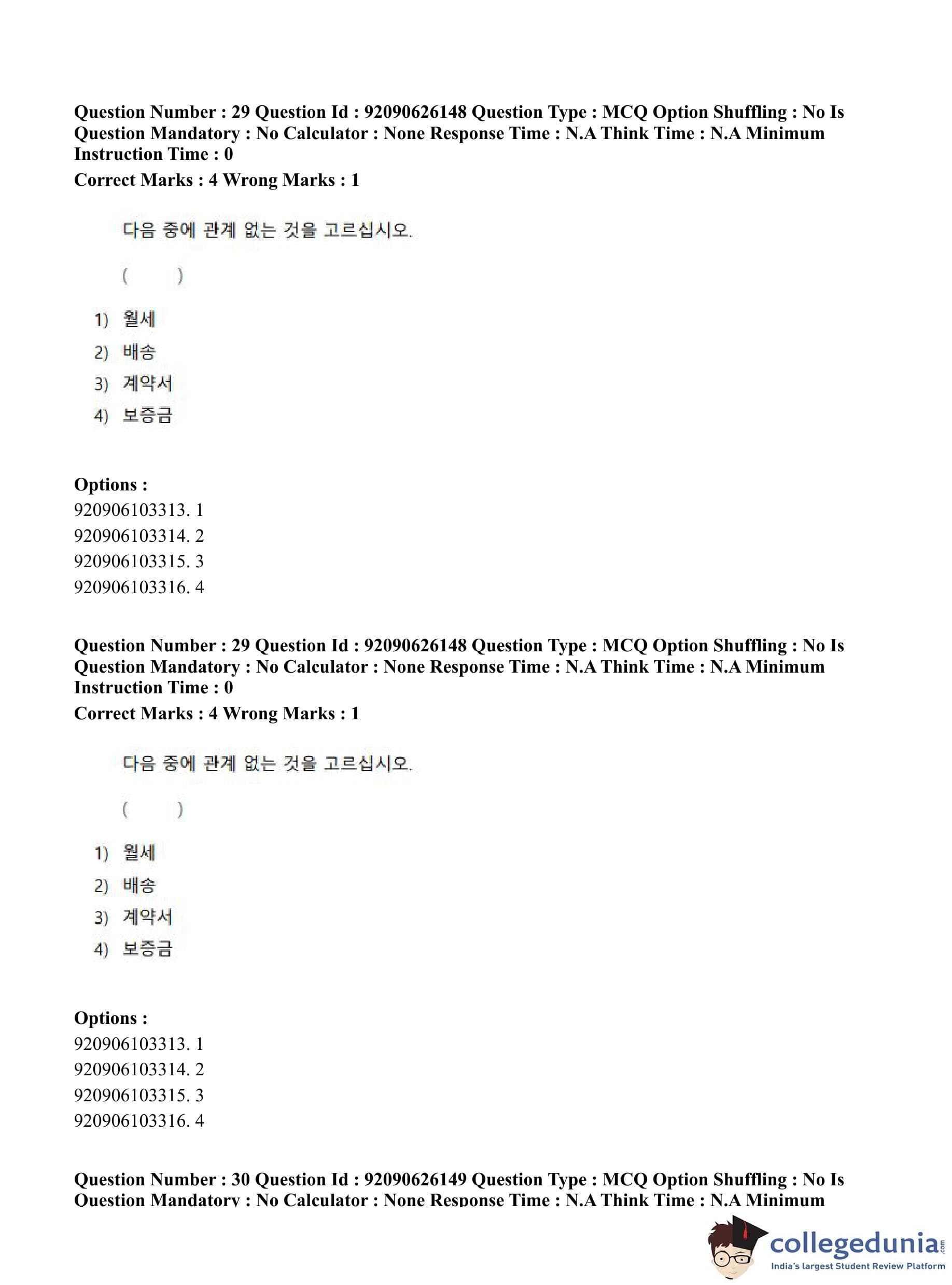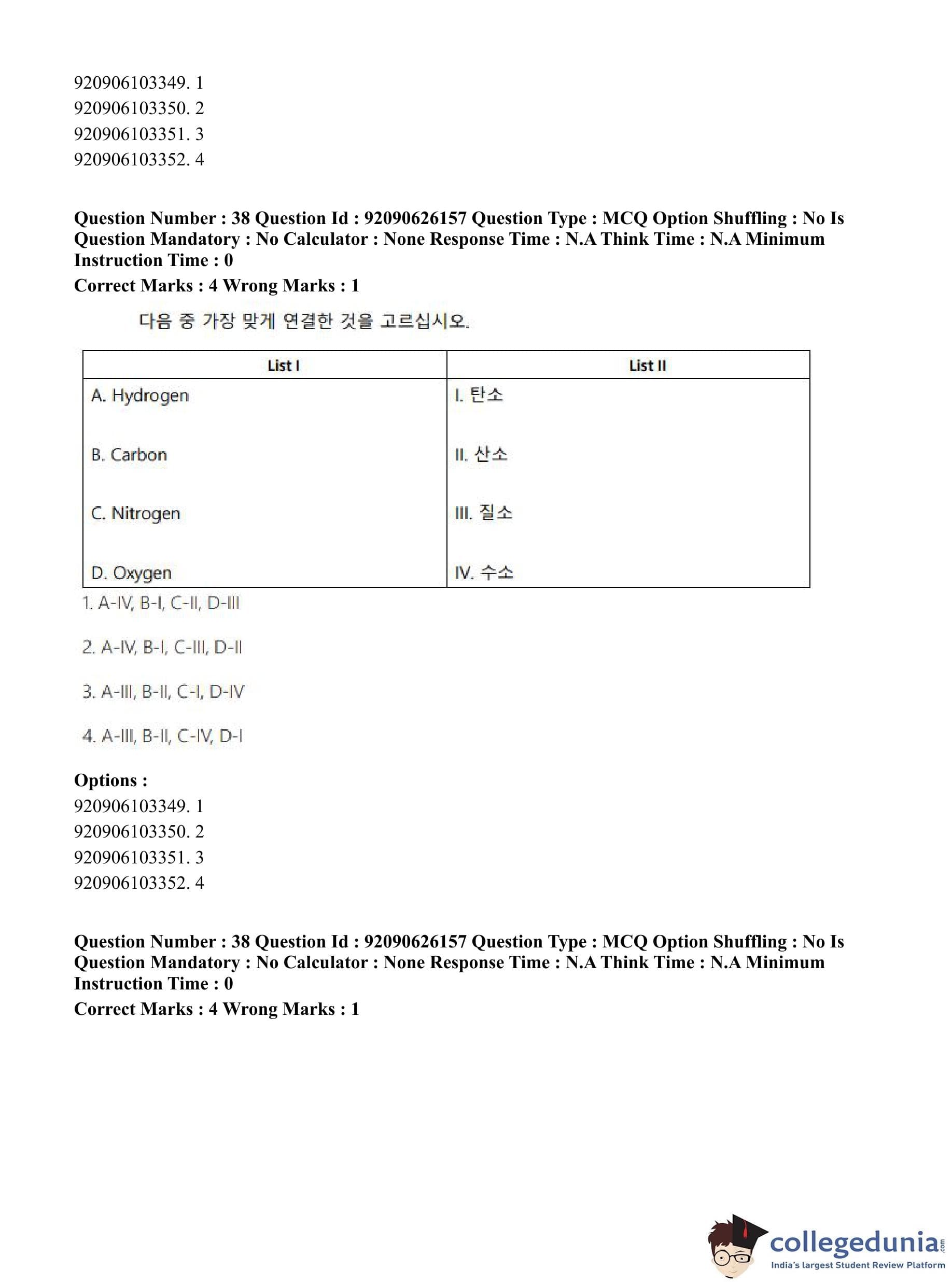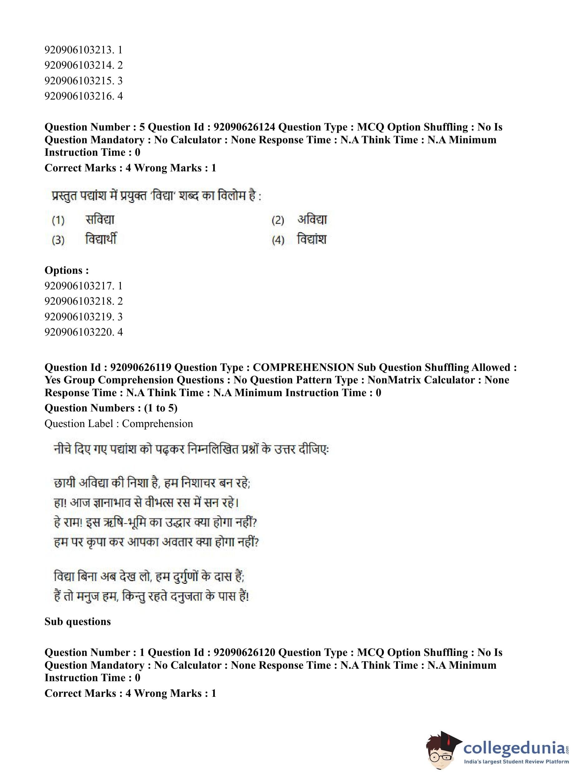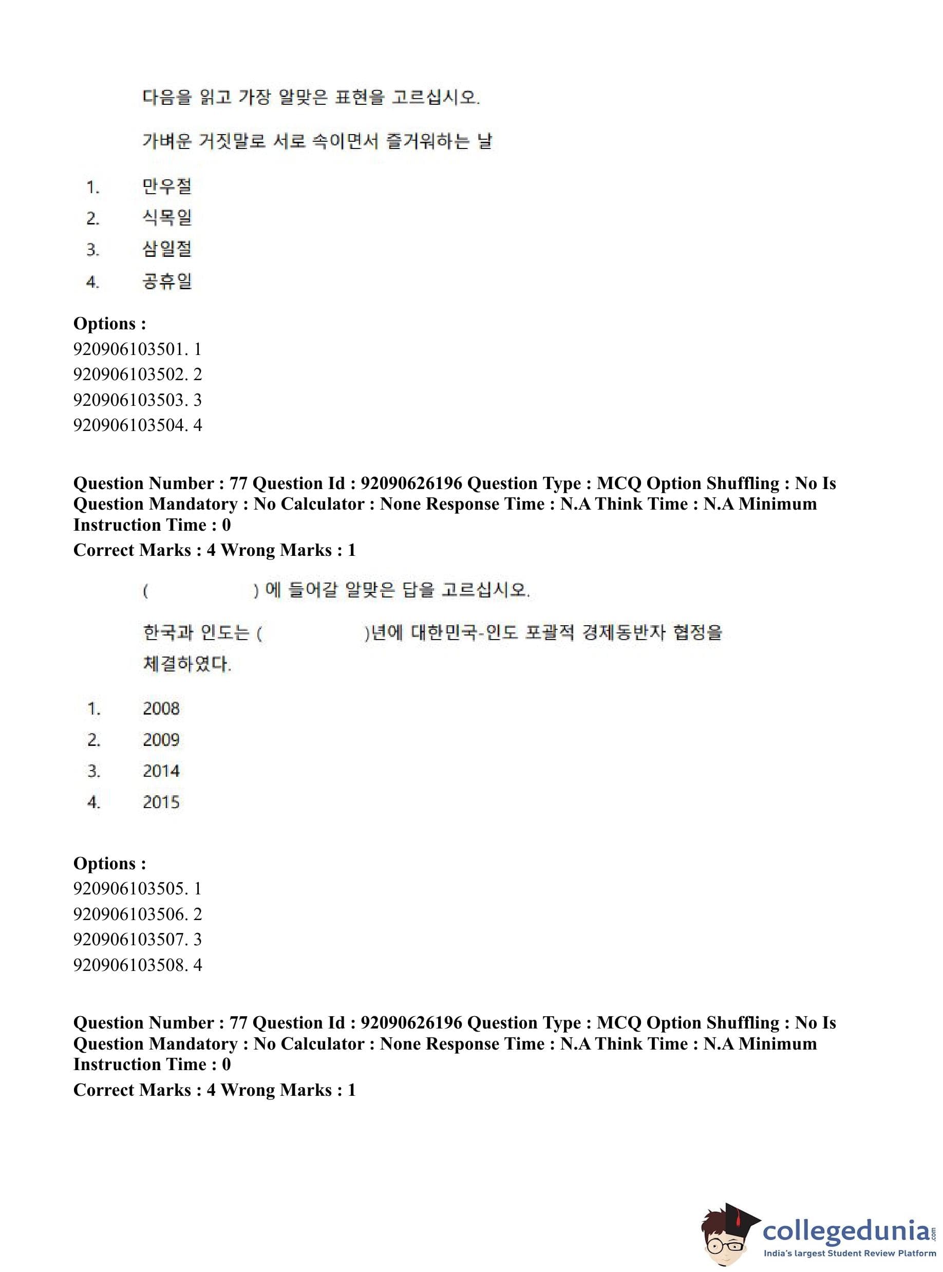 CUET PG 2023 Korean Question Paper in Hindi (June 26 - Shift 1)