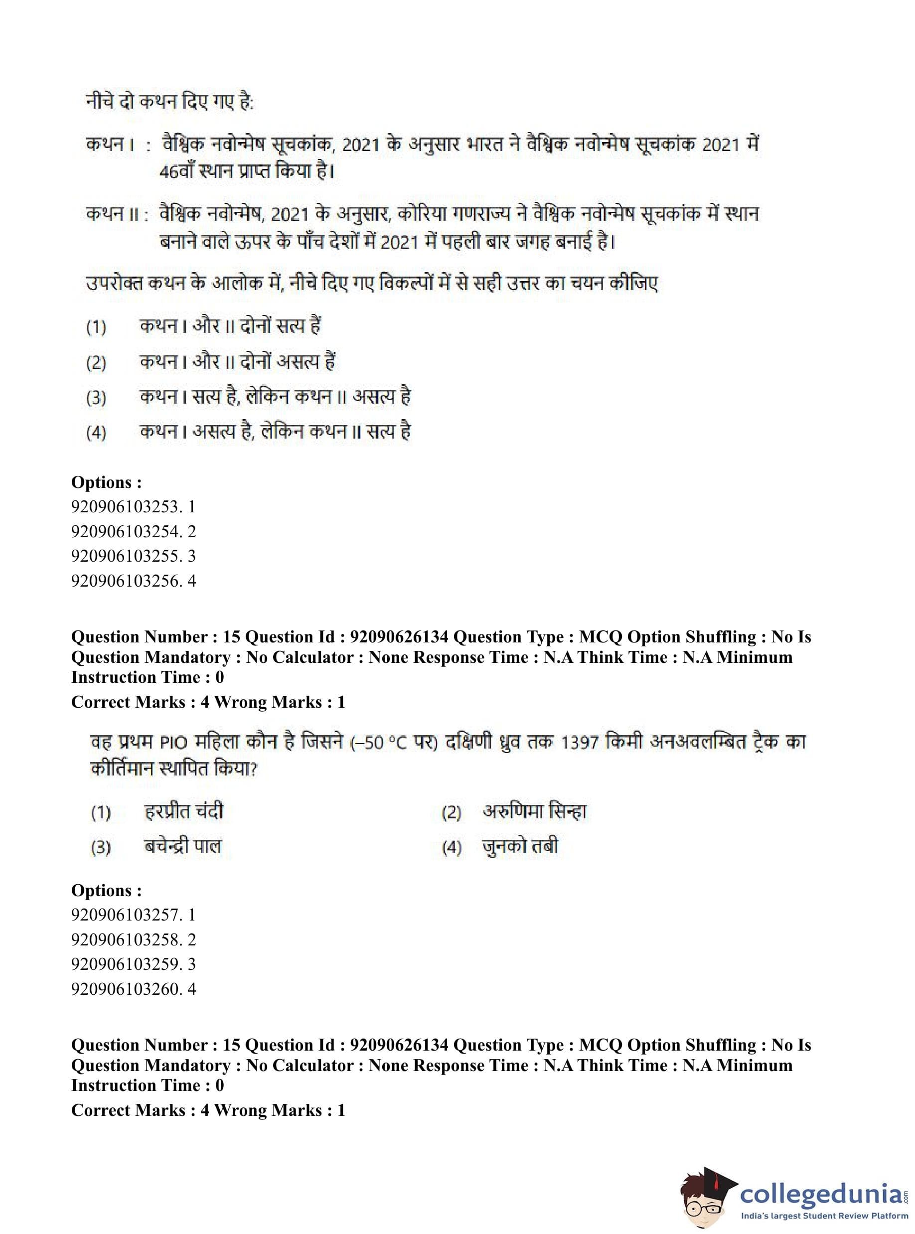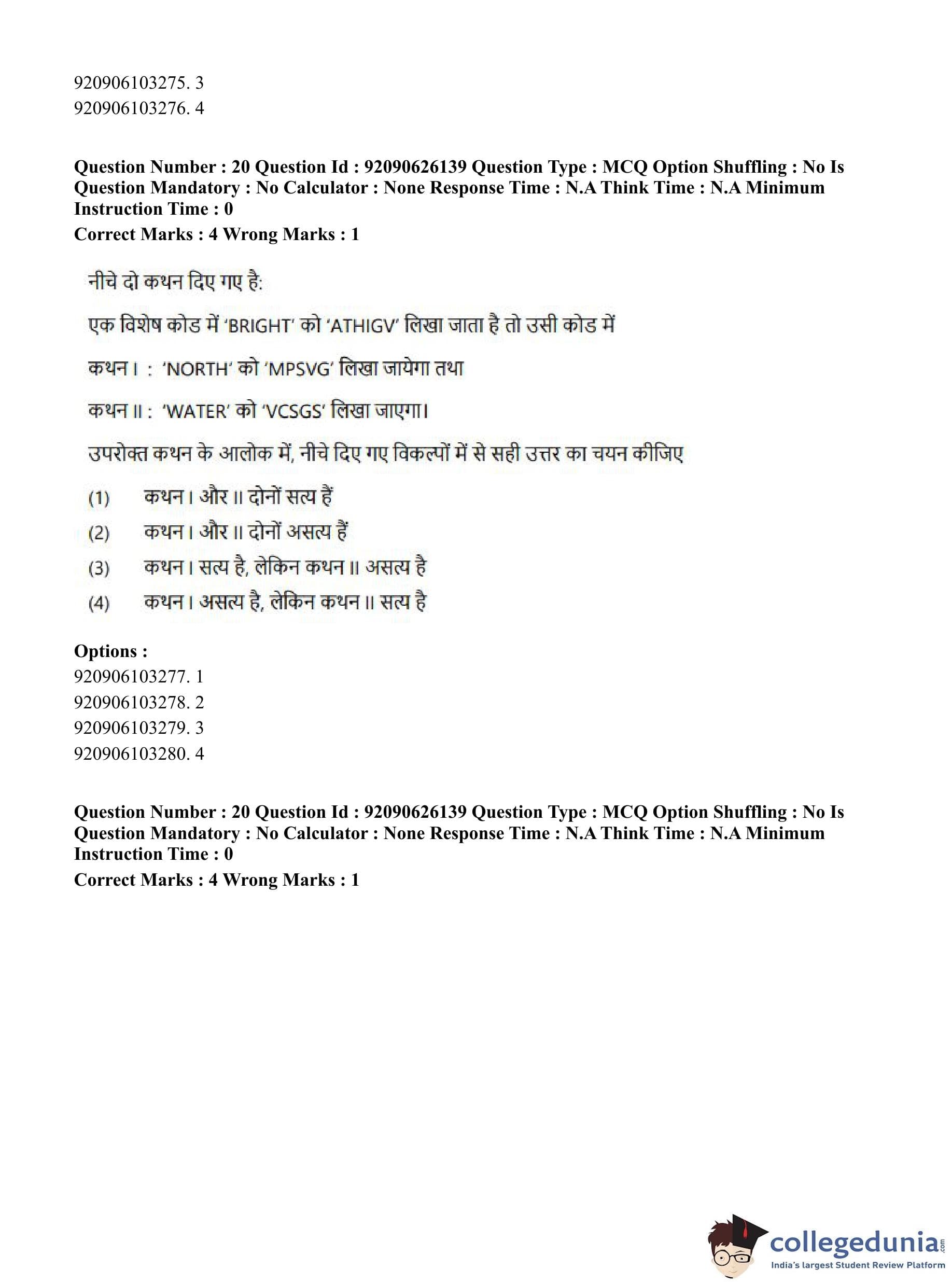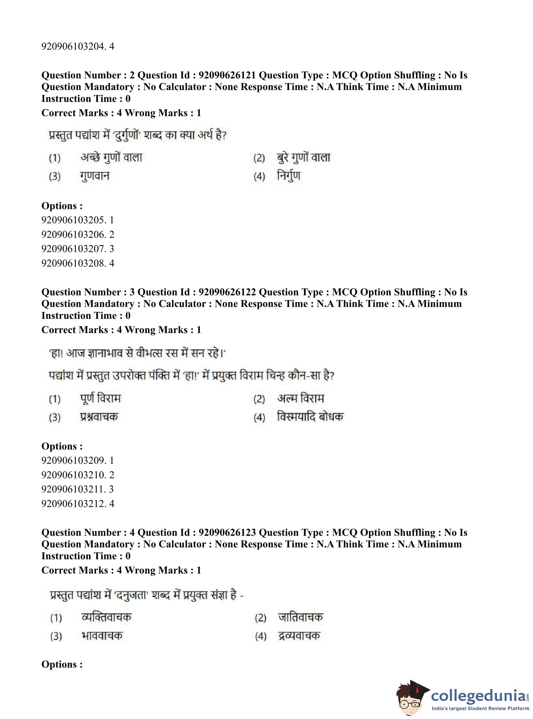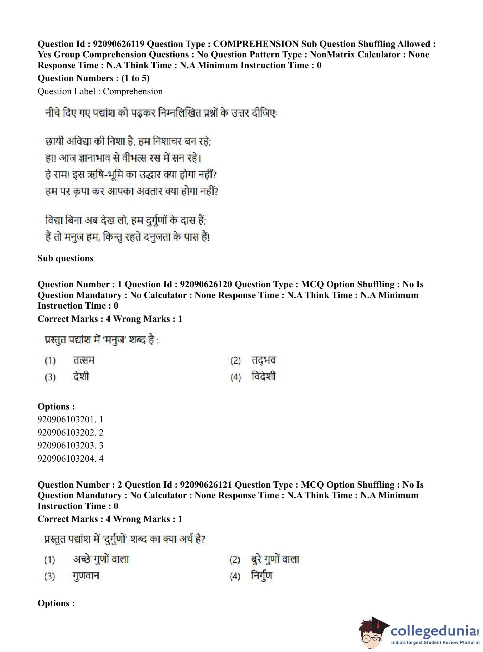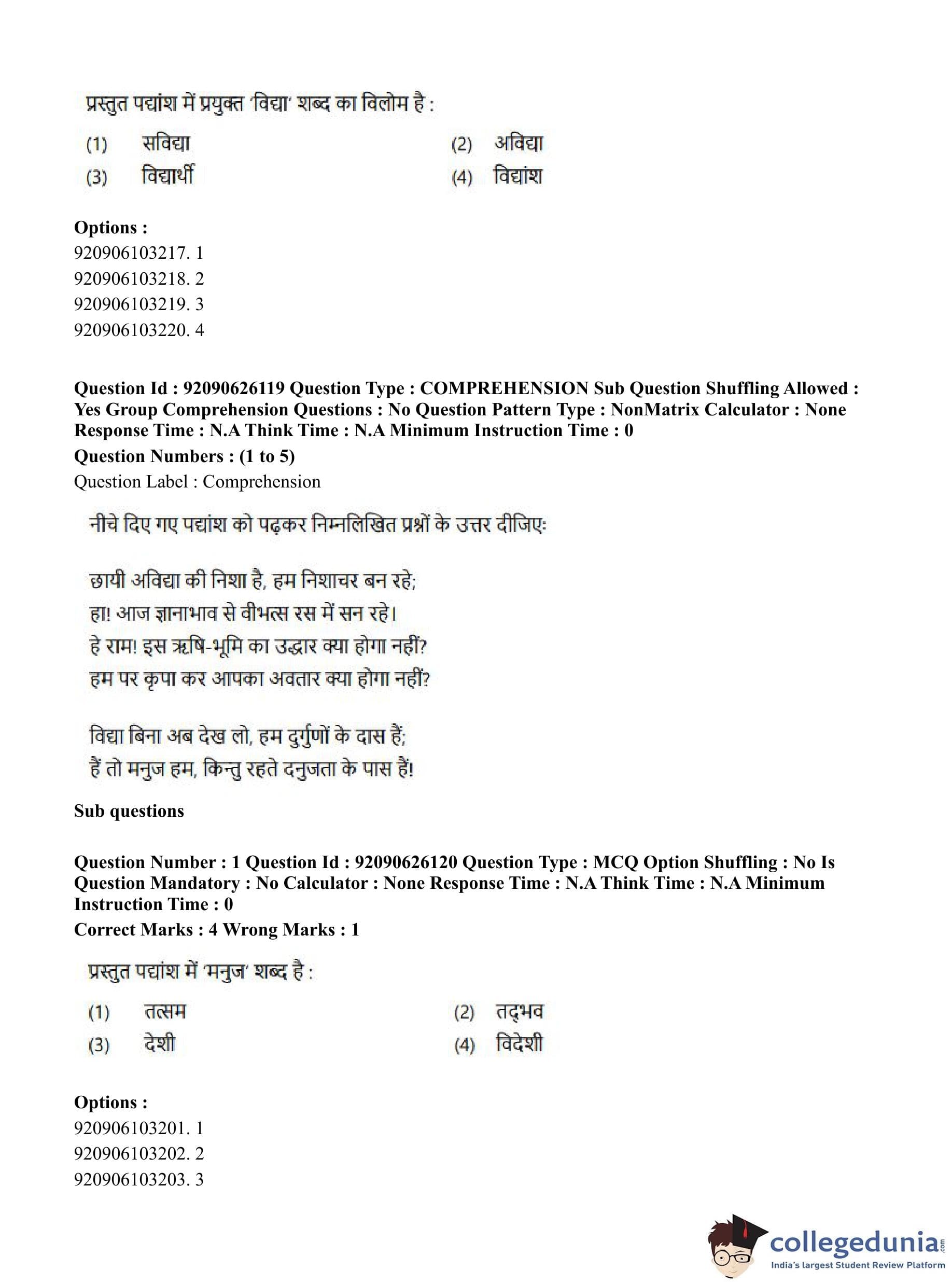 CUET PG 2023 Korean Question Paper in Hindi (June 26 - Shift 1)