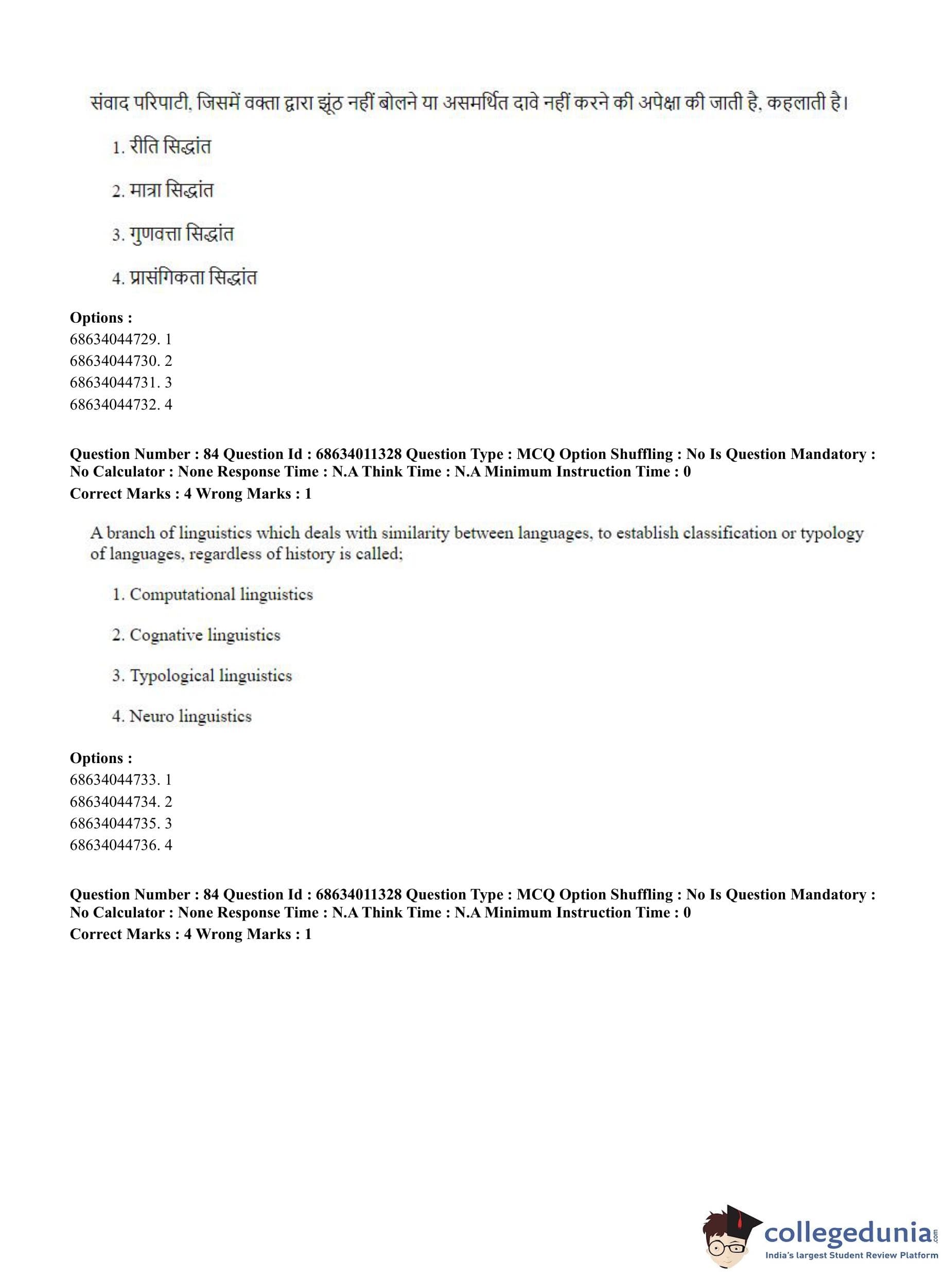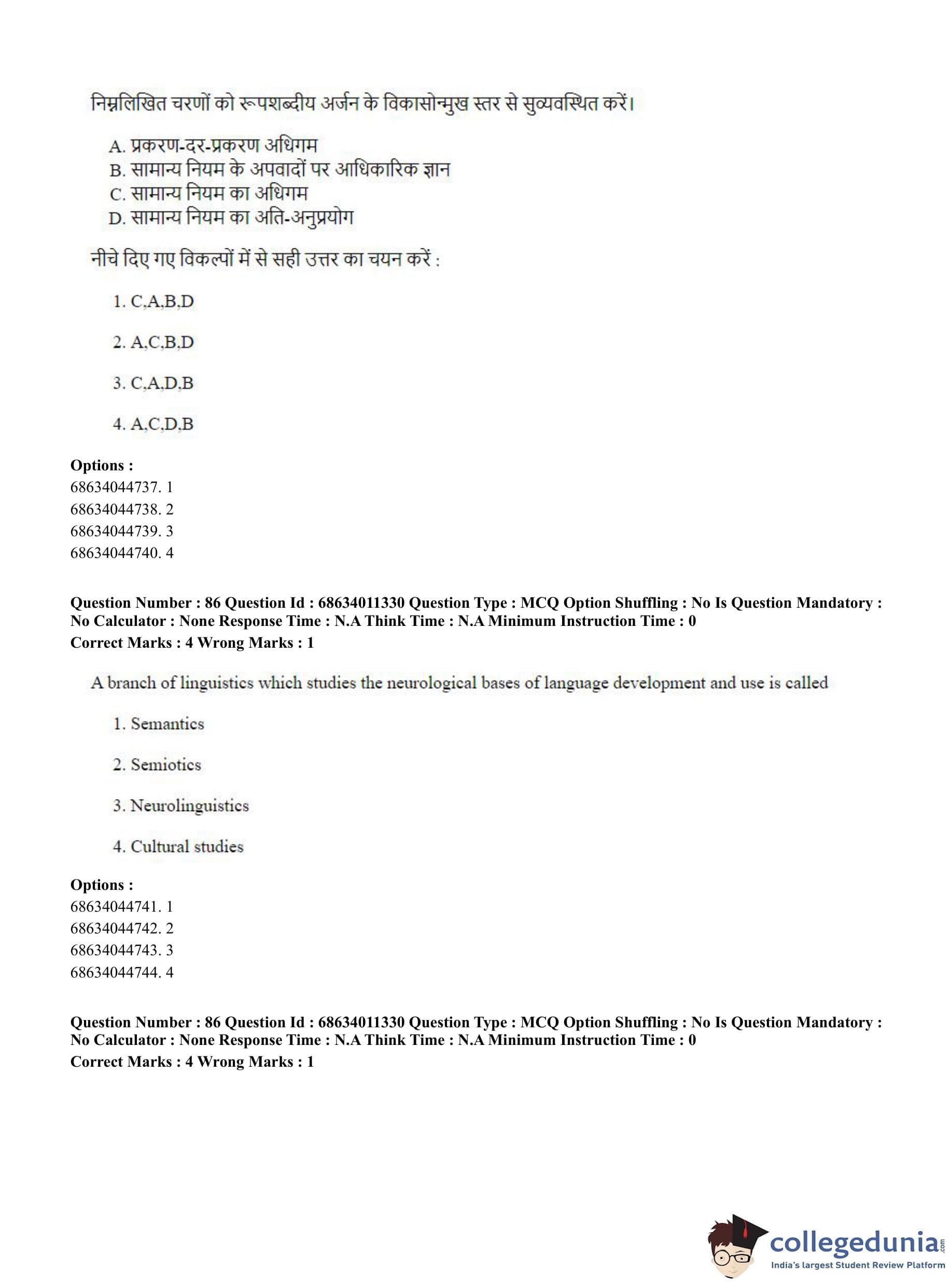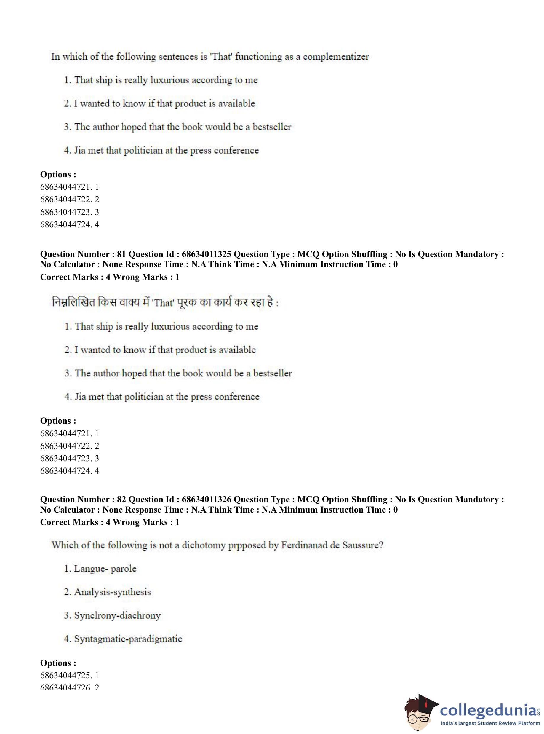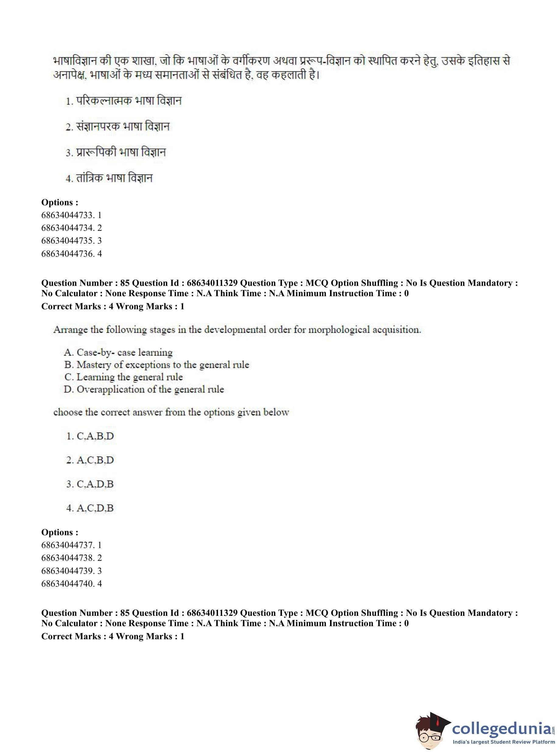CUET PG 2023 Linguistics Question Paper in English (June 9 - Shift 2)