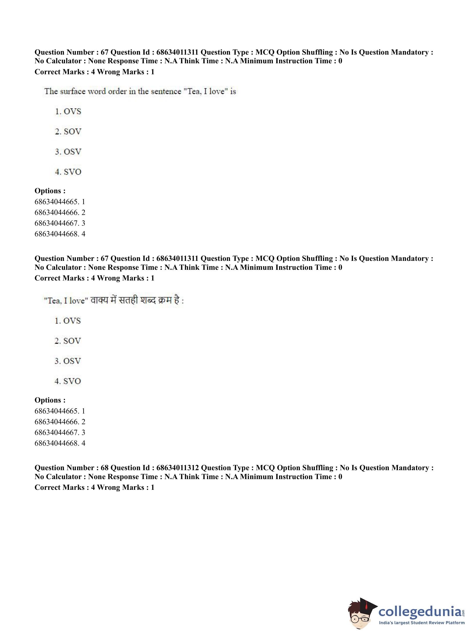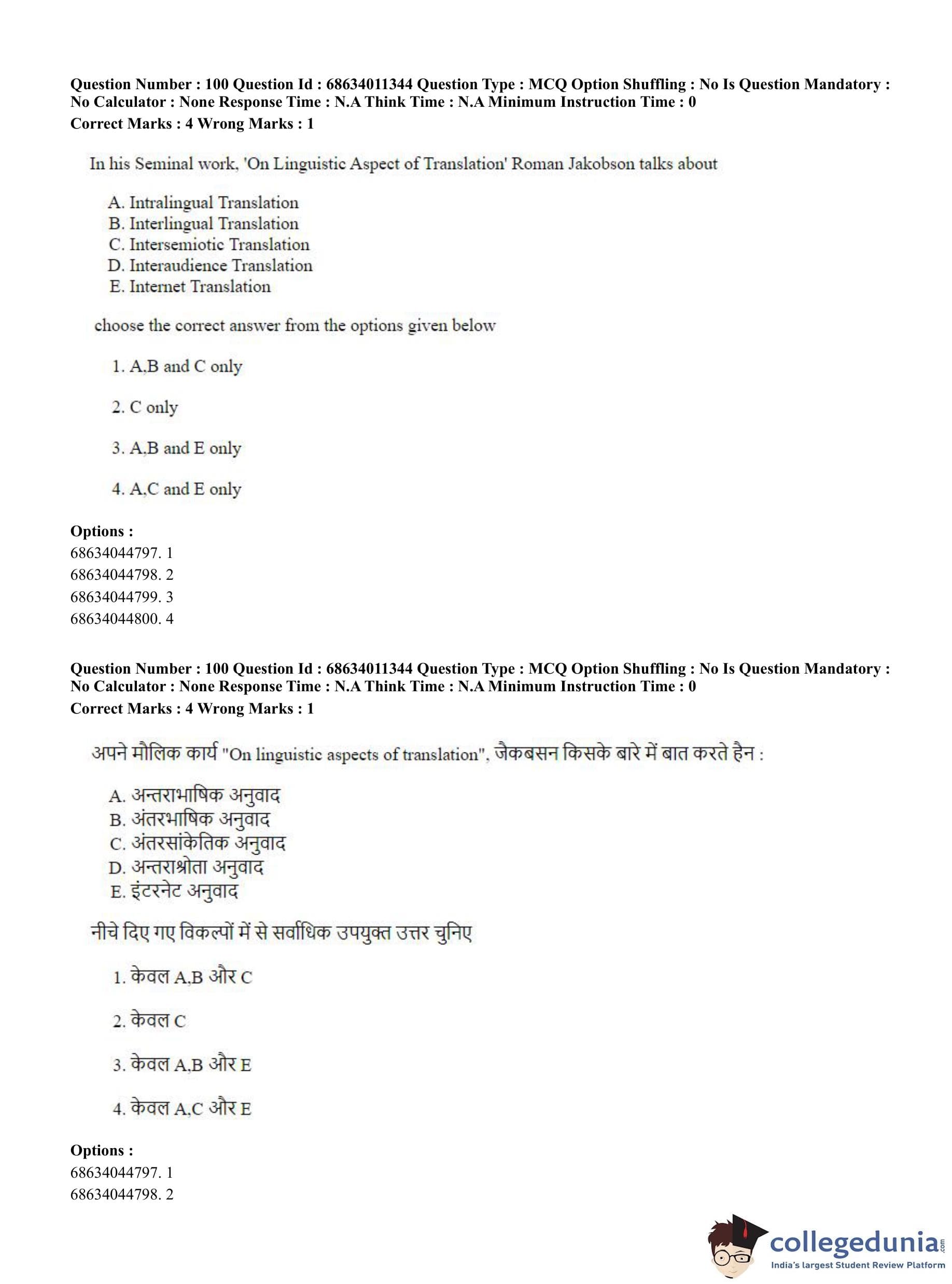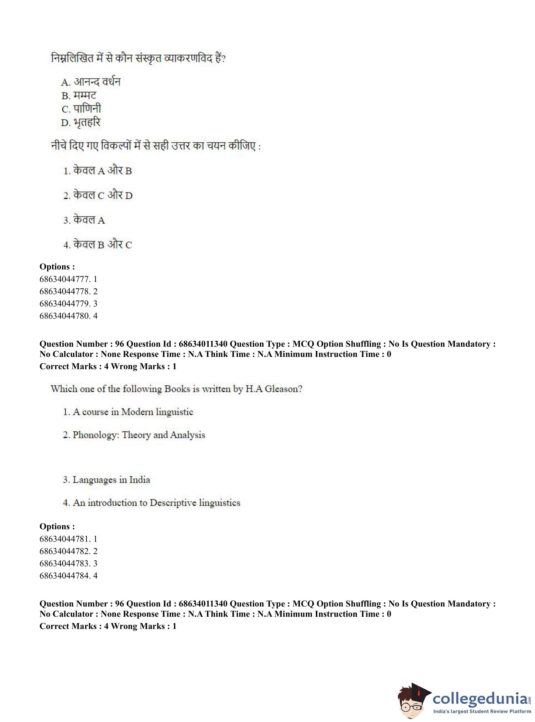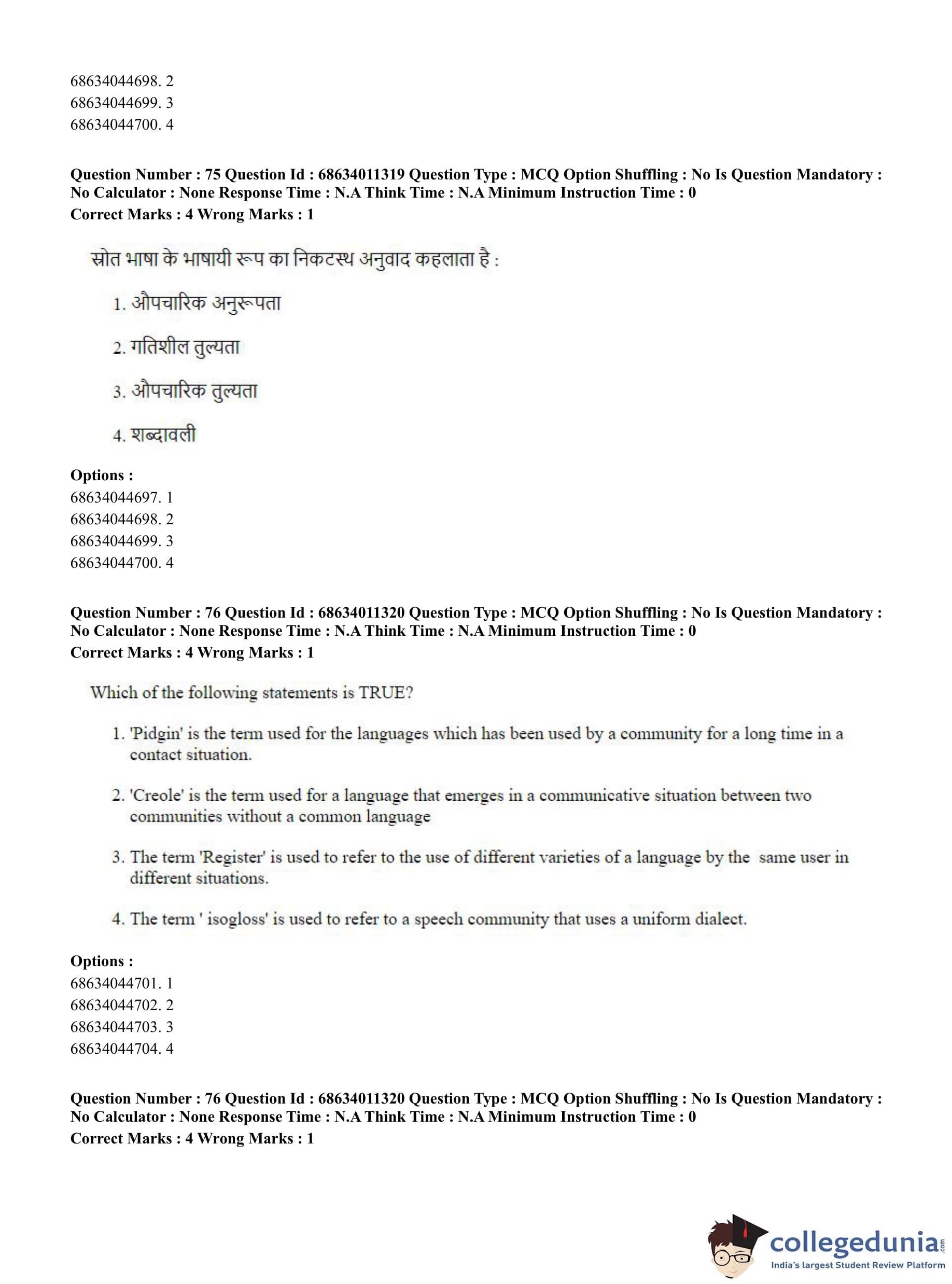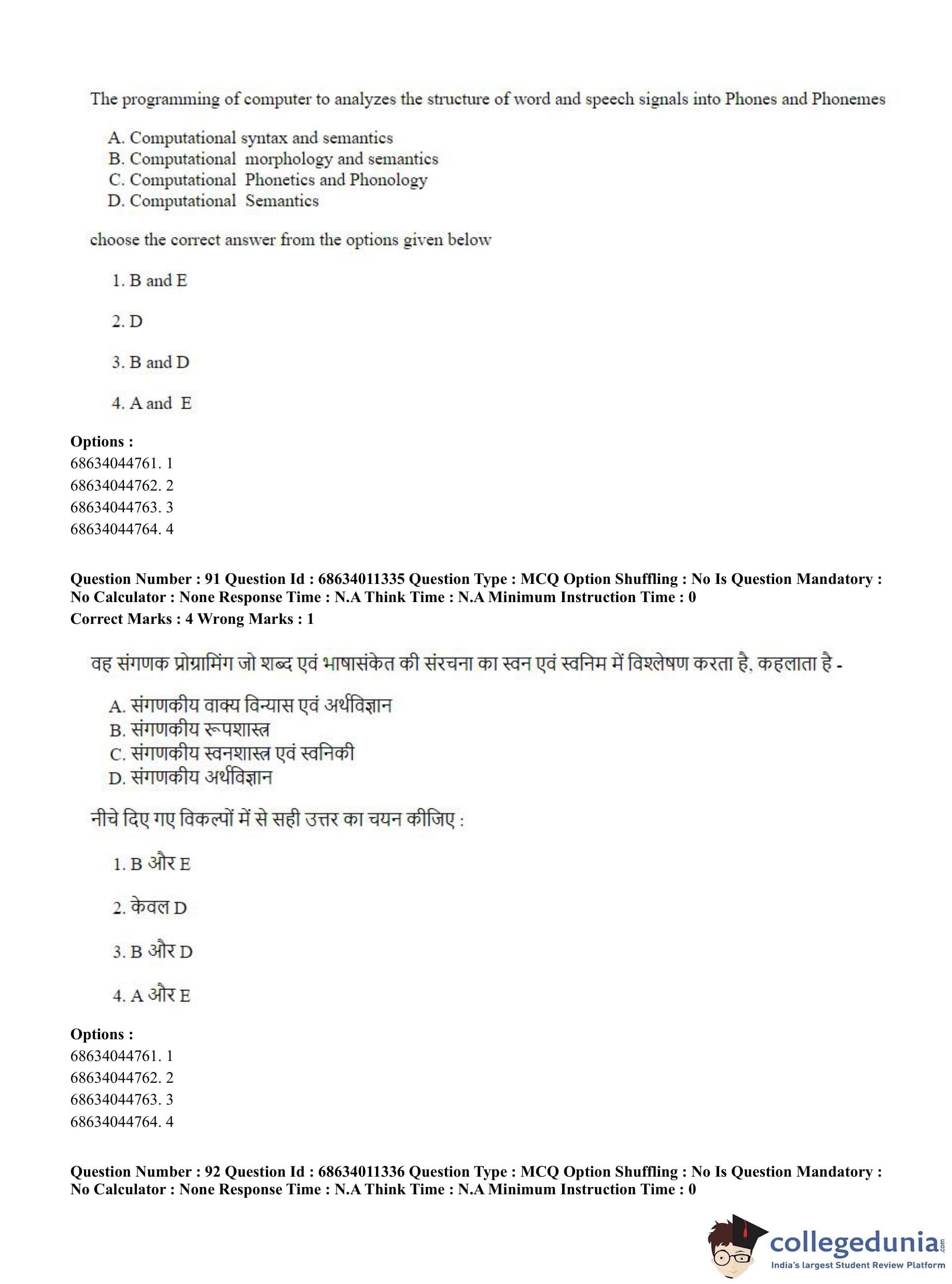 CUET PG 2023 Linguistics Question Paper in English (June 9 - Shift 2)