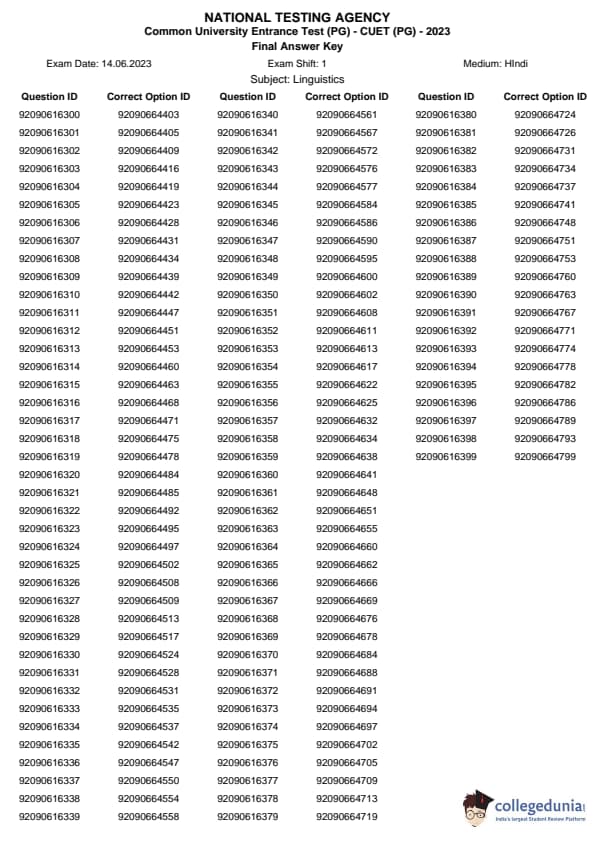 | CUET PG Linguistics Question Paper 2023 PDF | CUET PG Linguistics Answer Key 2023 PDF |