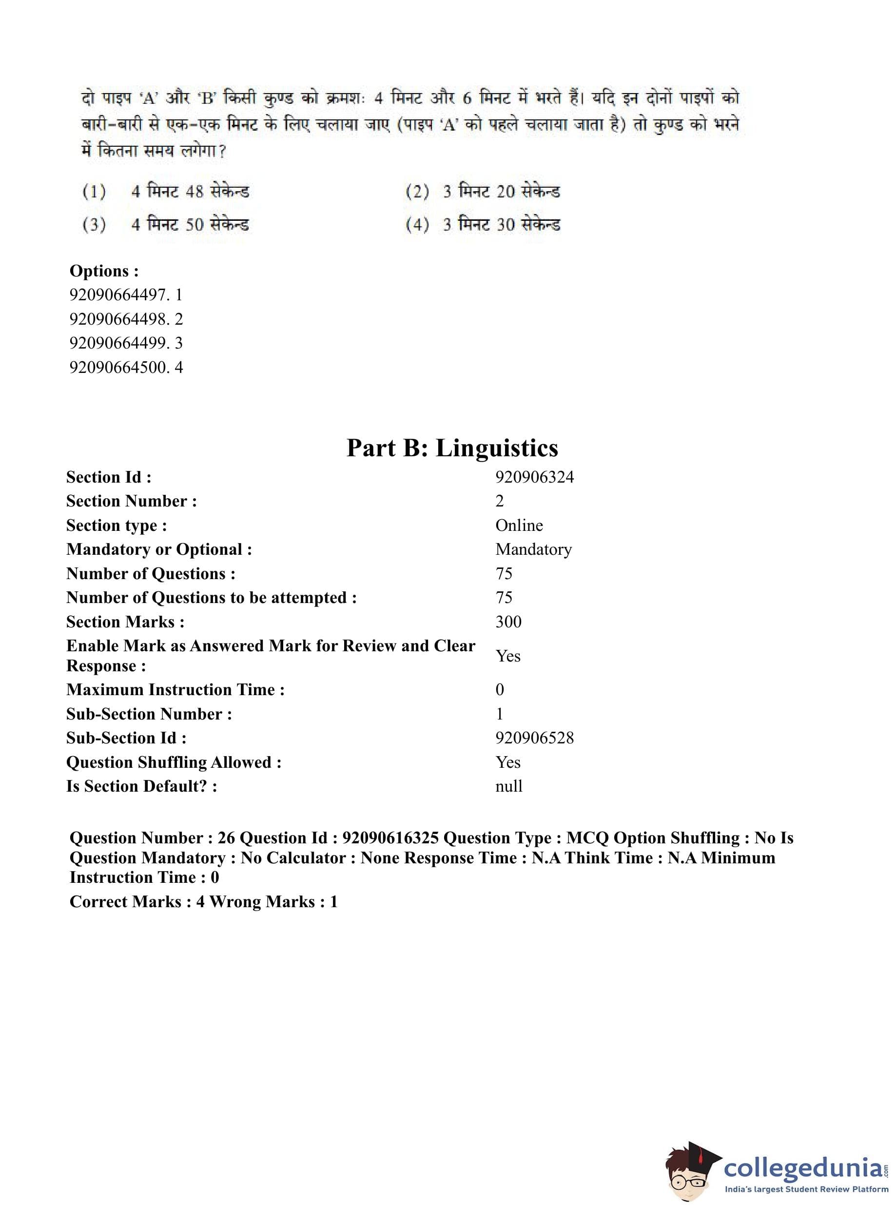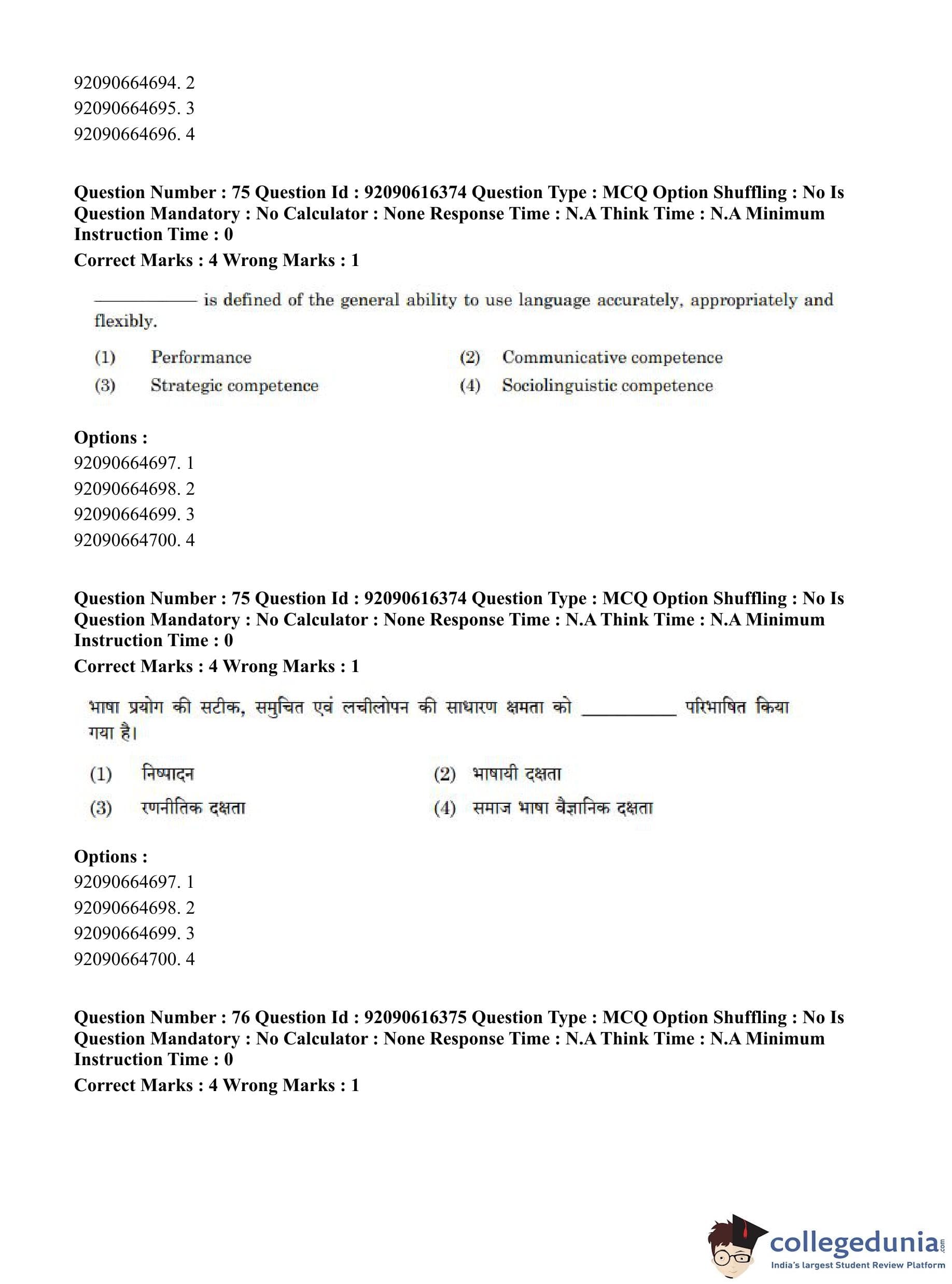 CUET PG 2023 Linguistics Question Paper with Answer Key PDF in Hindi is available for download here. The exam was conducted by National Testing Agency (NTA) on June 14, 2023 in Shift 1. The question paper comprised a total of 100 questions divided into 2 sections.