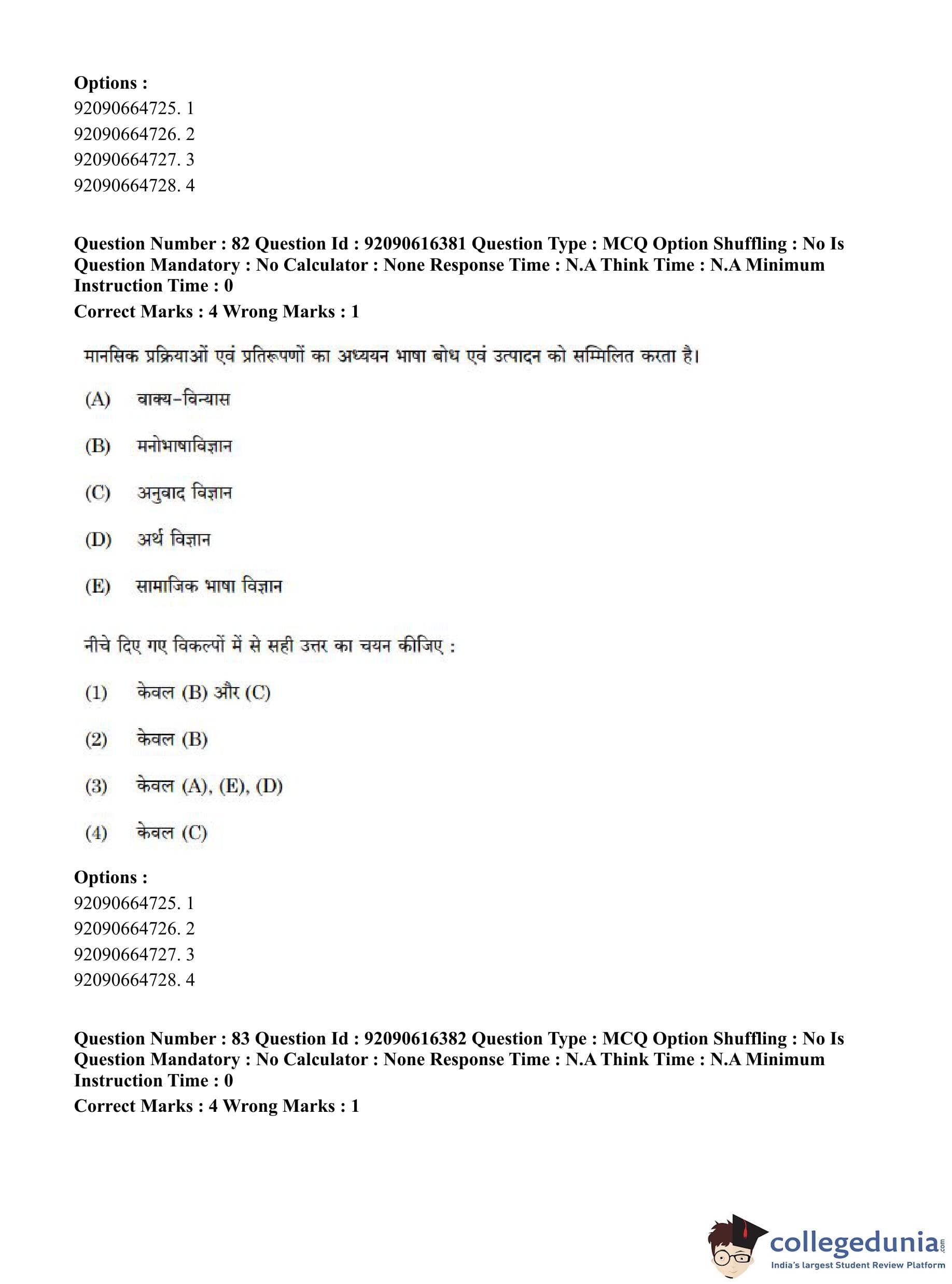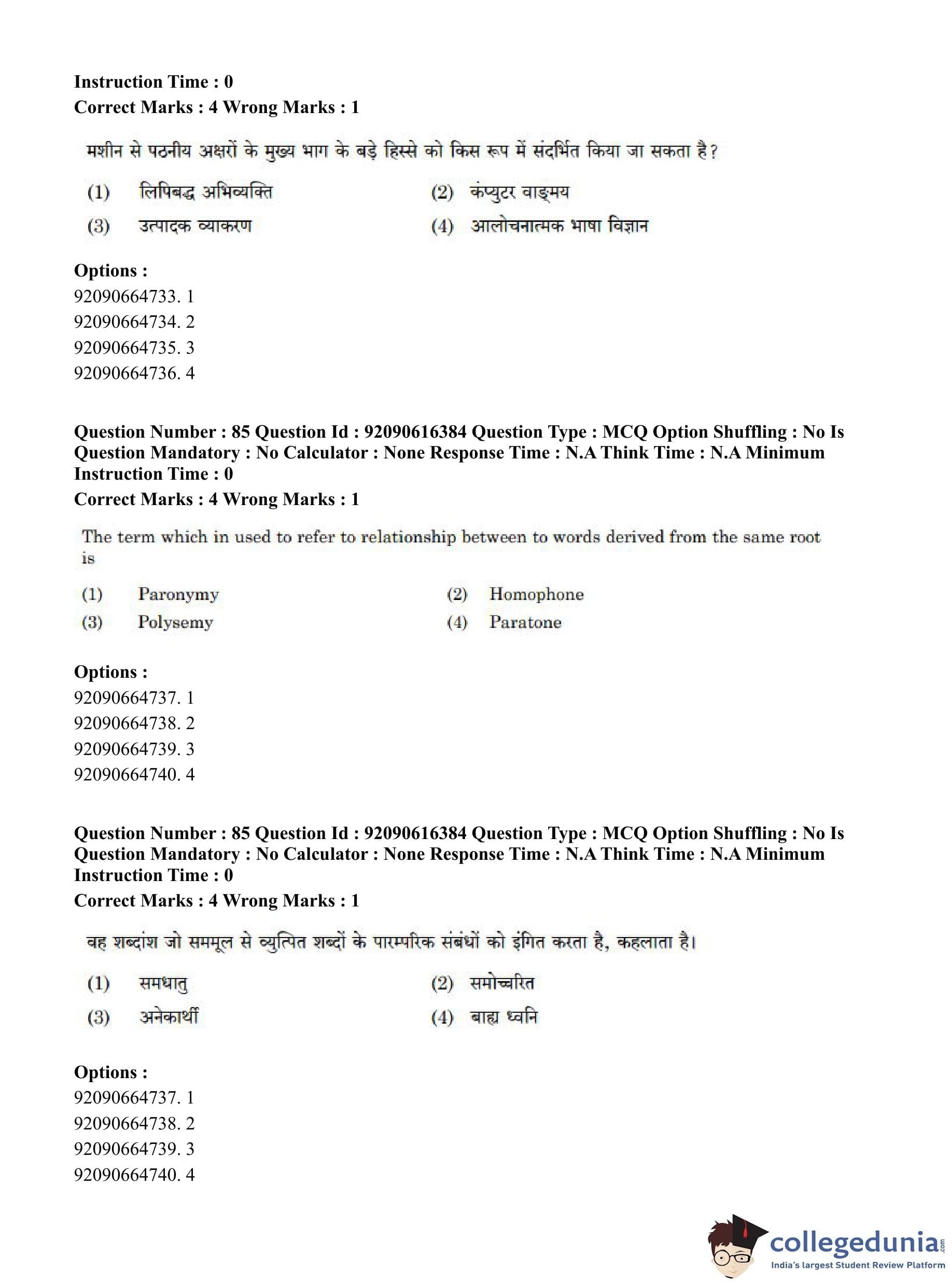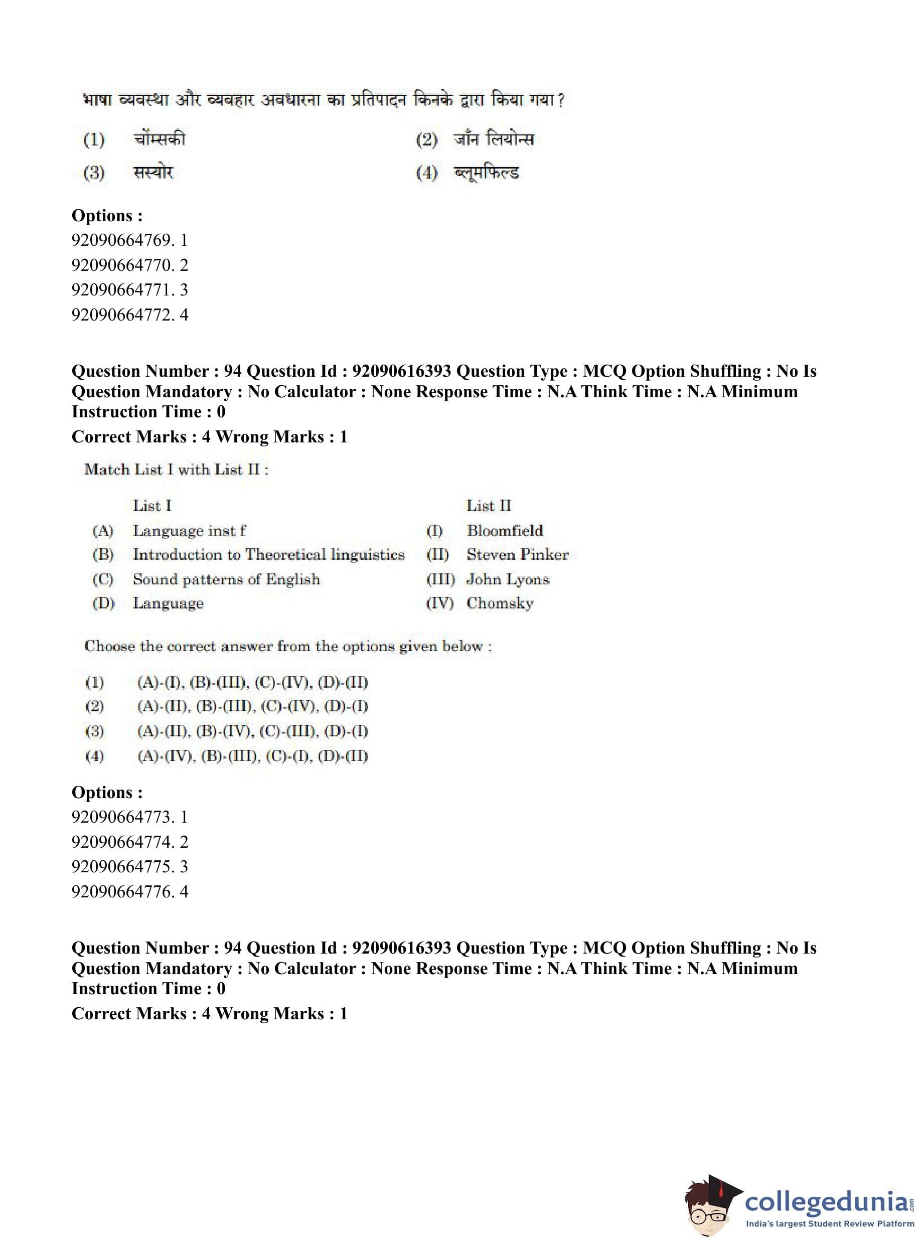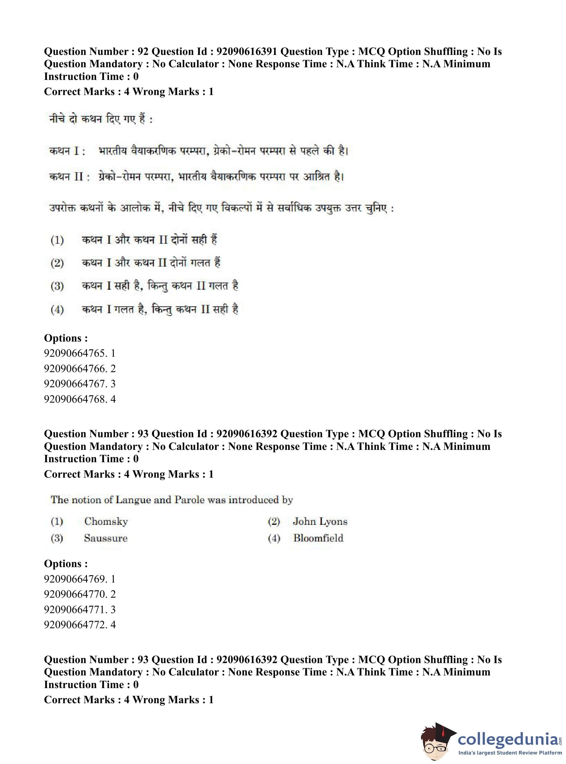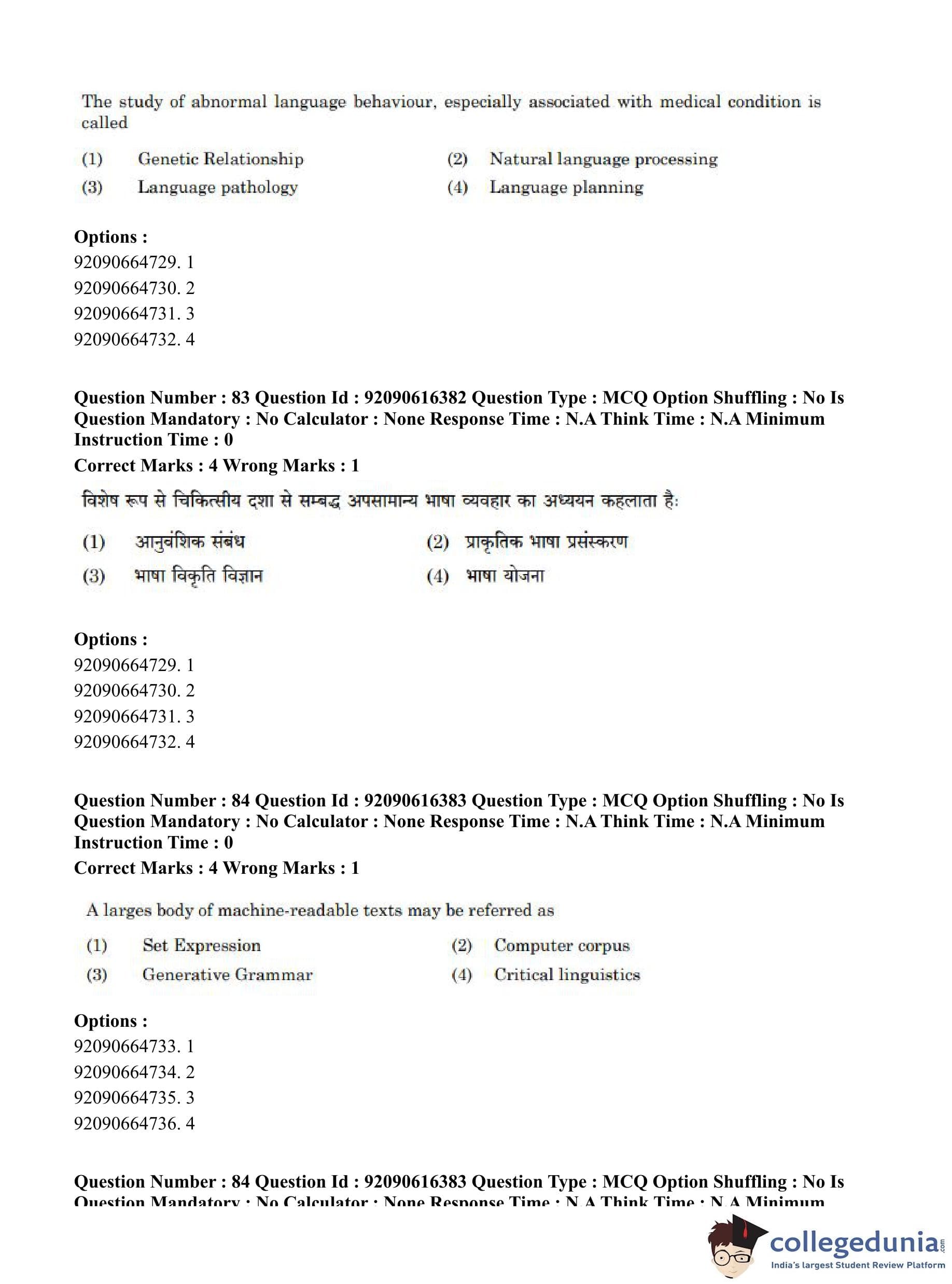 CUET PG 2023 Linguistics Question Paper in Hindi (June 14 - Shift 1)