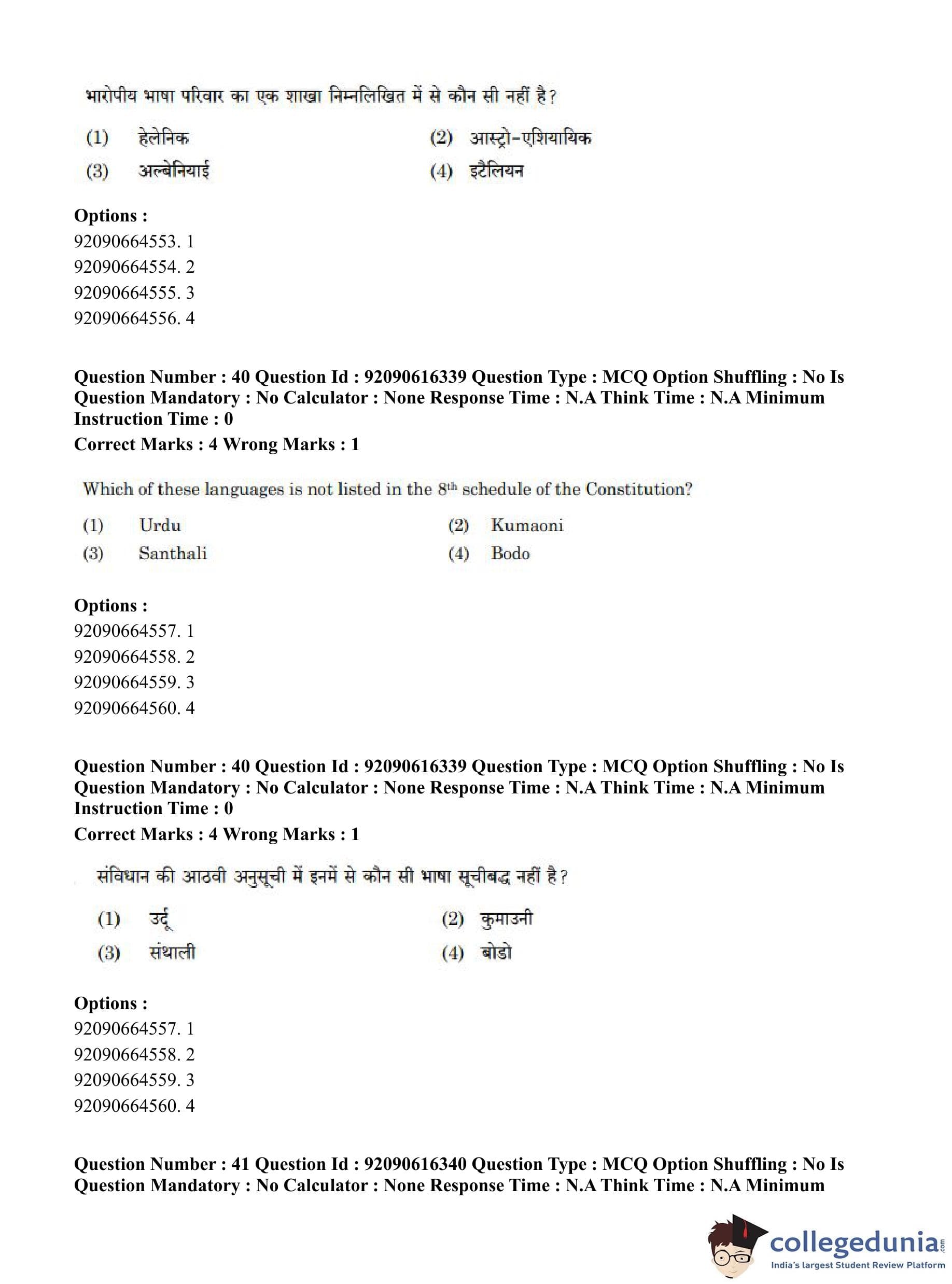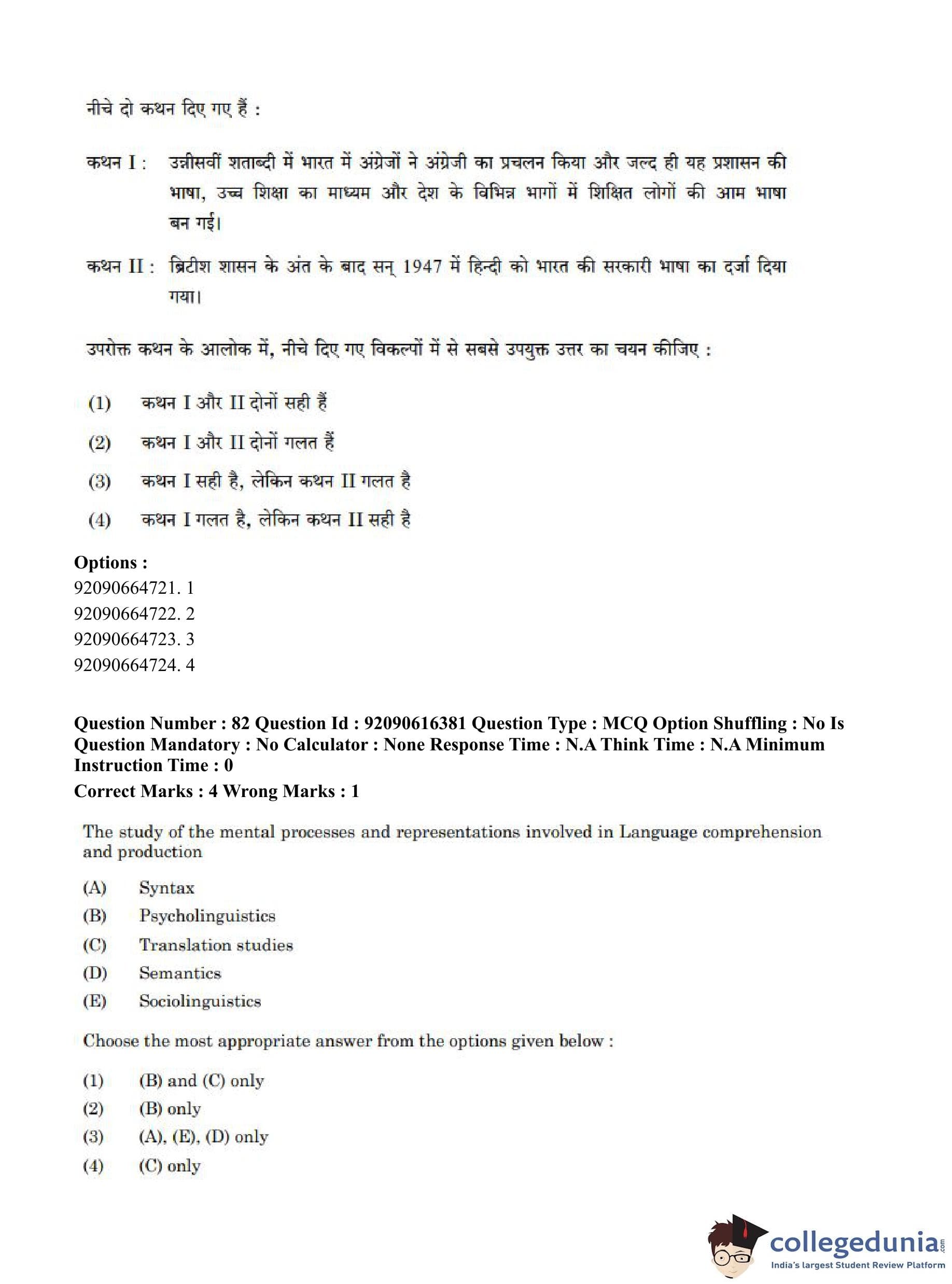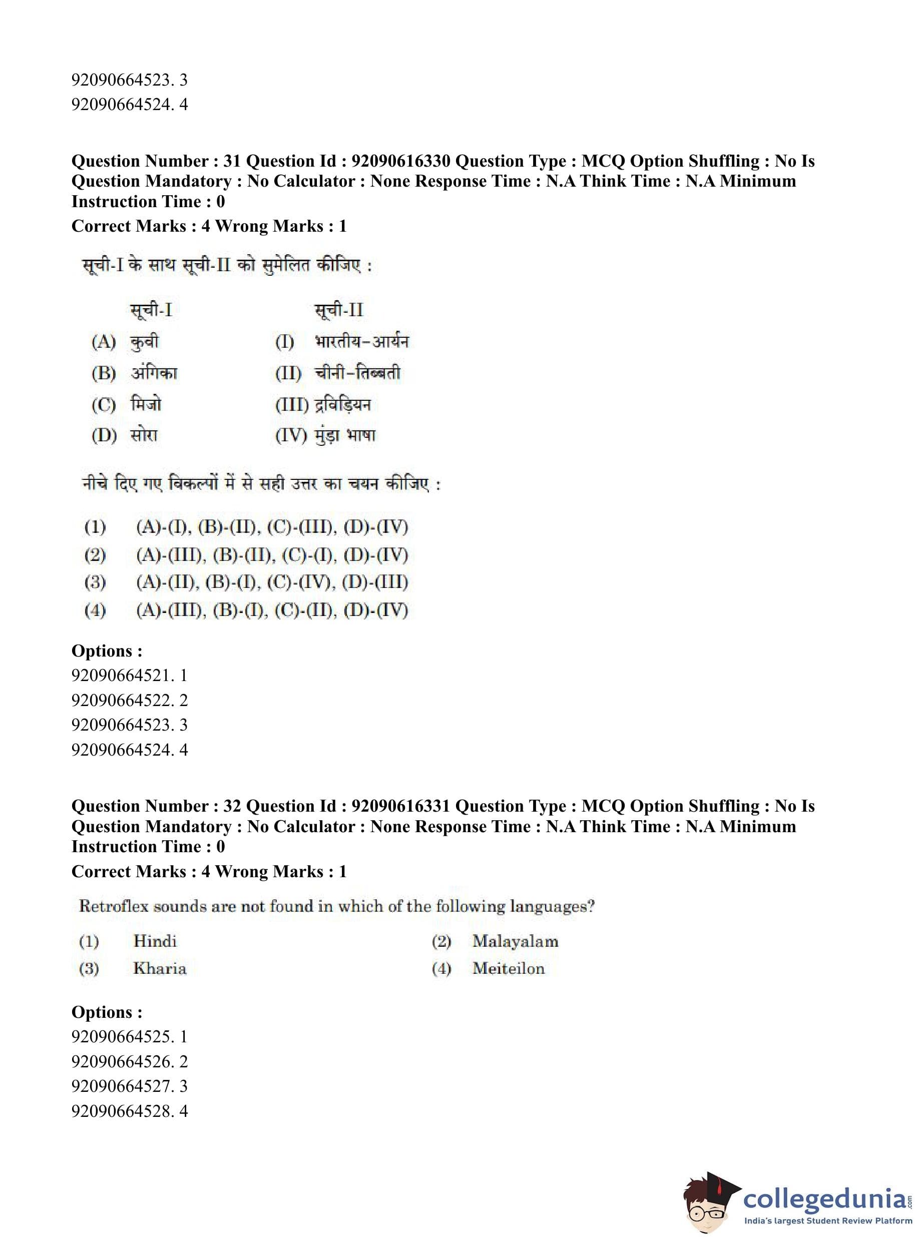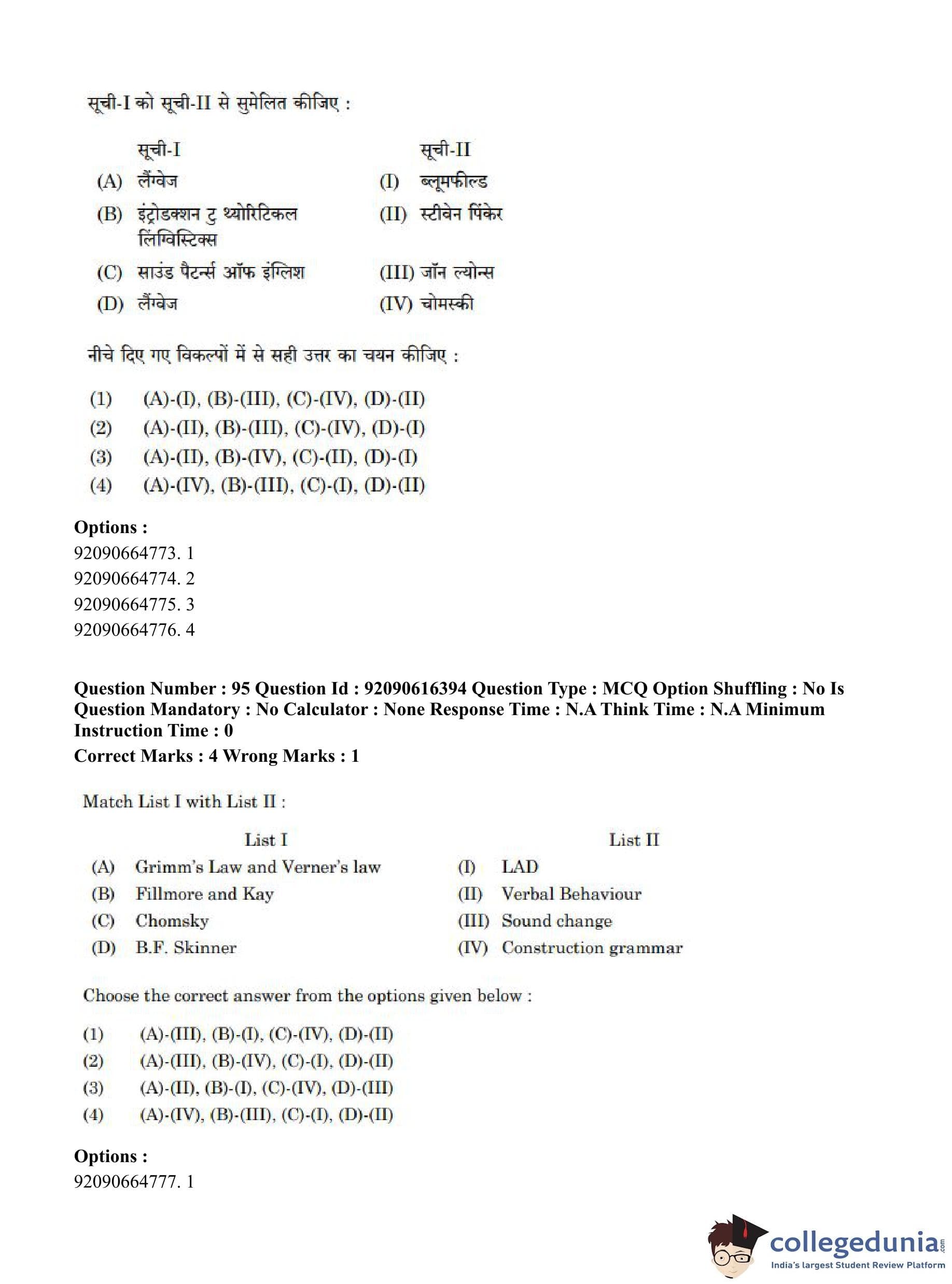 CUET PG 2023 Linguistics Question Paper in Hindi (June 14 - Shift 1)