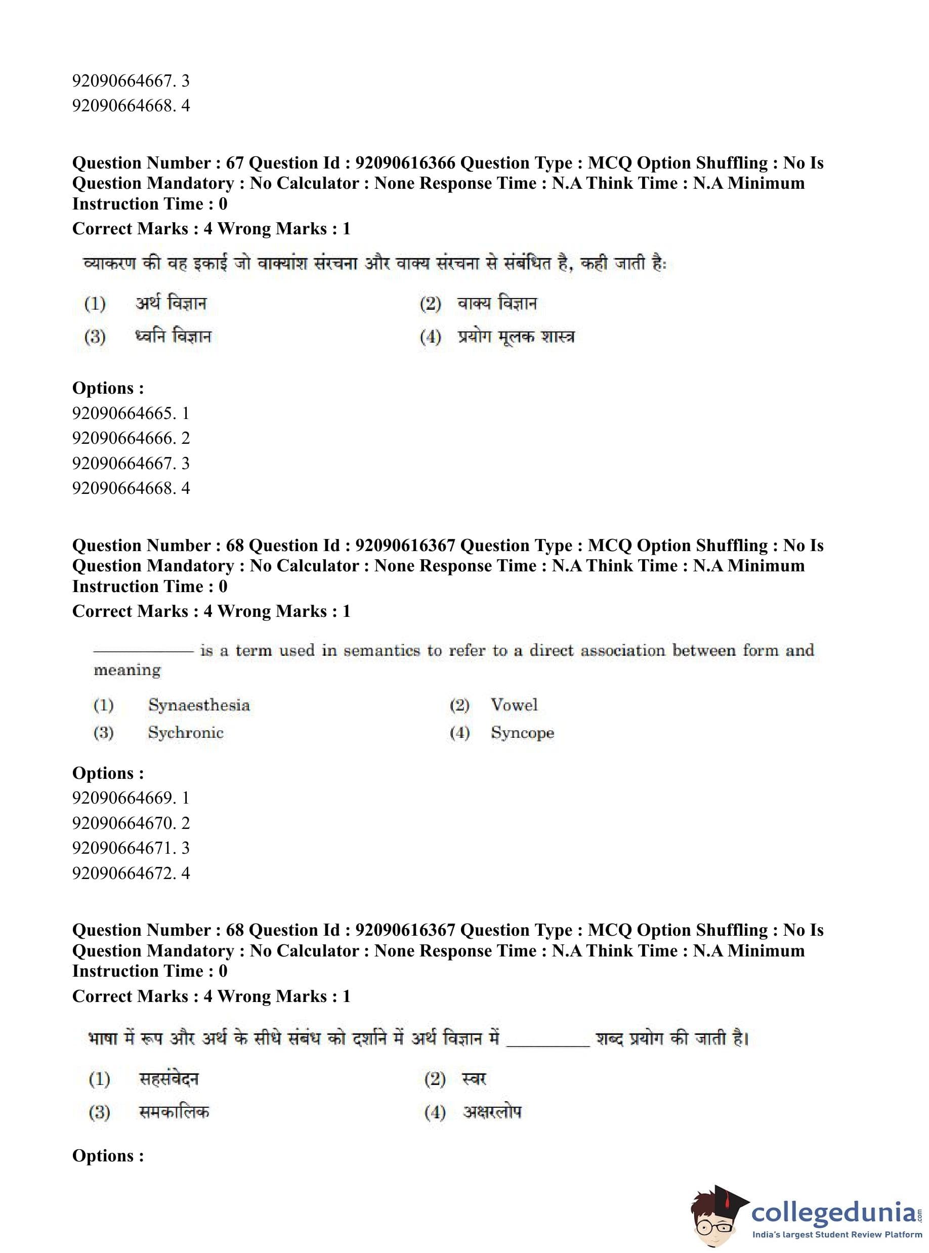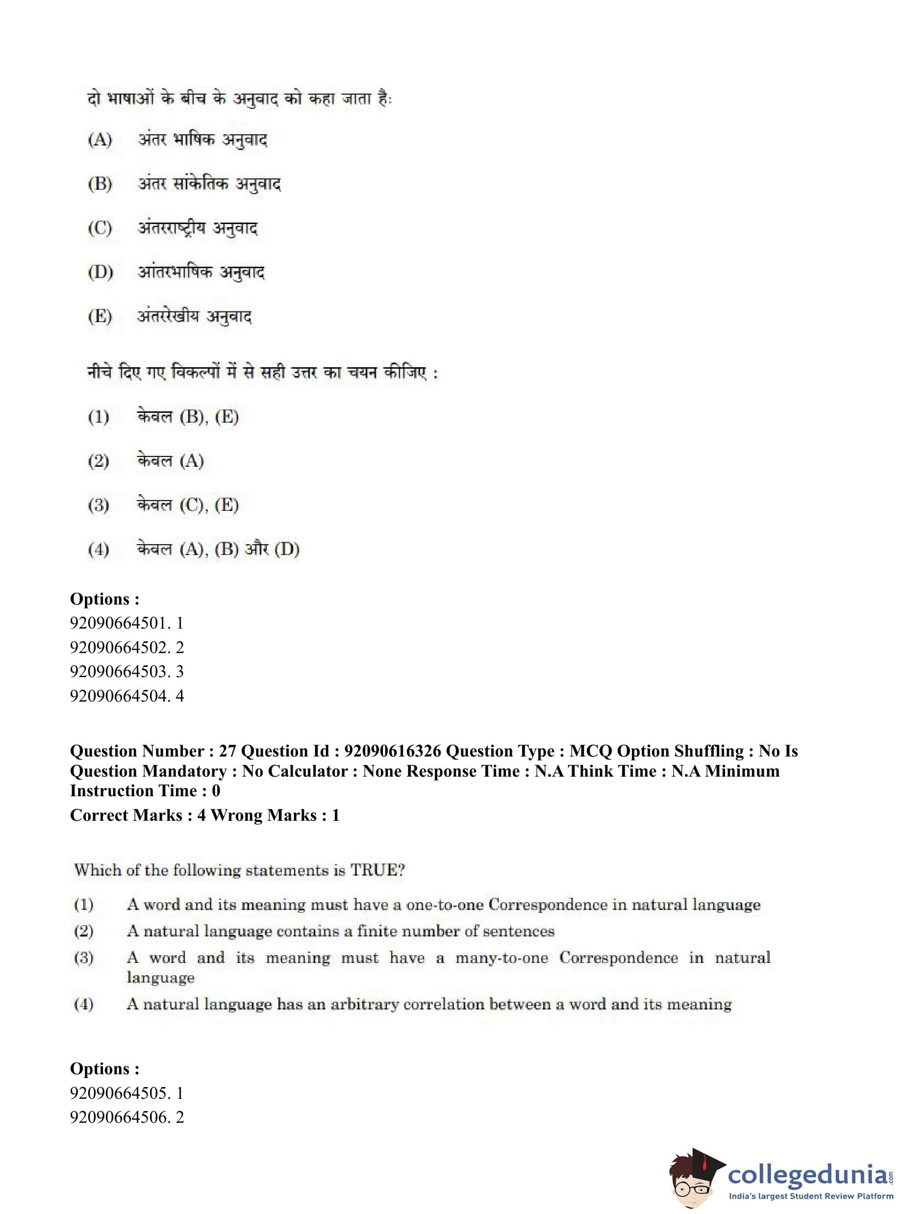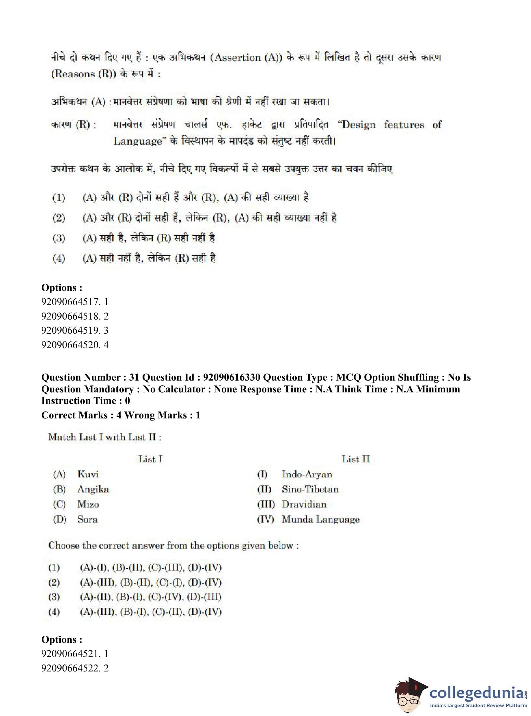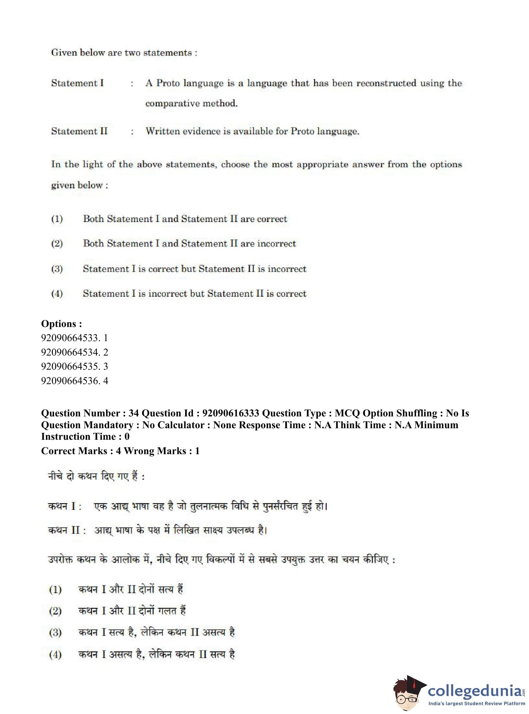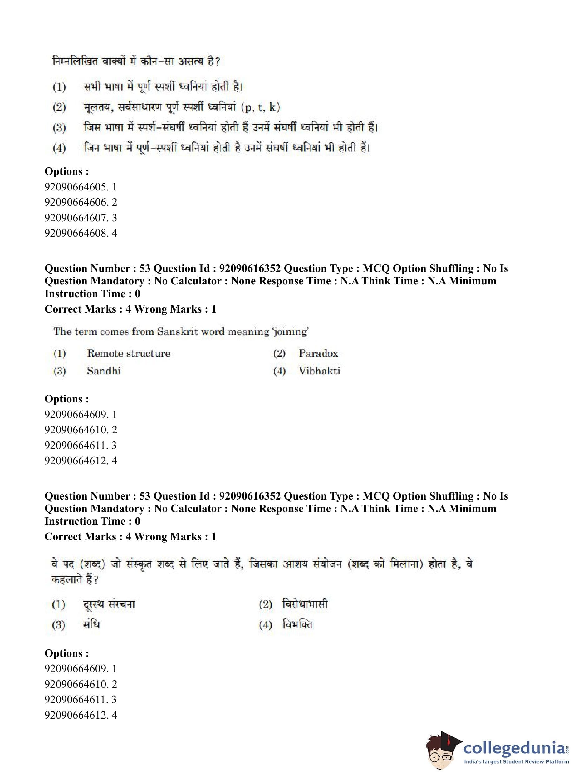 CUET PG 2023 Linguistics Question Paper in Hindi (June 14 - Shift 1)