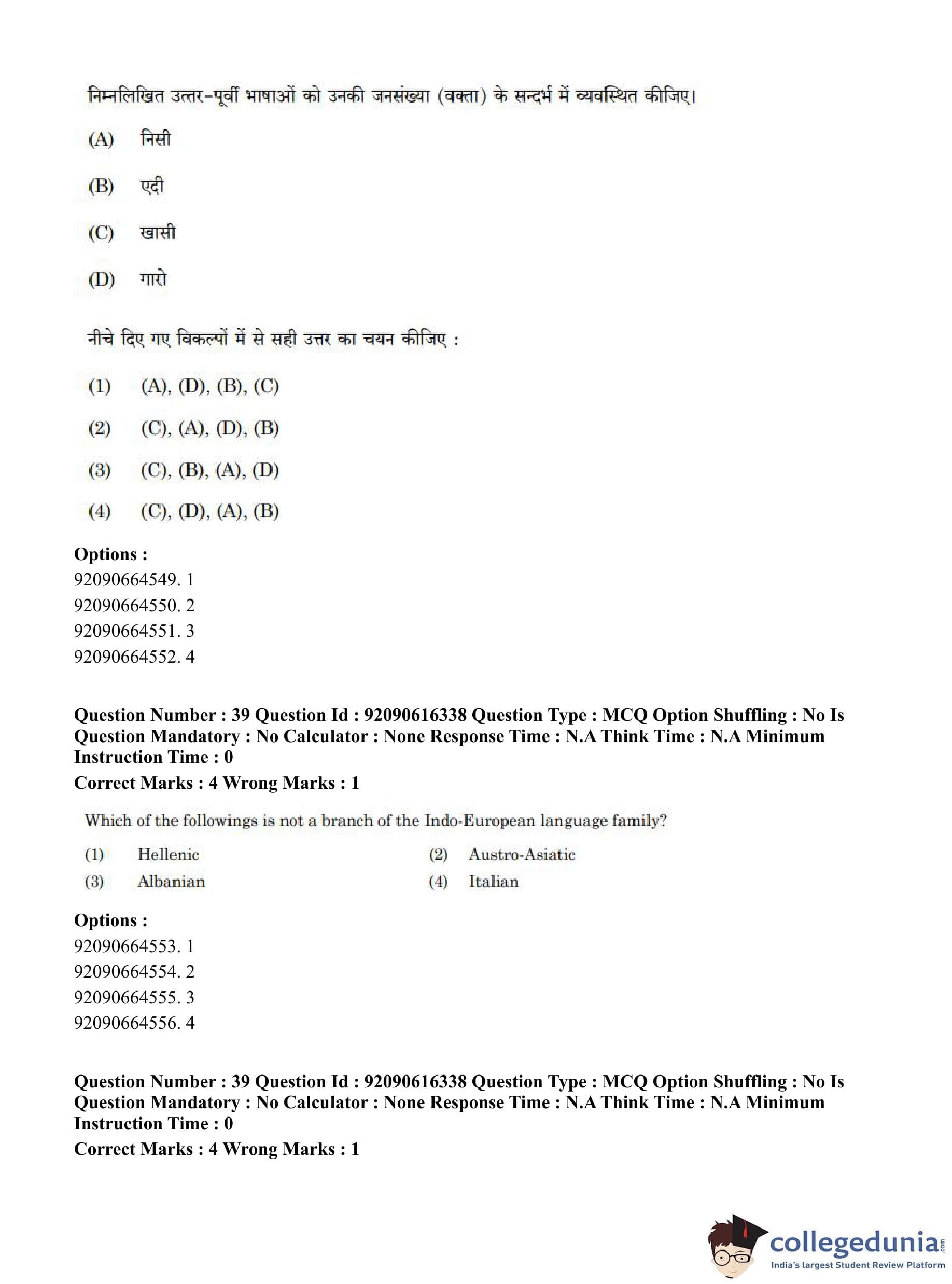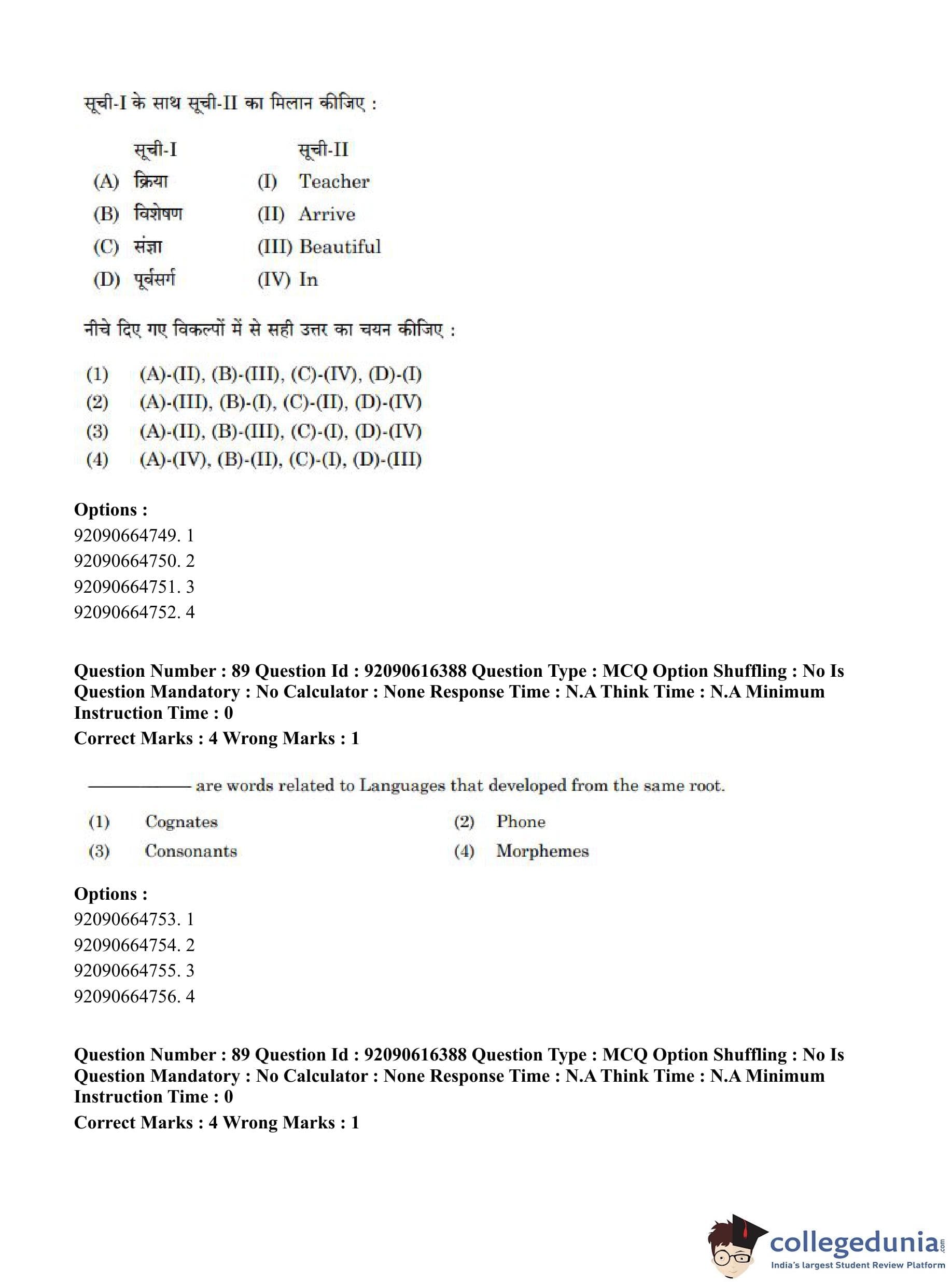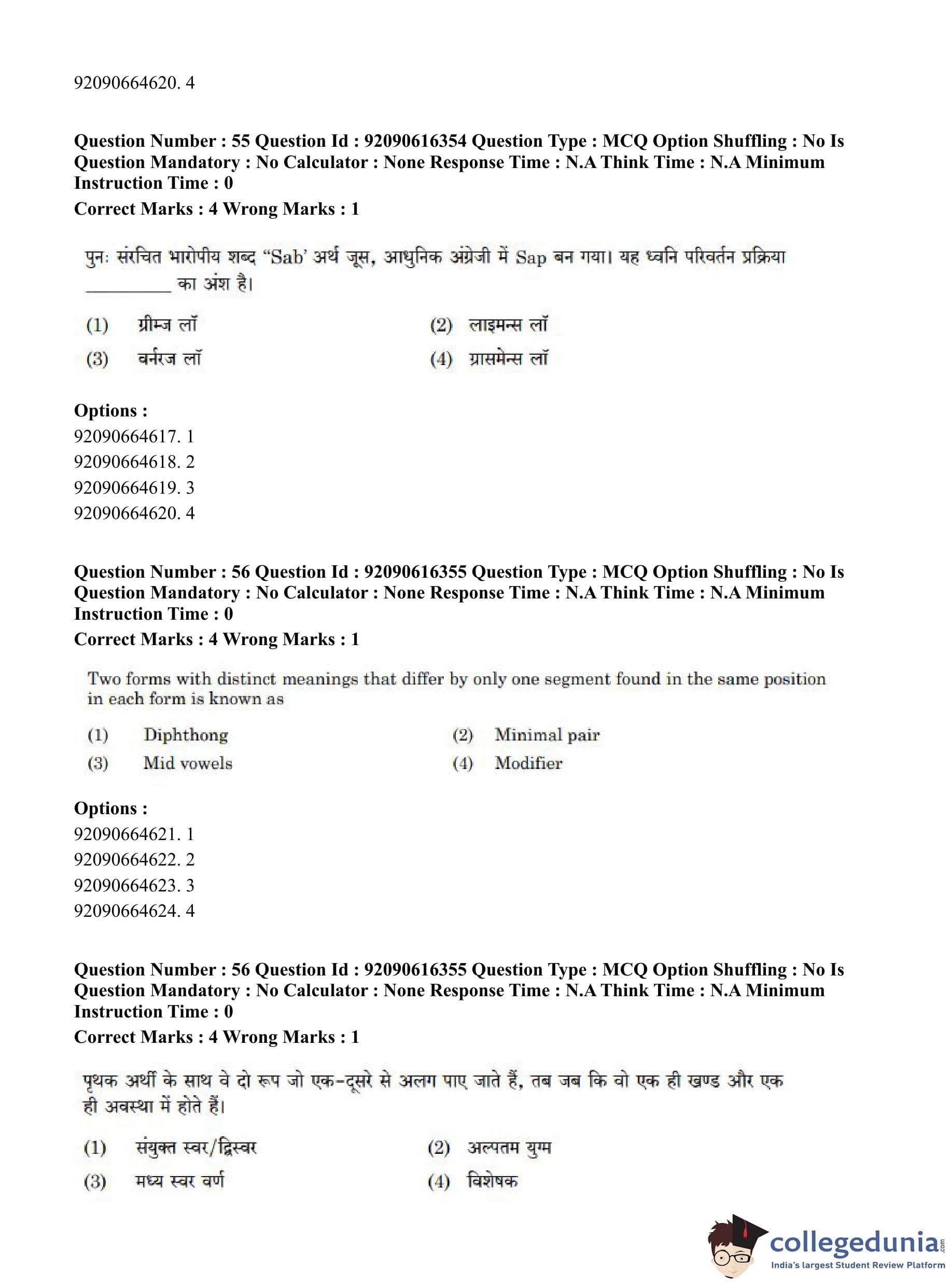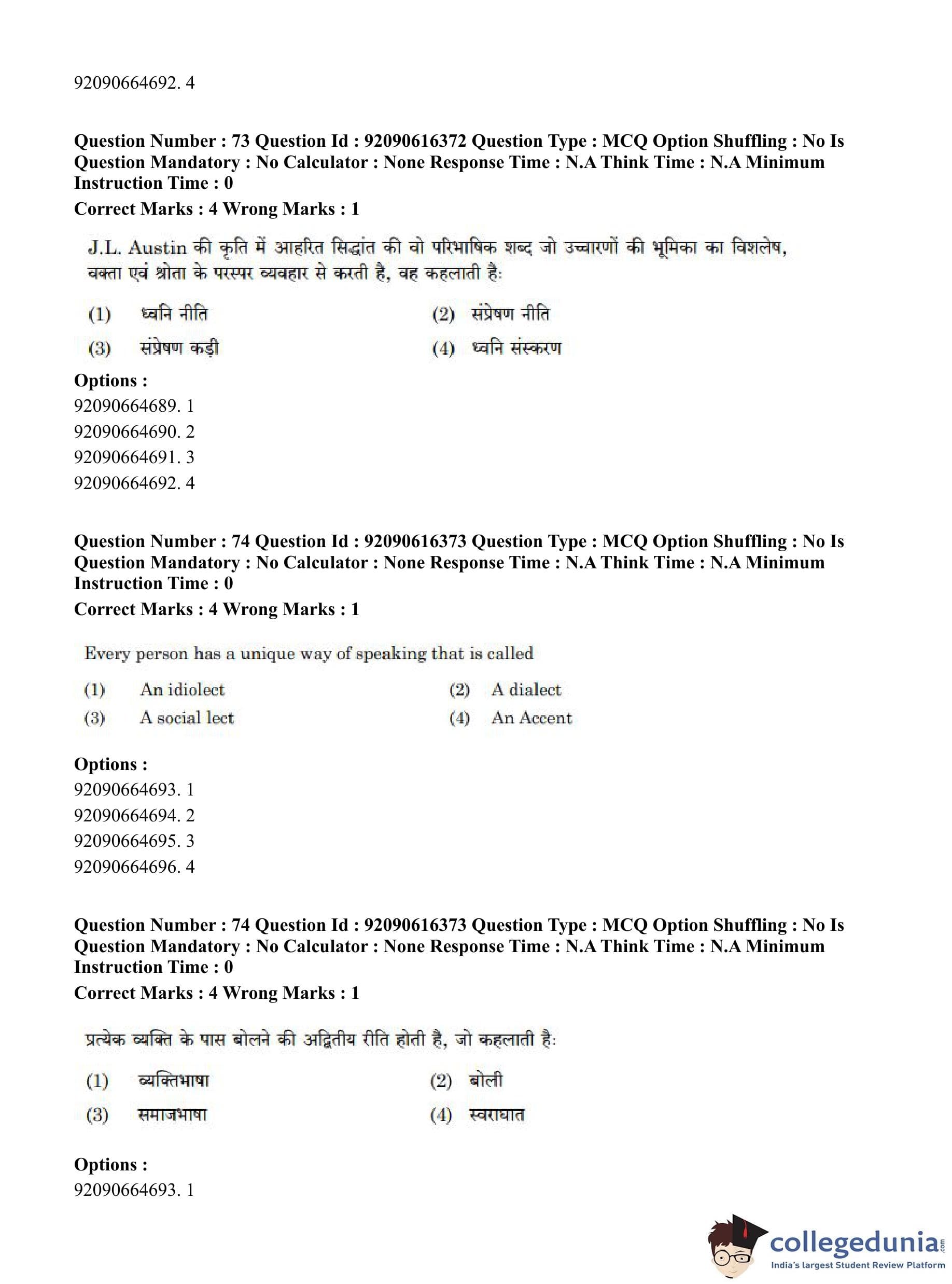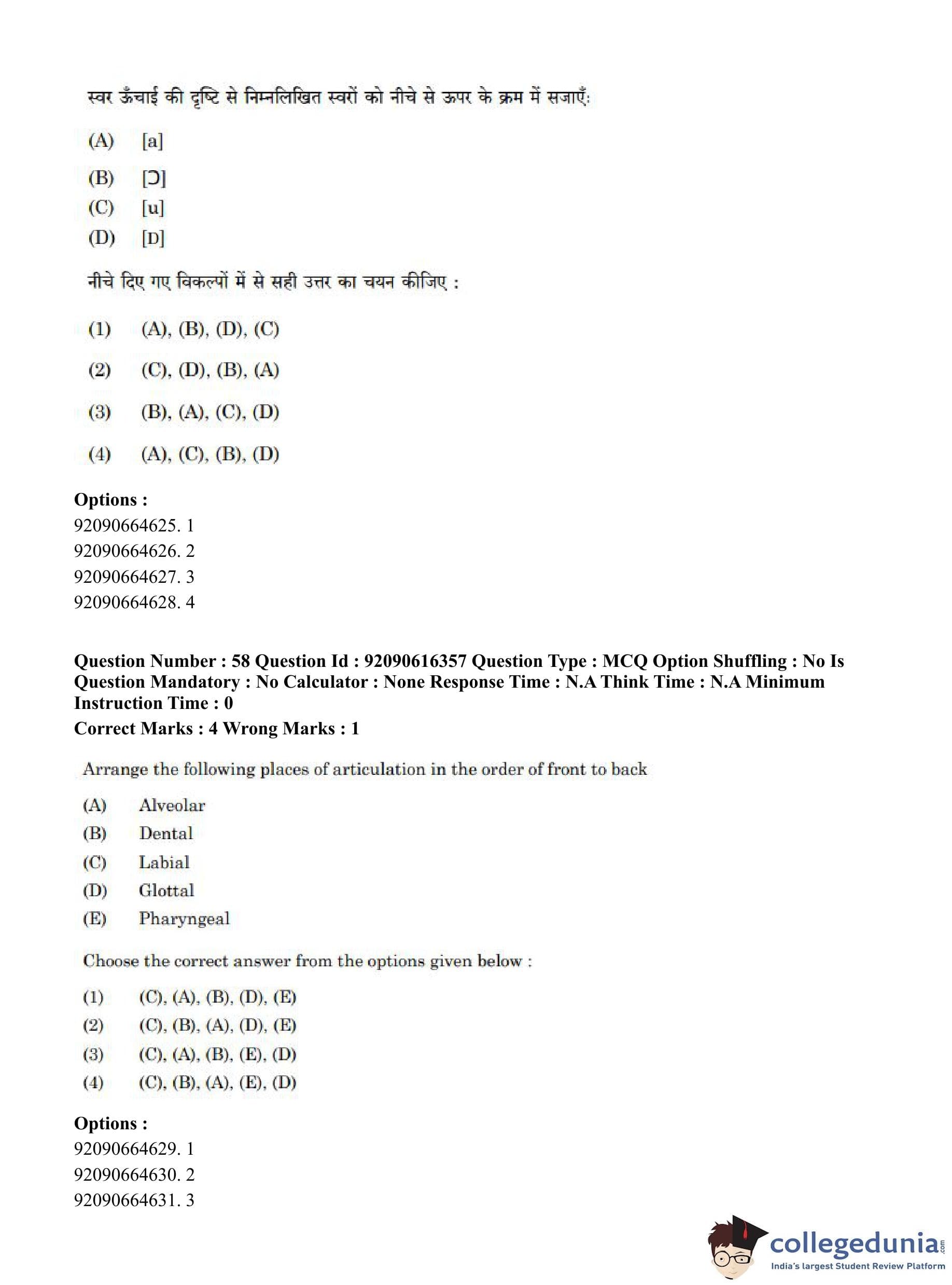CUET PG 2023 Linguistics Question Paper in Hindi (June 14 - Shift 1)