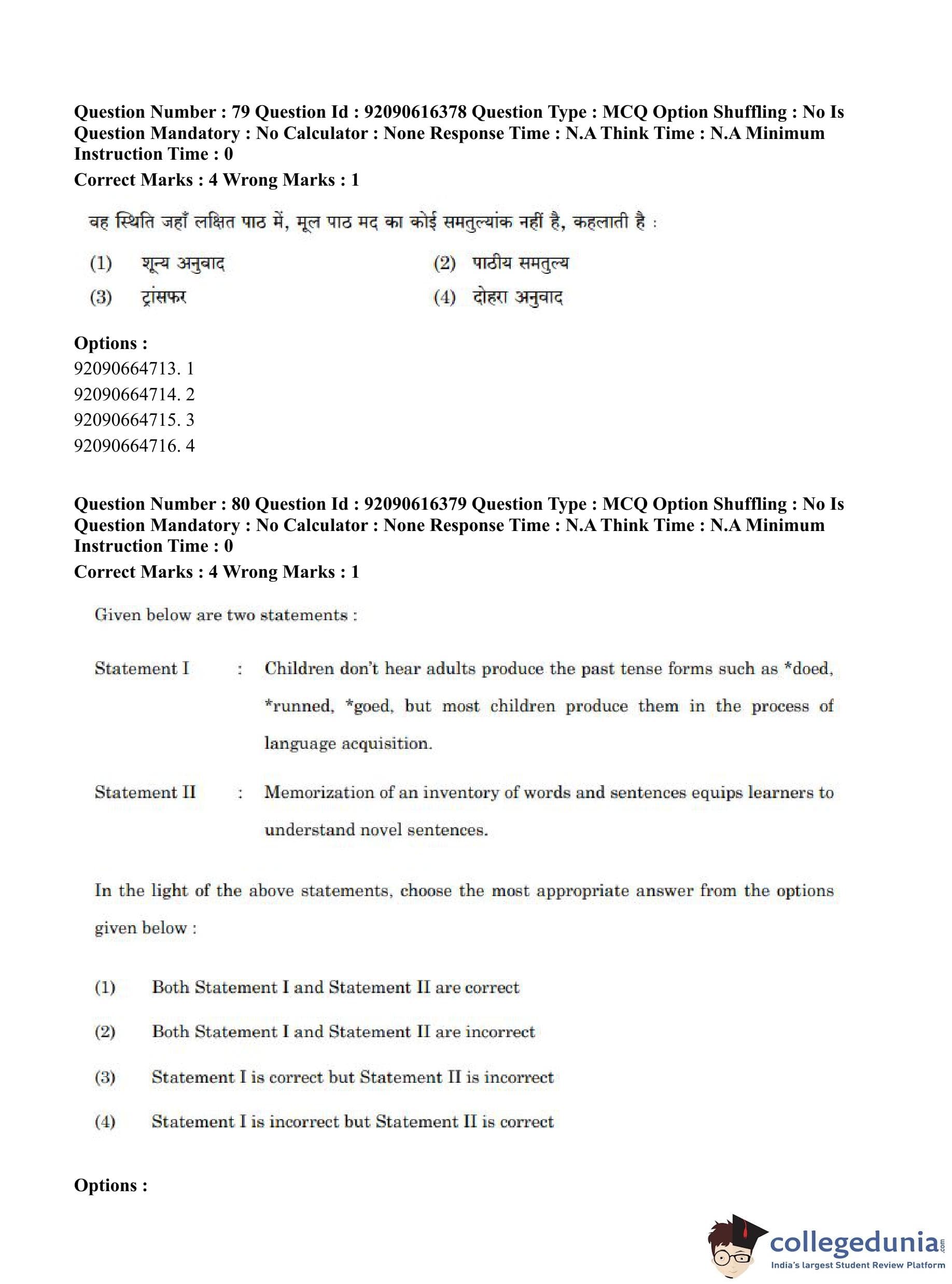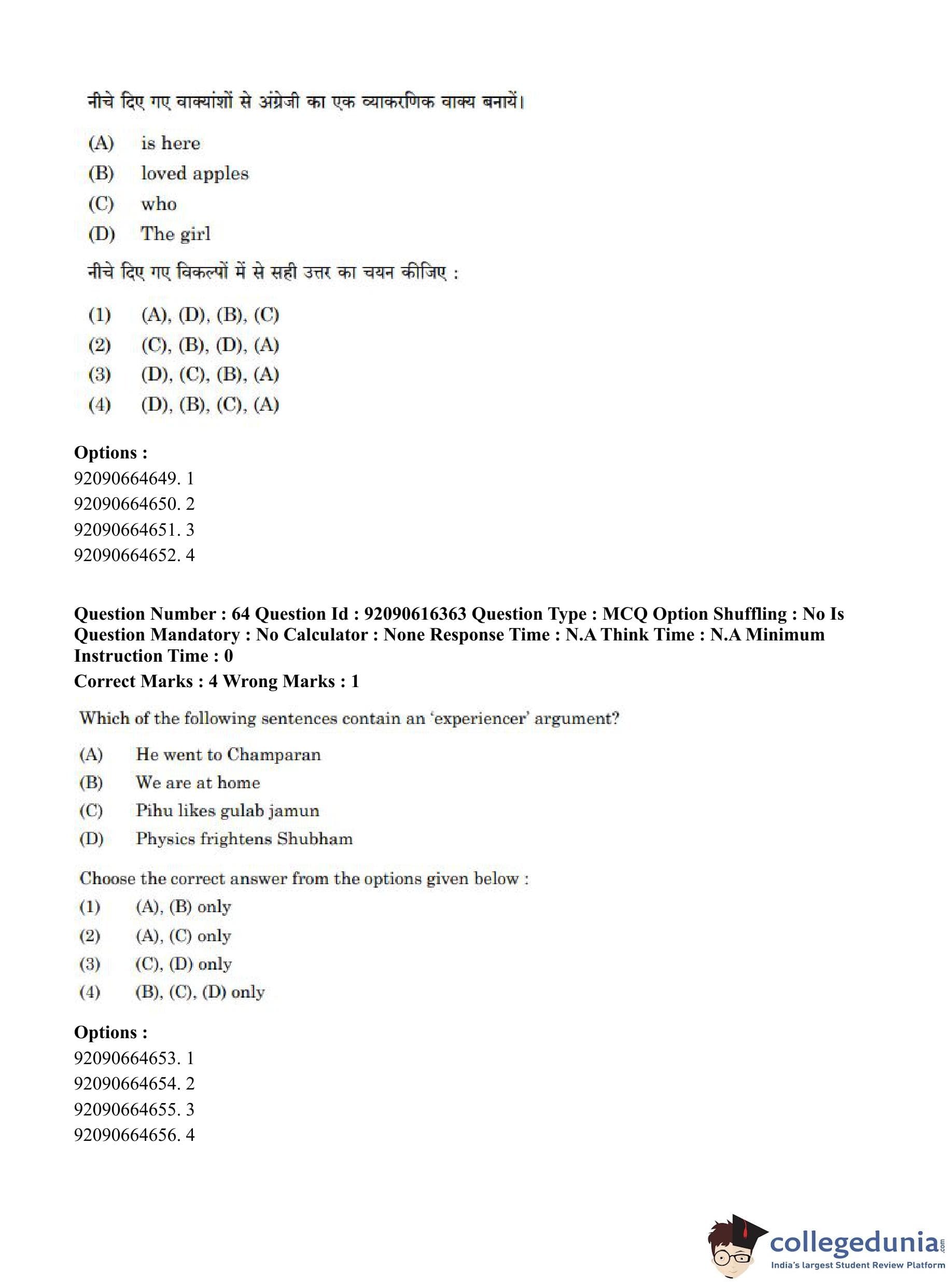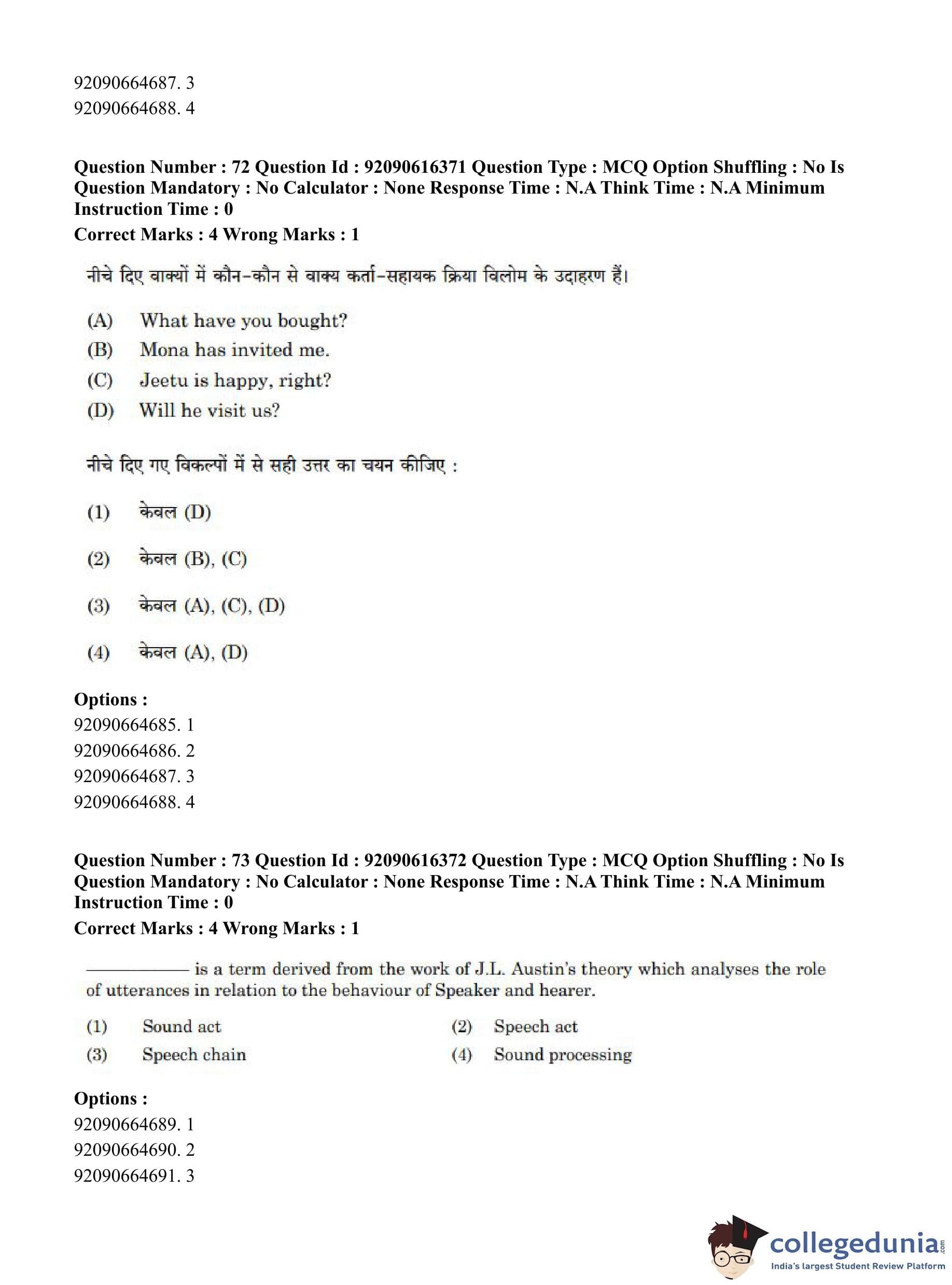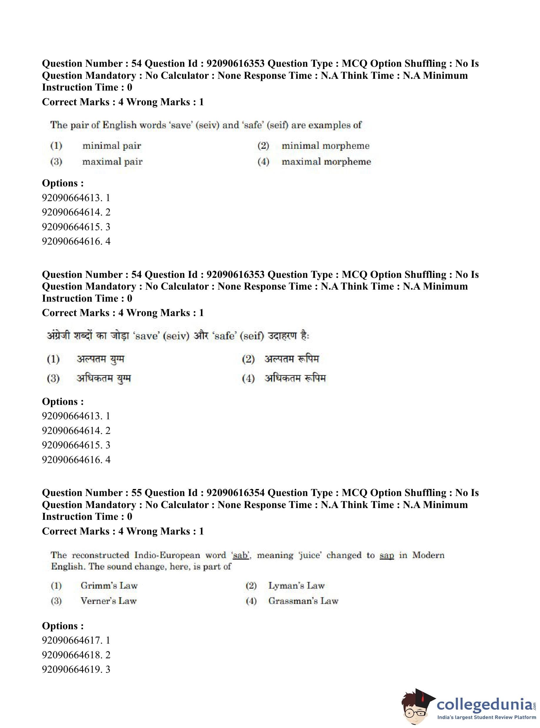 CUET PG 2023 Linguistics Question Paper in Hindi (June 14 - Shift 1)