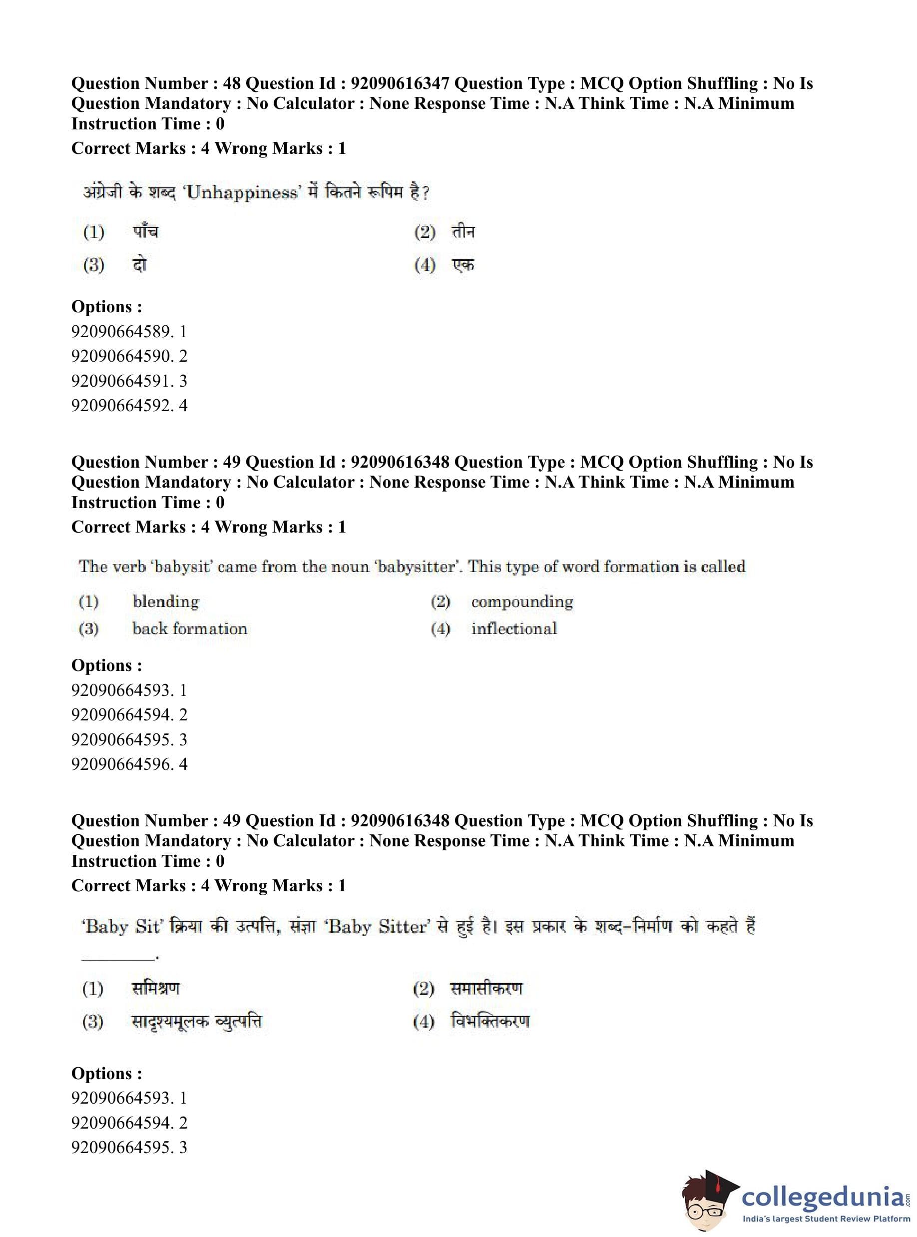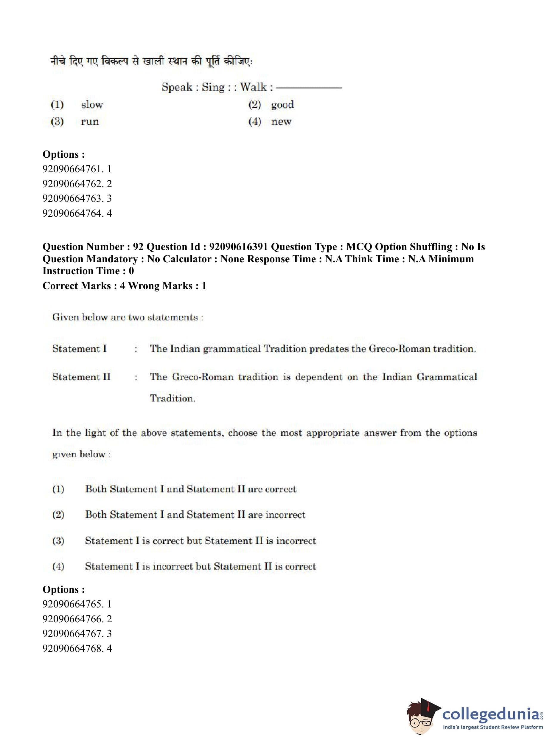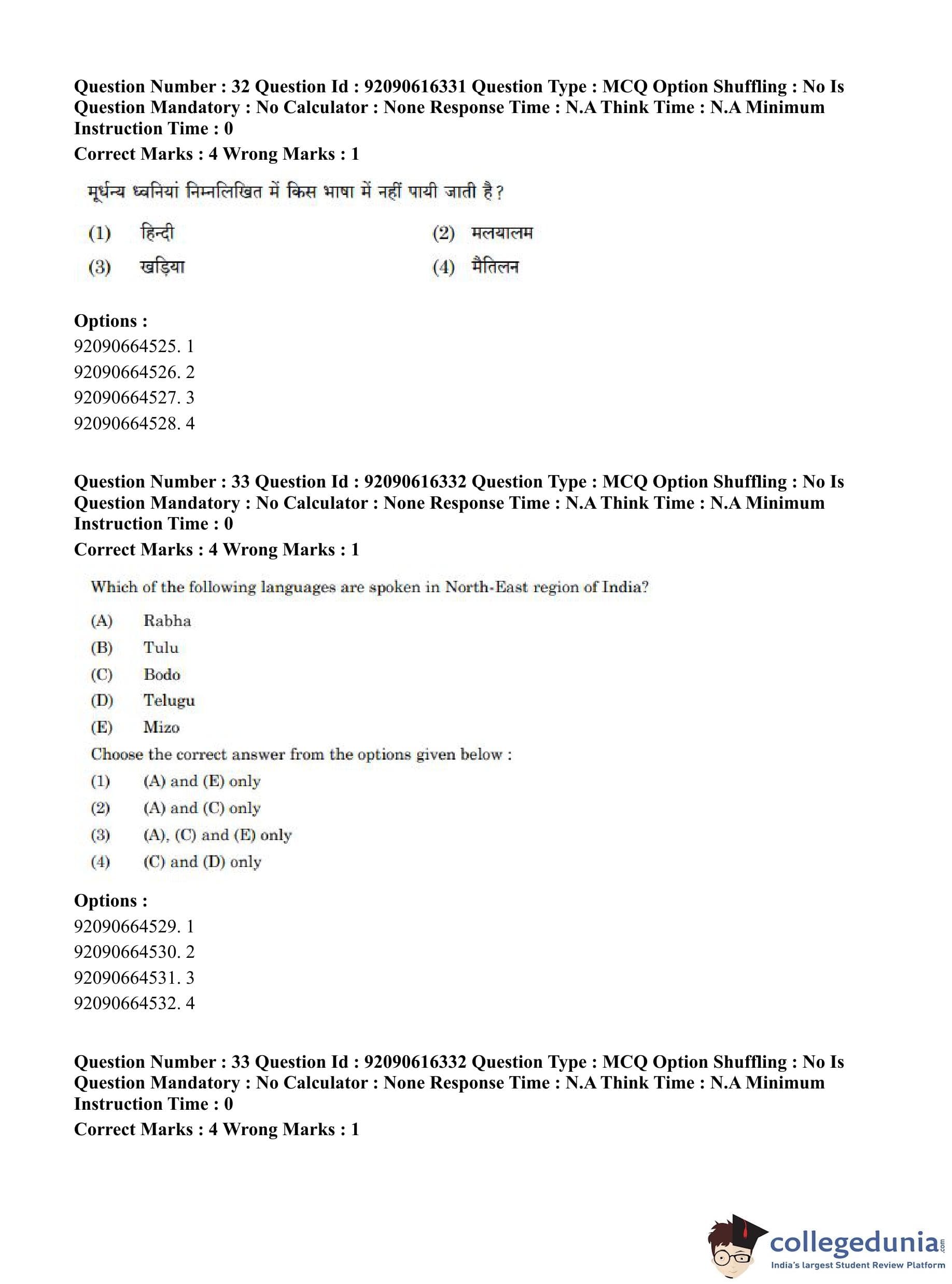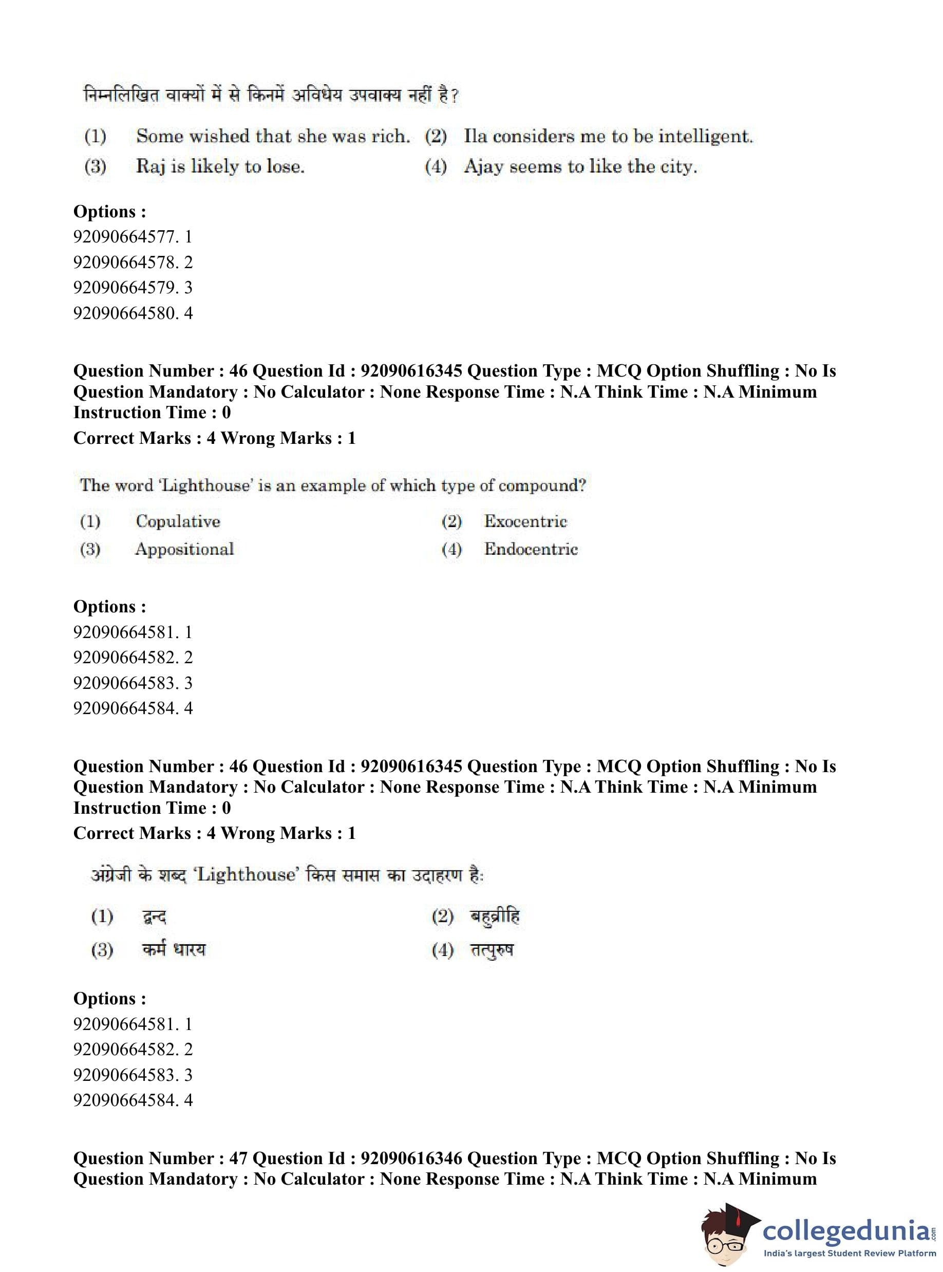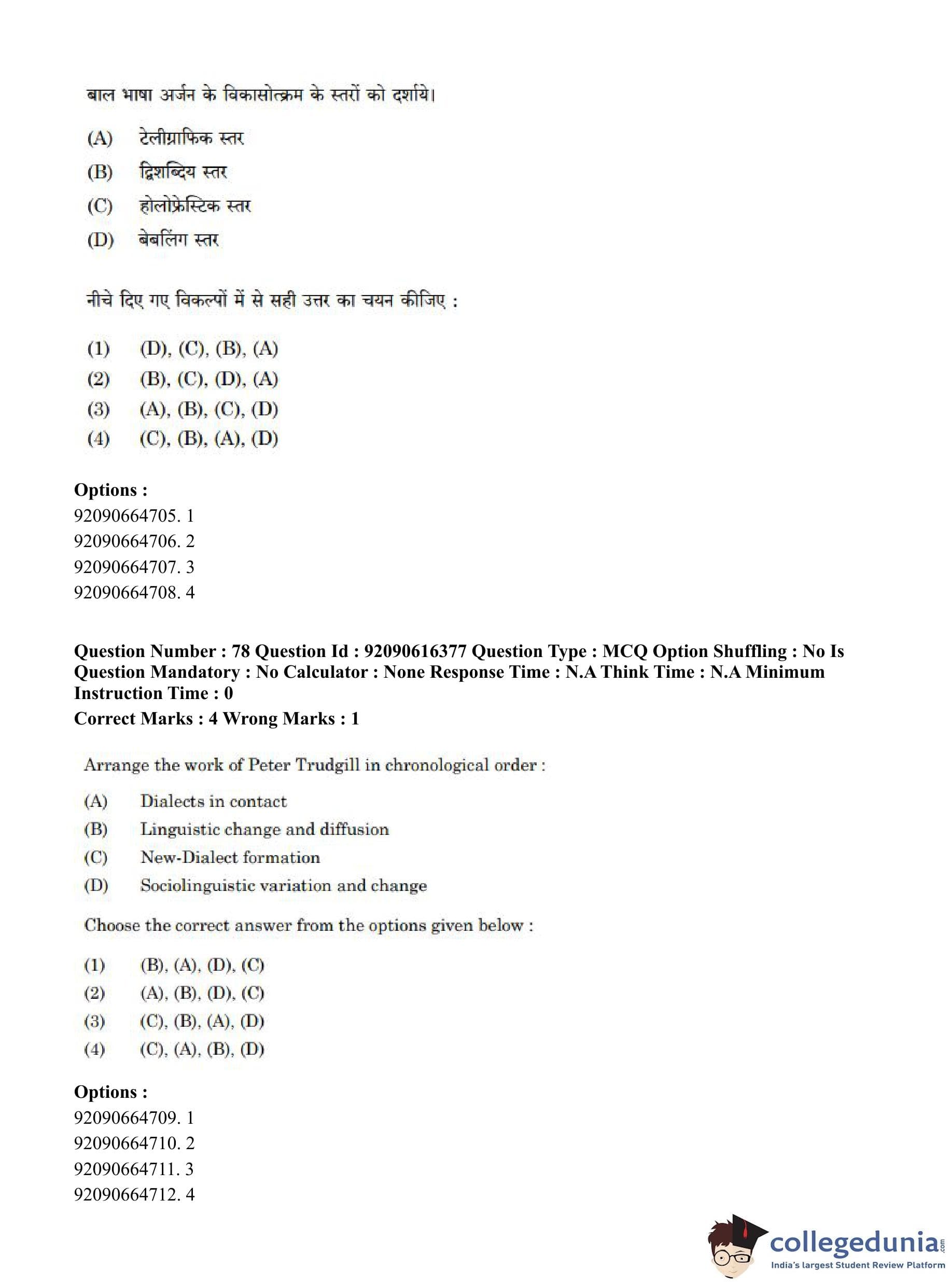 CUET PG 2023 Linguistics Question Paper in Hindi (June 14 - Shift 1)