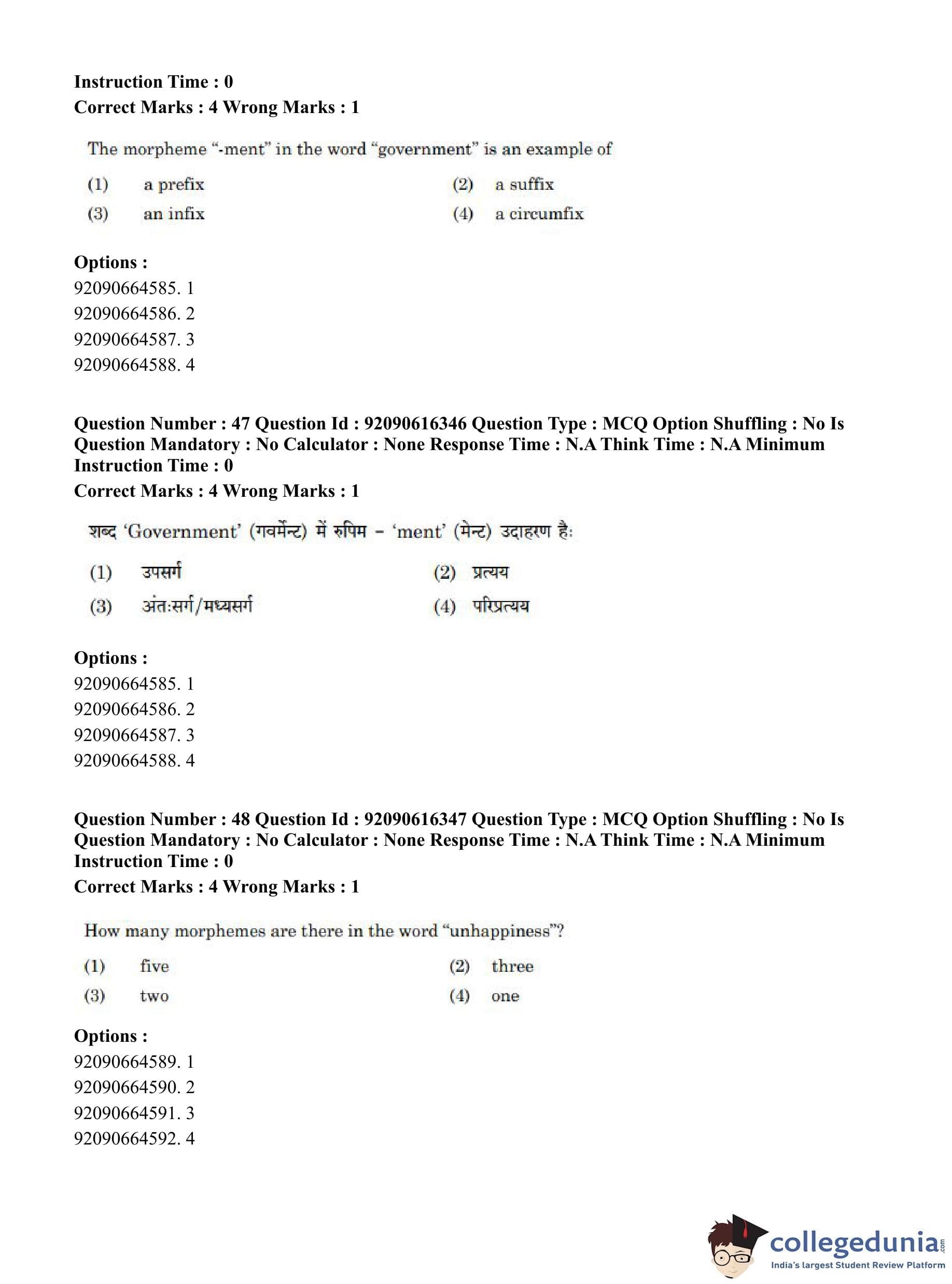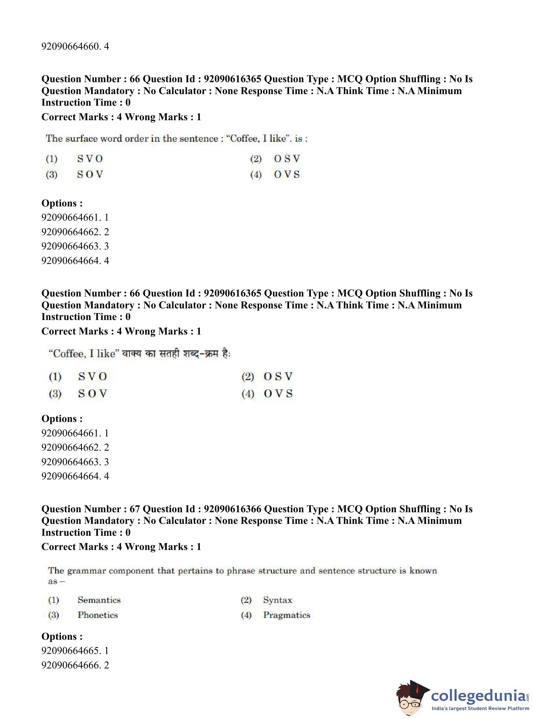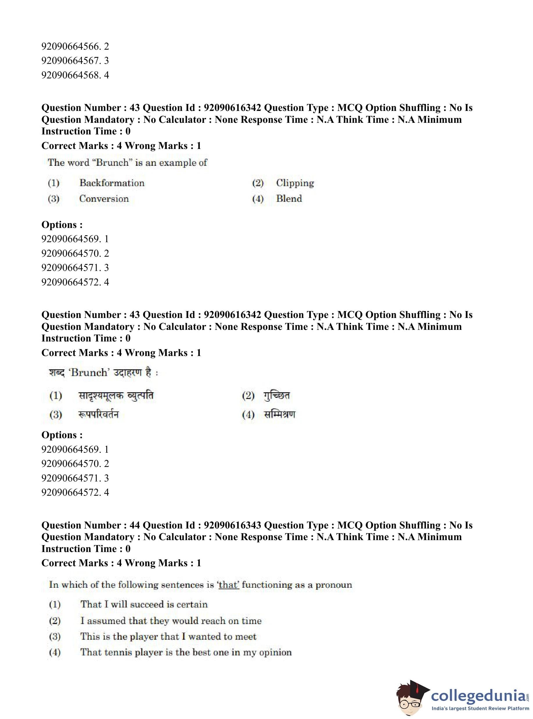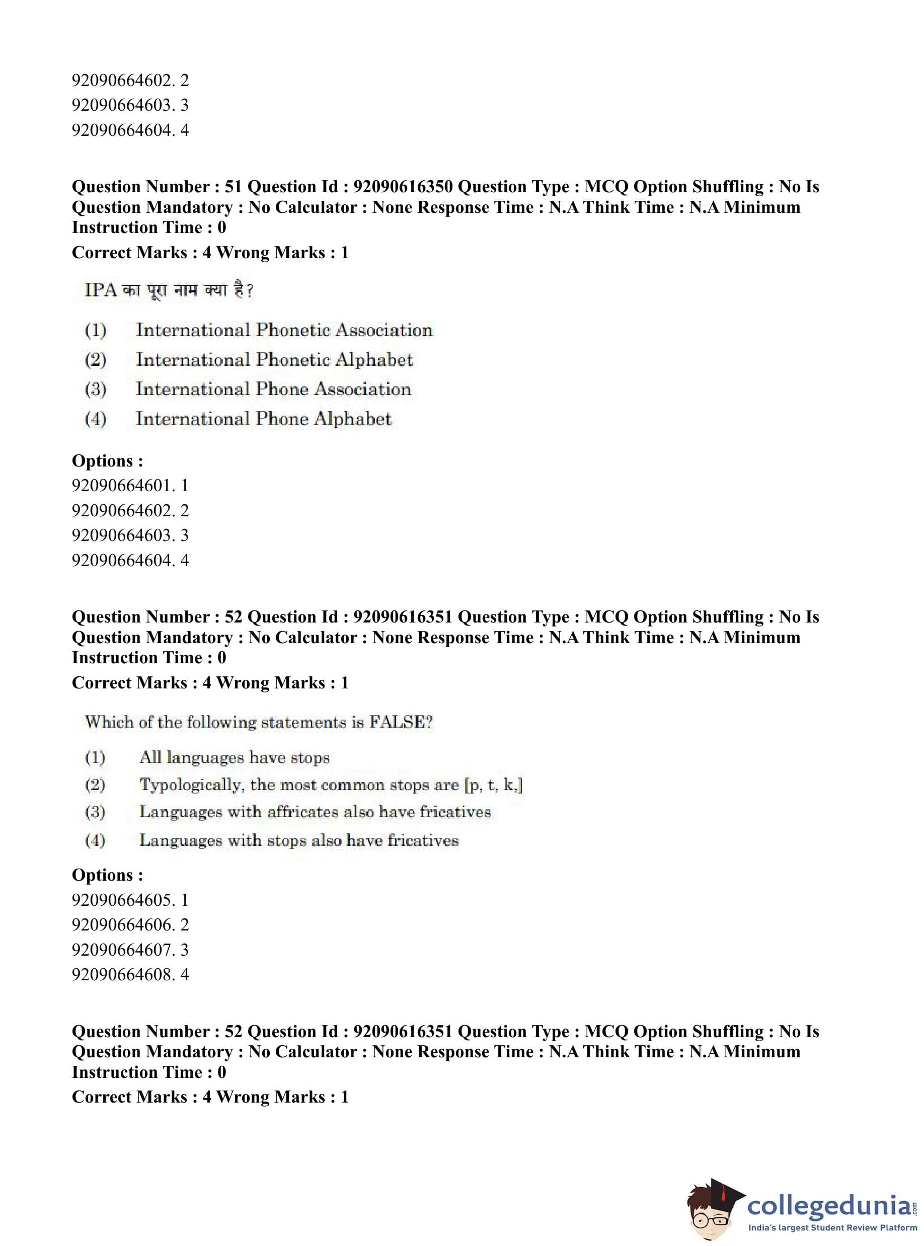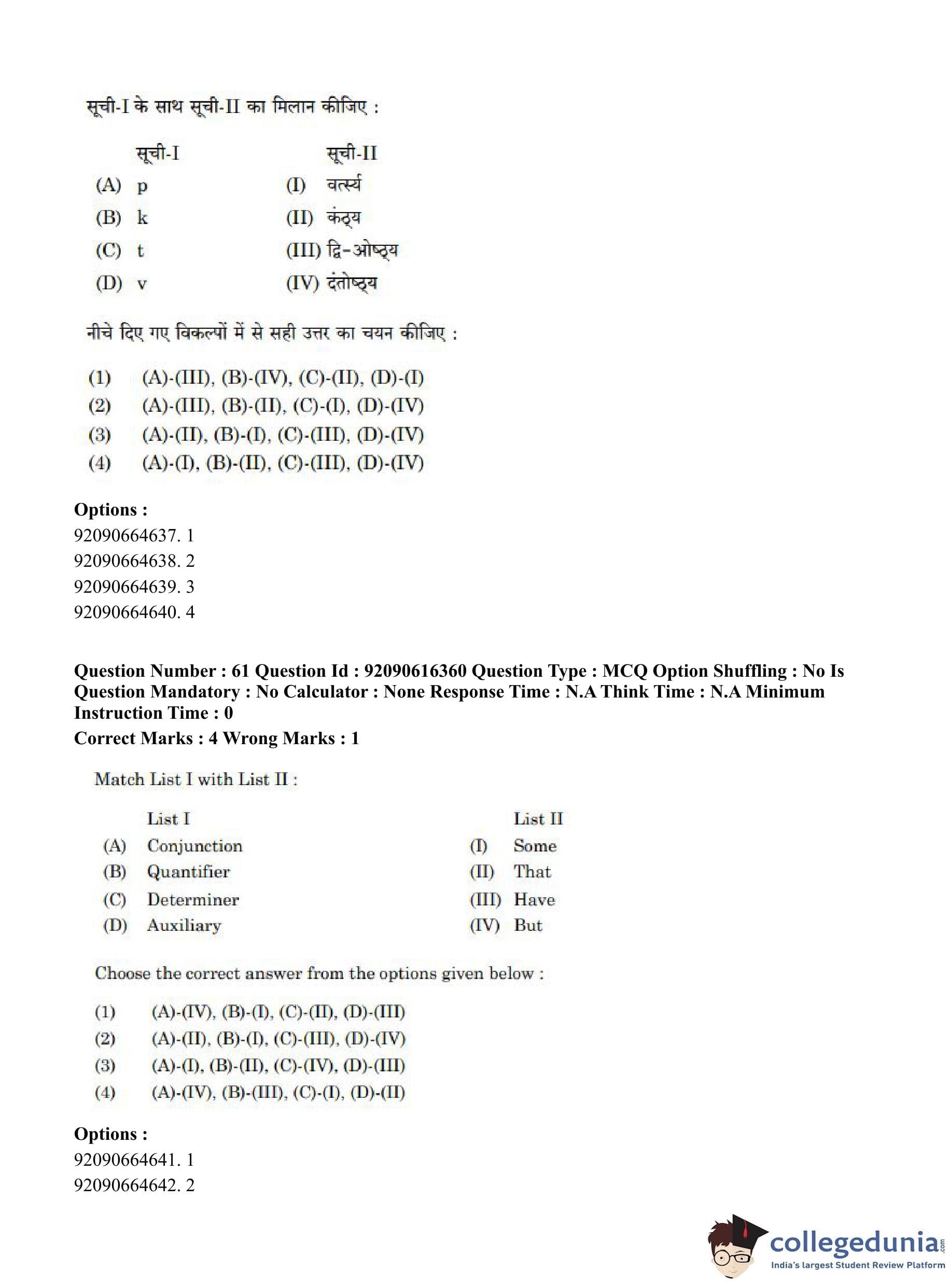 CUET PG 2023 Linguistics Question Paper in Hindi (June 14 - Shift 1)