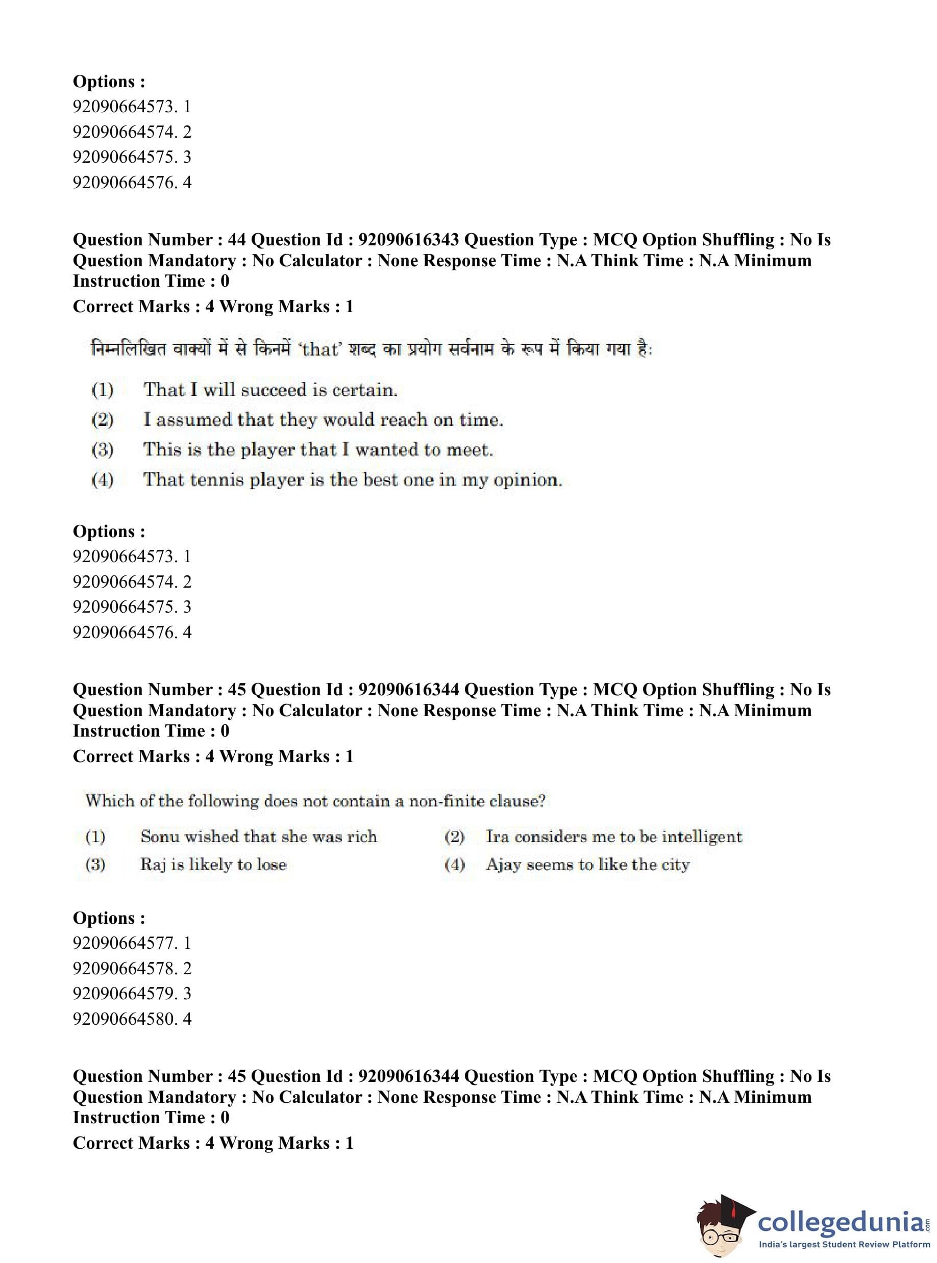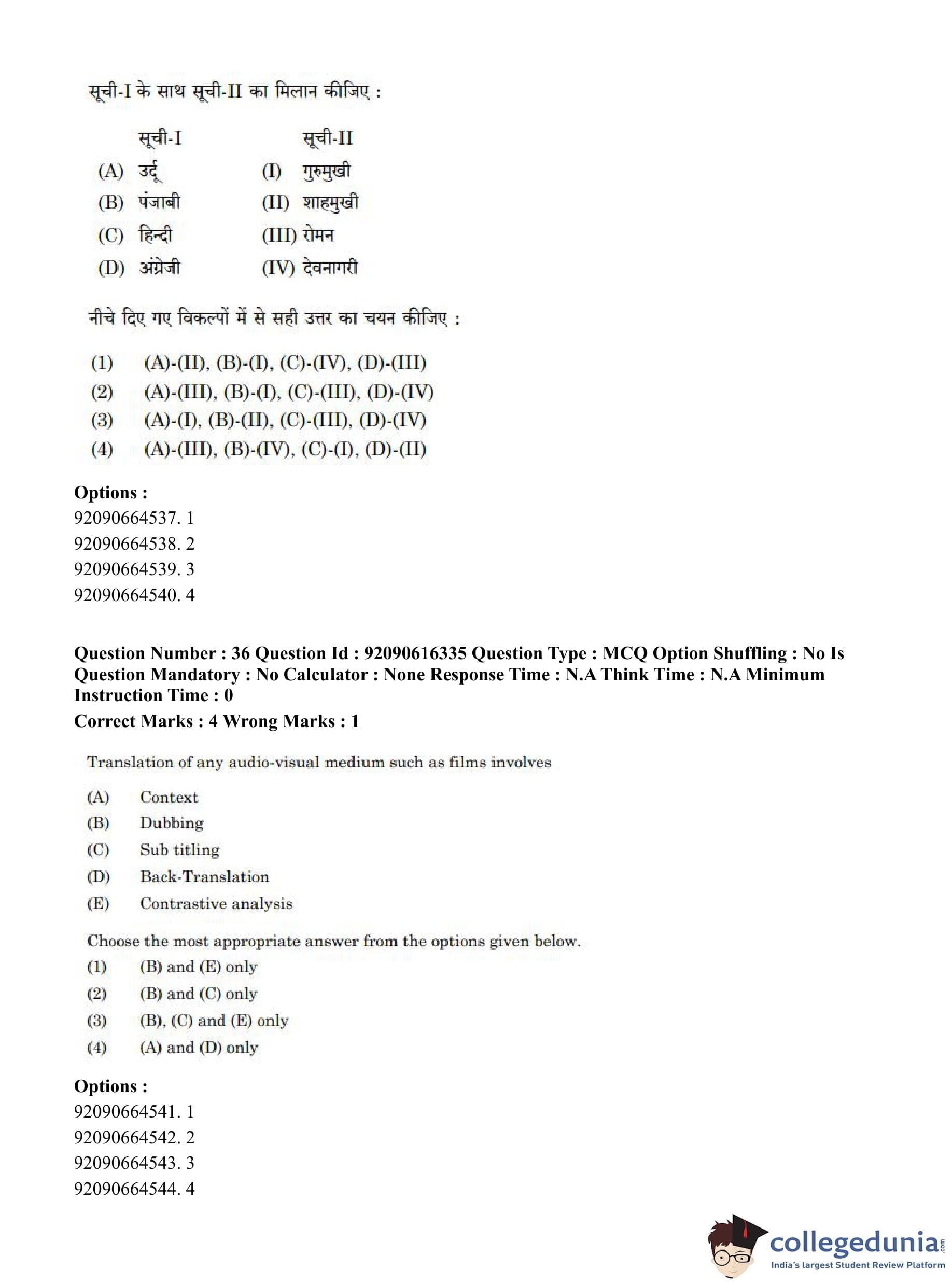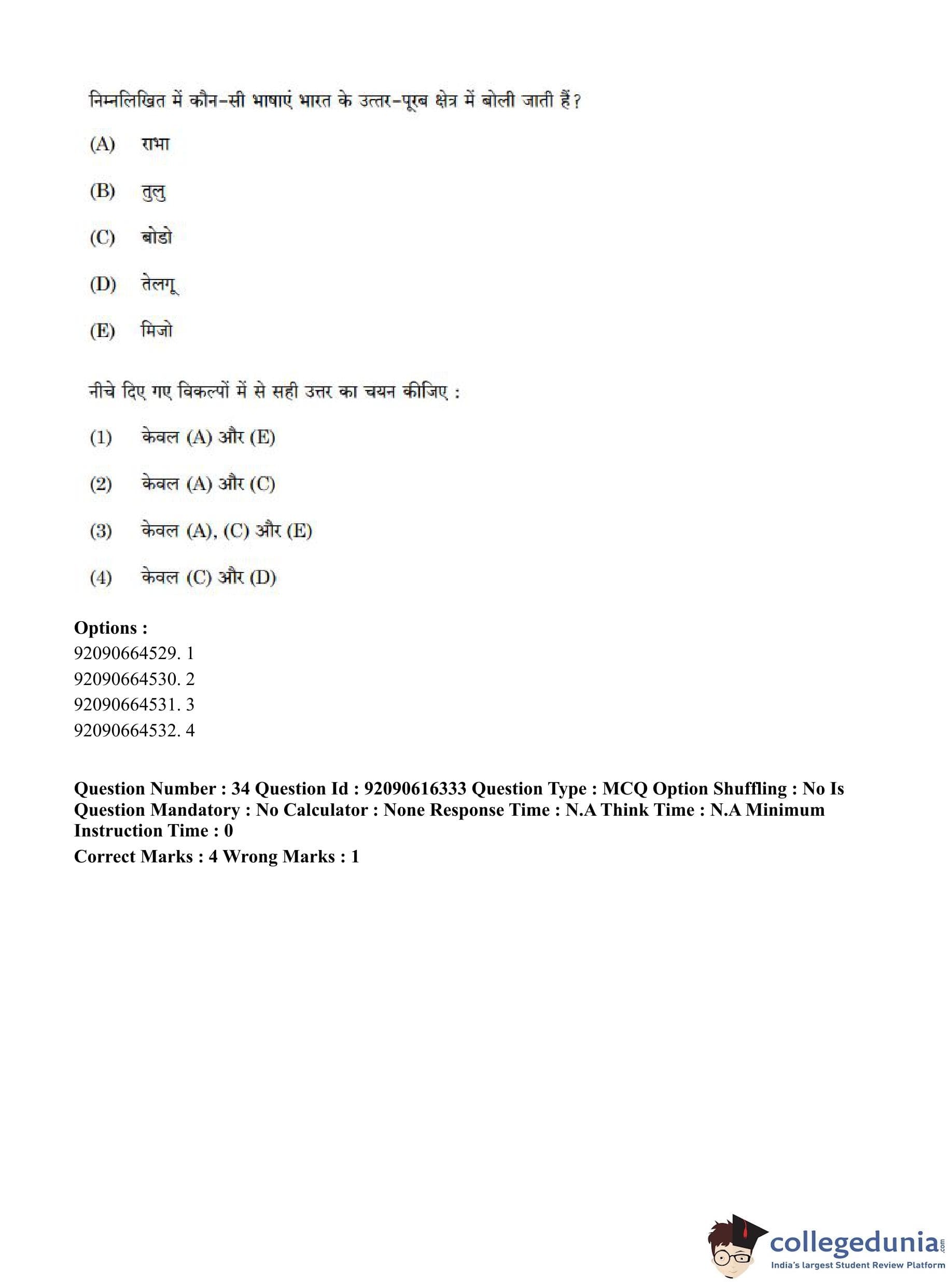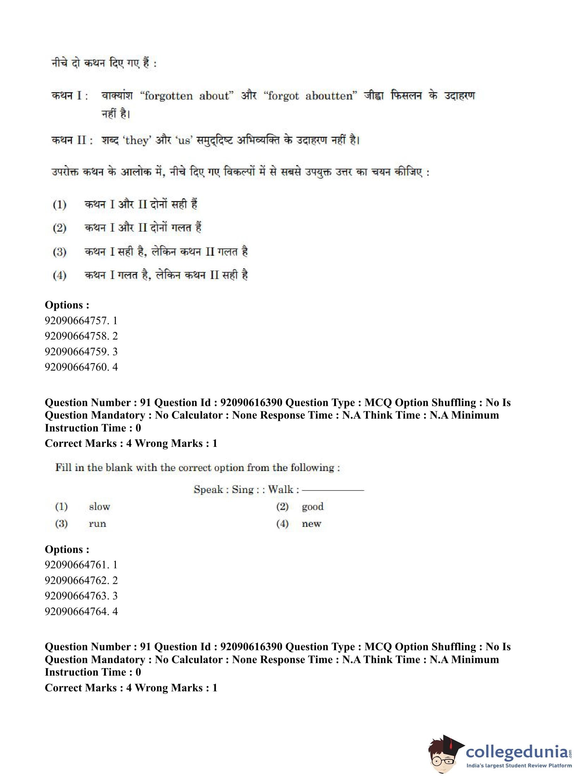 CUET PG 2023 Linguistics Question Paper in Hindi (June 14 - Shift 1)