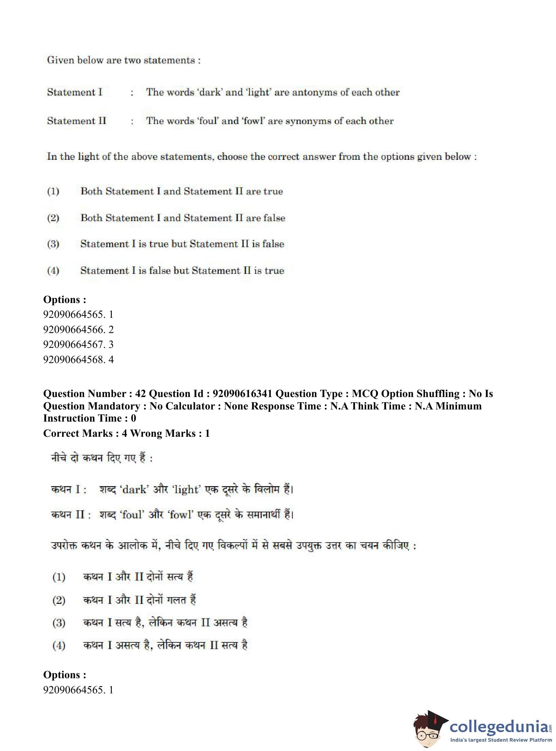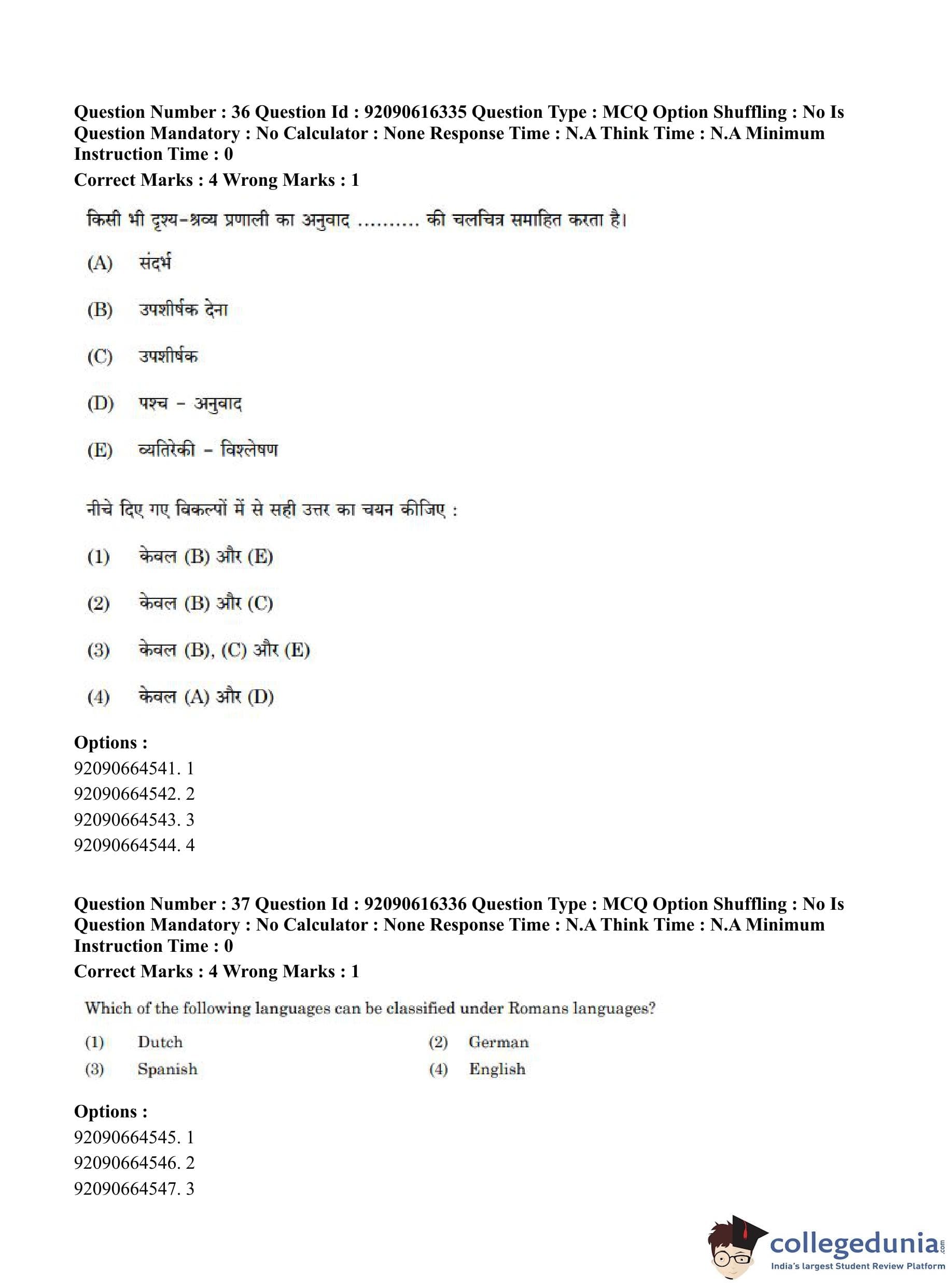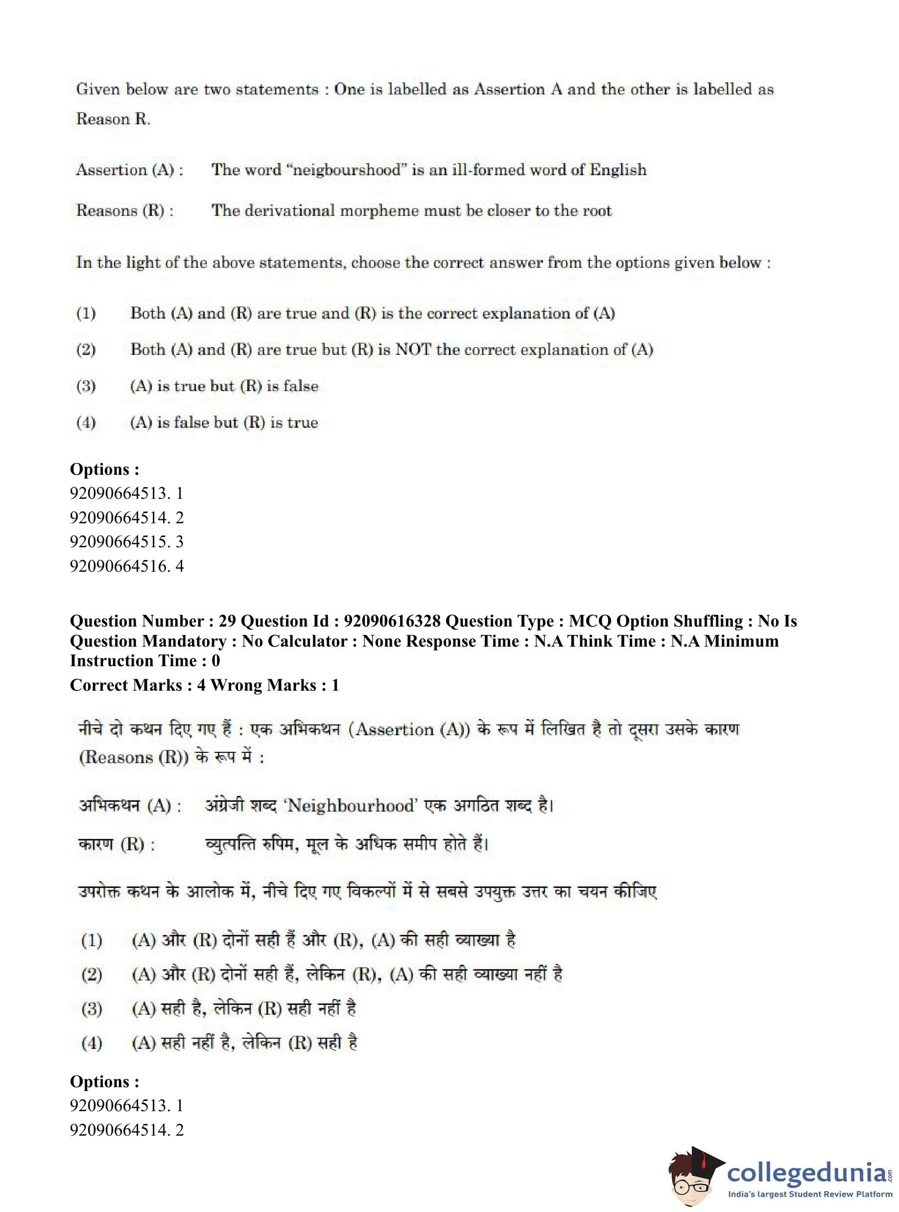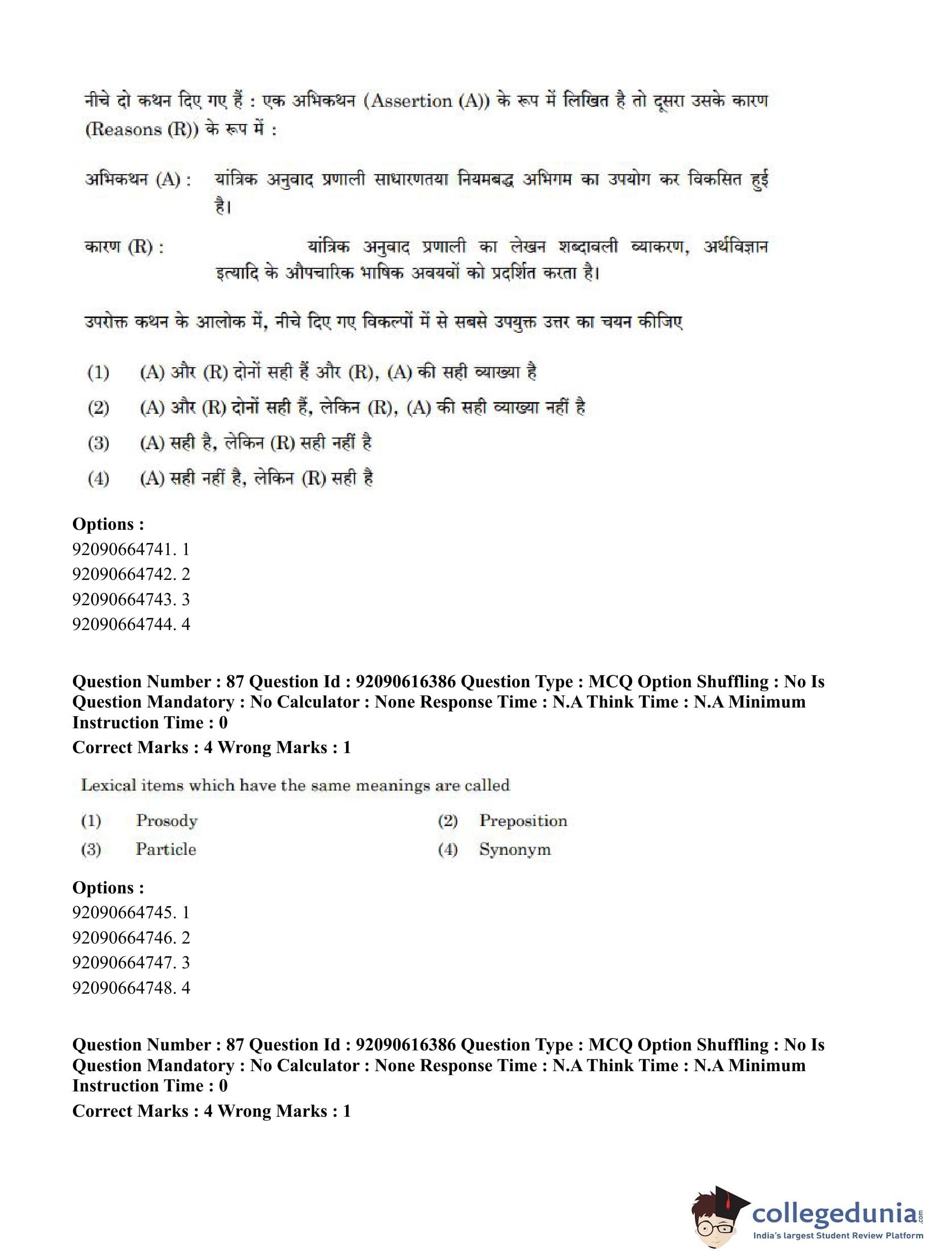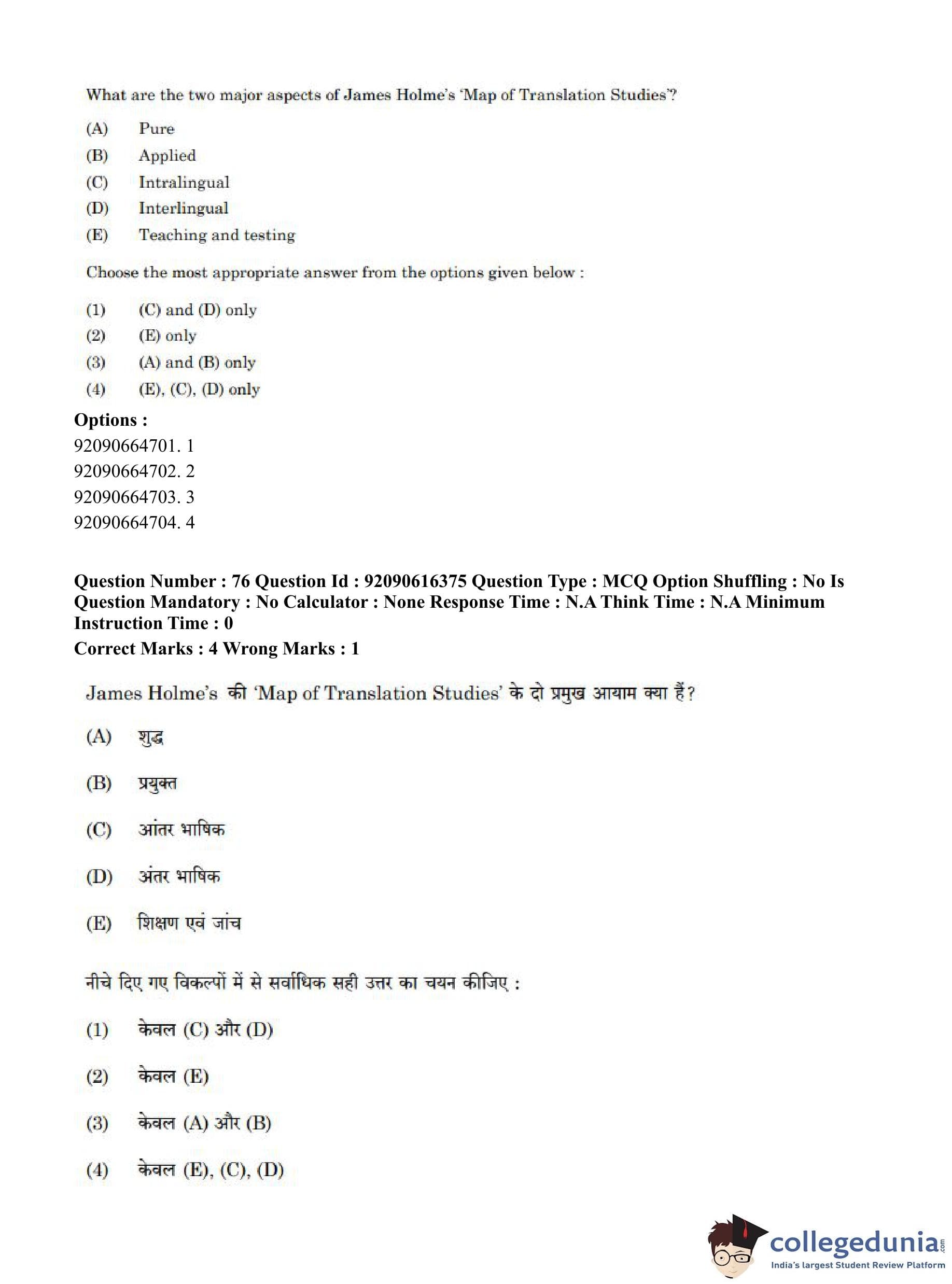 CUET PG 2023 Linguistics Question Paper in Hindi (June 14 - Shift 1)