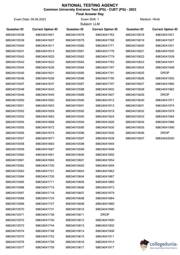 | CUET PG LLM Question Paper 2023 PDF | CUET PG LLM Answer Key 2023 PDF |
