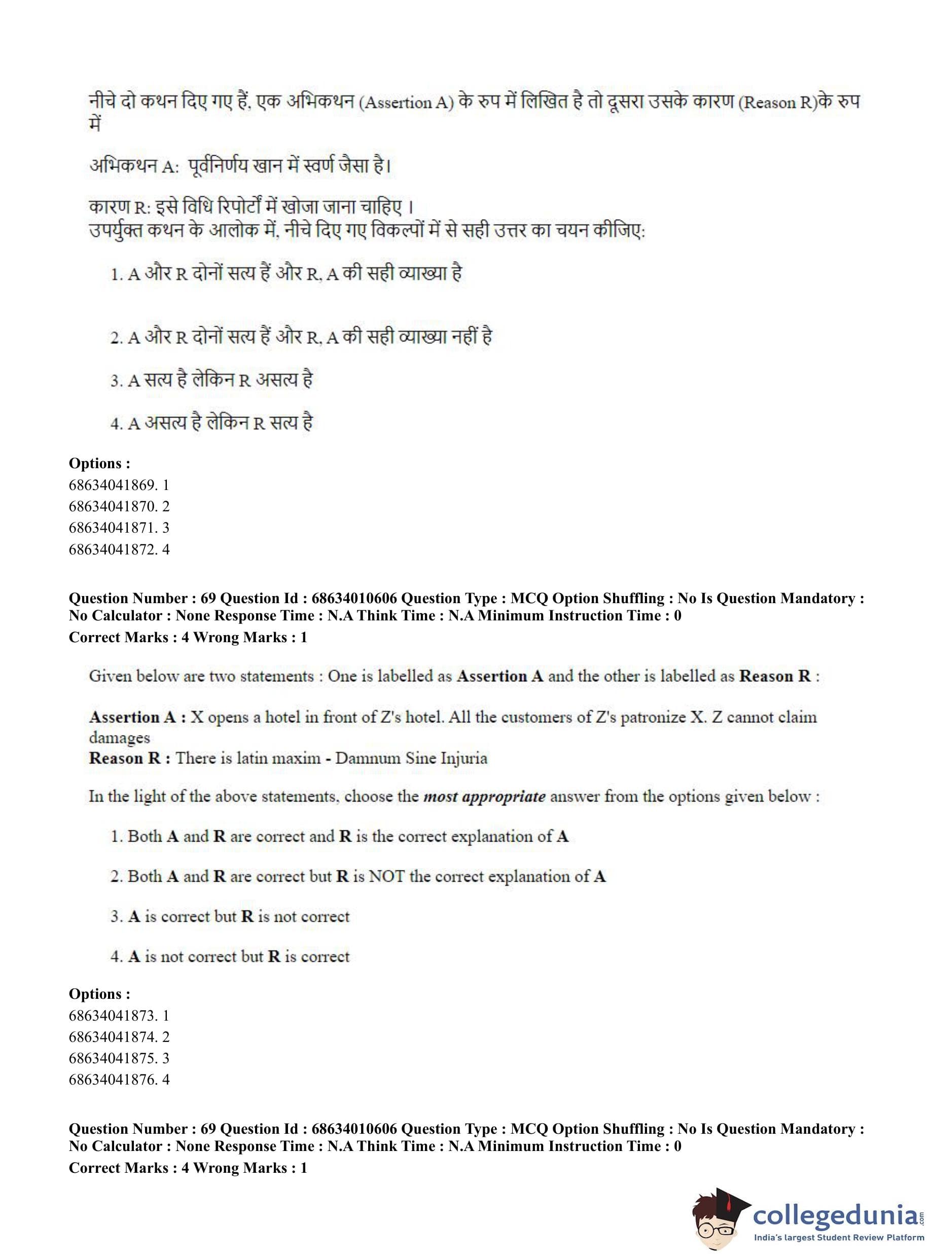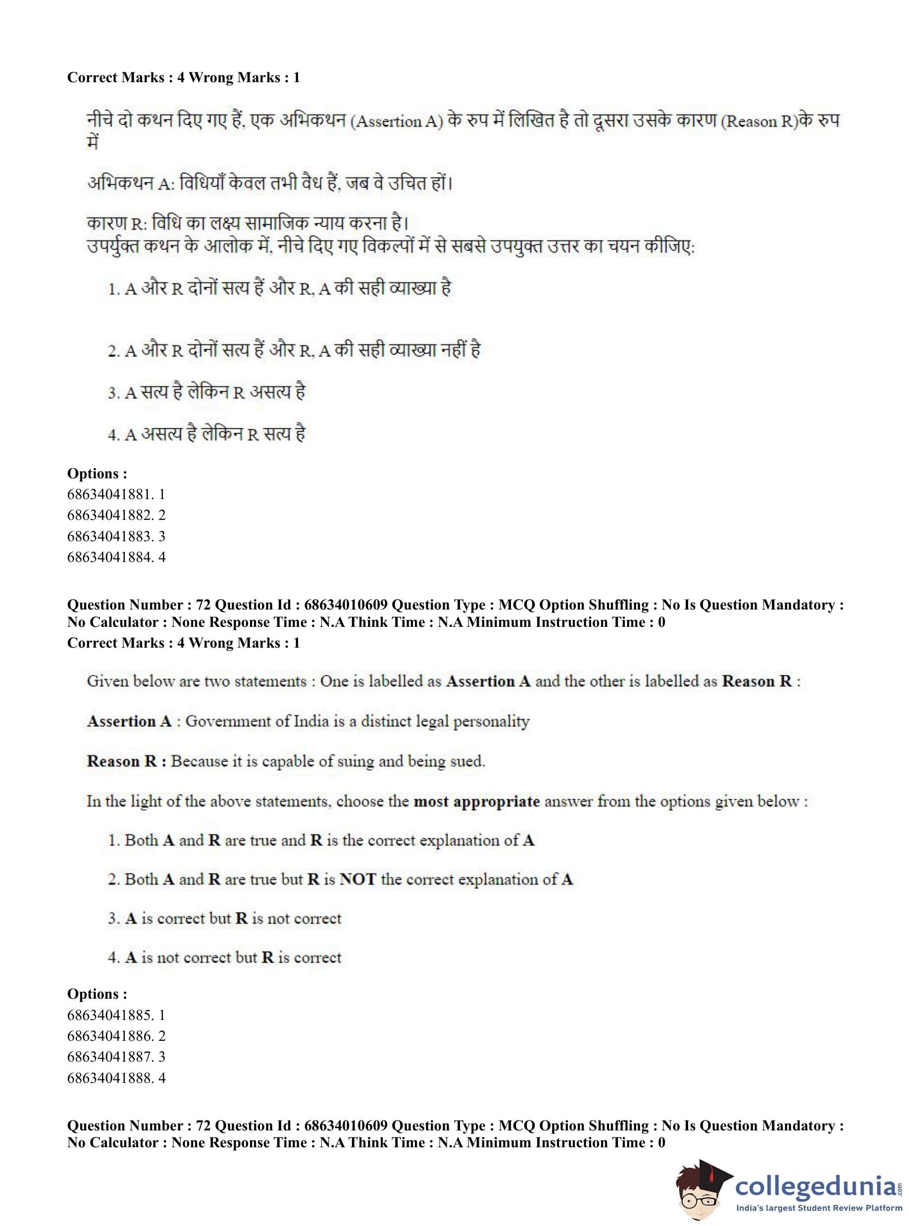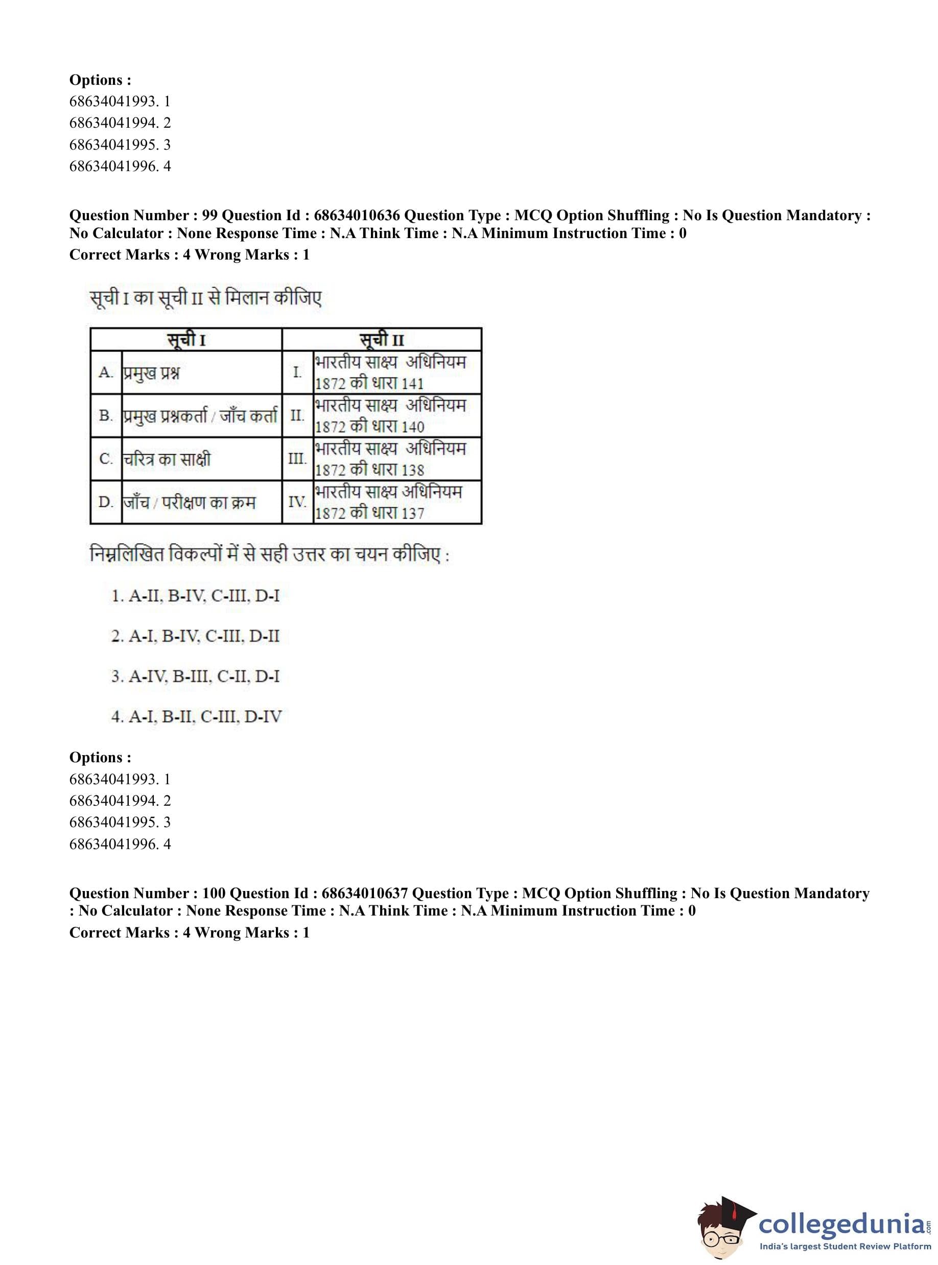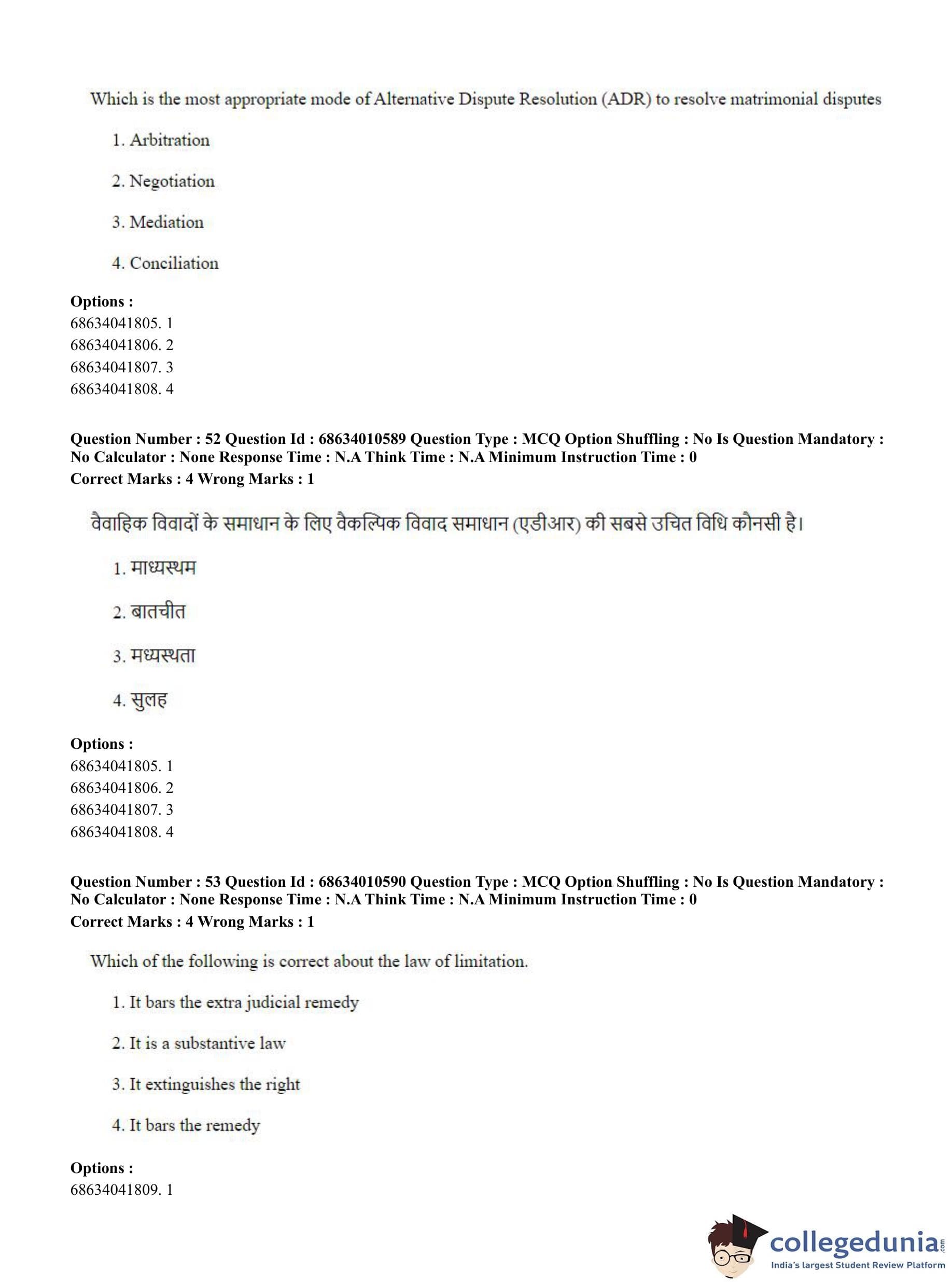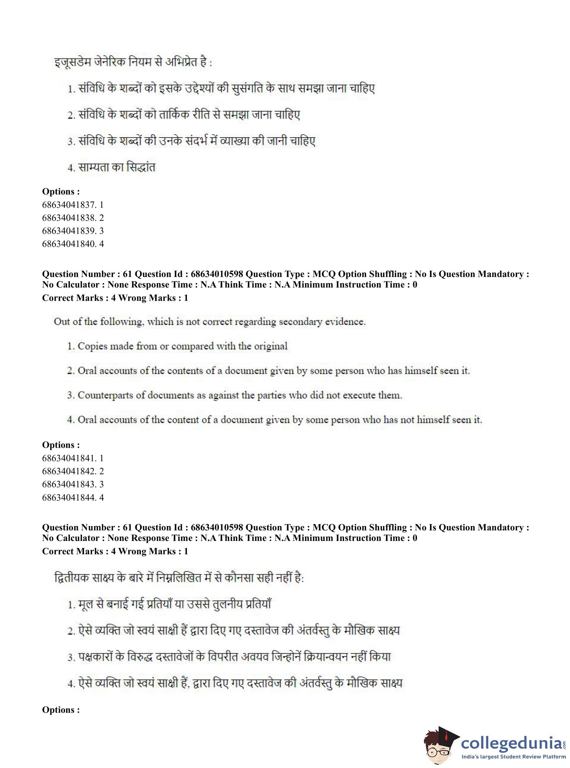 CUET PG 2023 LLM Question Paper in Hindi (June 9 - Shift 1)