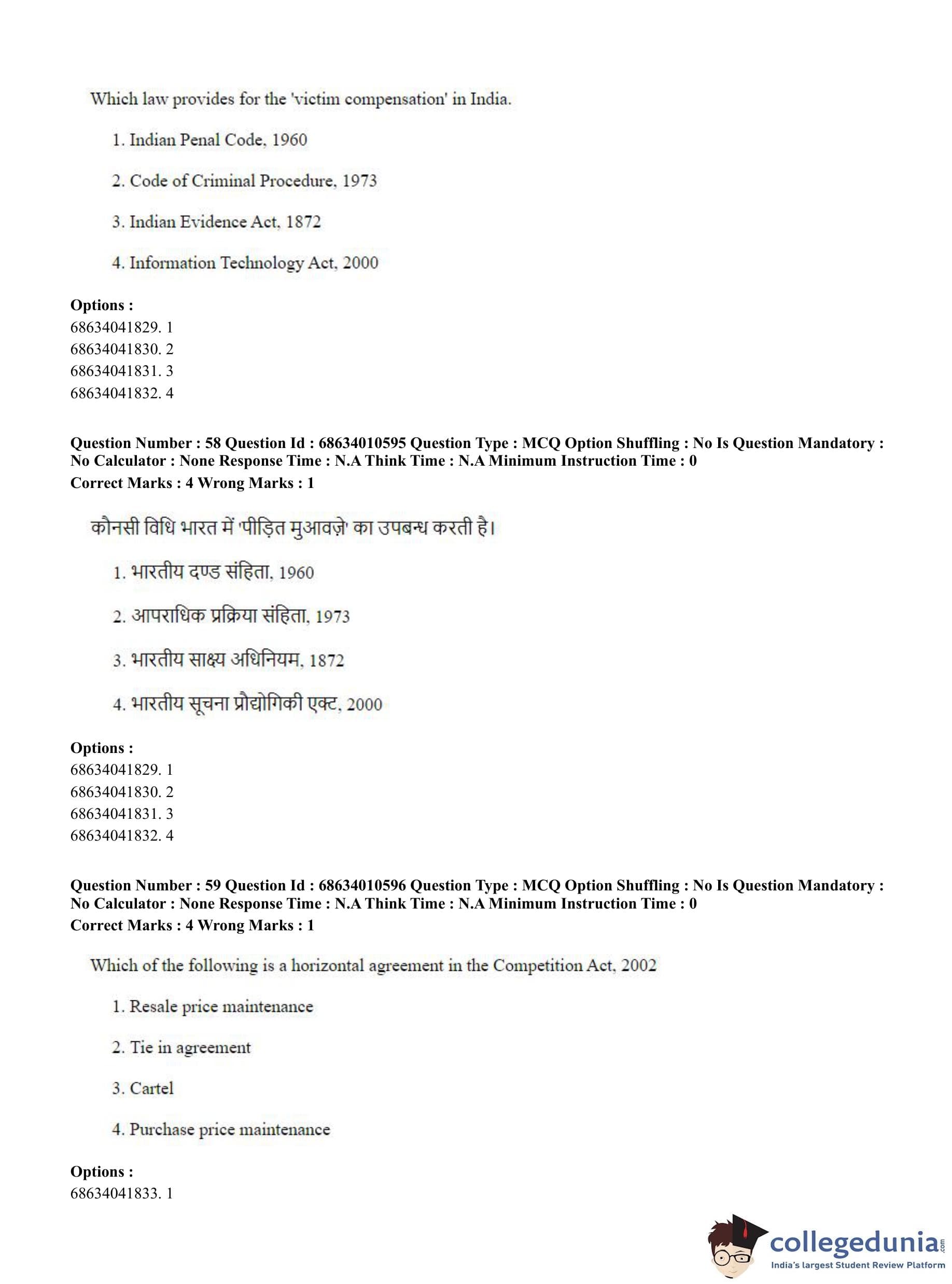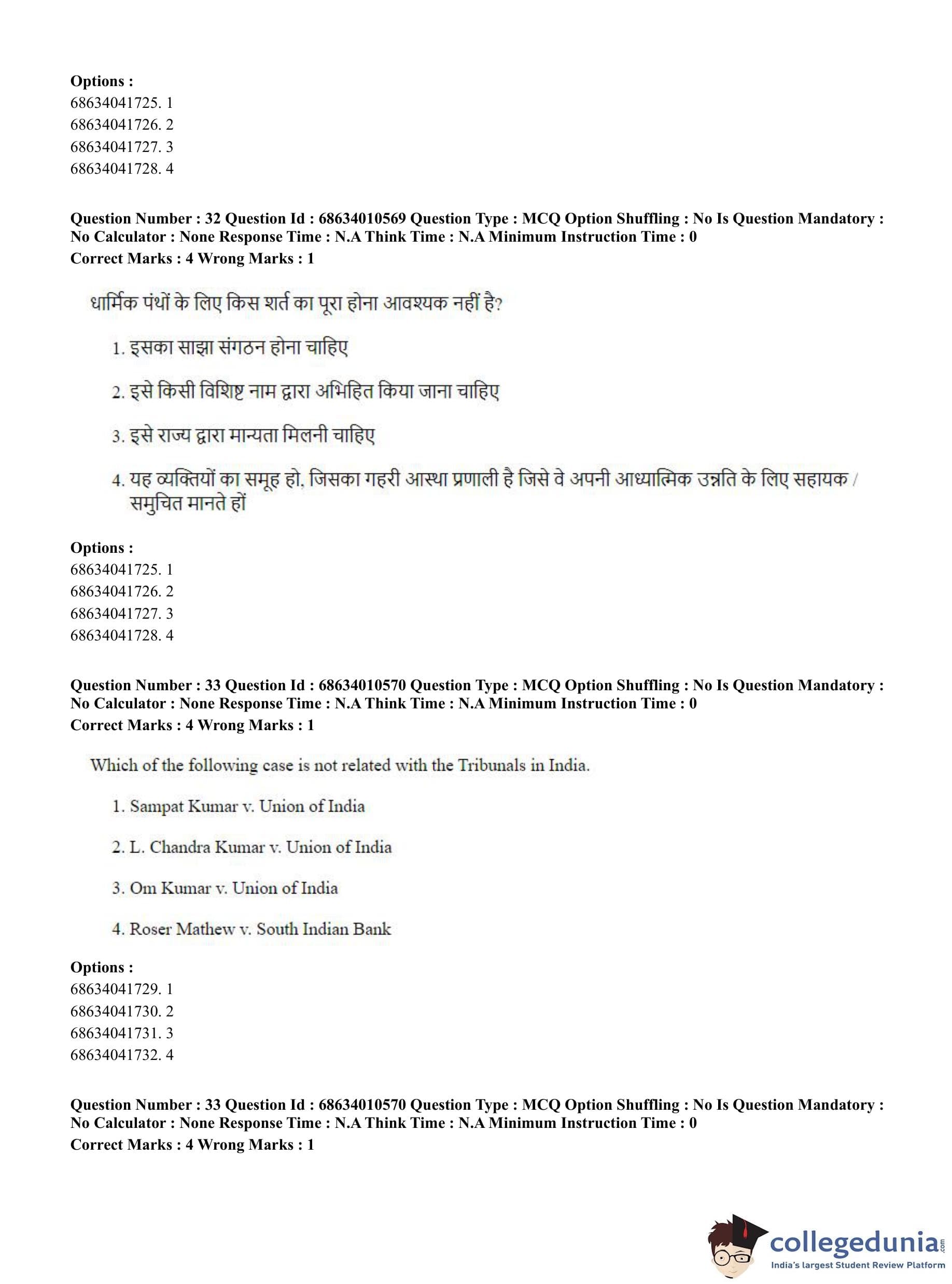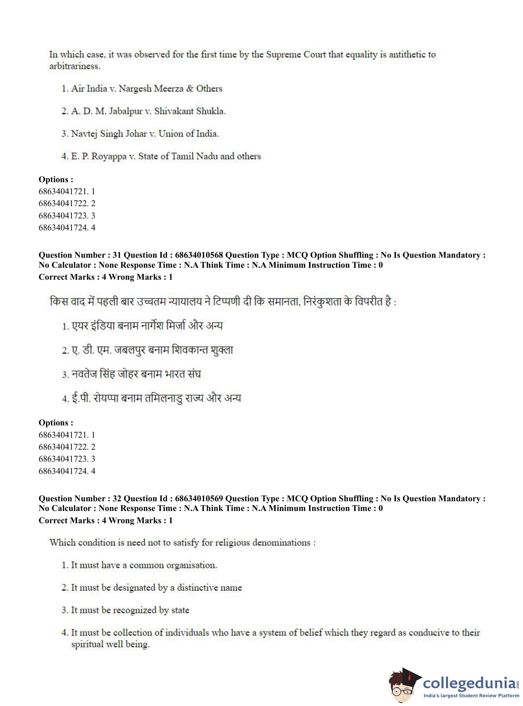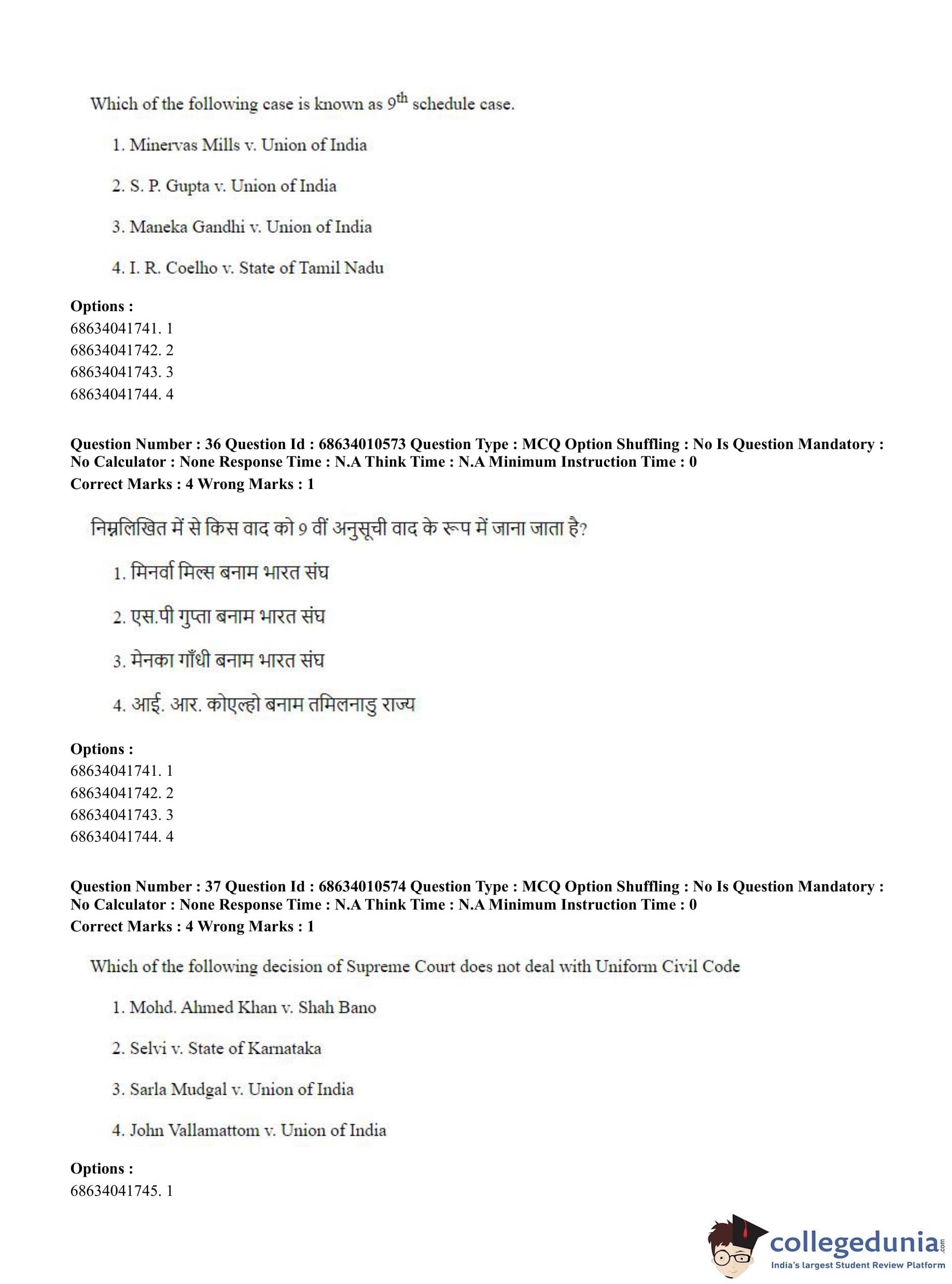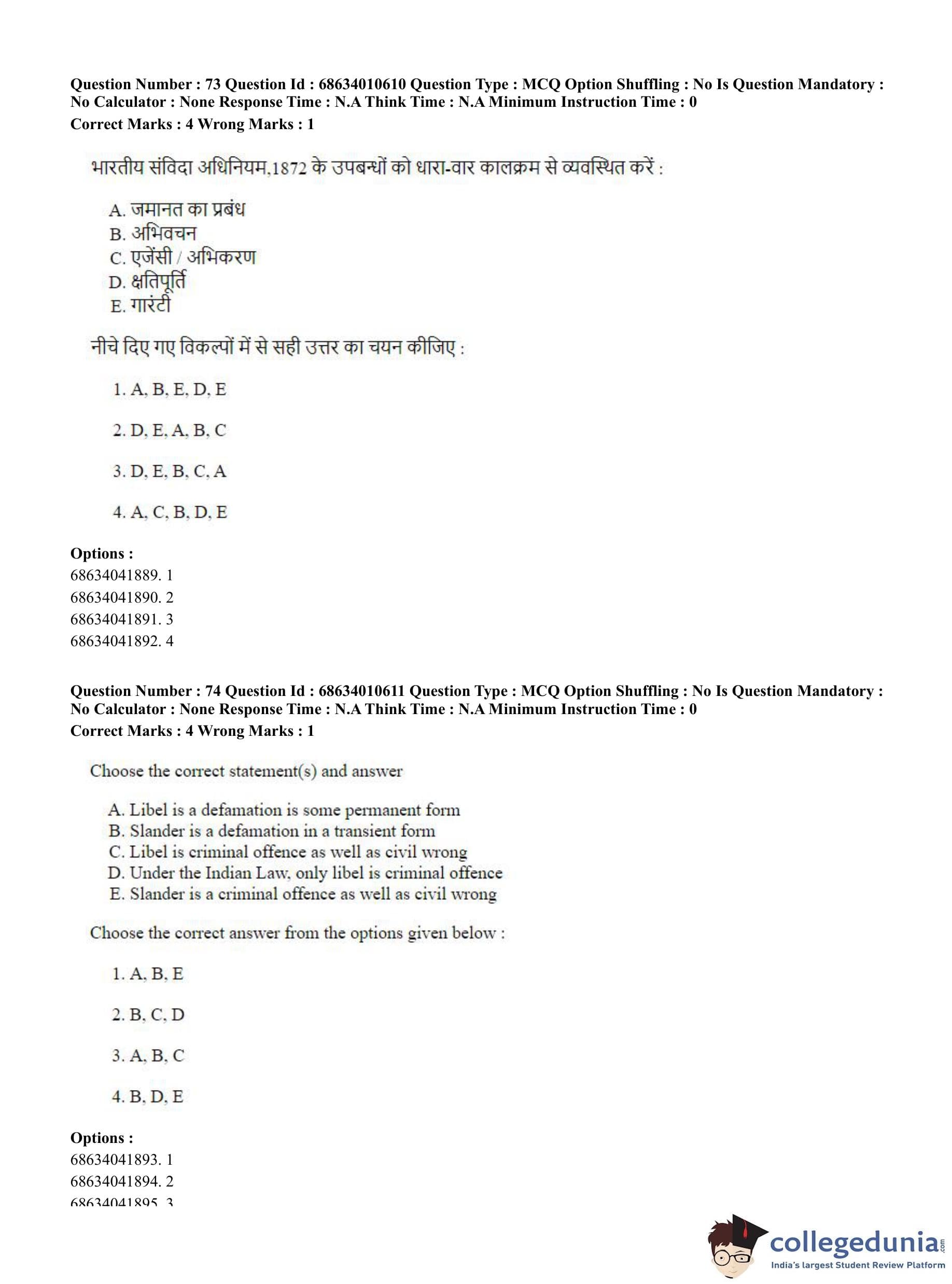 CUET PG 2023 LLM Question Paper in Hindi (June 9 - Shift 1)