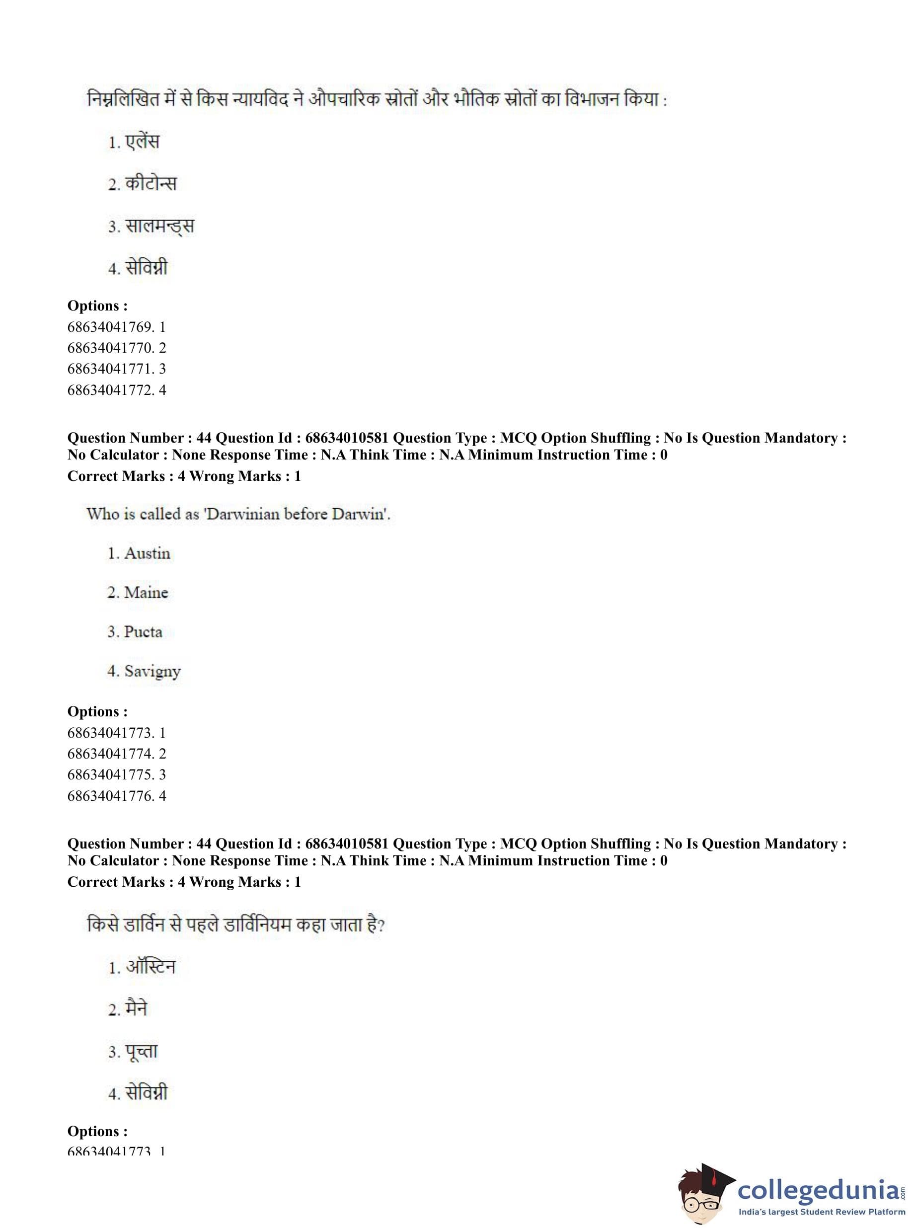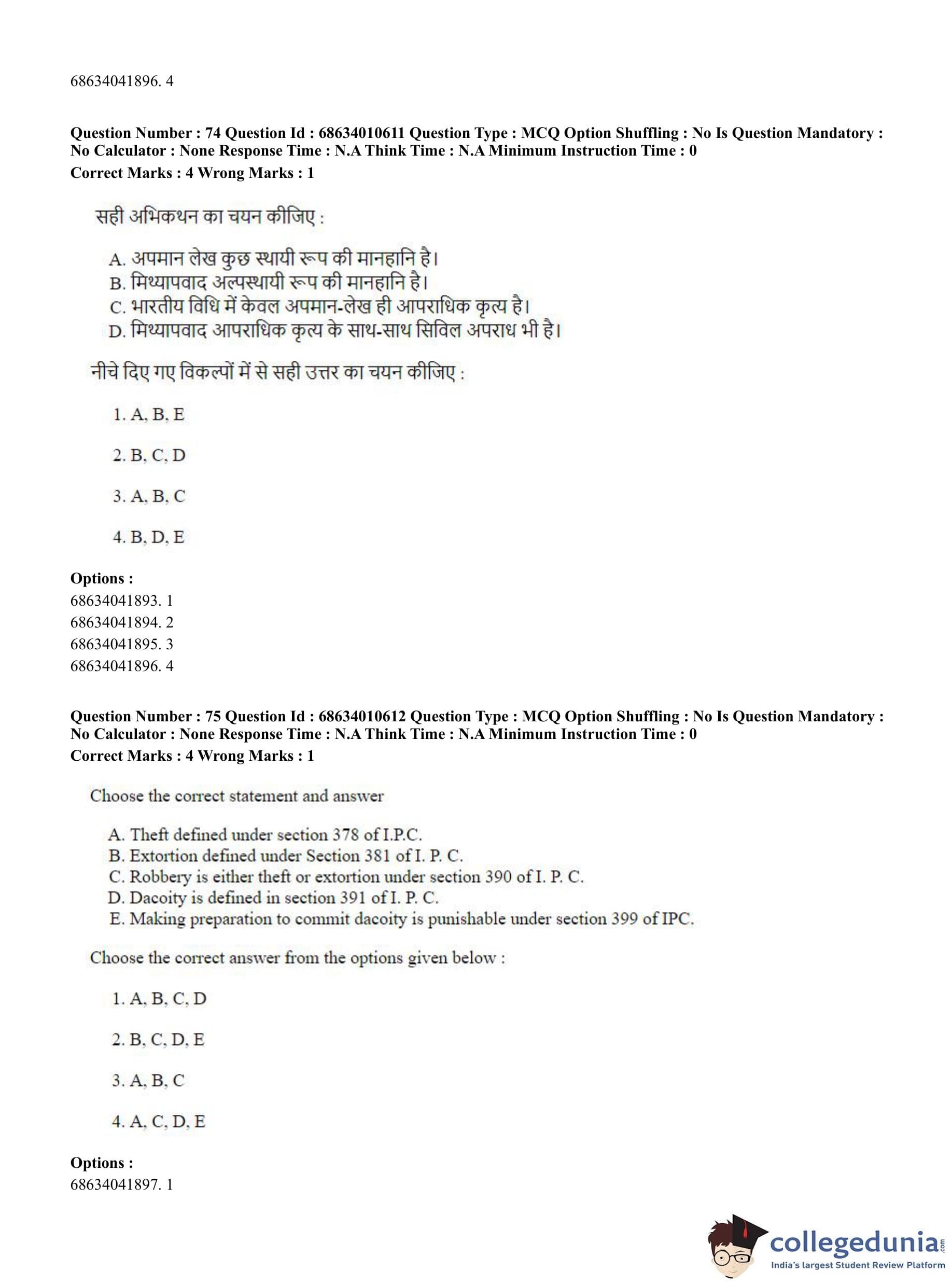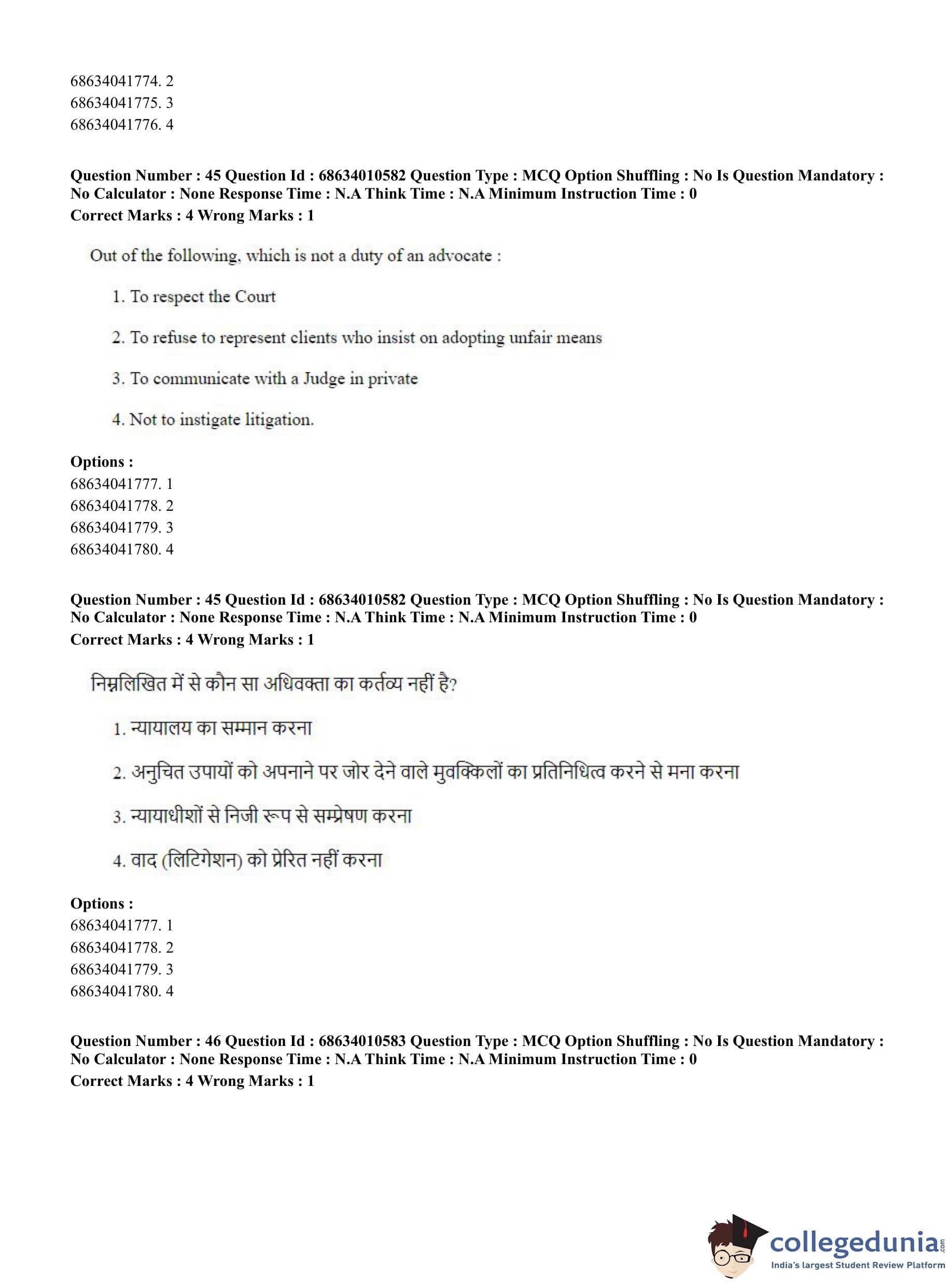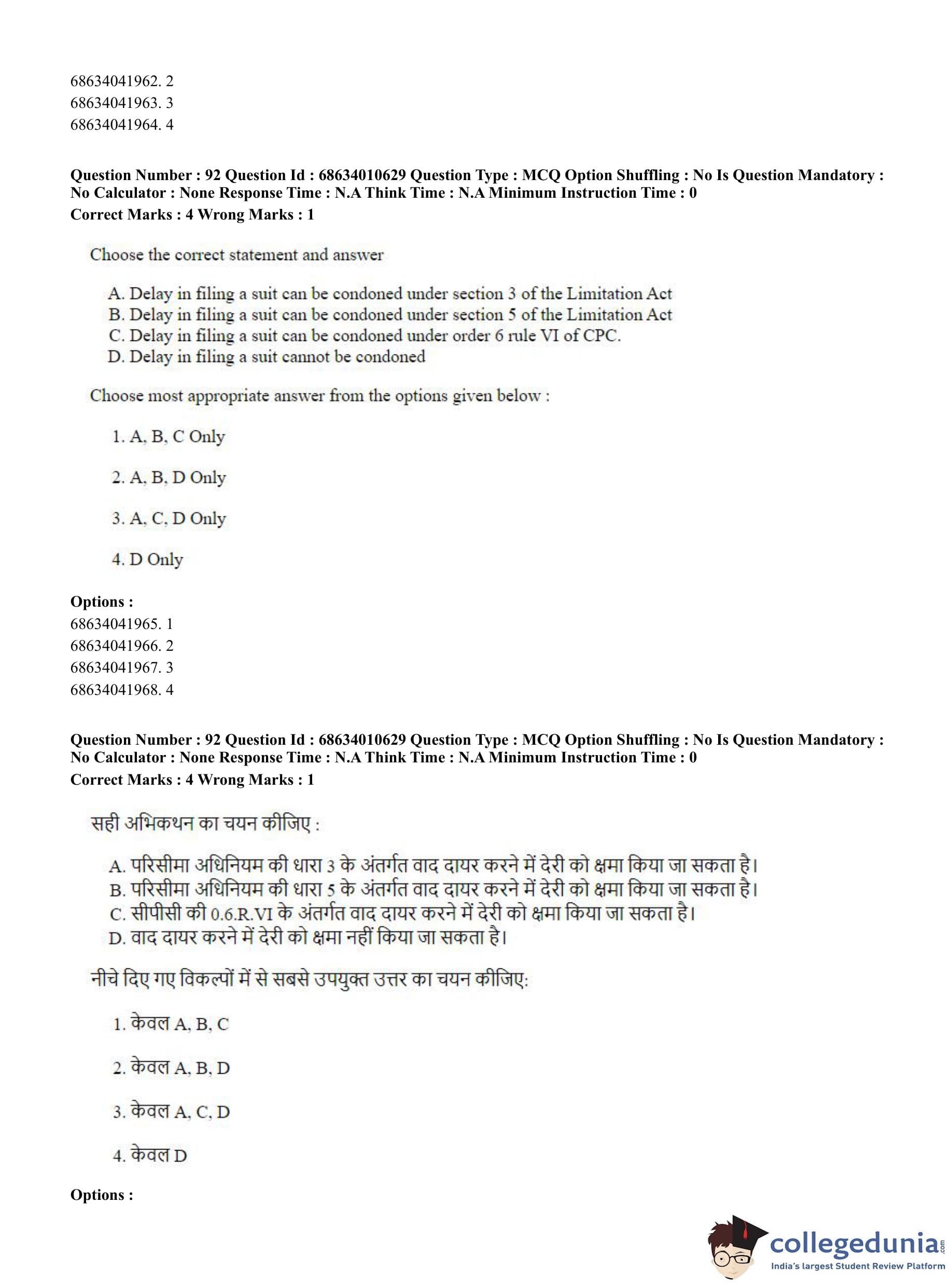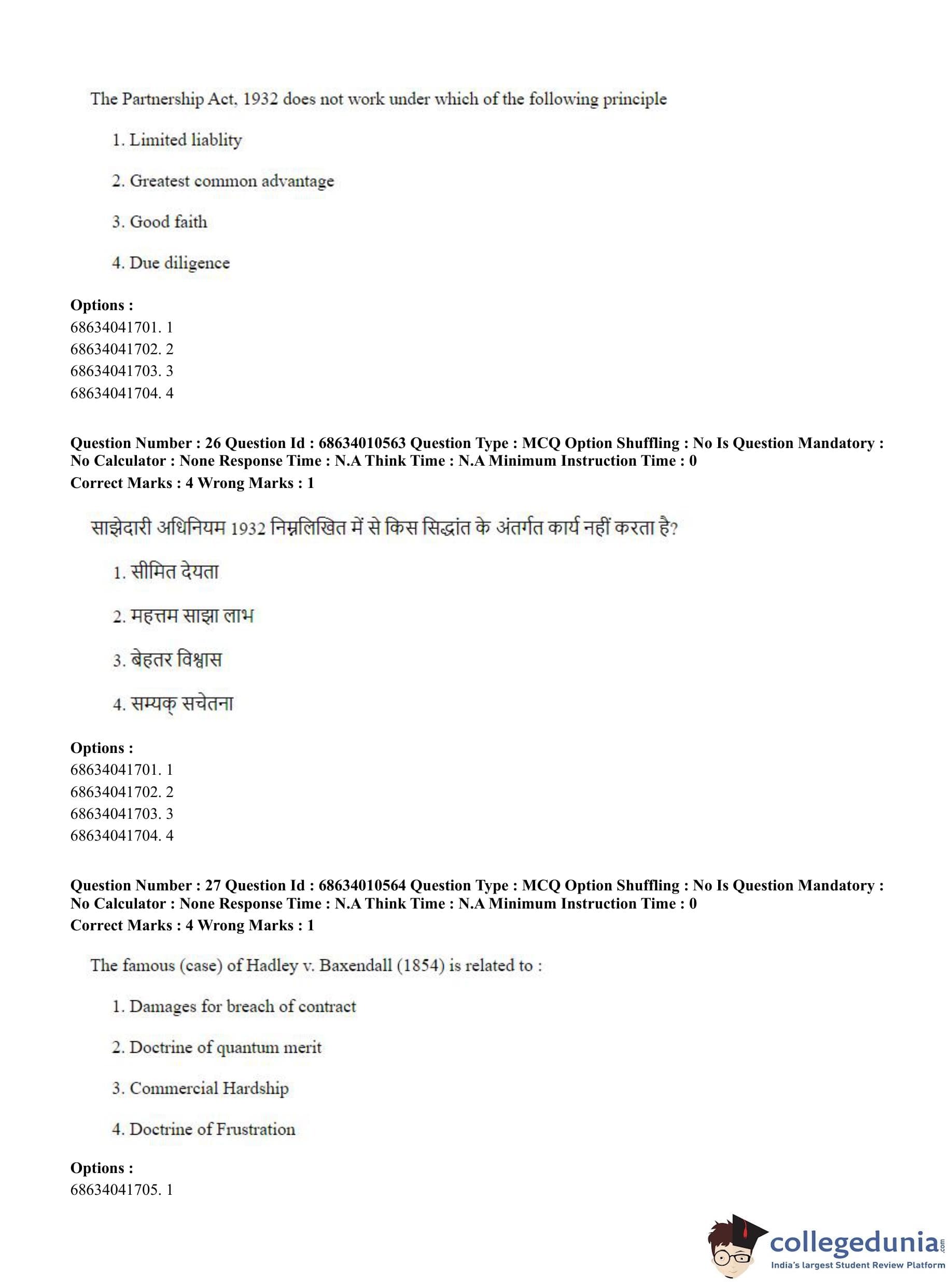 CUET PG 2023 LLM Question Paper in Hindi (June 9 - Shift 1)