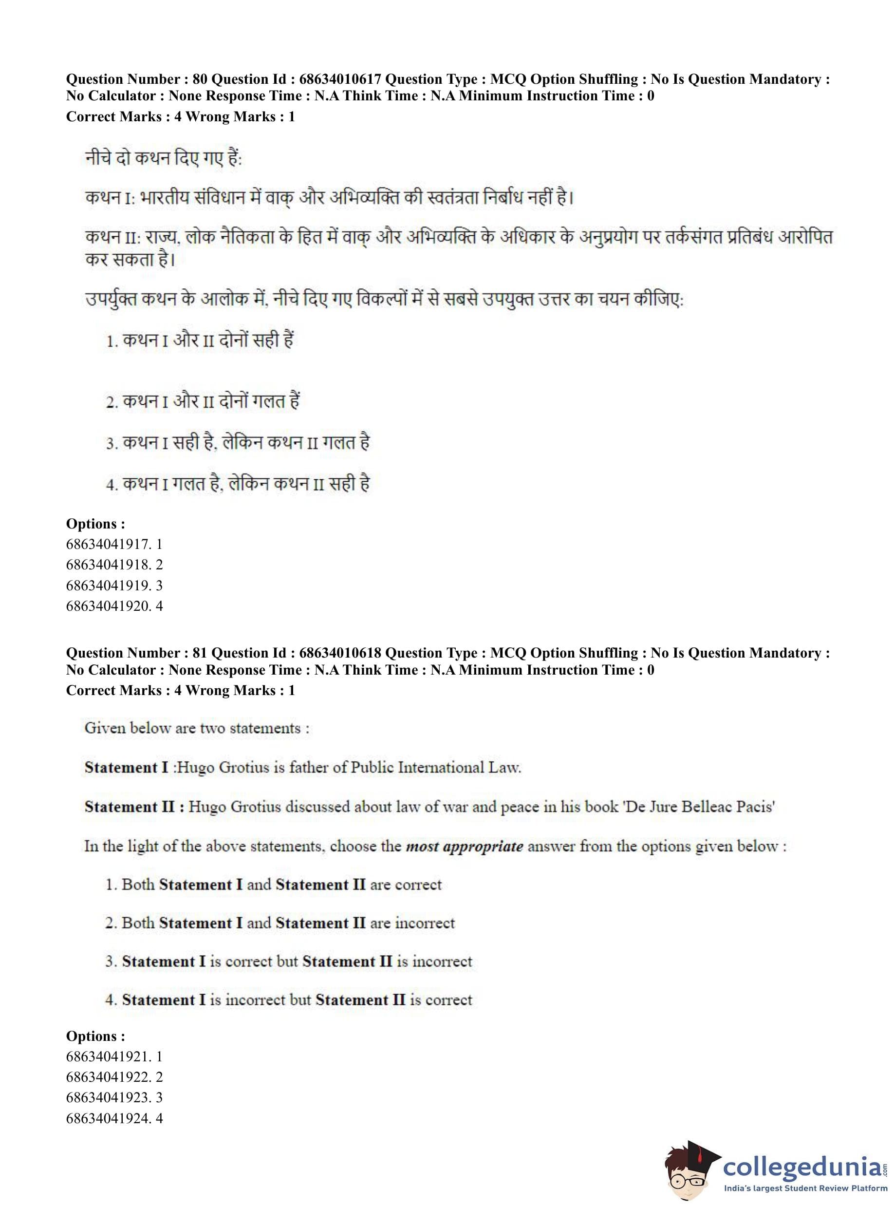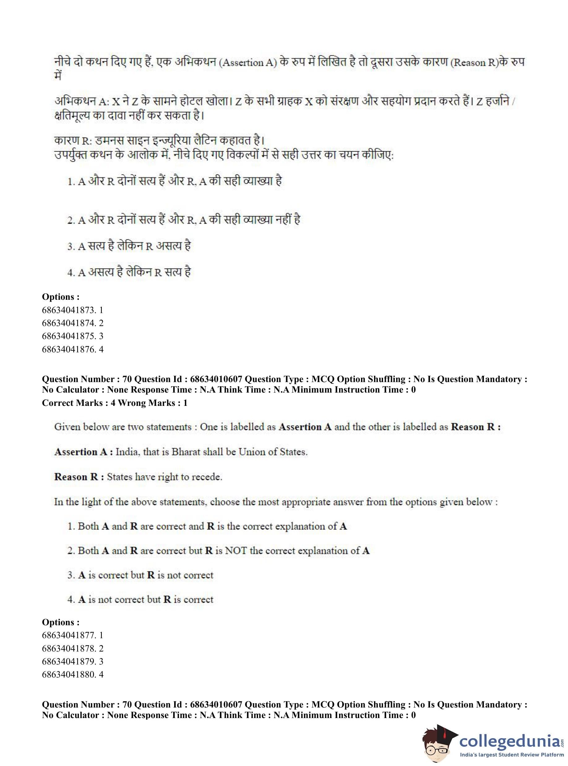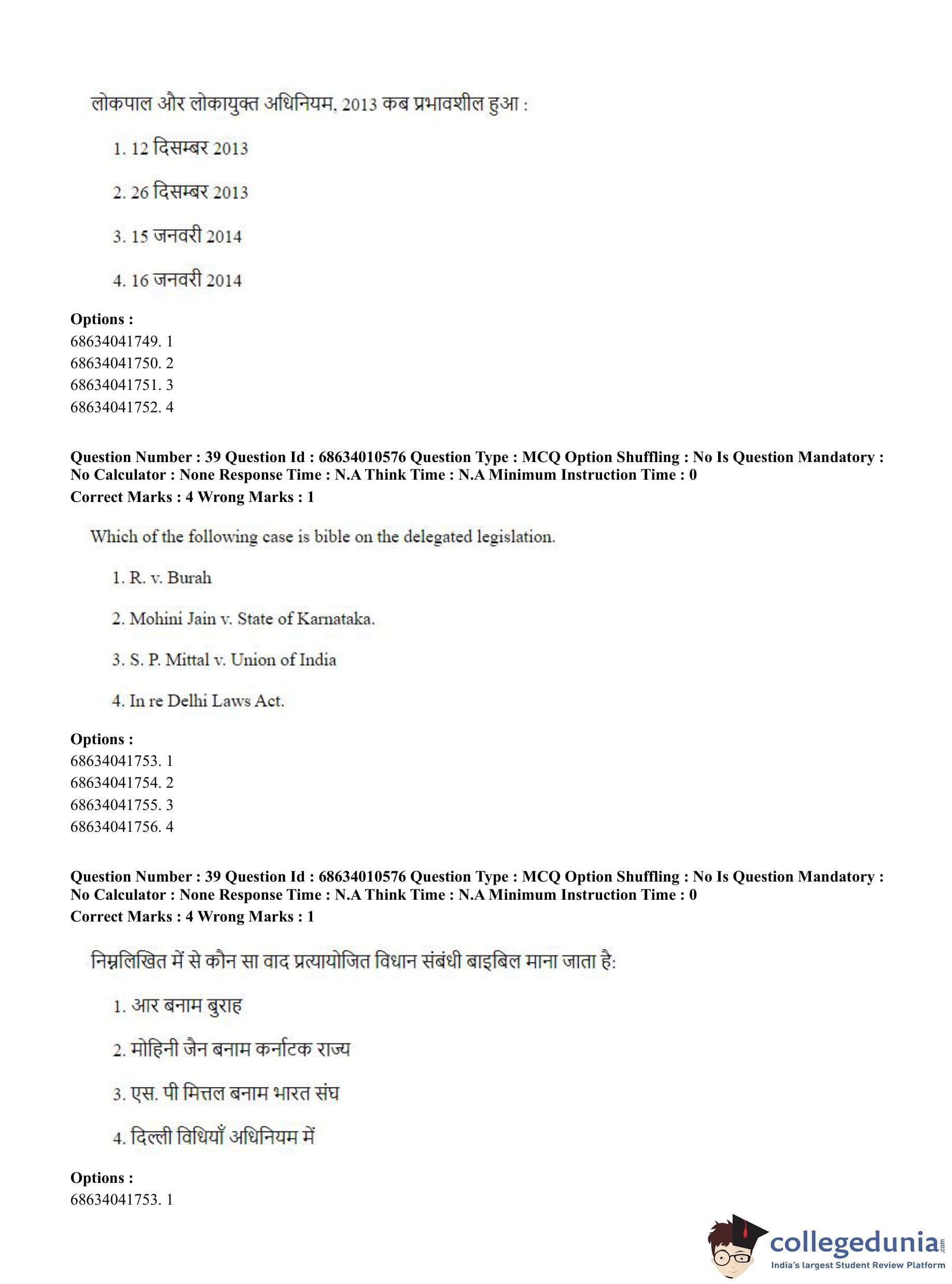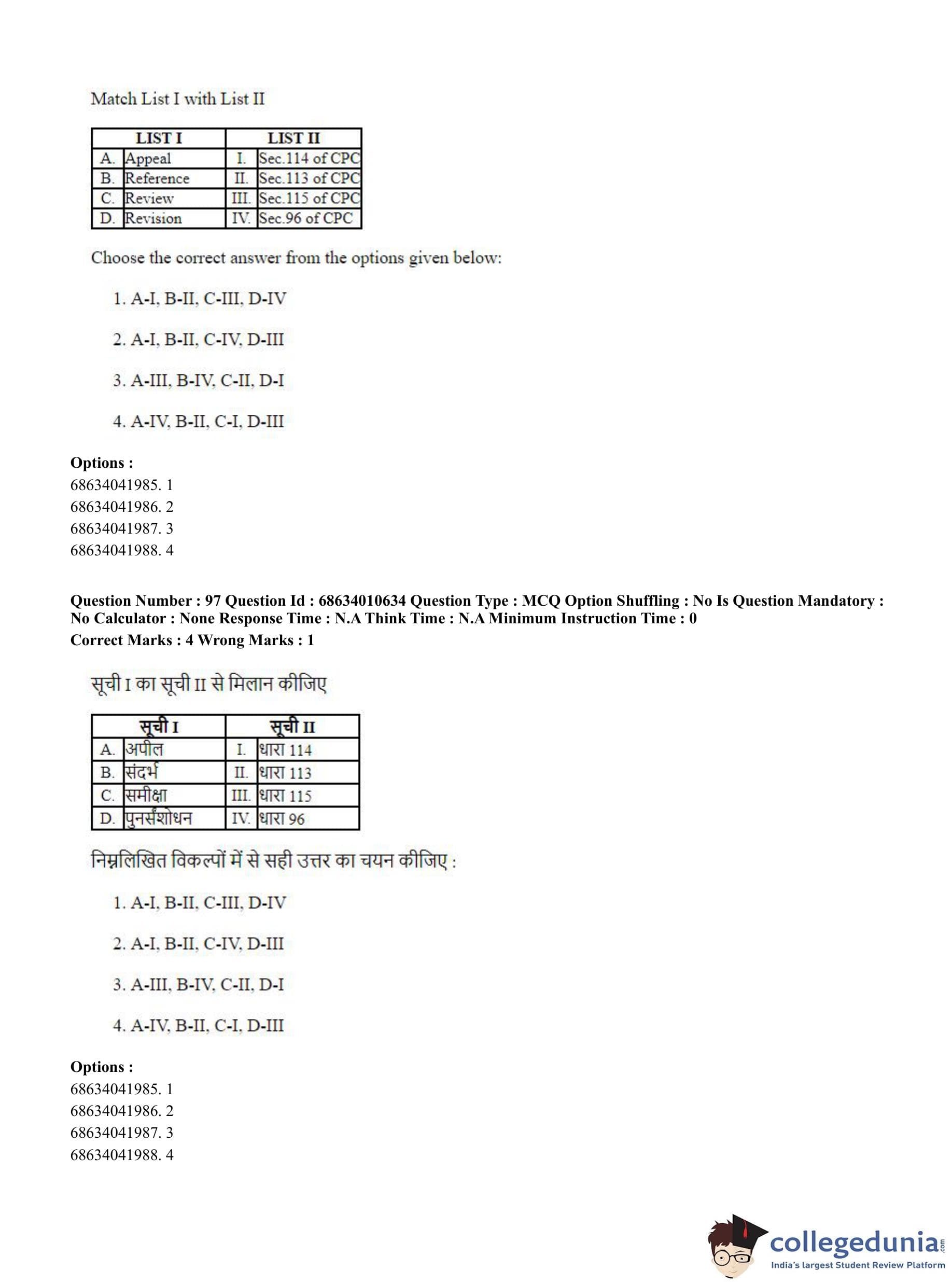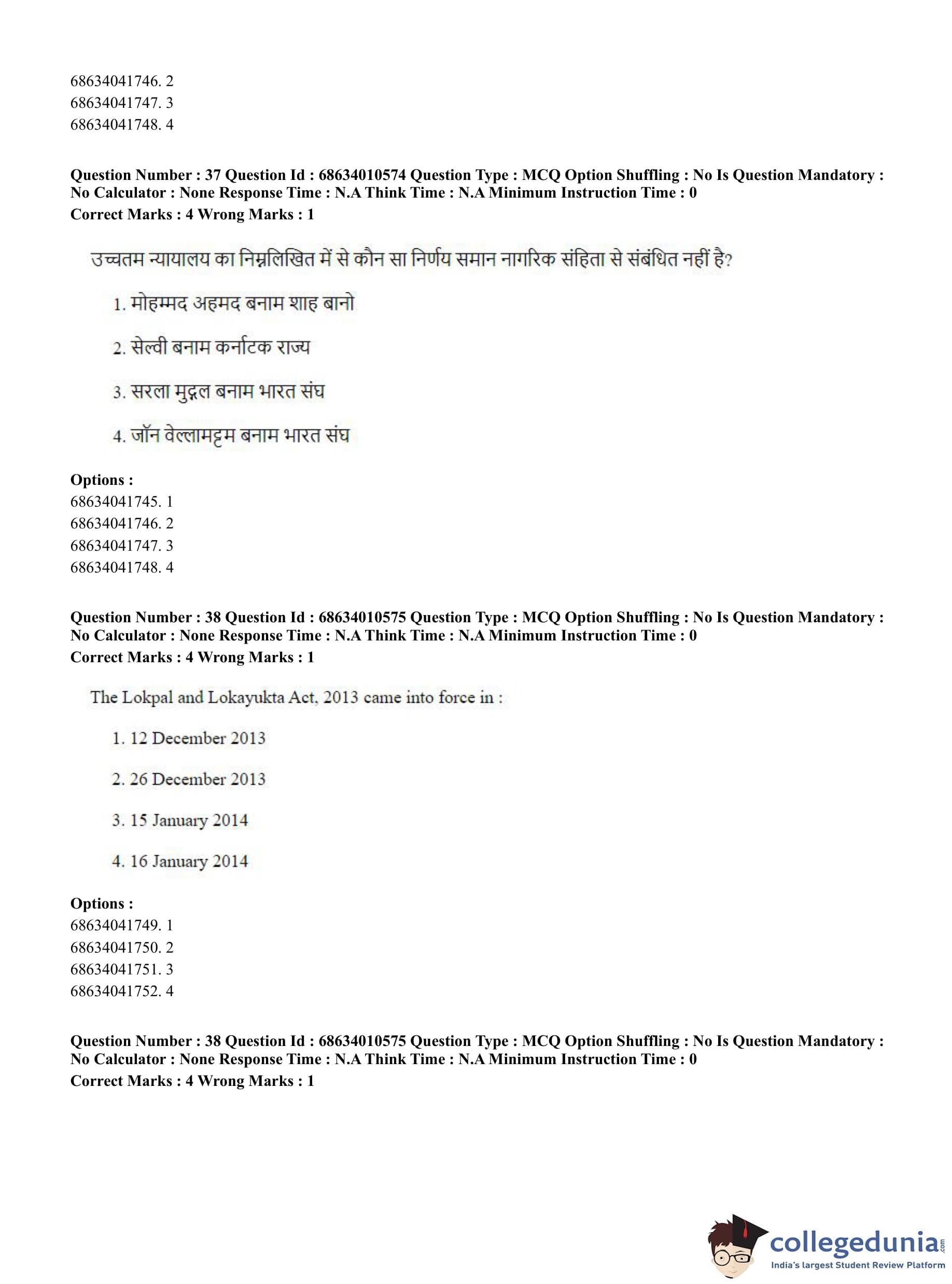 CUET PG 2023 LLM Question Paper in Hindi (June 9 - Shift 1)