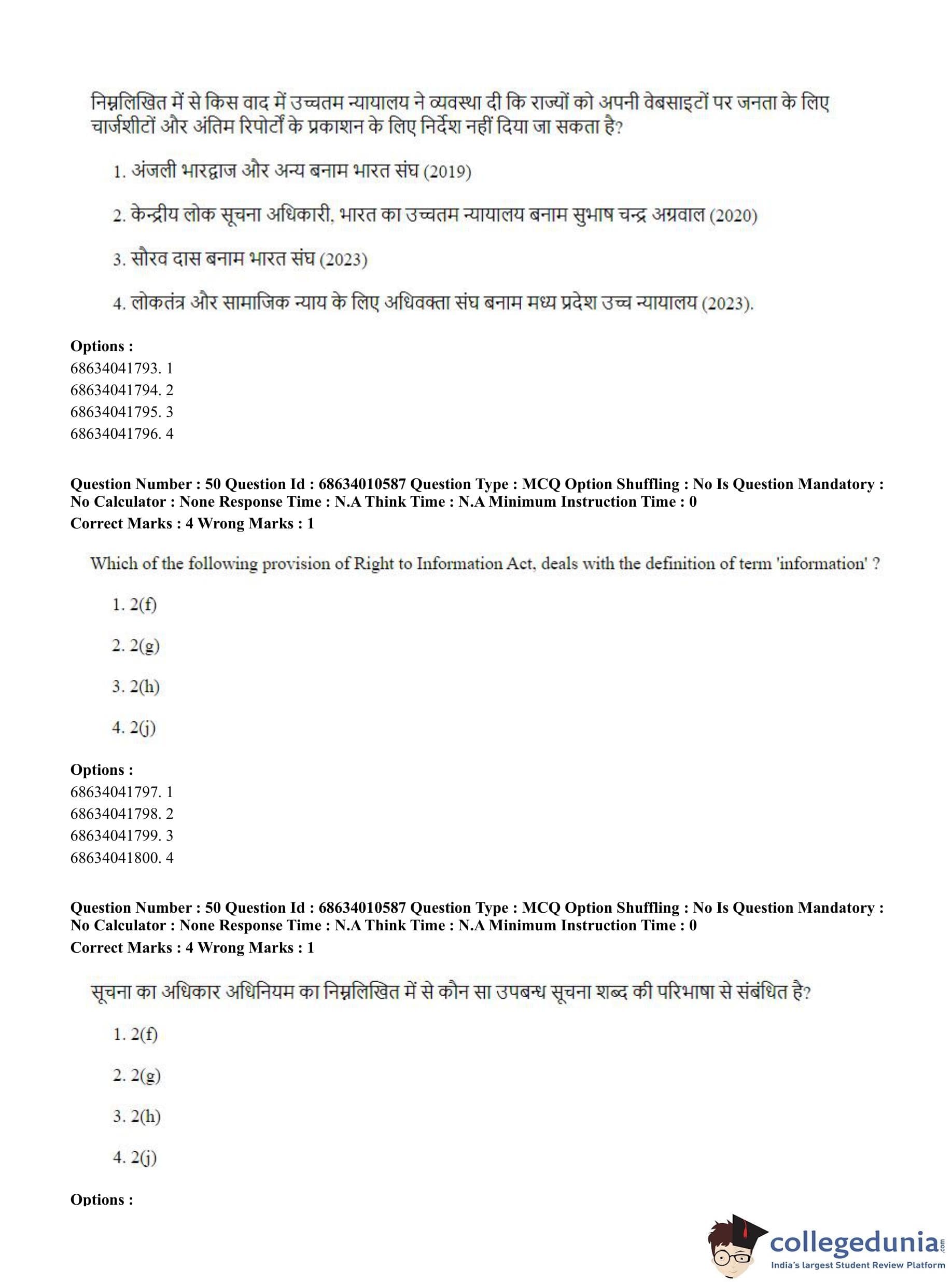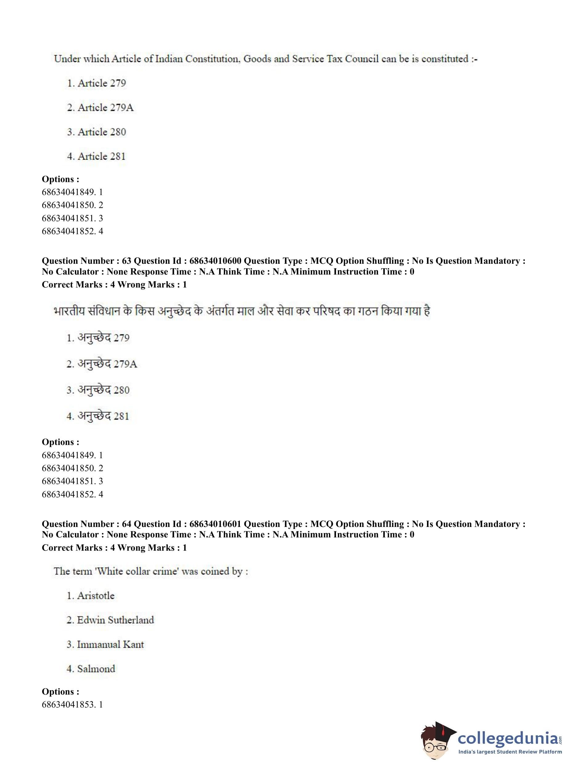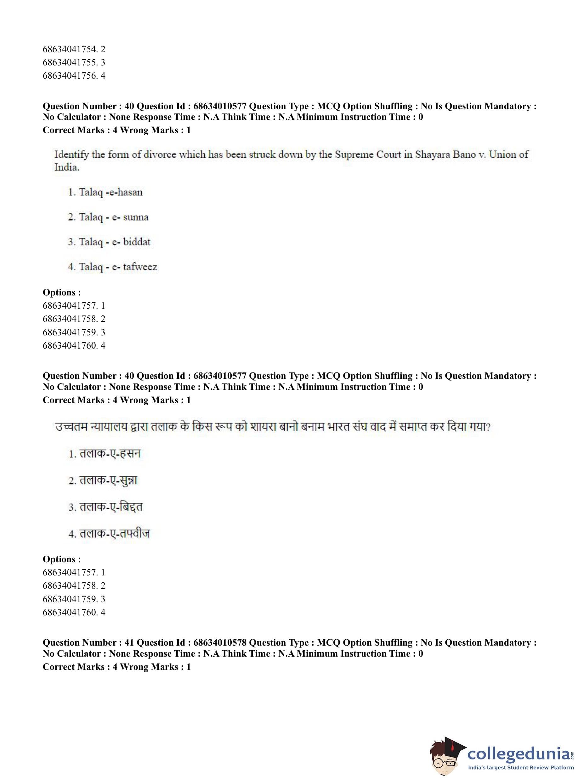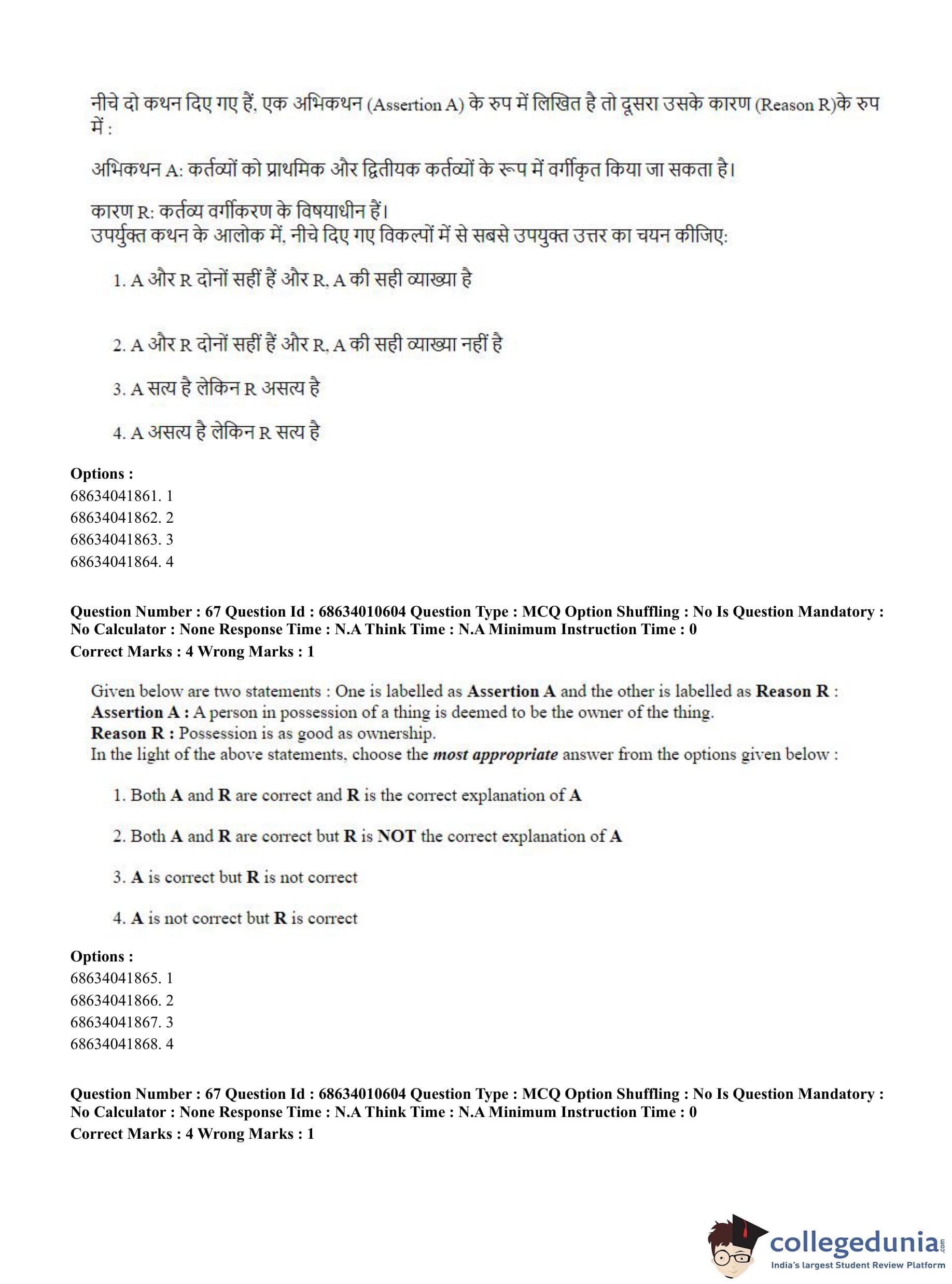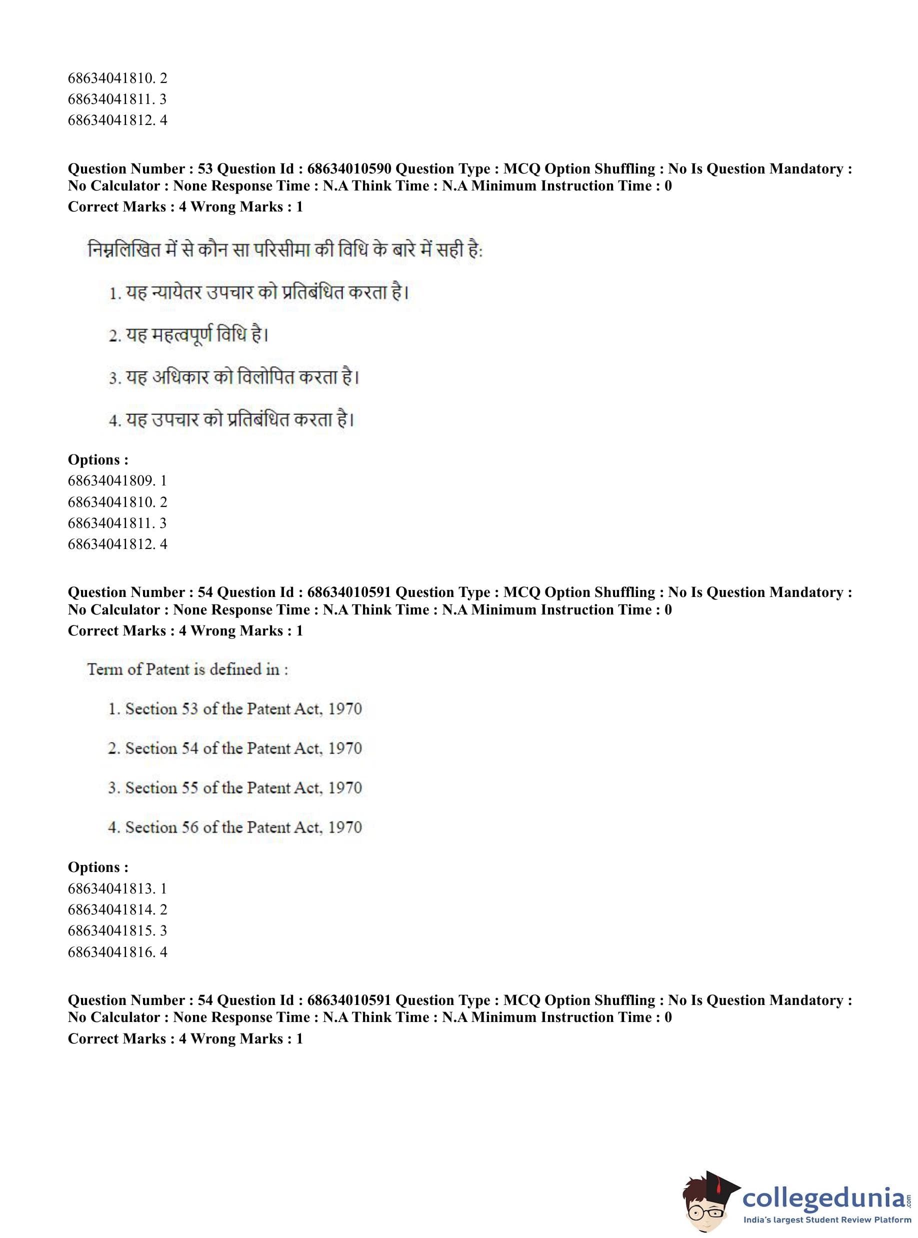 CUET PG 2023 LLM Question Paper in Hindi (June 9 - Shift 1)