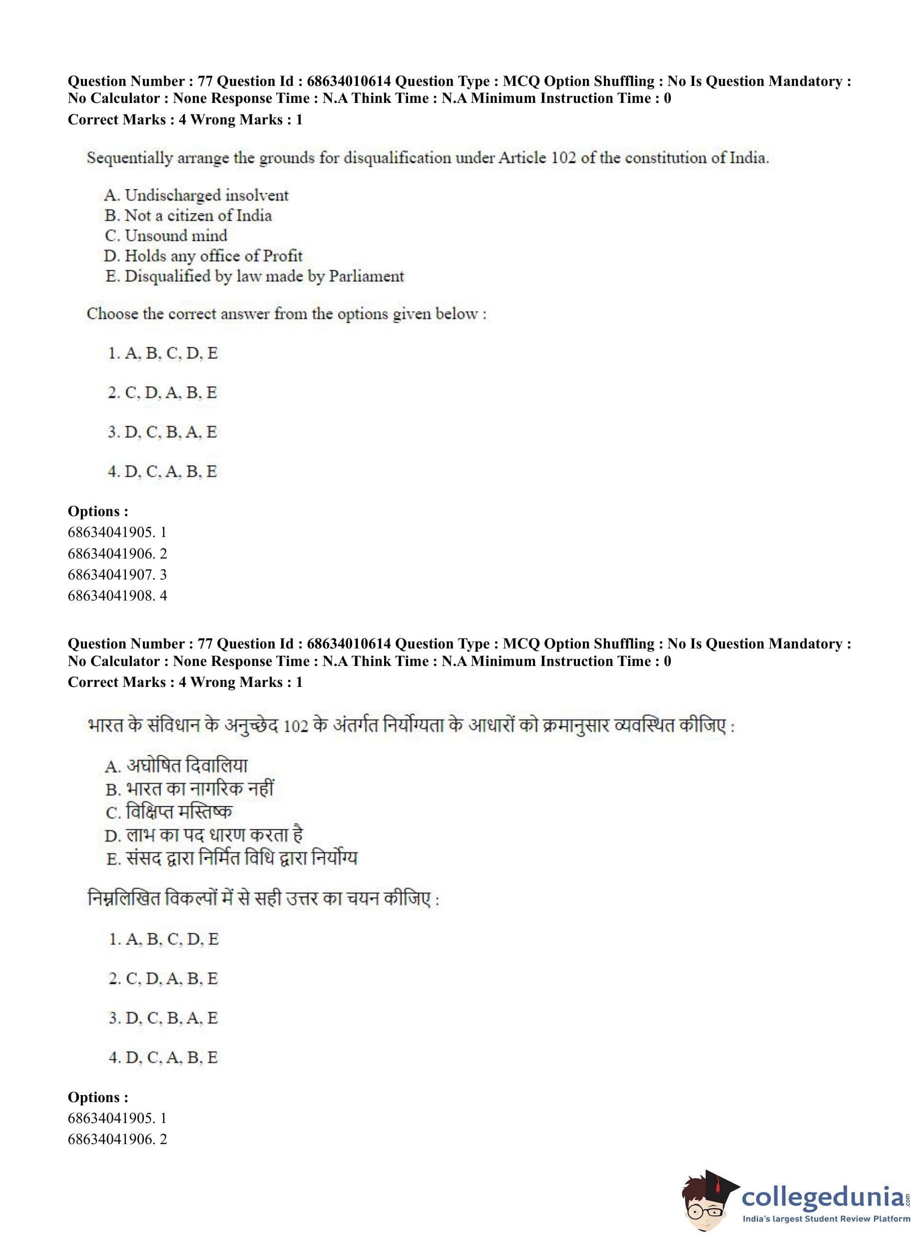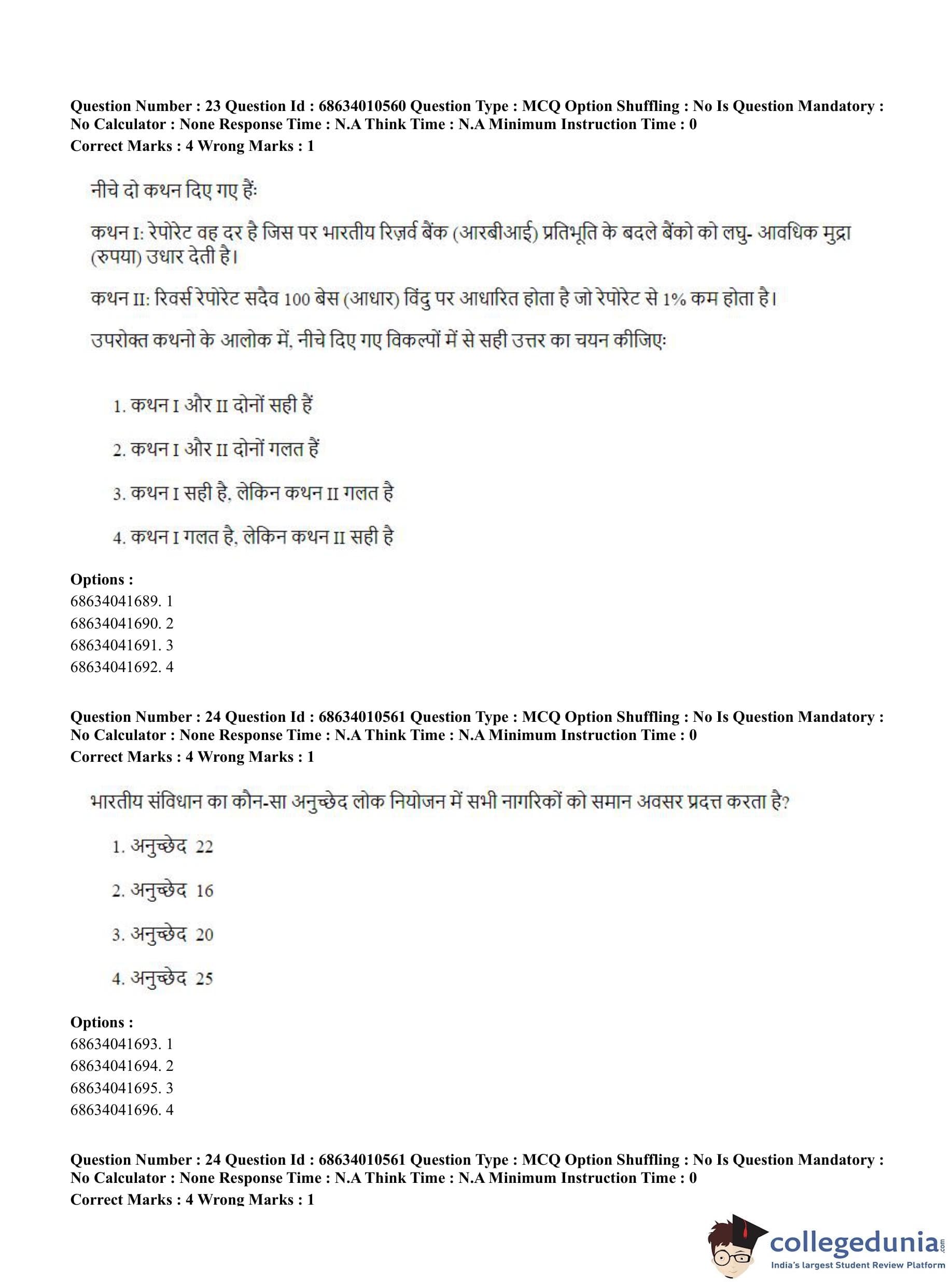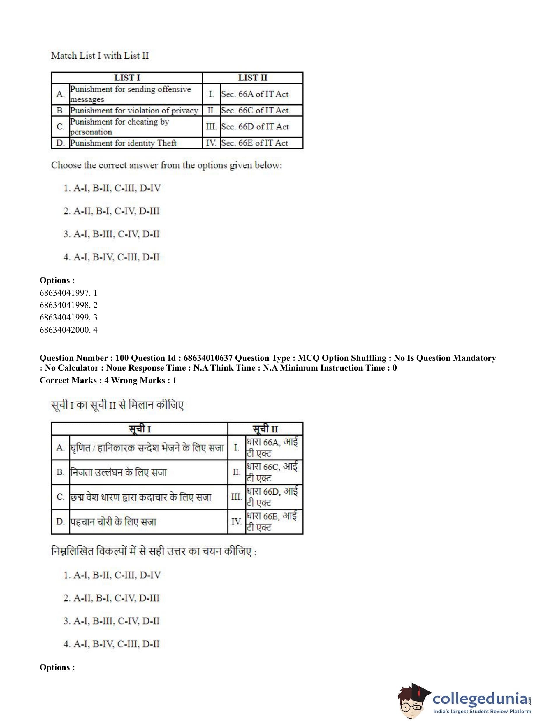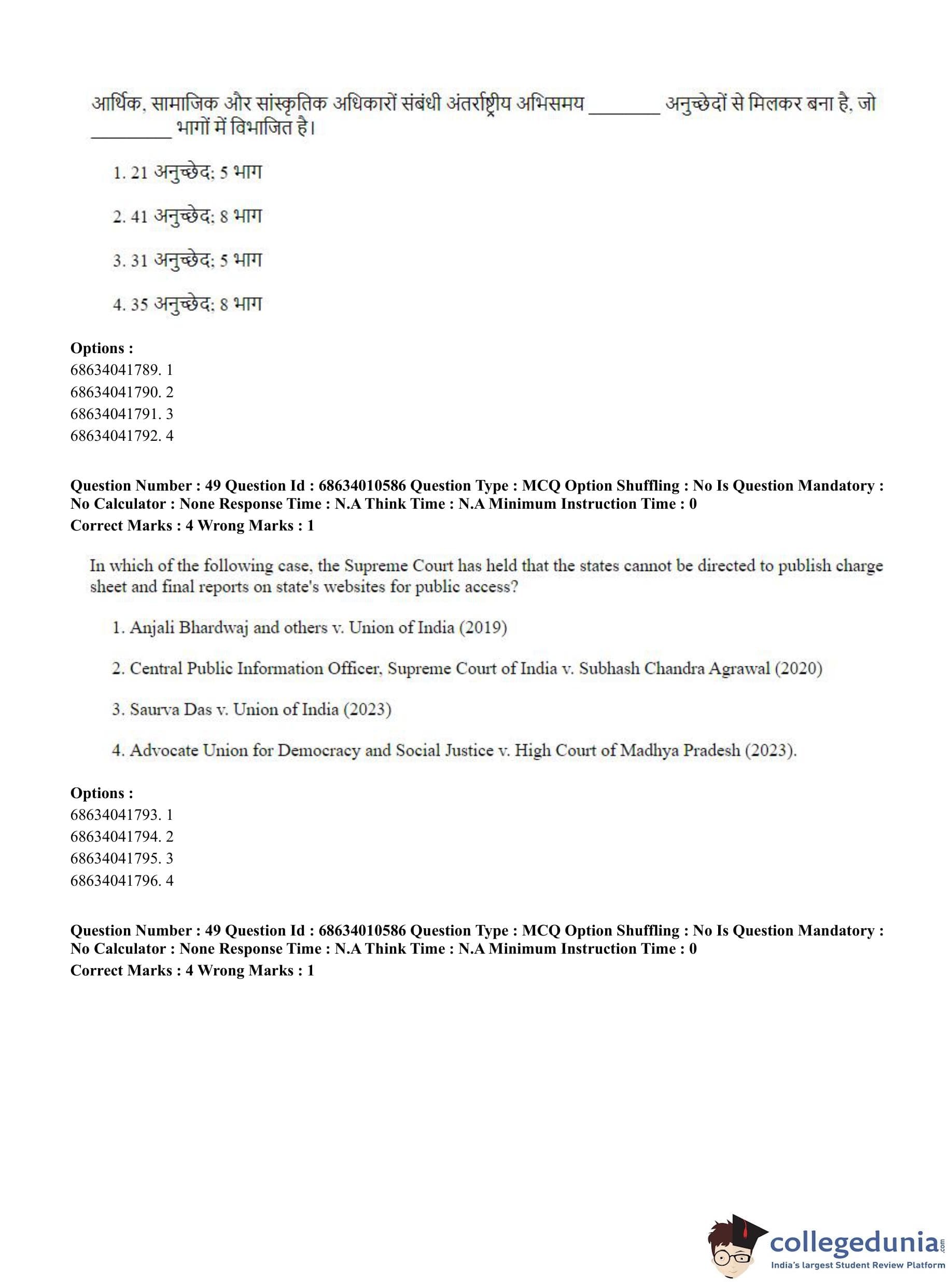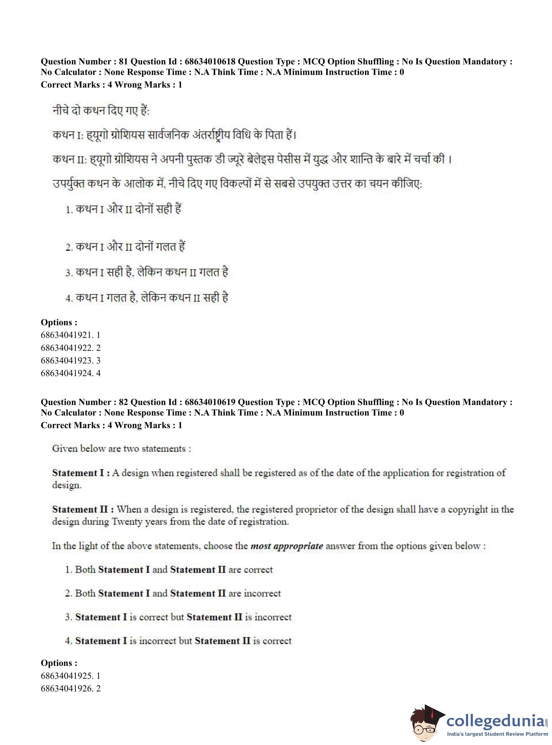 CUET PG 2023 LLM Question Paper in Hindi (June 9 - Shift 1)