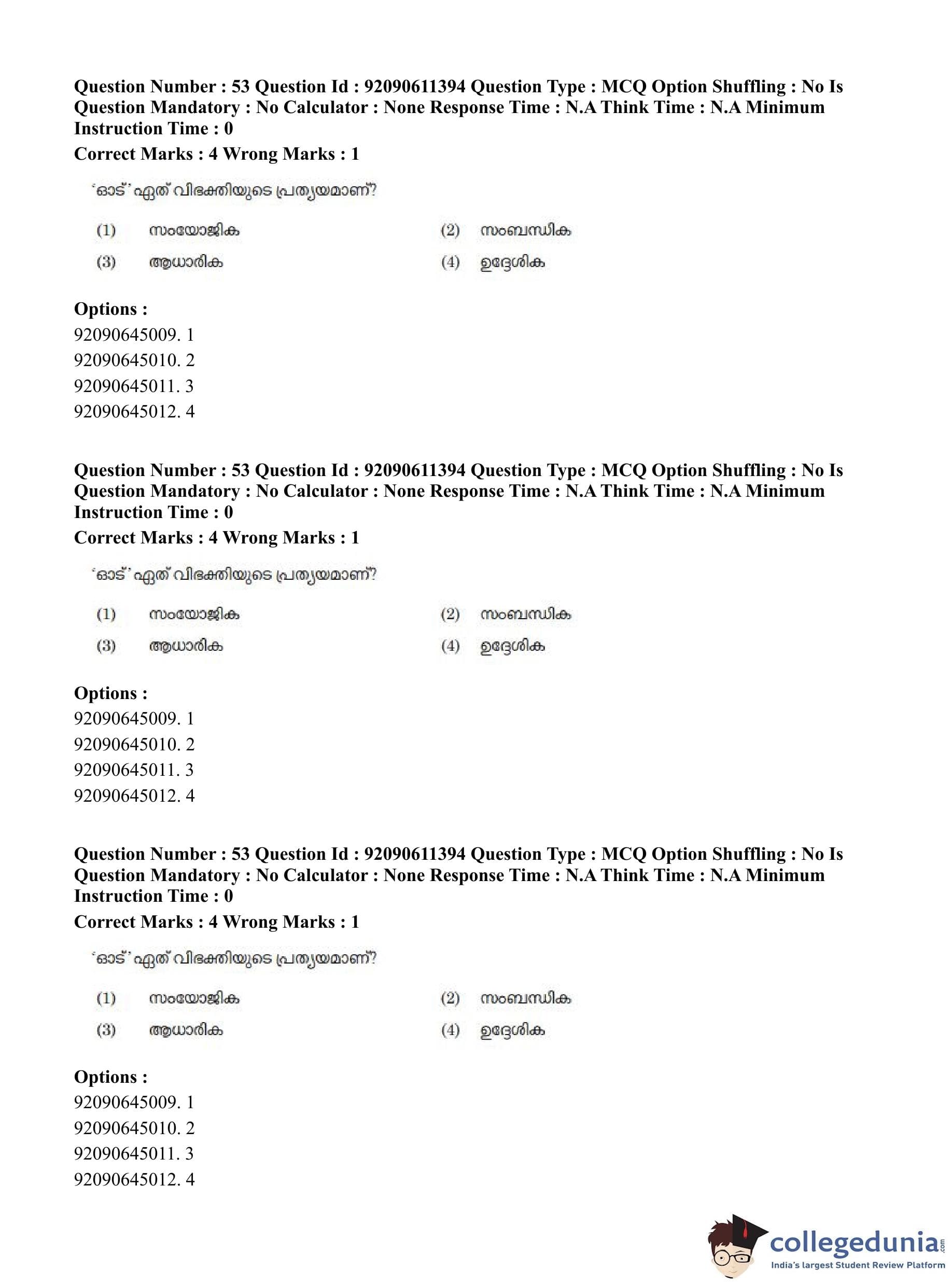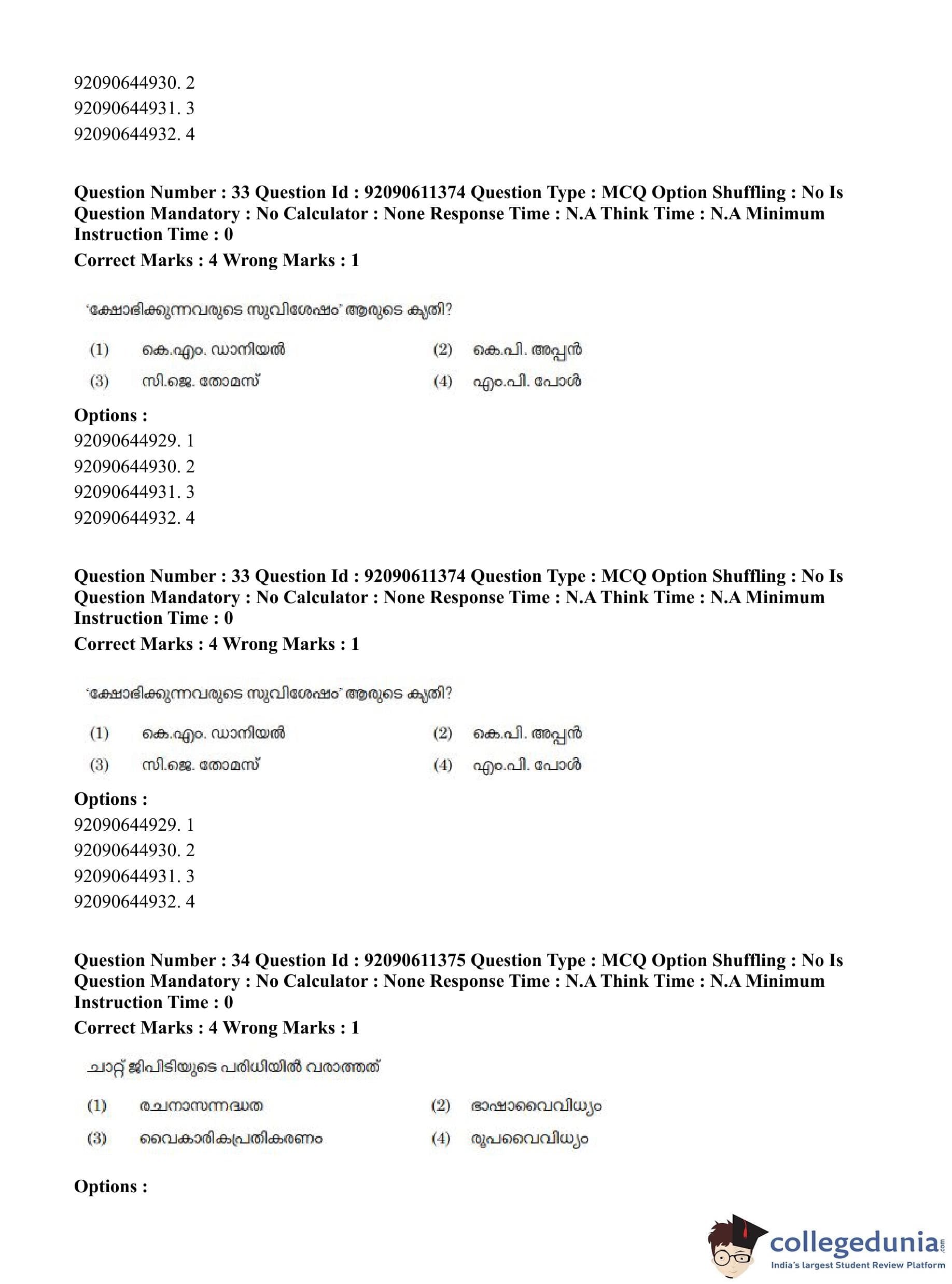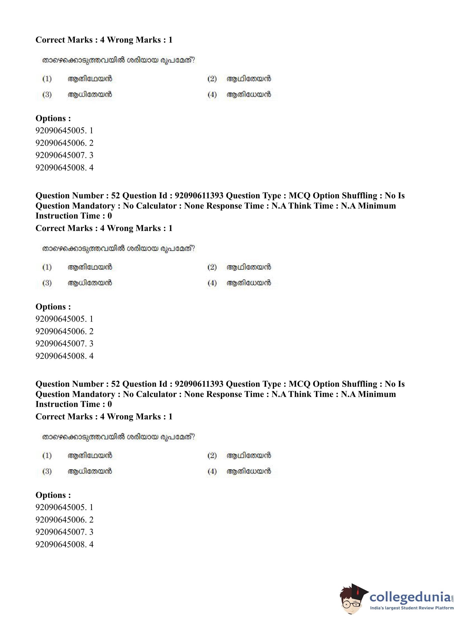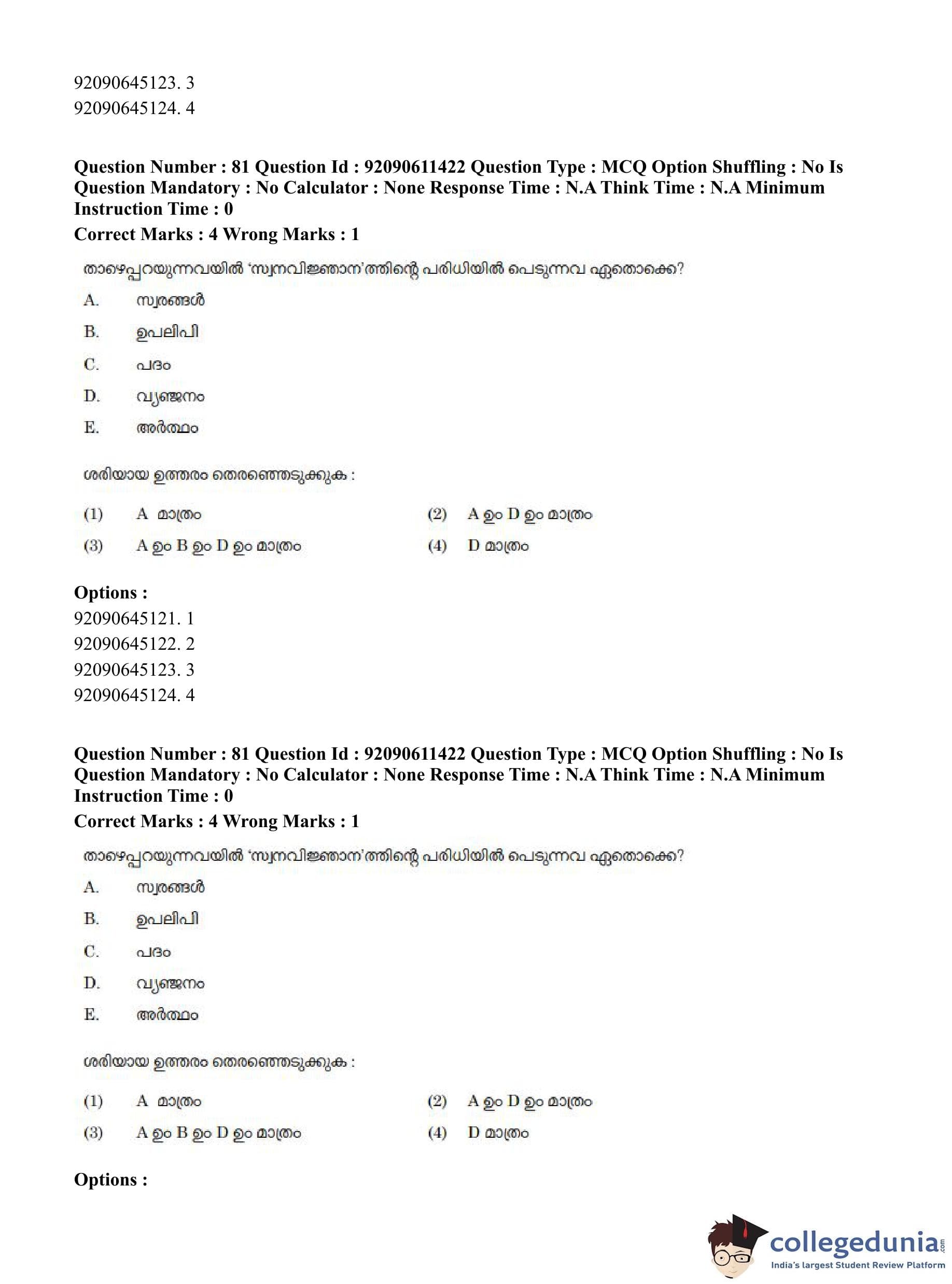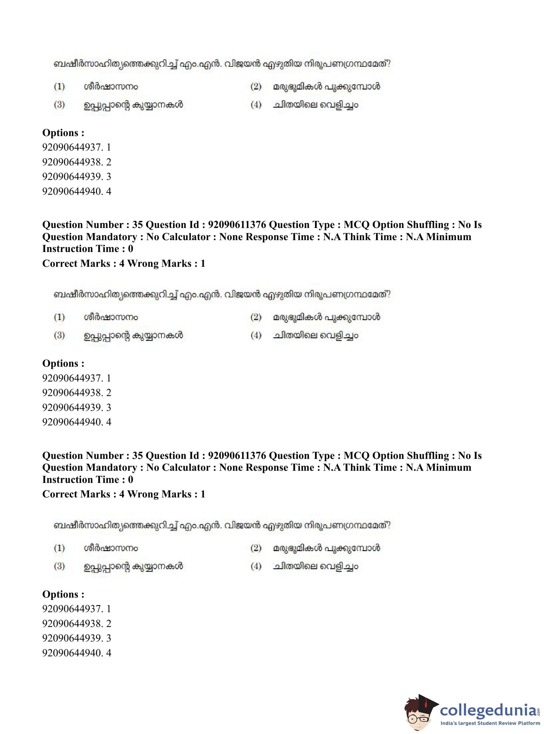 CUET PG 2023 Malayalam Question Paper in English (June 10 - Shift 2)