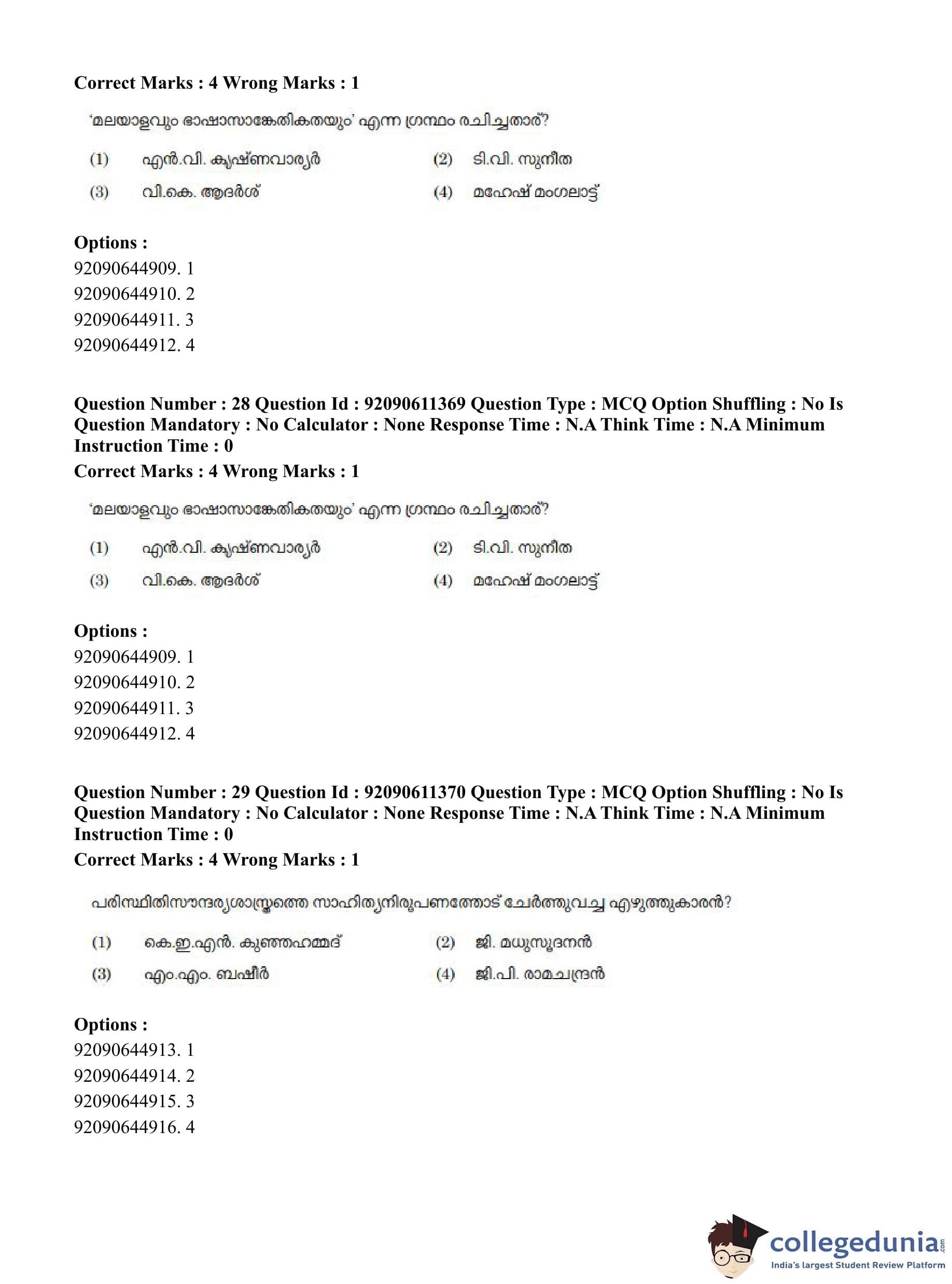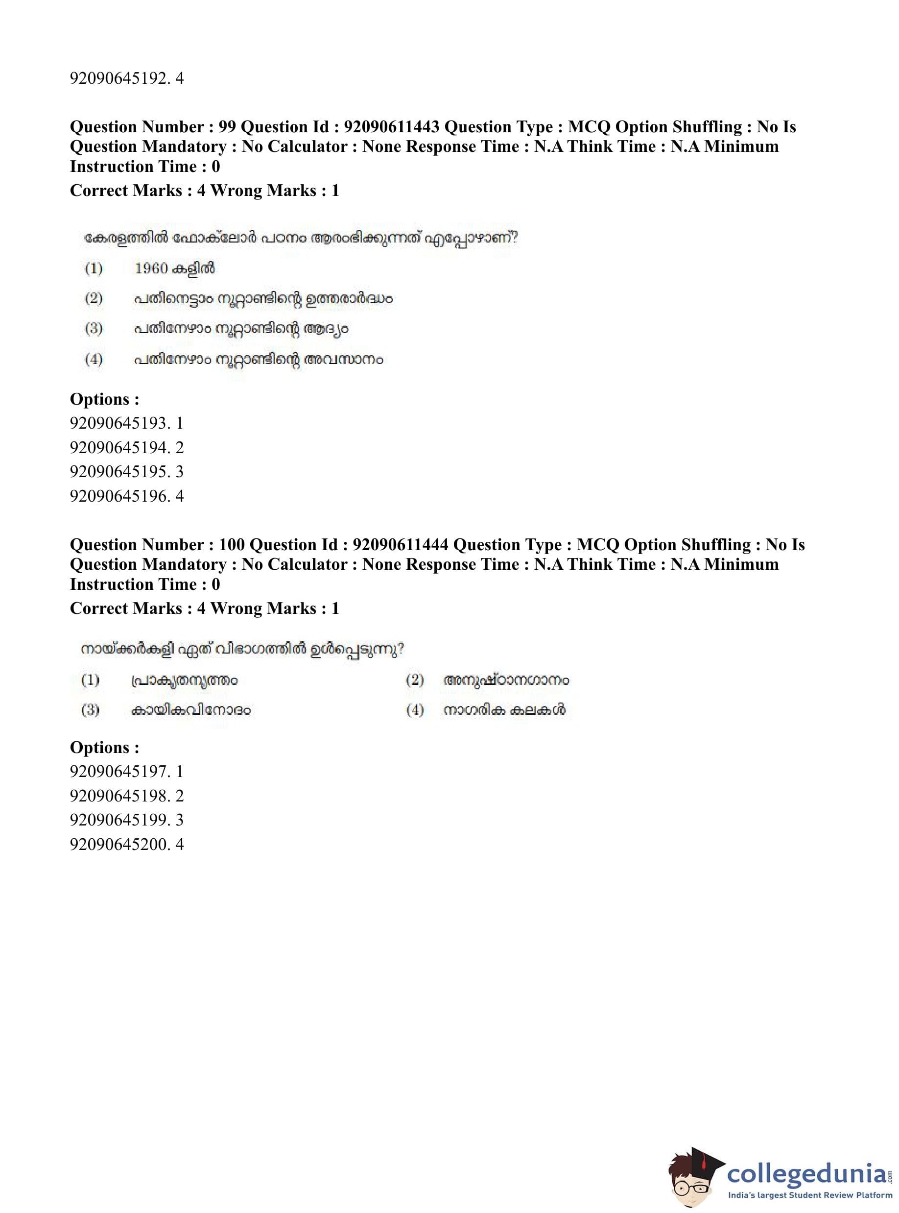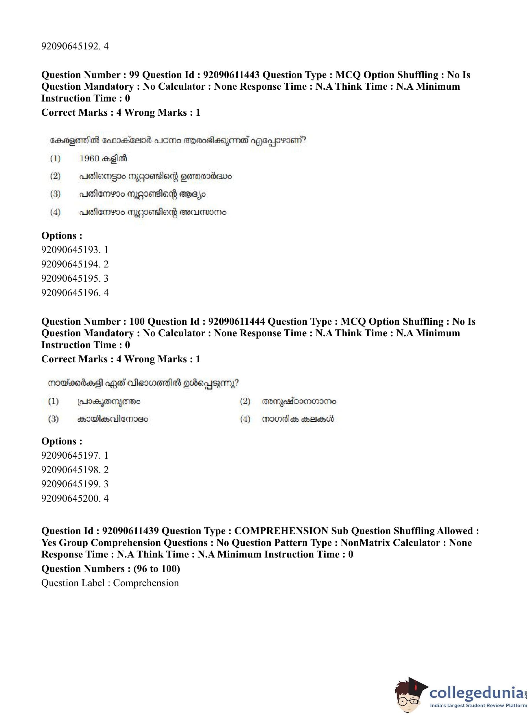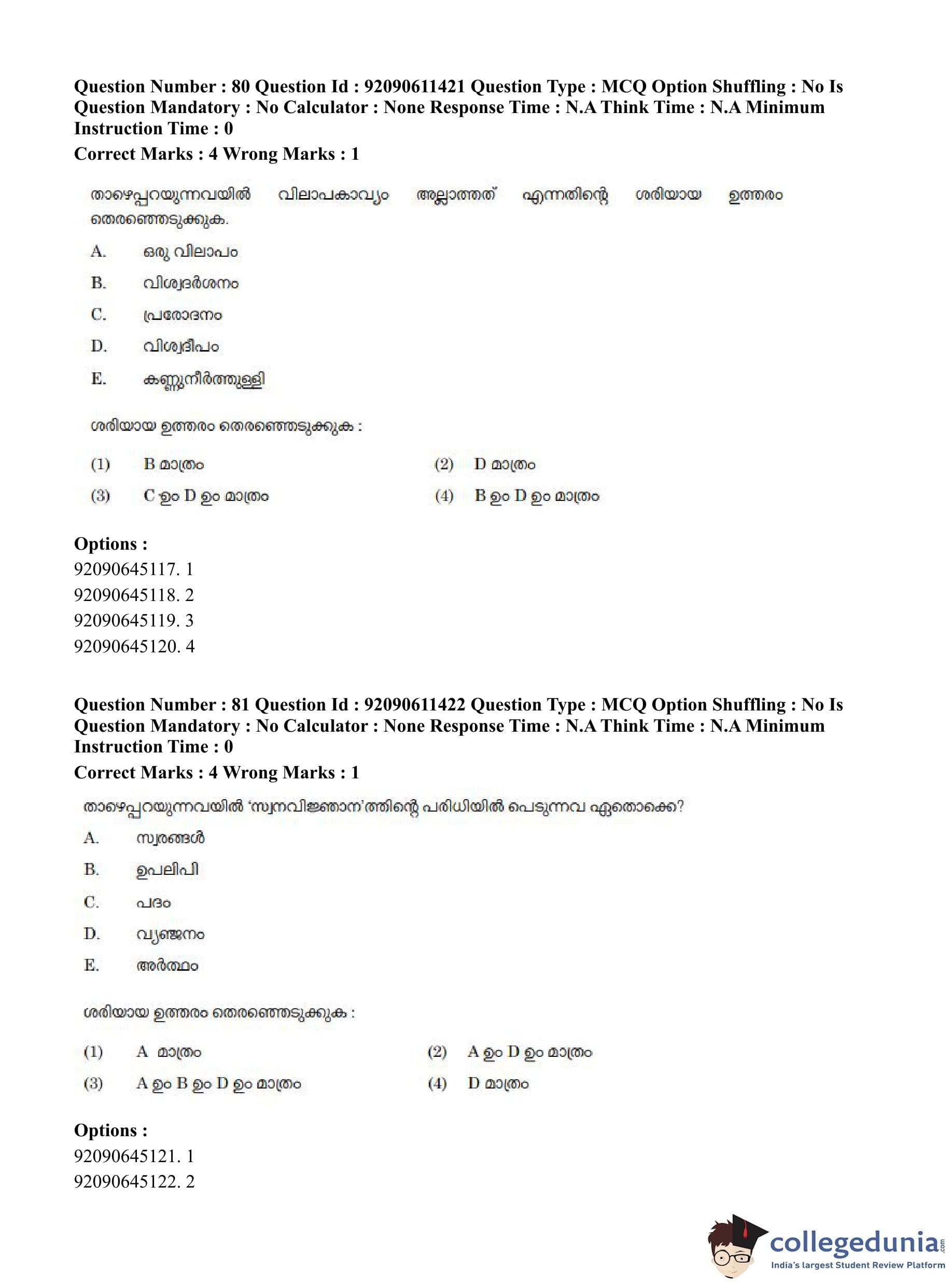 CUET PG 2023 Malayalam Question Paper in English (June 10 - Shift 2)