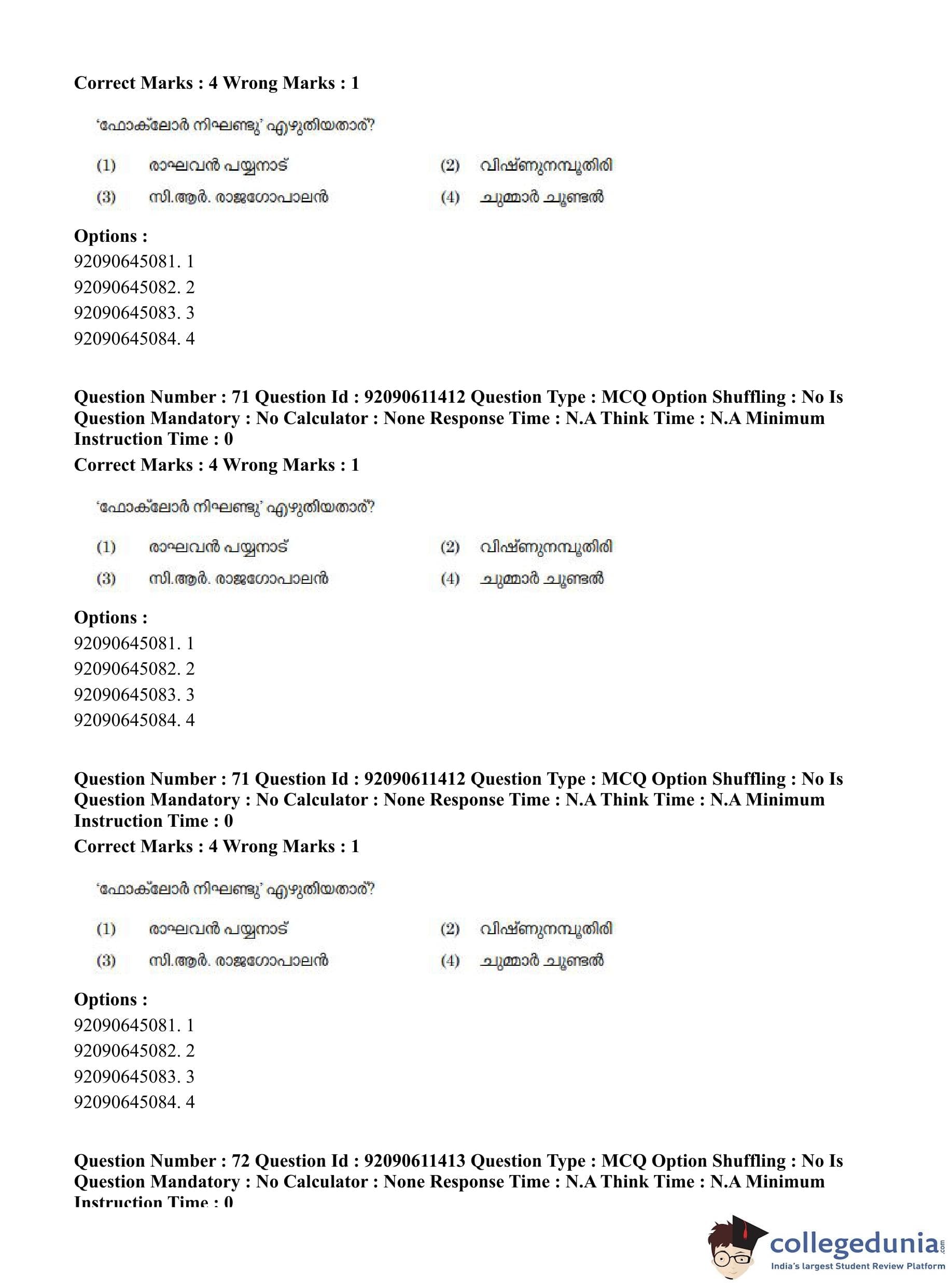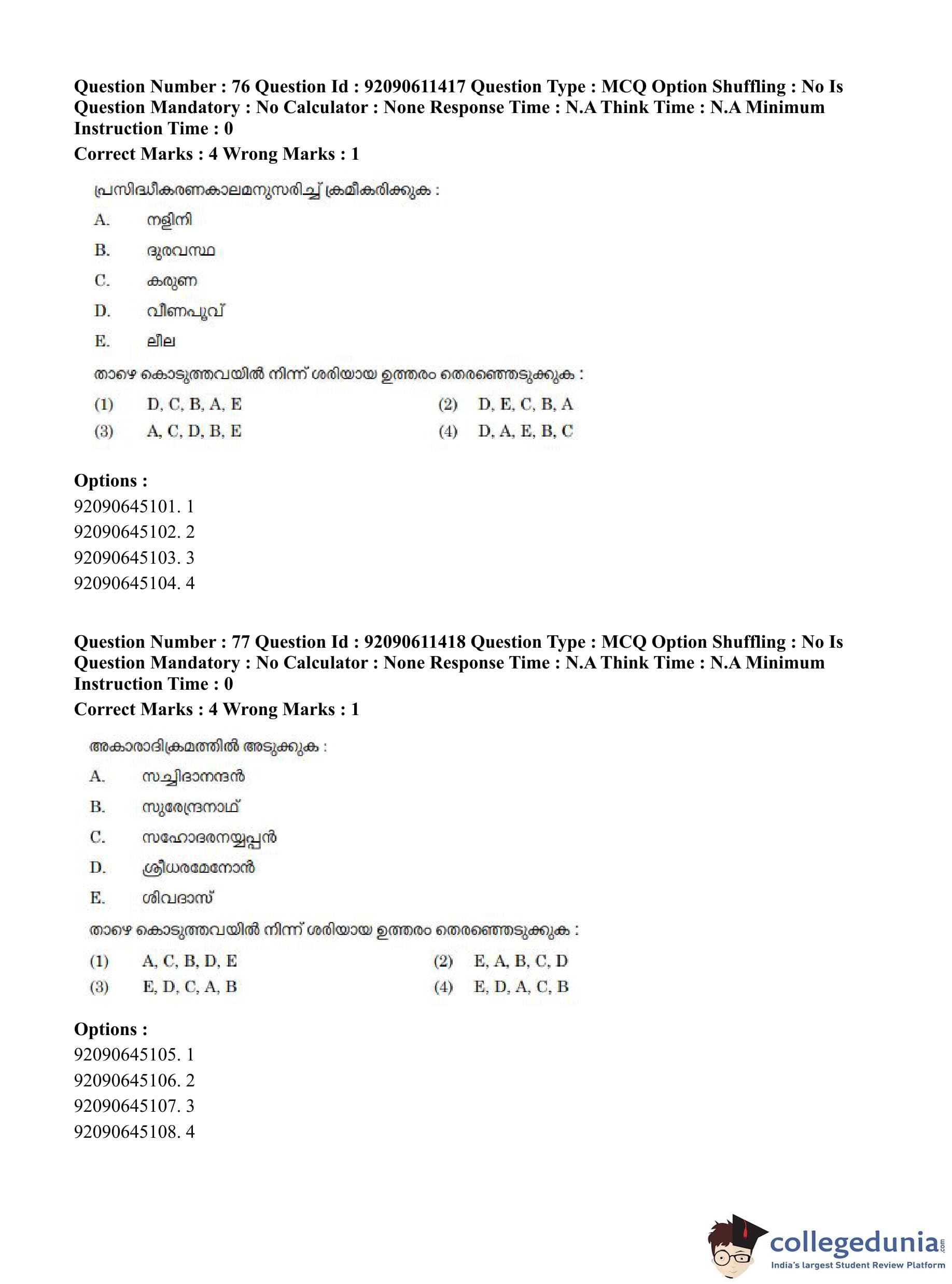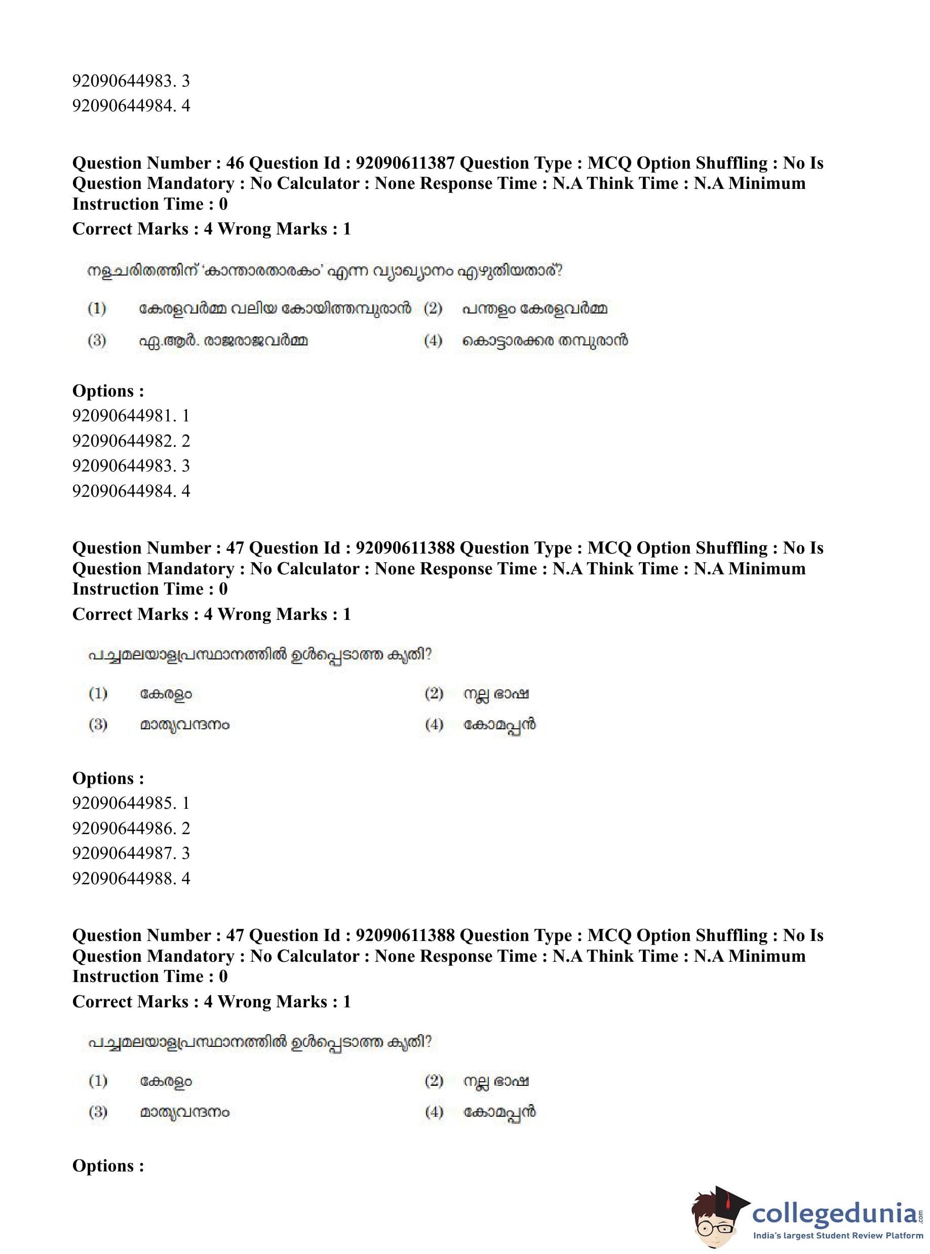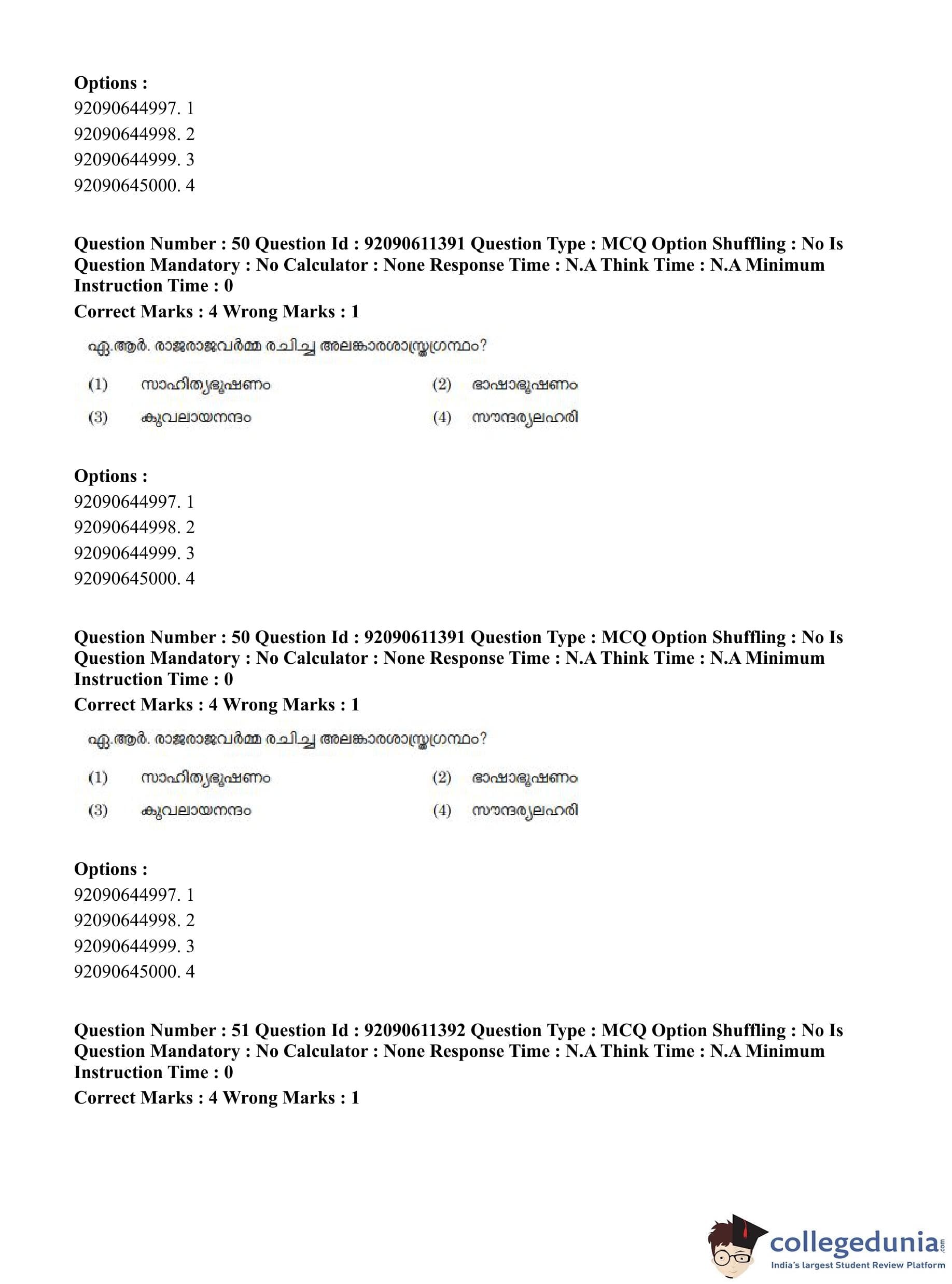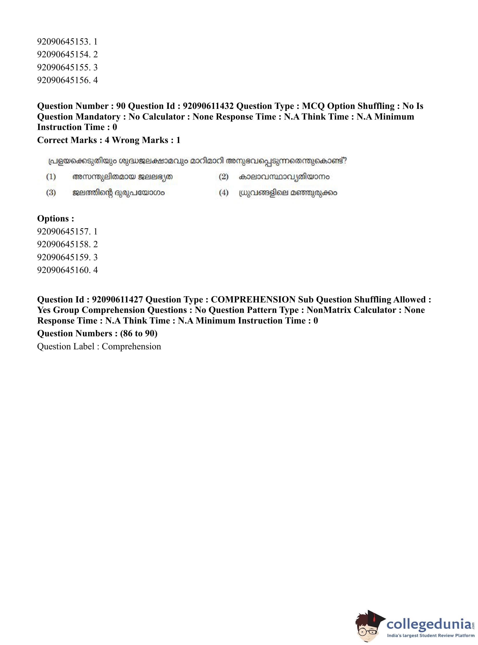 CUET PG 2023 Malayalam Question Paper in English (June 10 - Shift 2)
