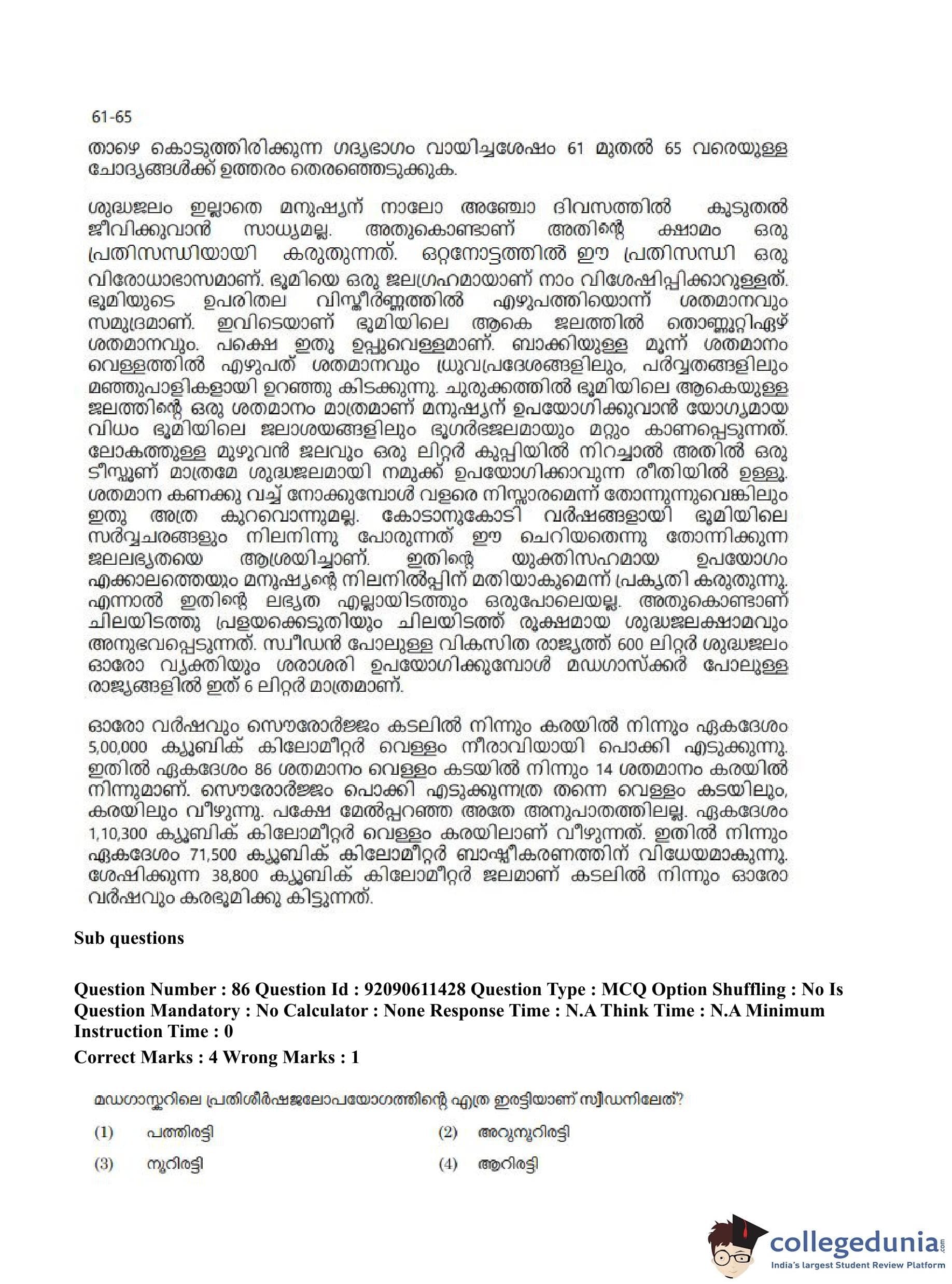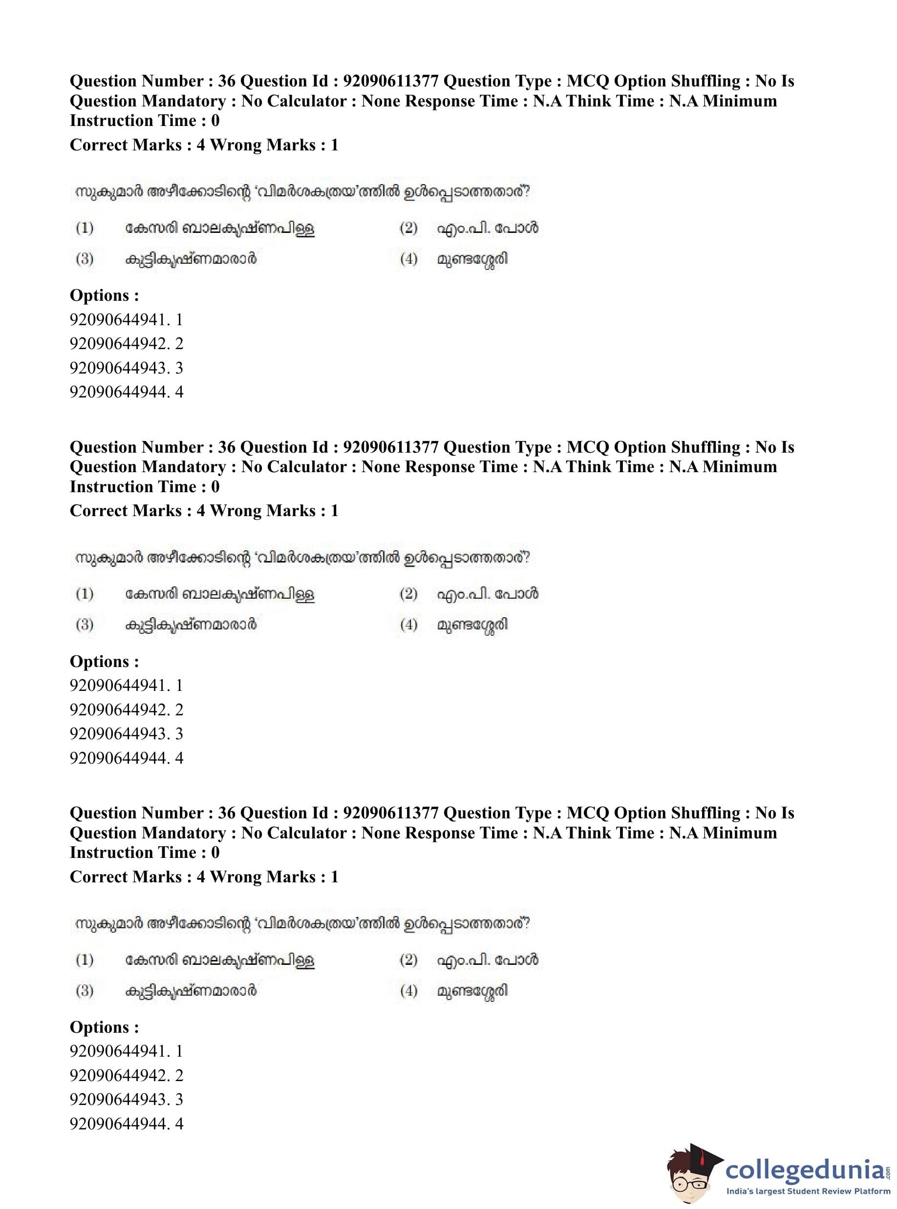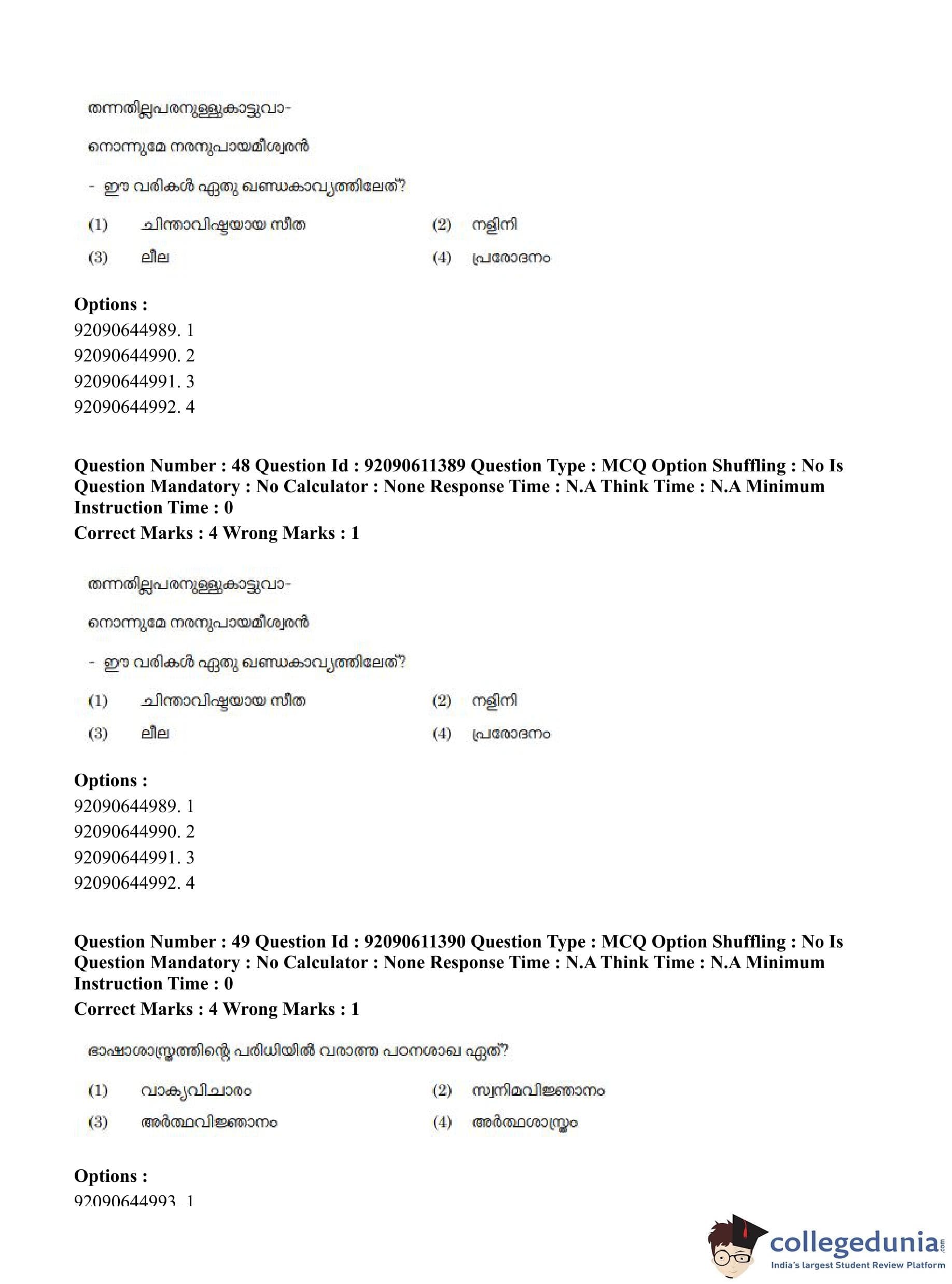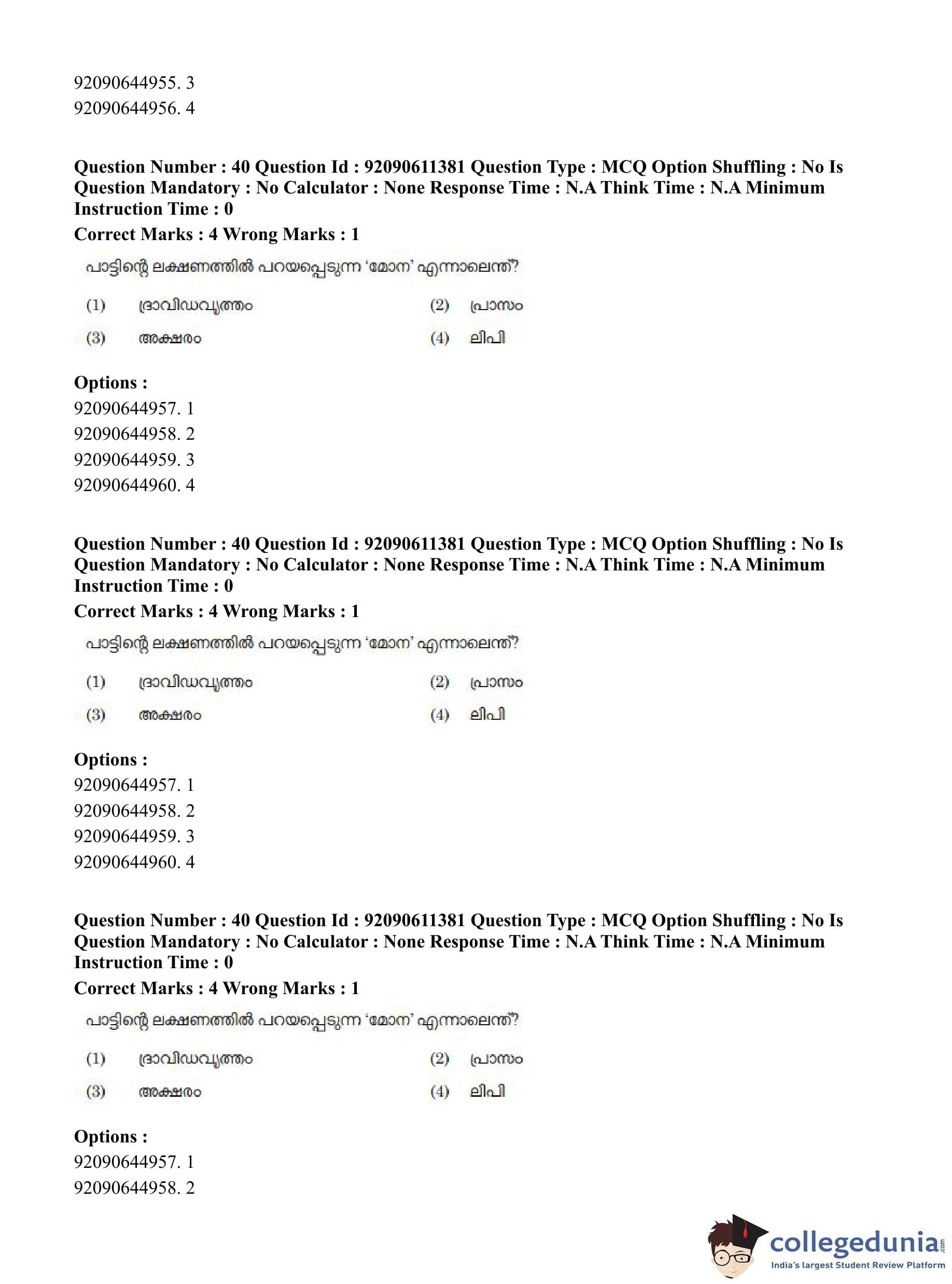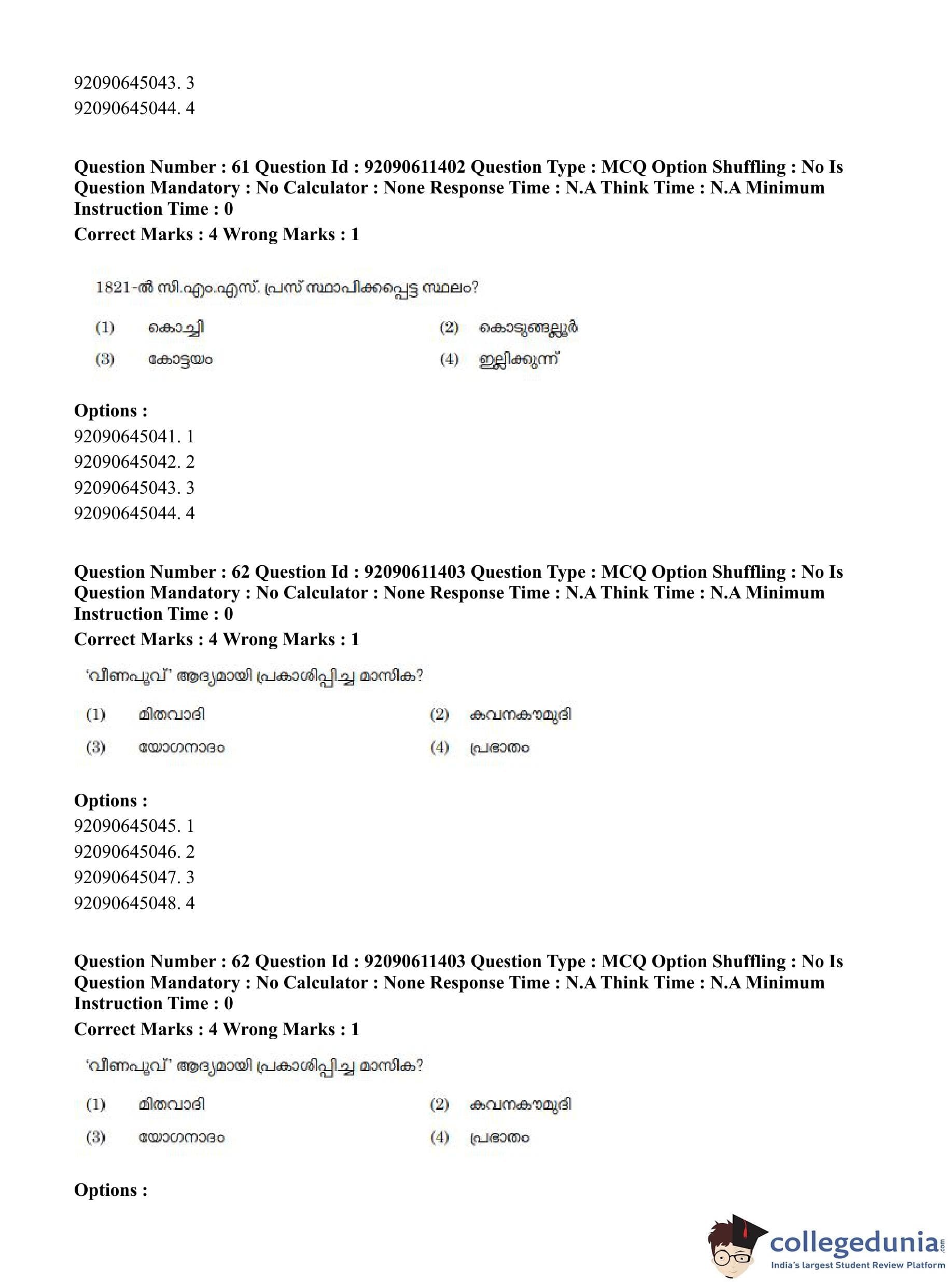 CUET PG 2023 Malayalam Question Paper in English (June 10 - Shift 2)