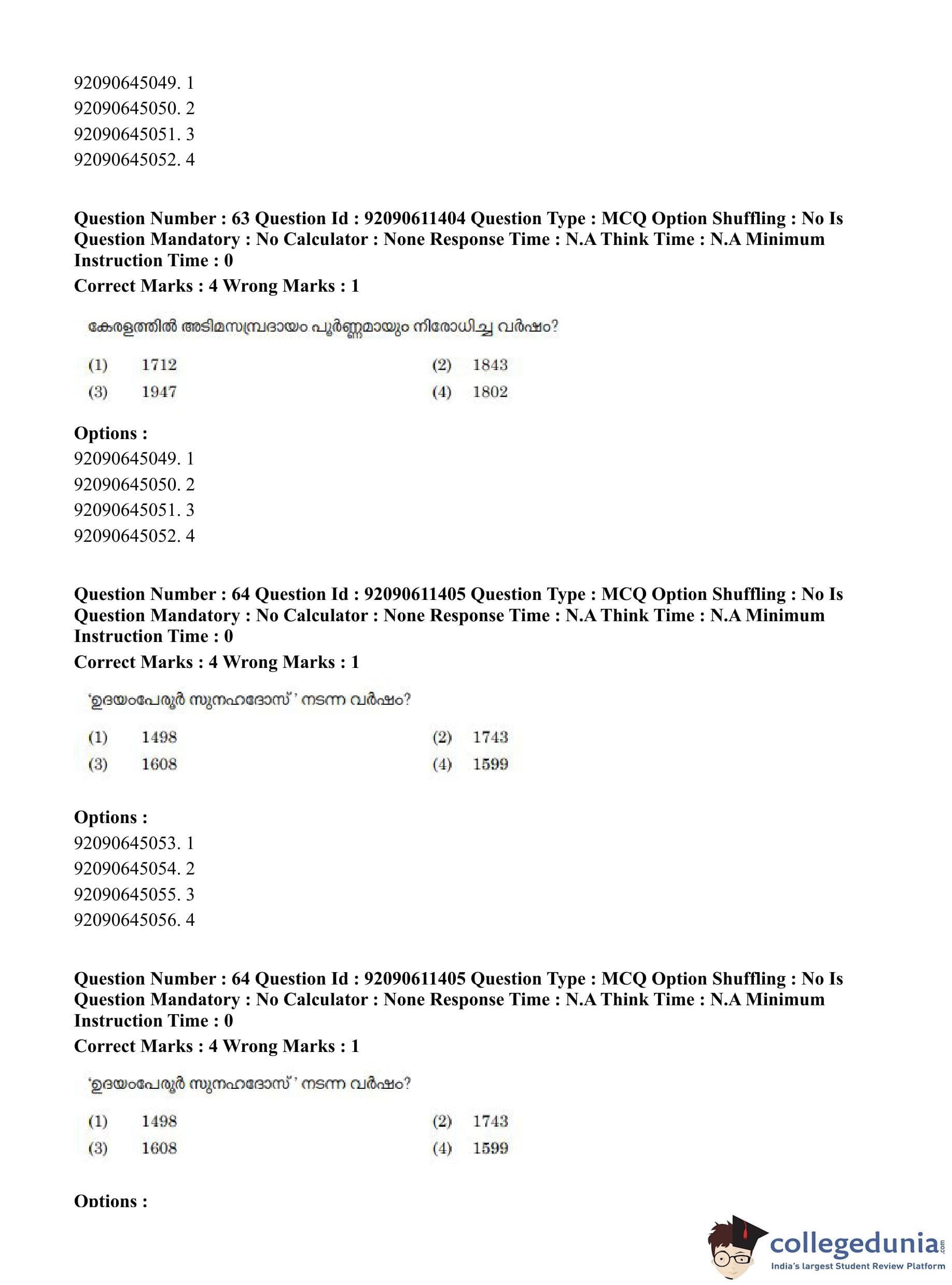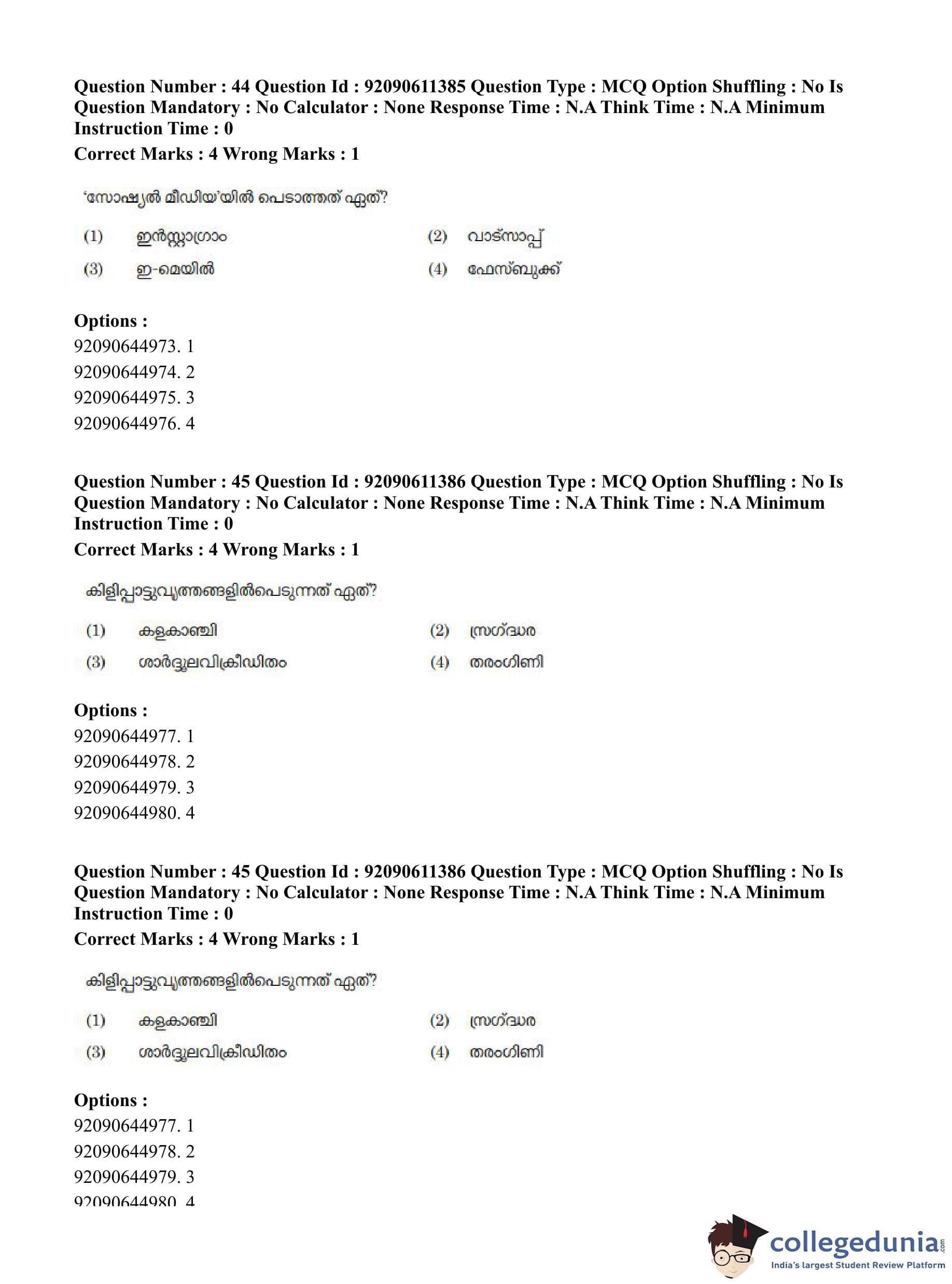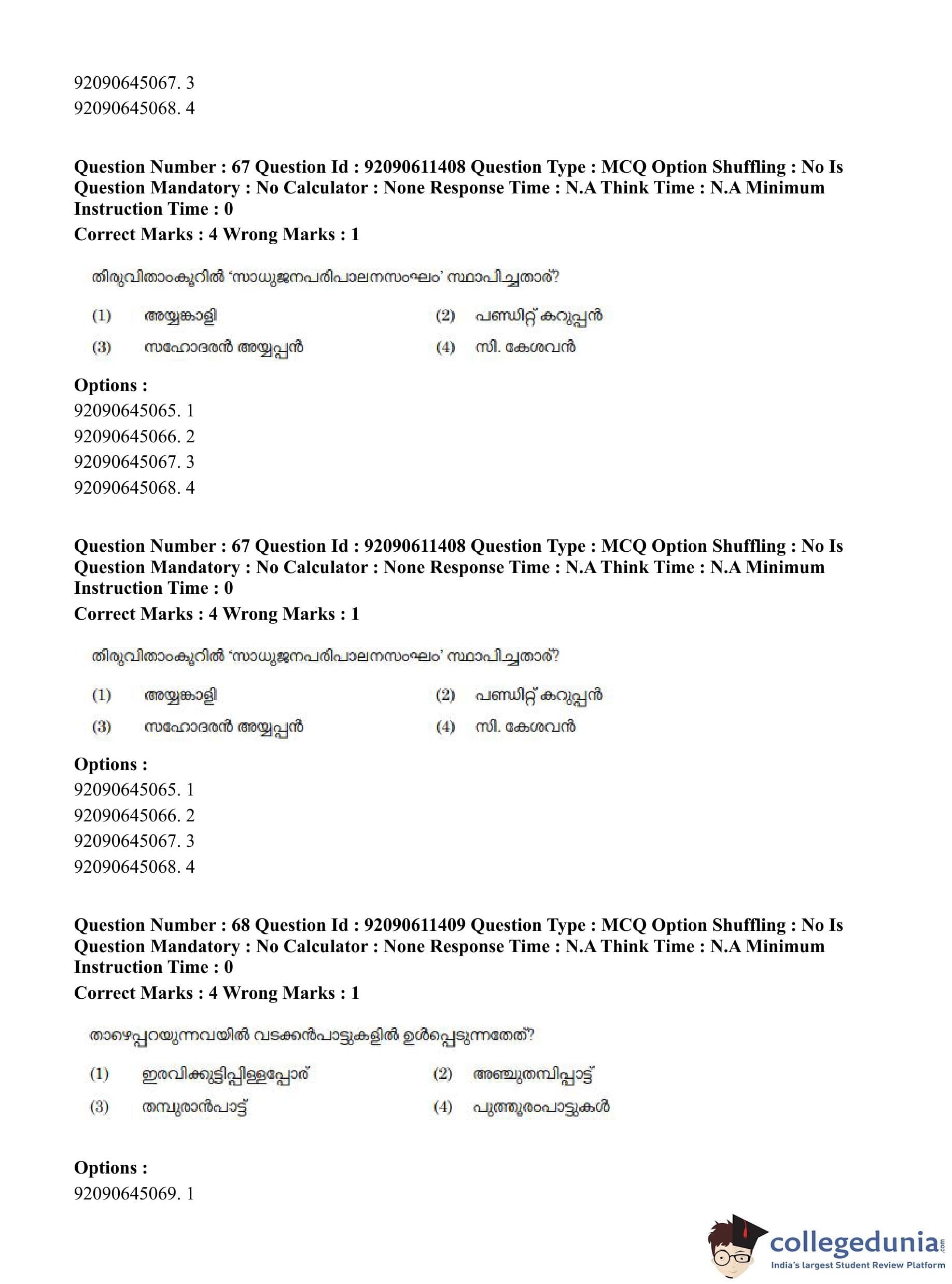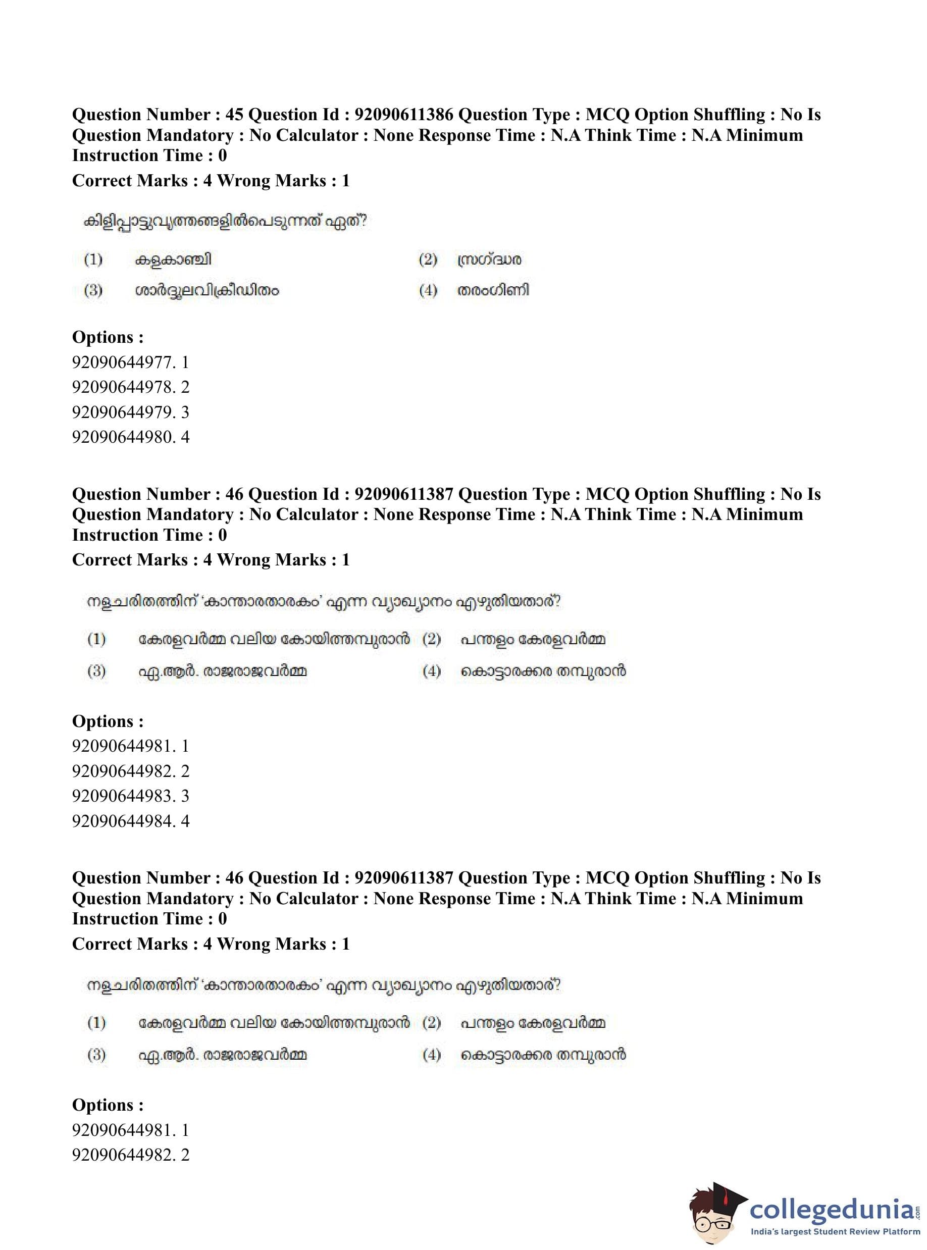 CUET PG 2023 Malayalam Question Paper in English (June 10 - Shift 2)