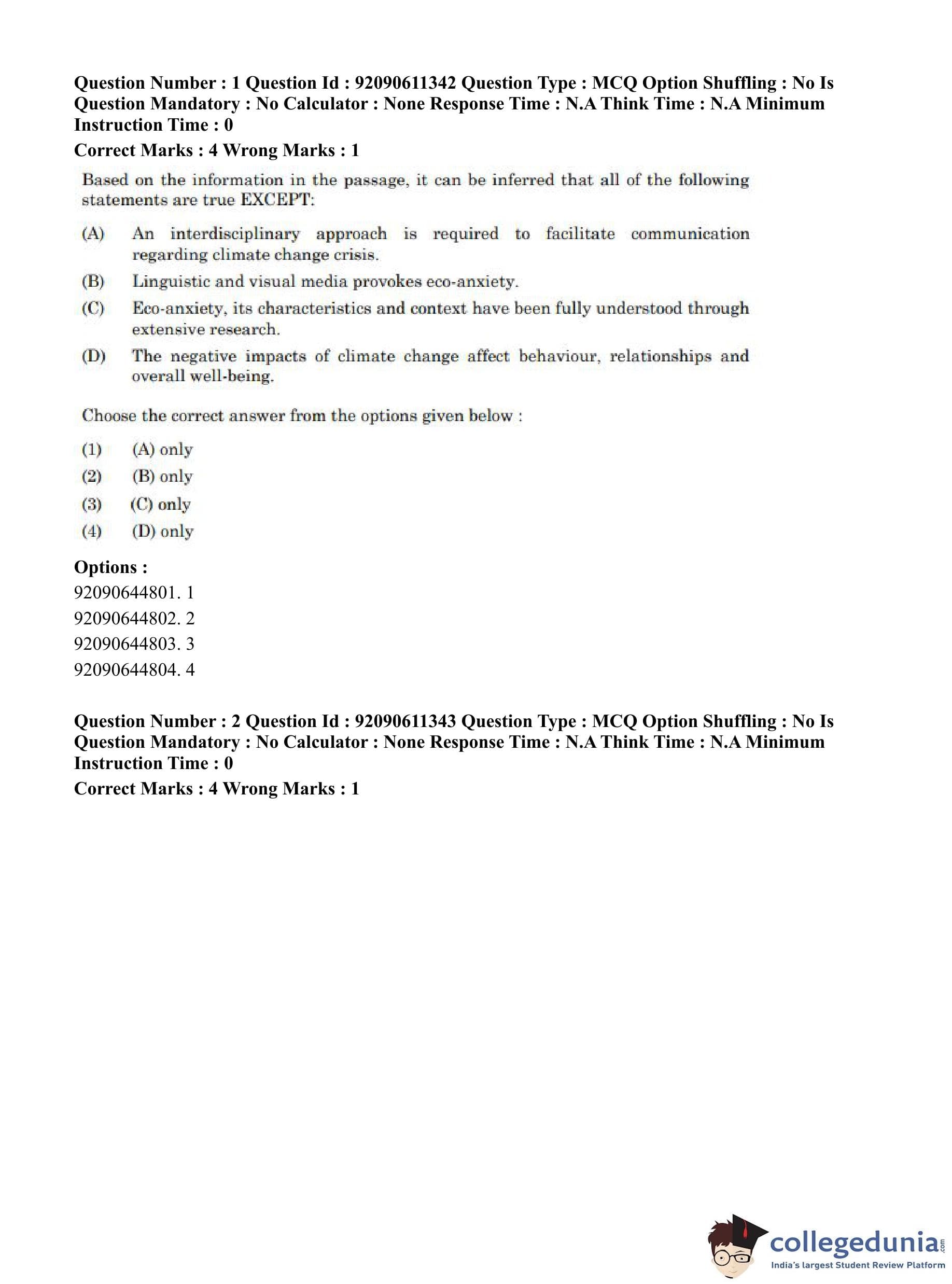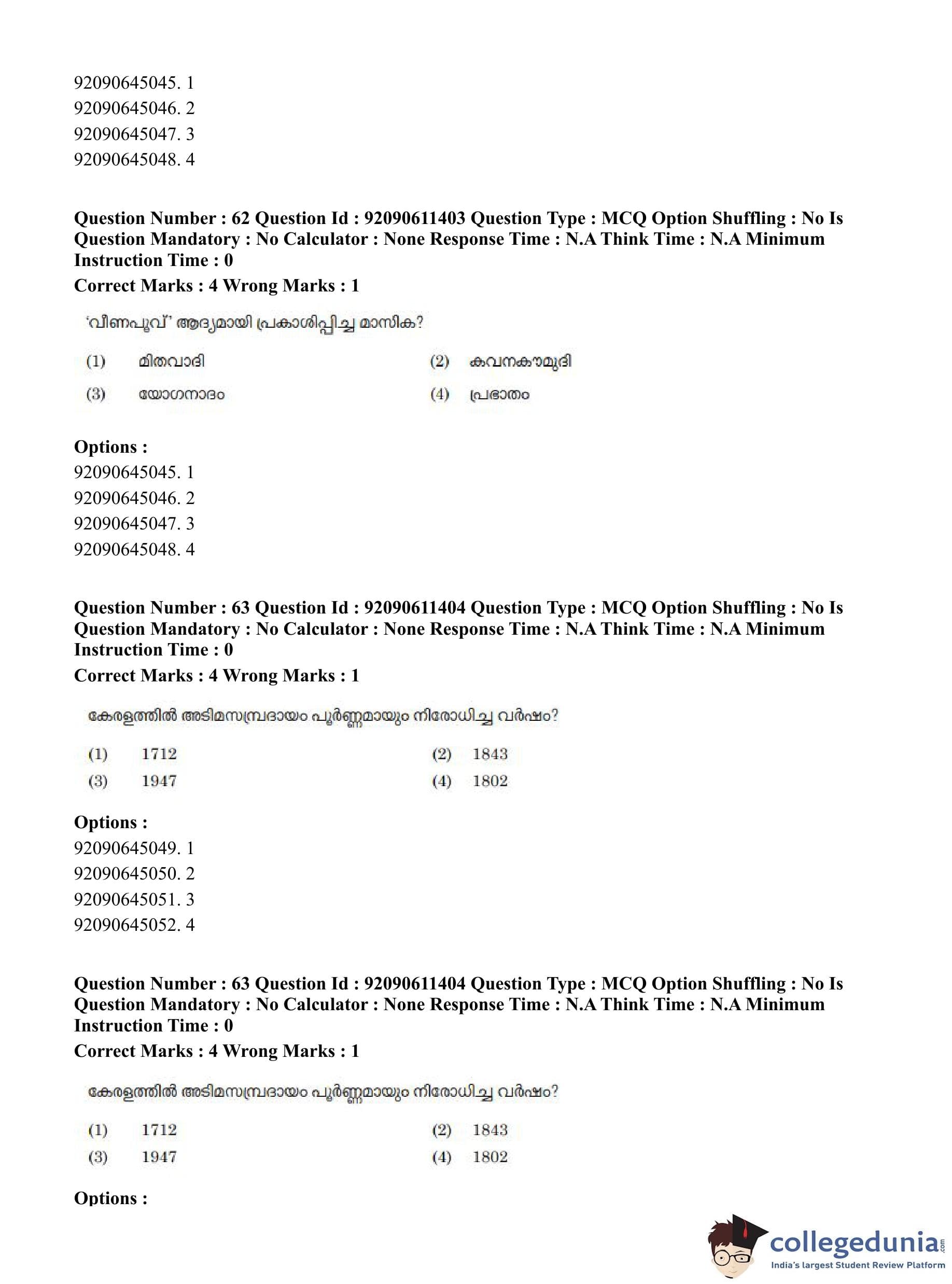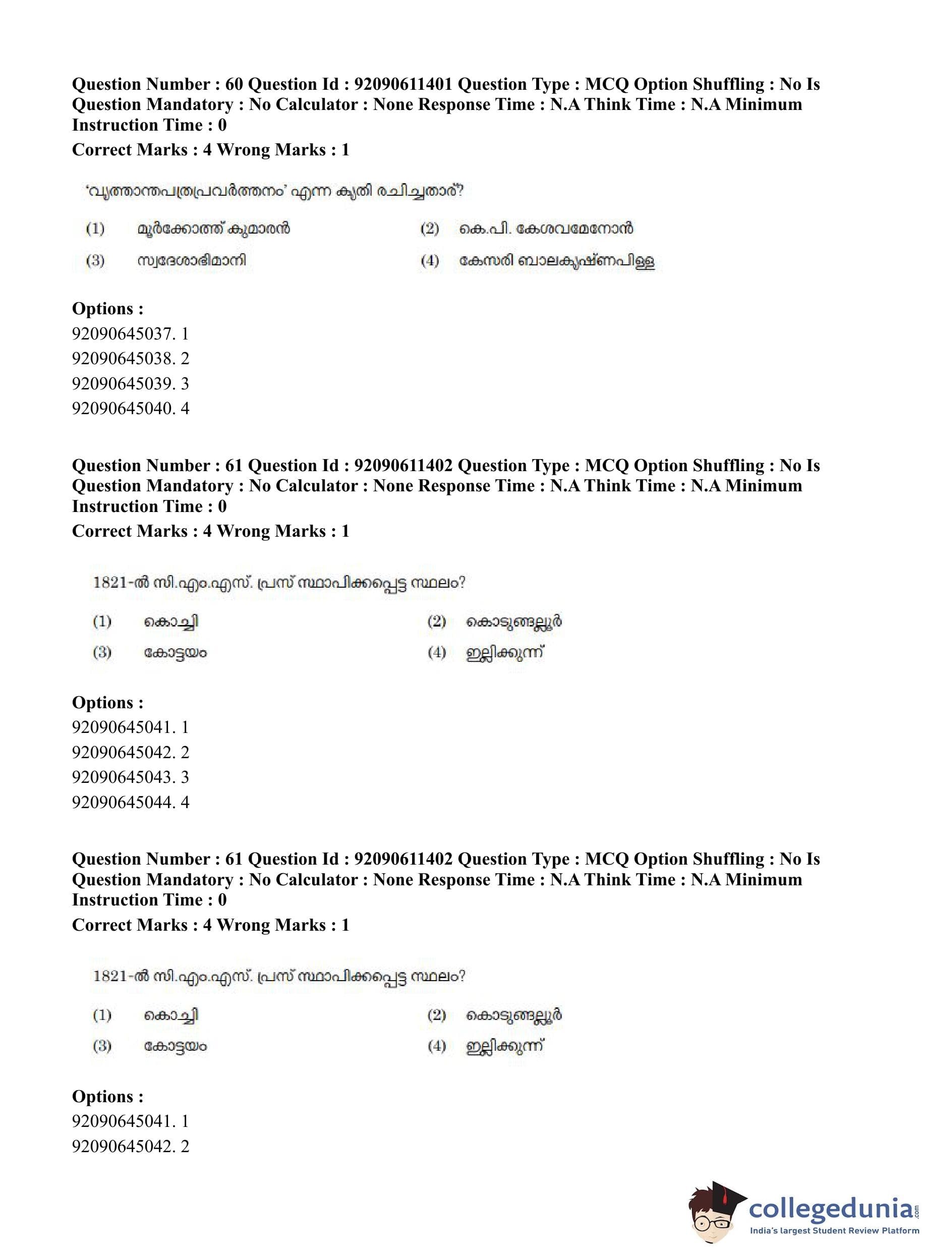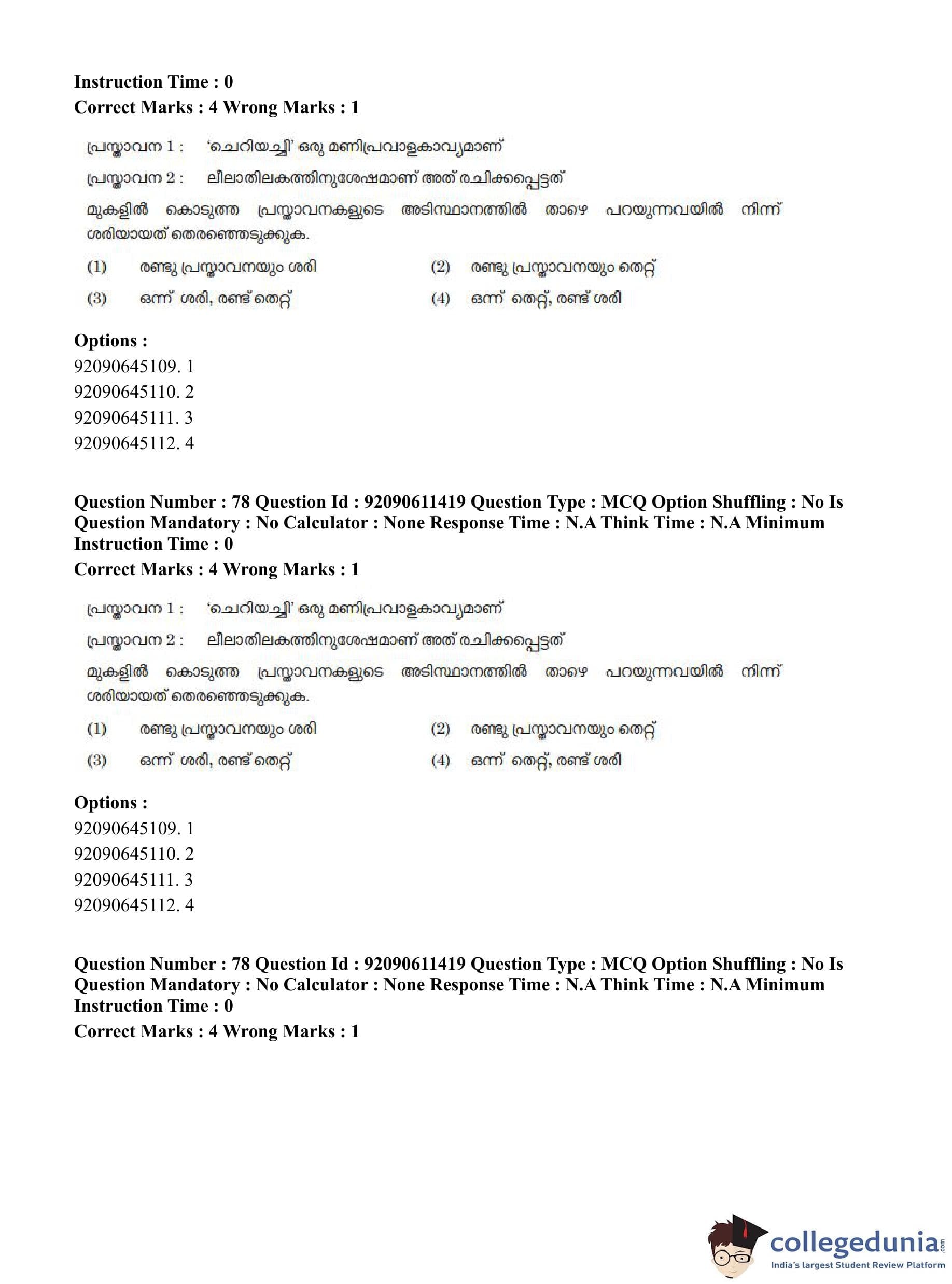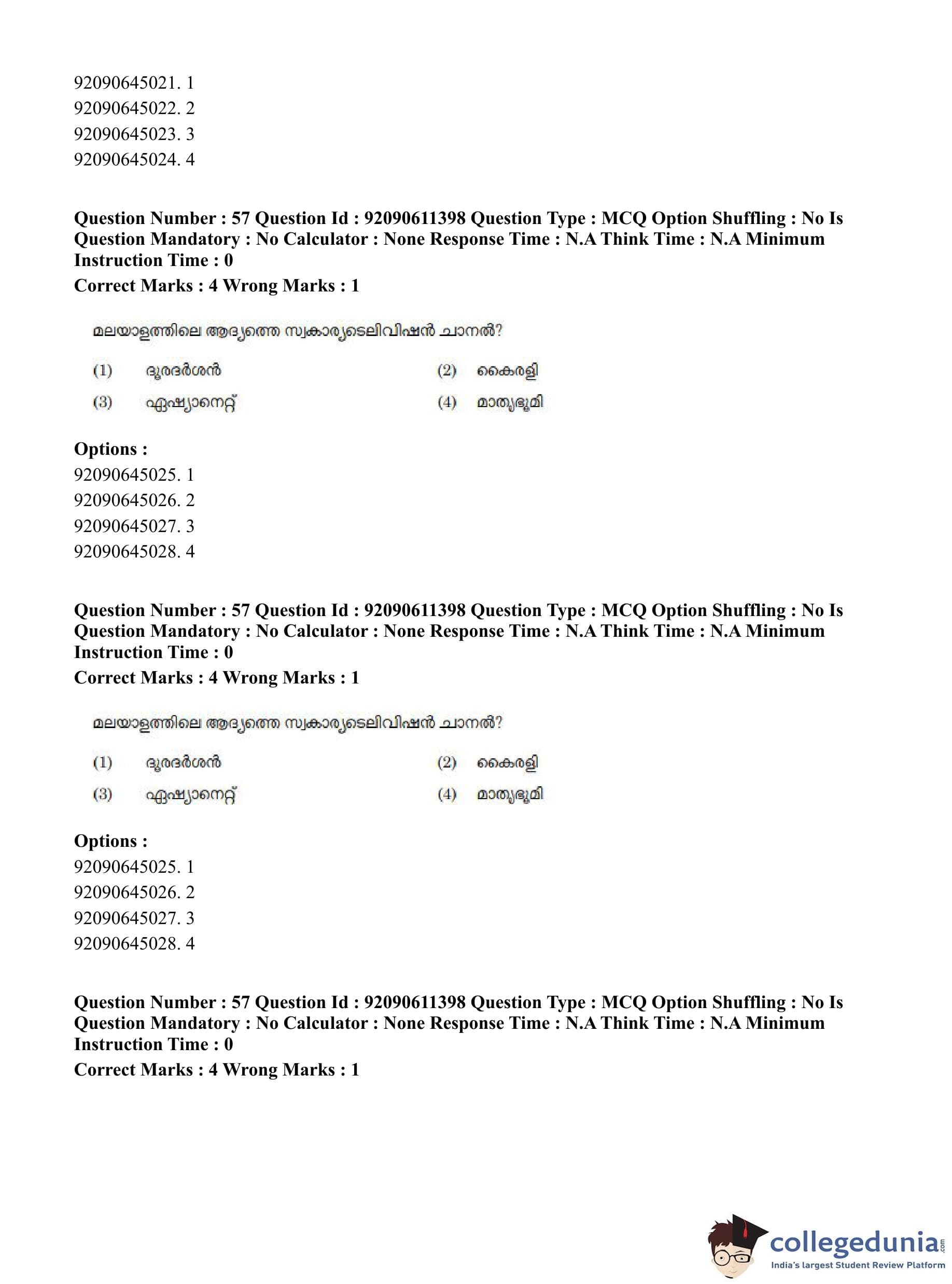 CUET PG 2023 Malayalam Question Paper in English (June 10 - Shift 2)