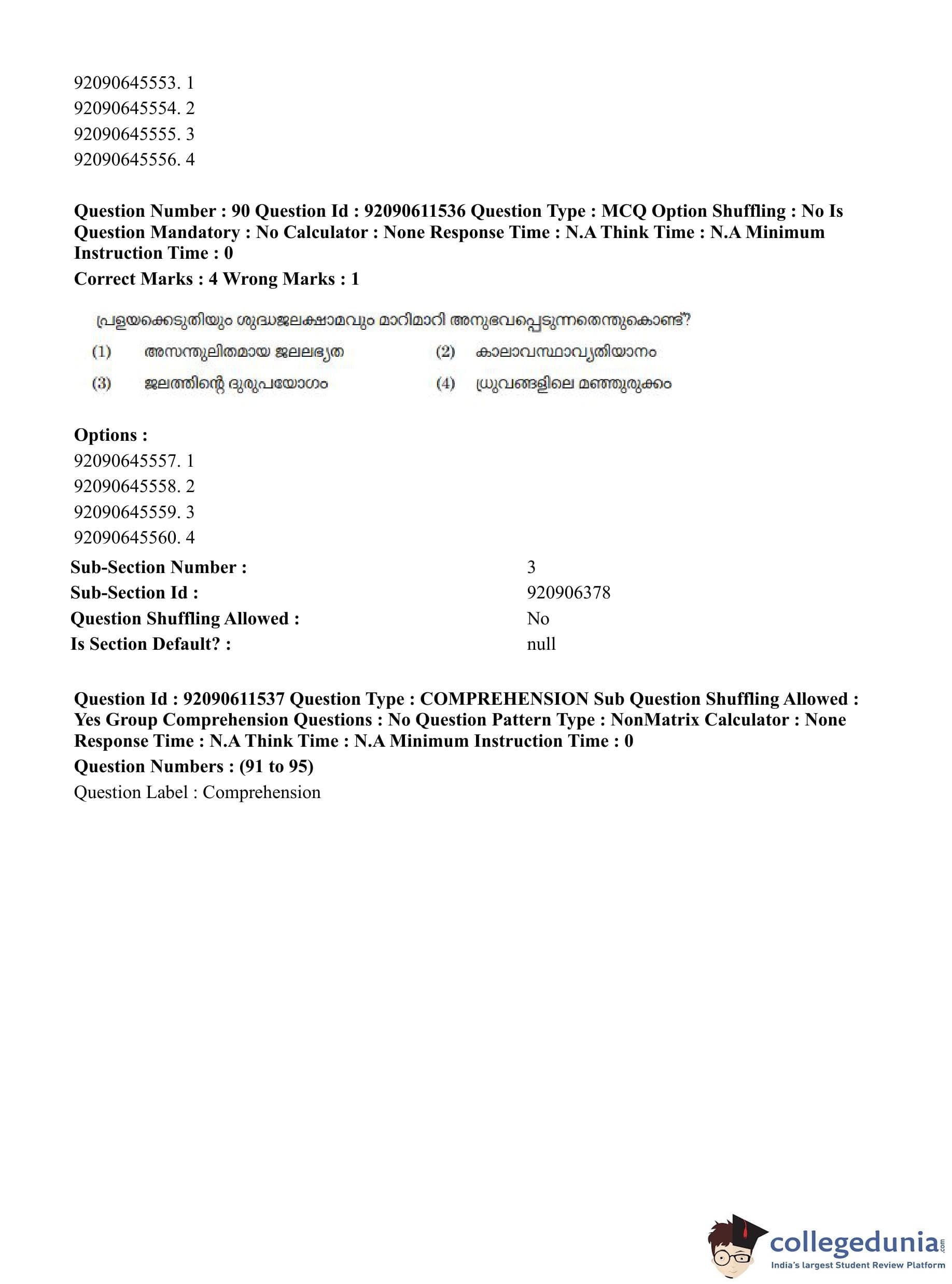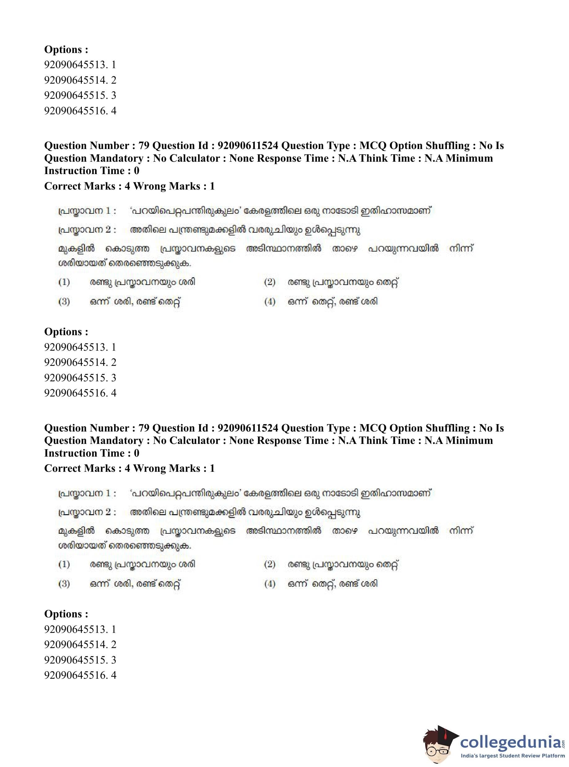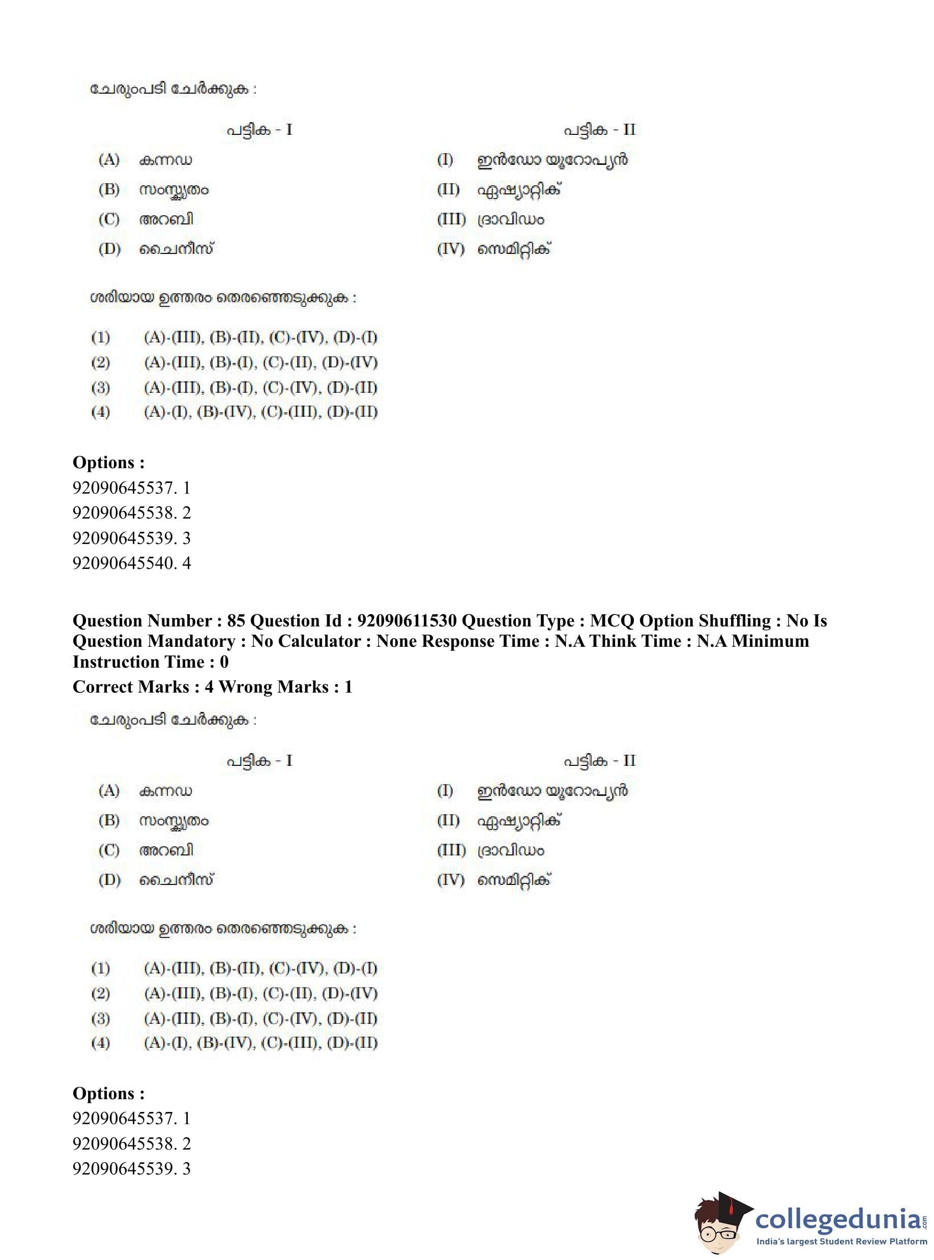 CUET PG 2023 Malayalam Question Paper in Hindi (June 10 - Shift 2)