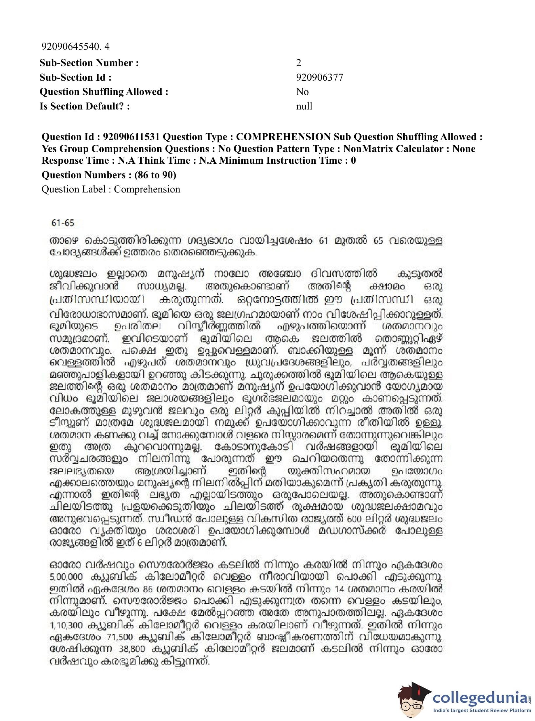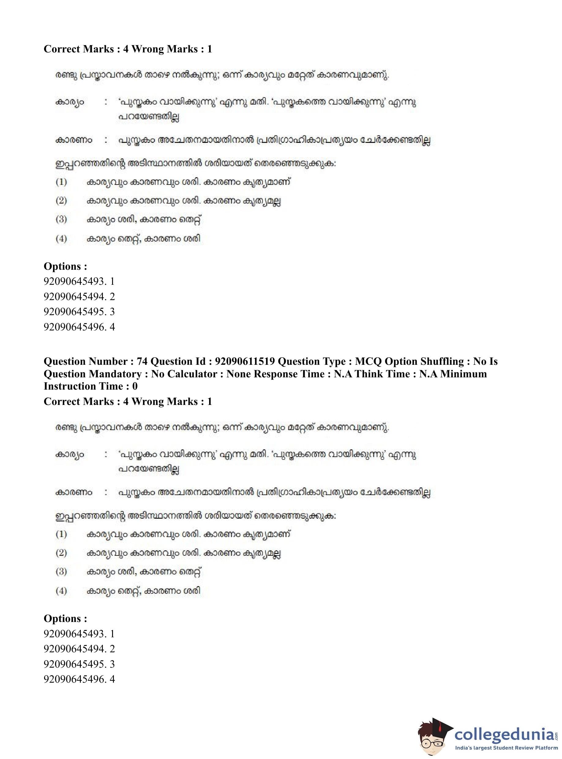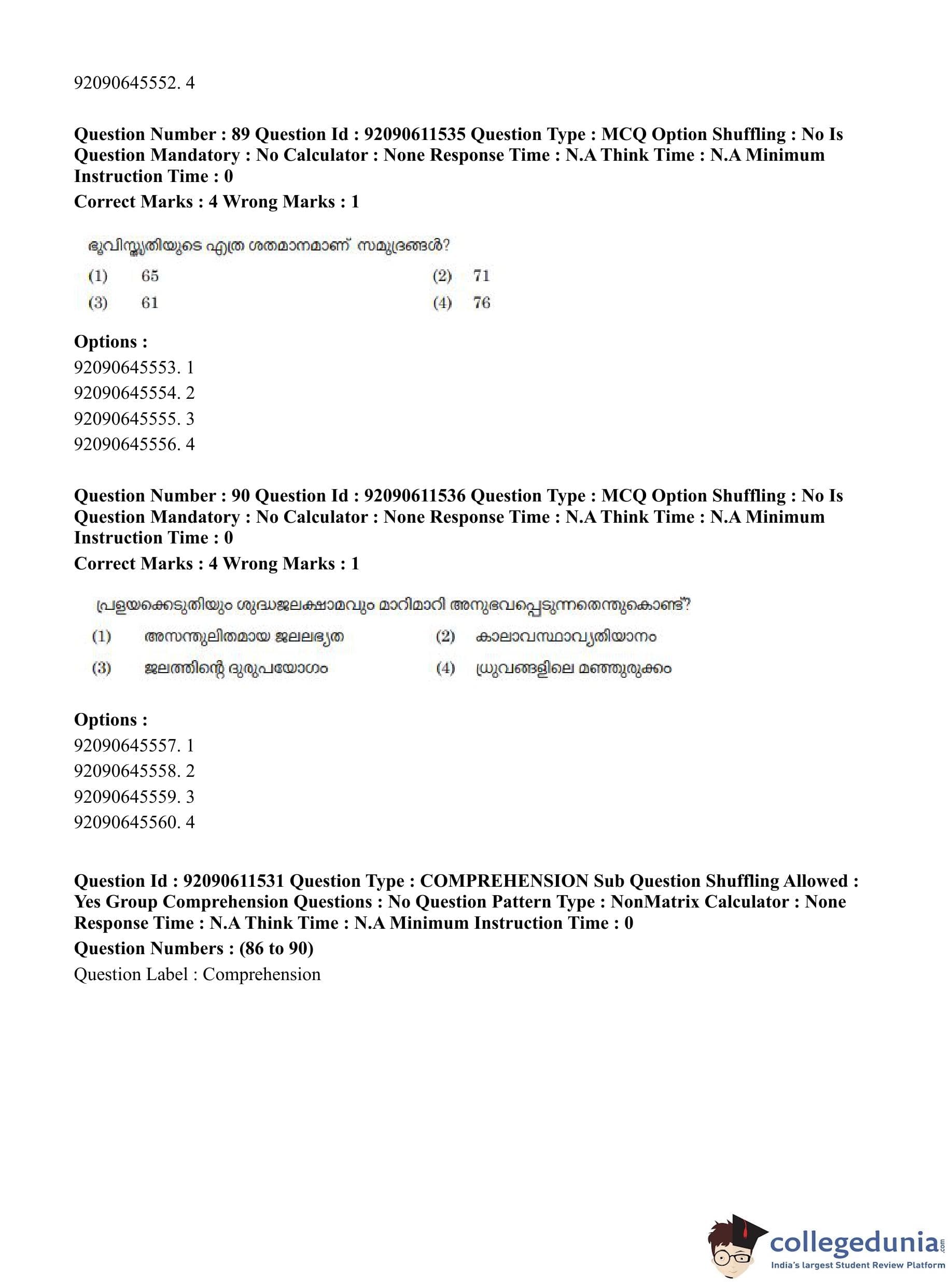 CUET PG 2023 Malayalam Question Paper in Hindi (June 10 - Shift 2)