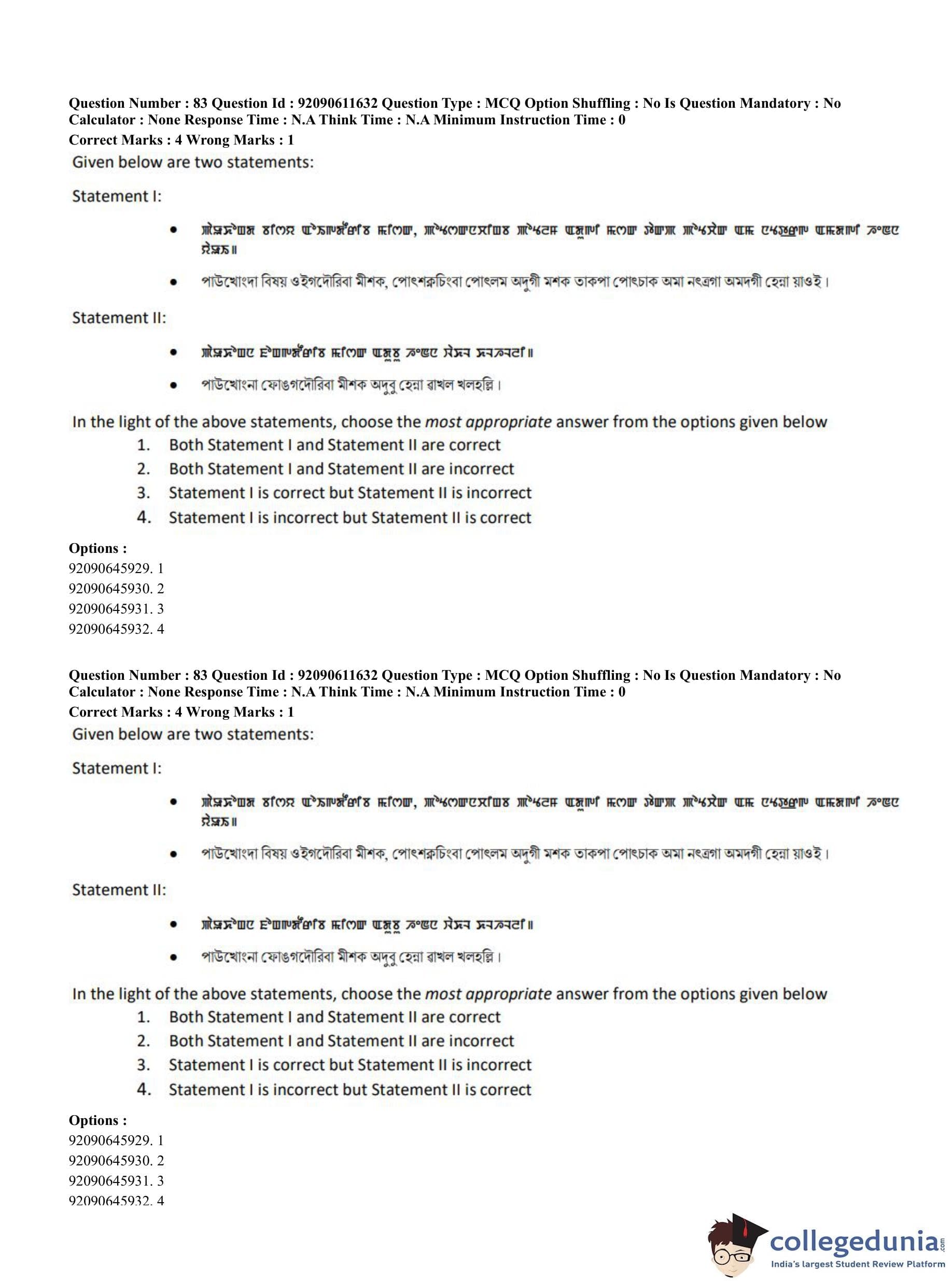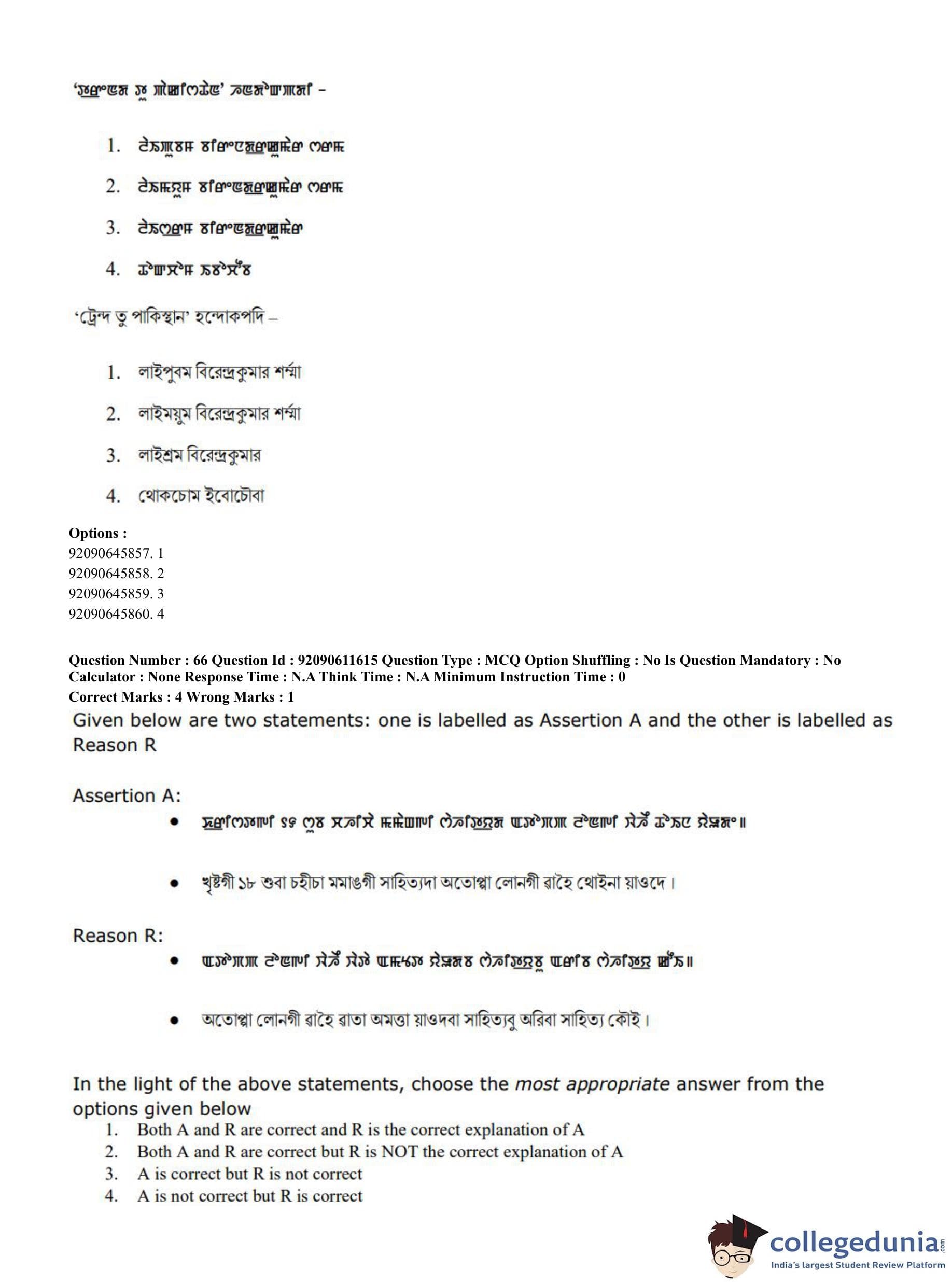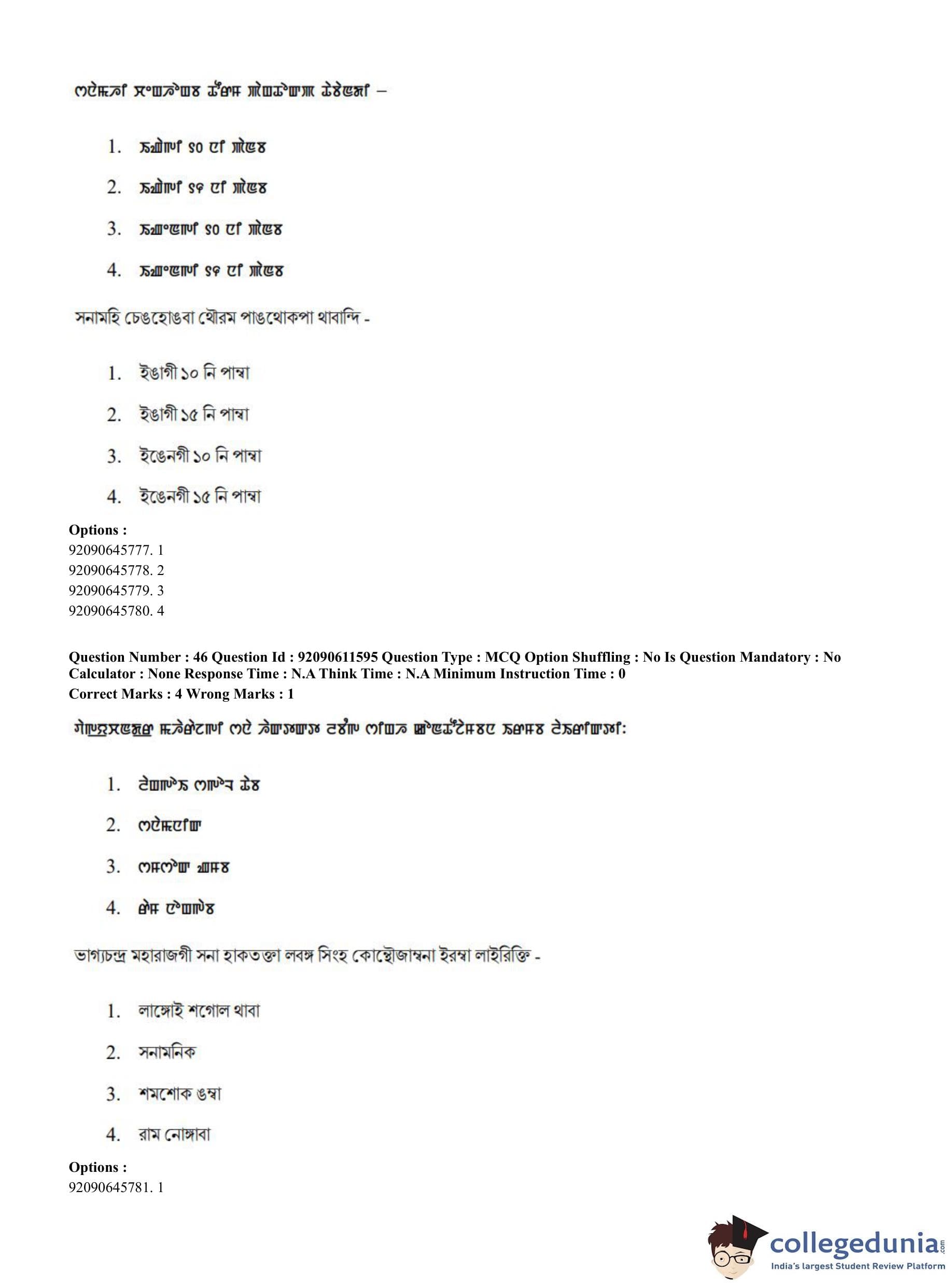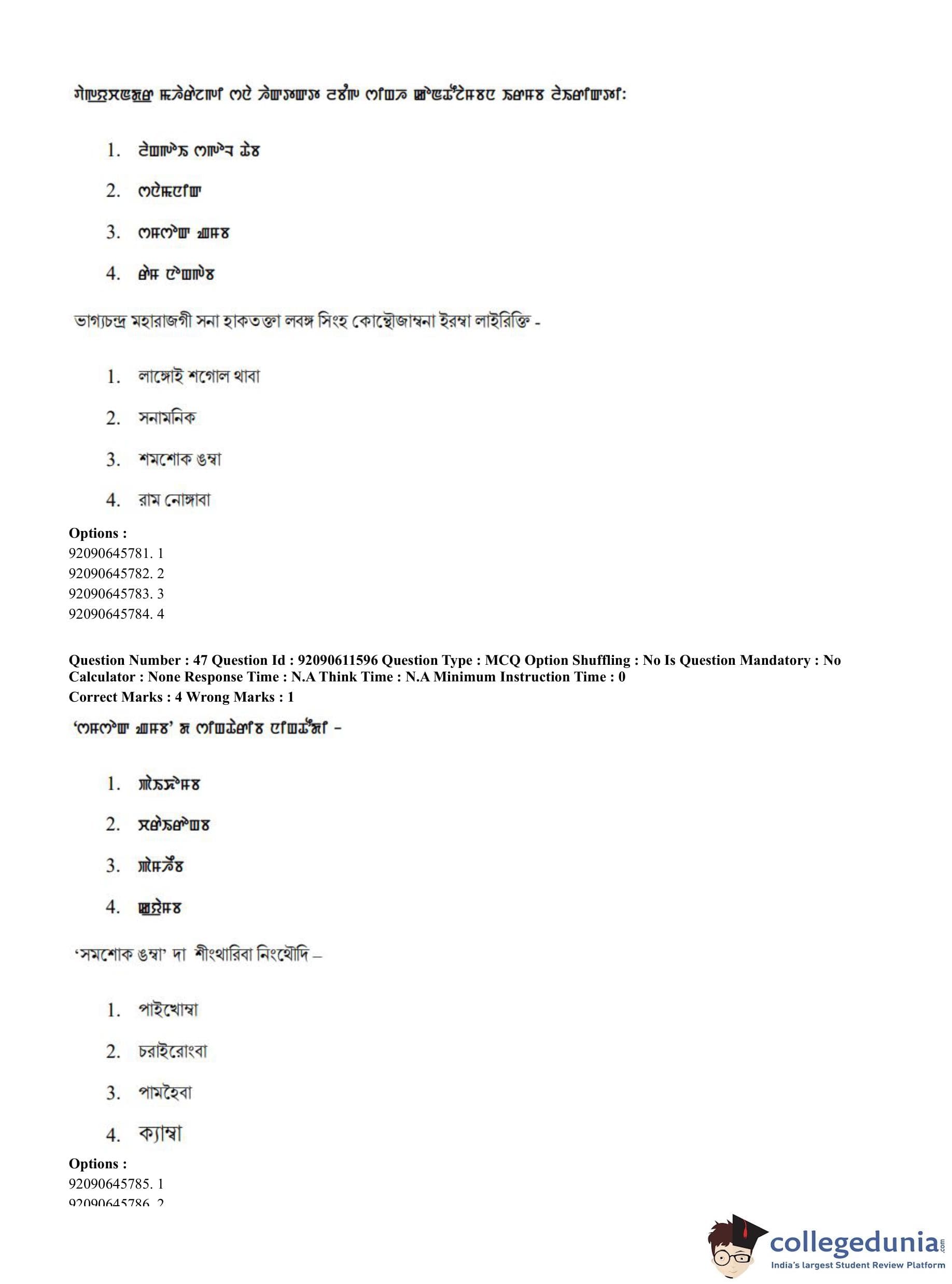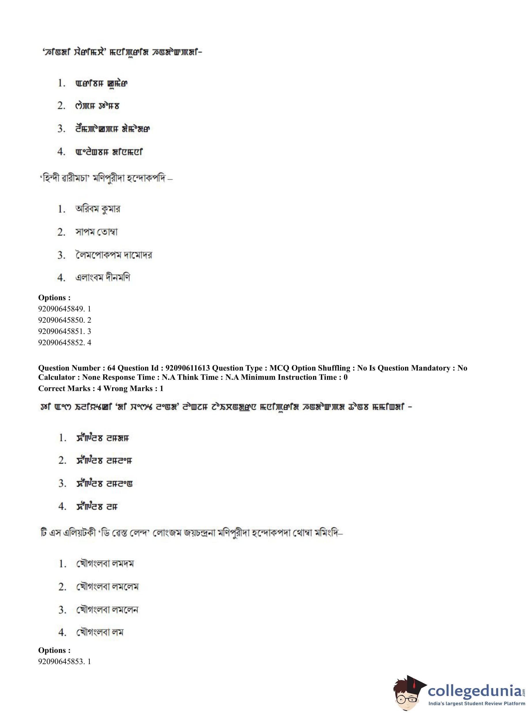 CUET PG 2023 Manipuri Question Paper in English (June 10 - Shift 2)