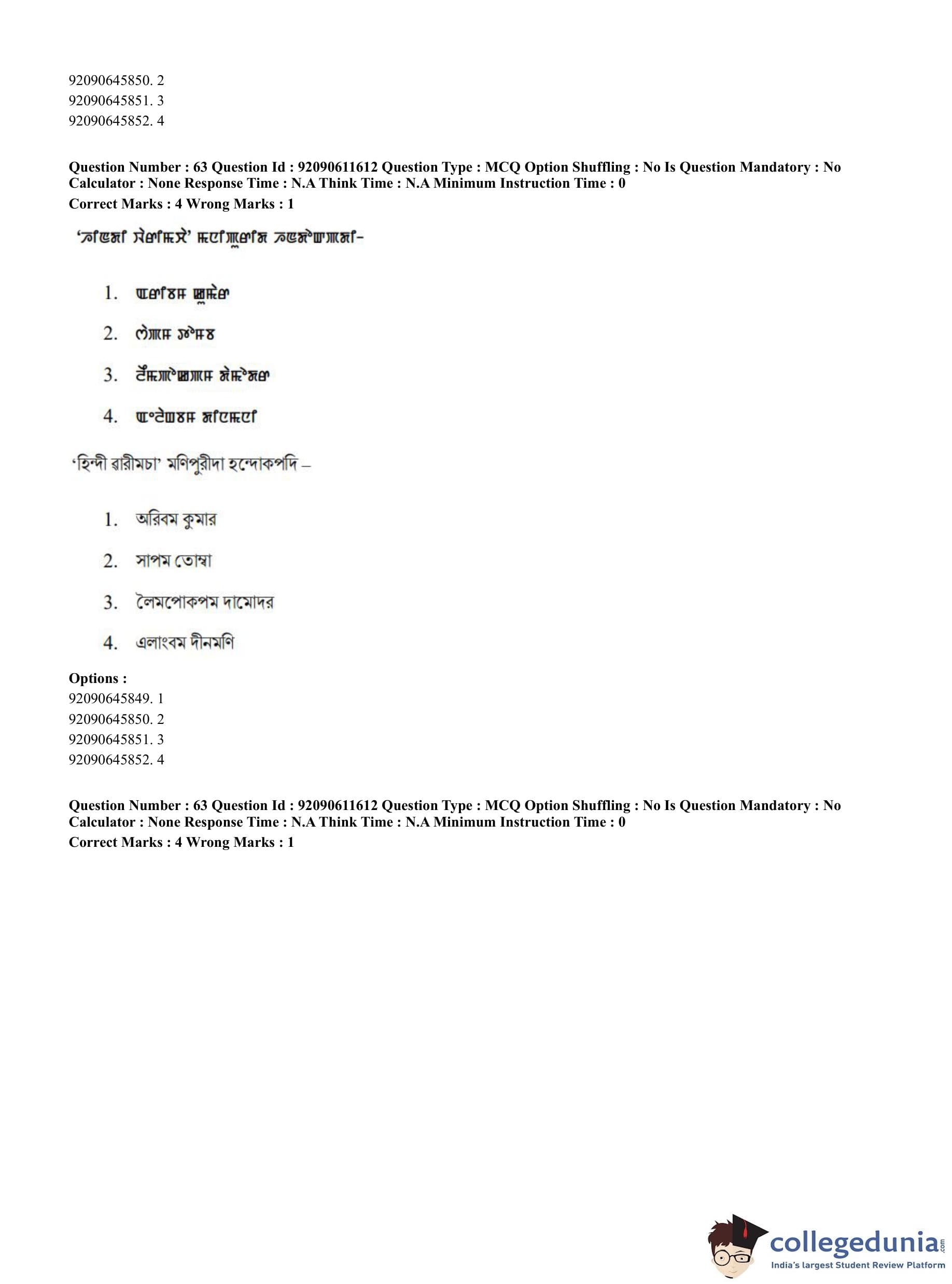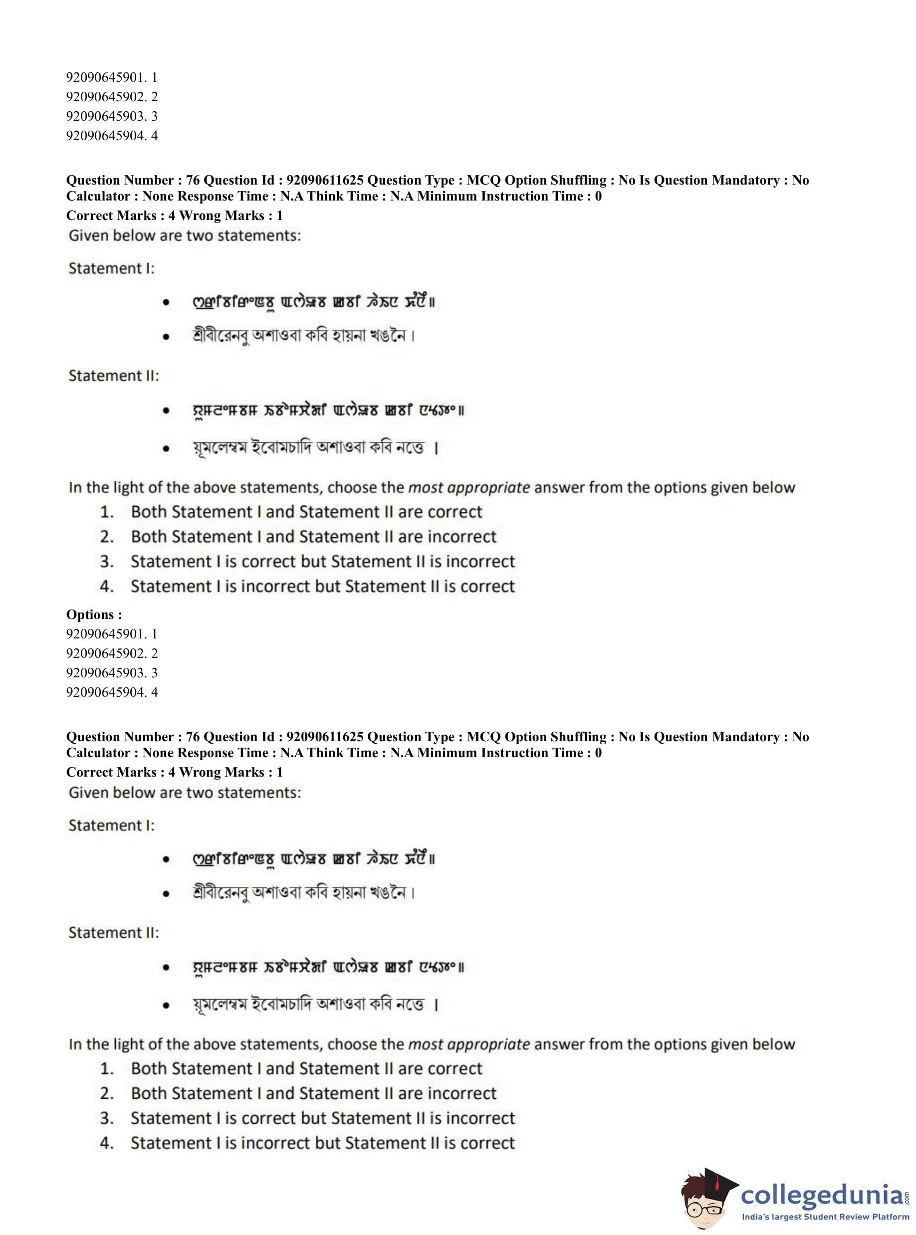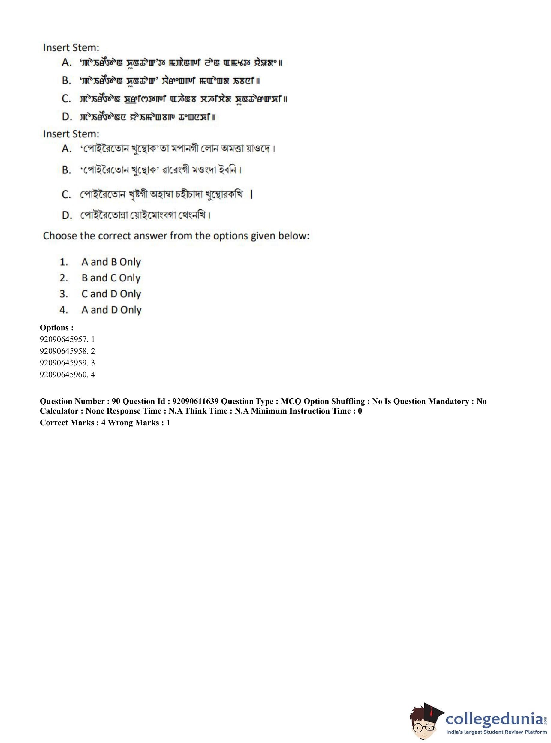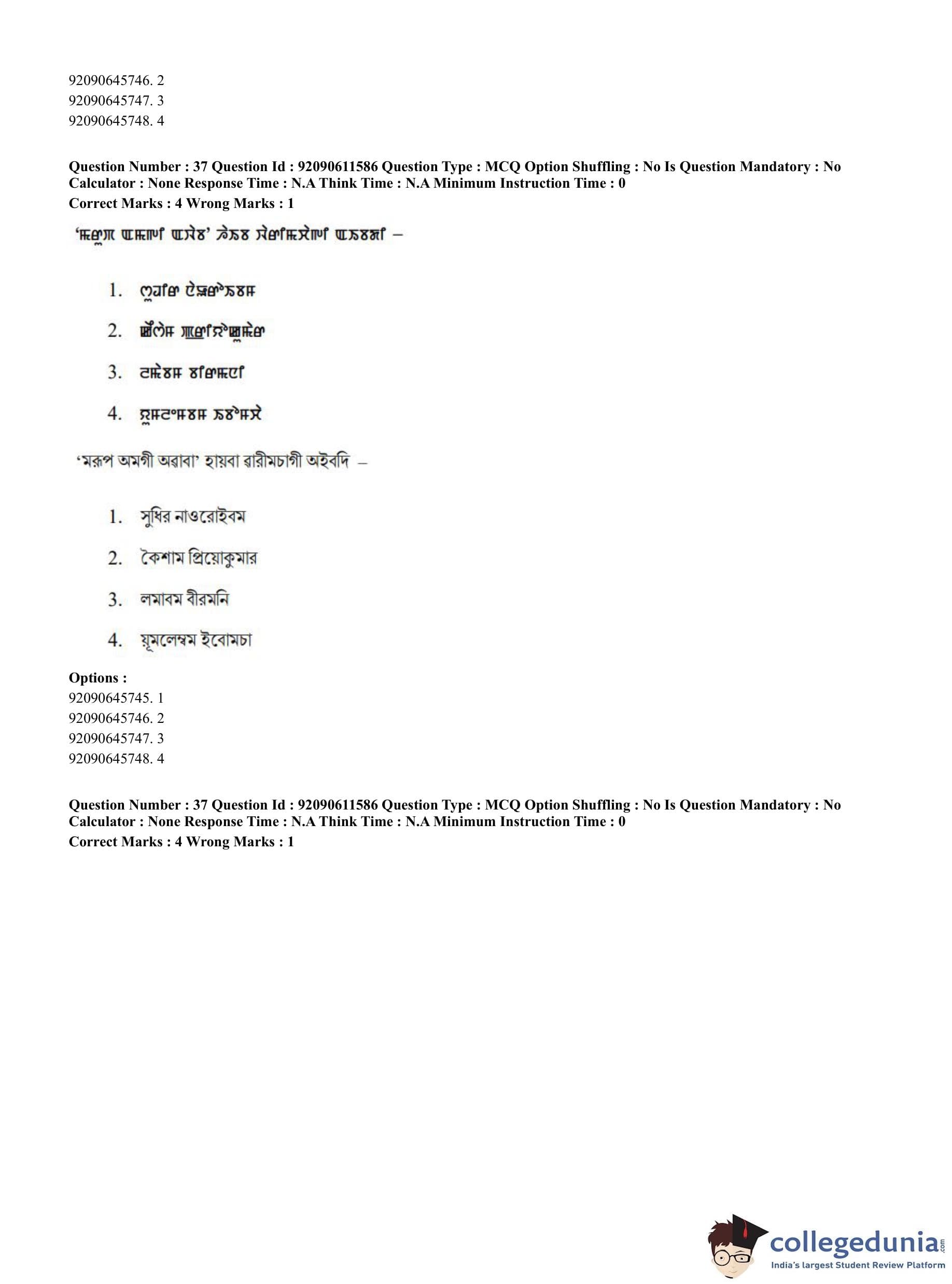 CUET PG 2023 Manipuri Question Paper in English (June 10 - Shift 2)