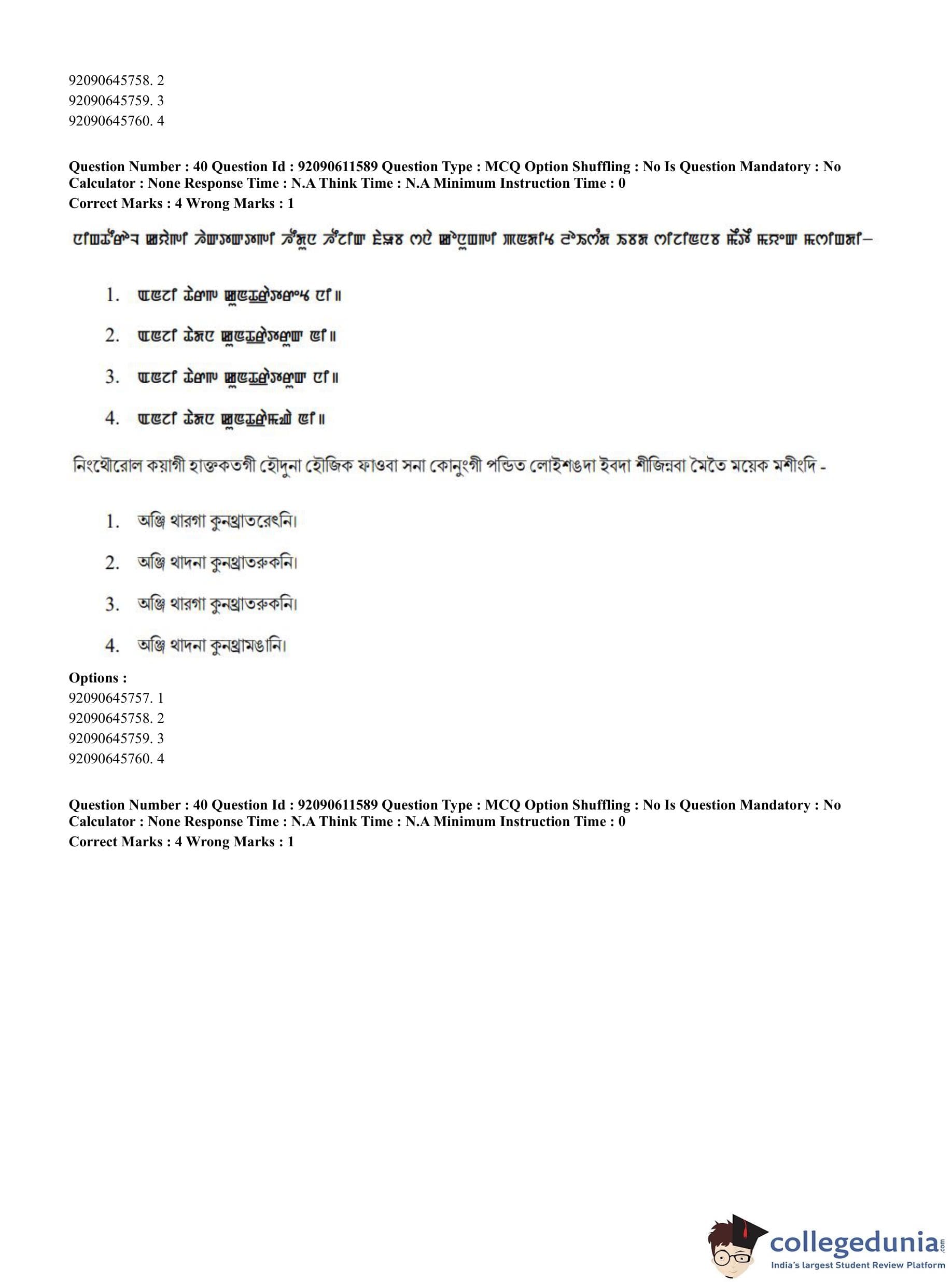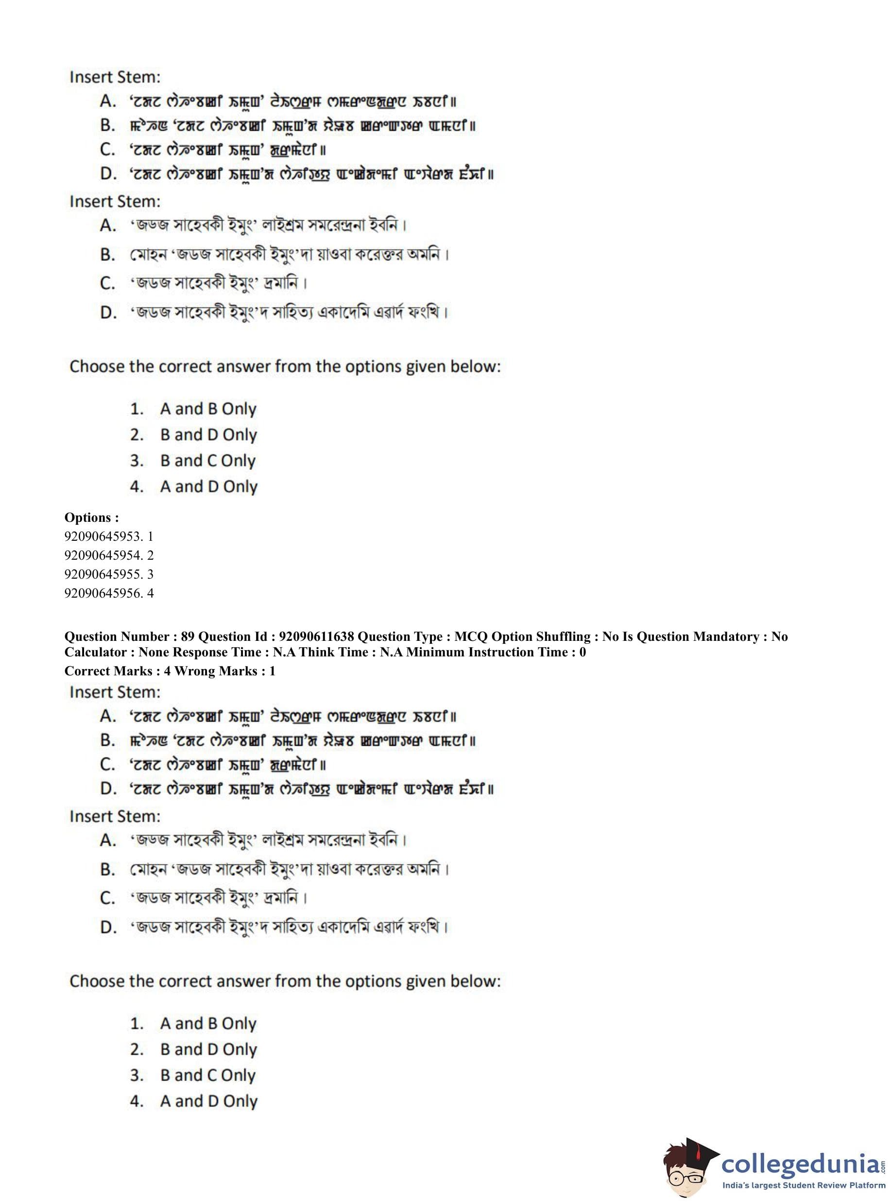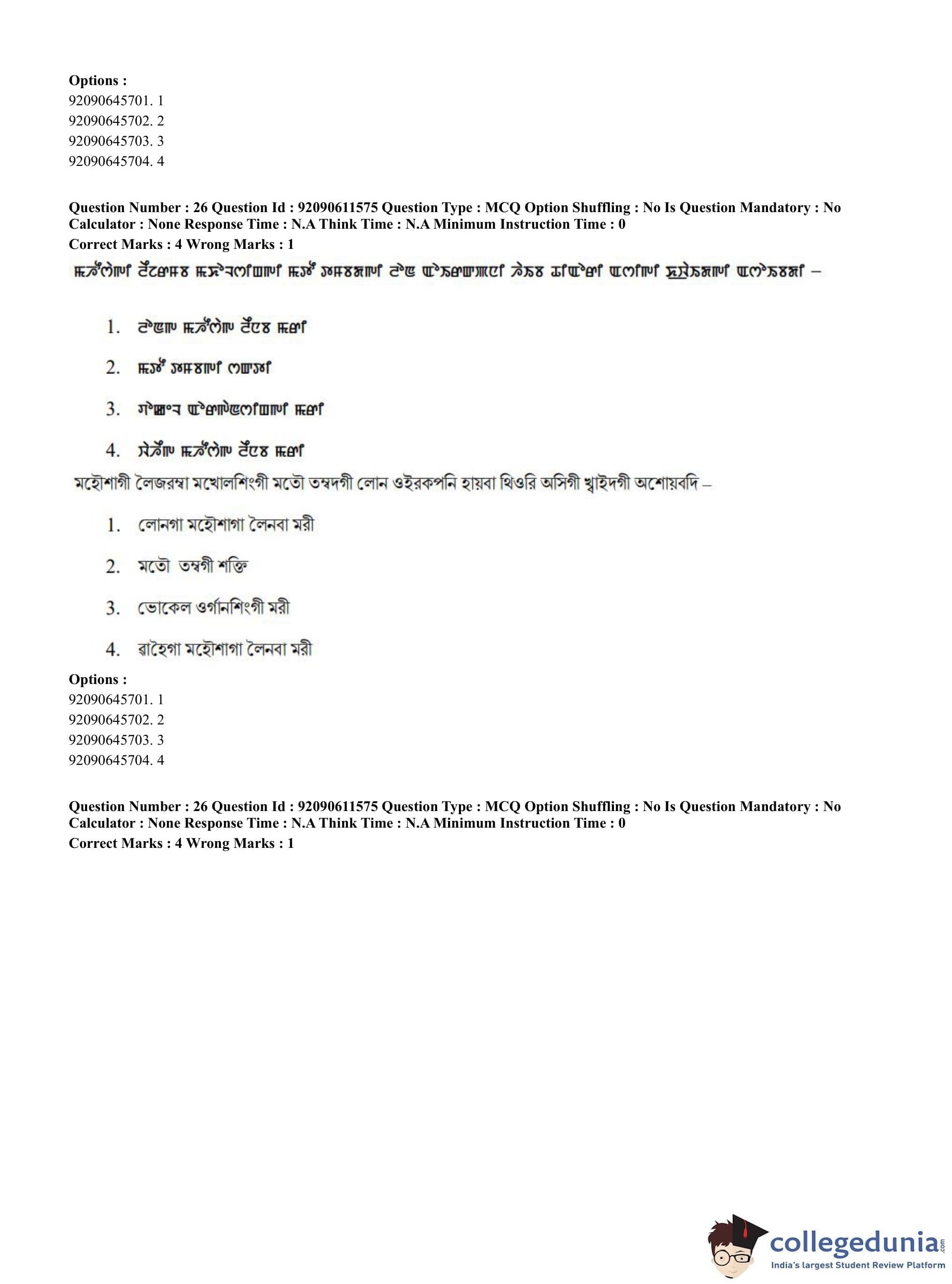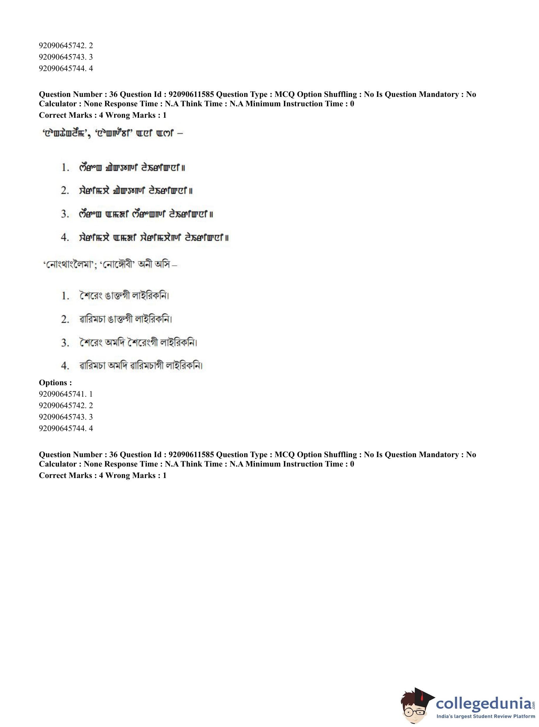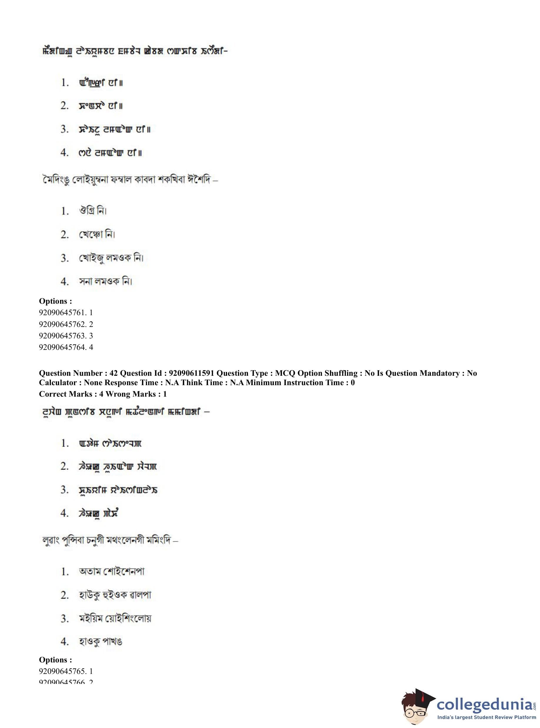 CUET PG 2023 Manipuri Question Paper in English (June 10 - Shift 2)