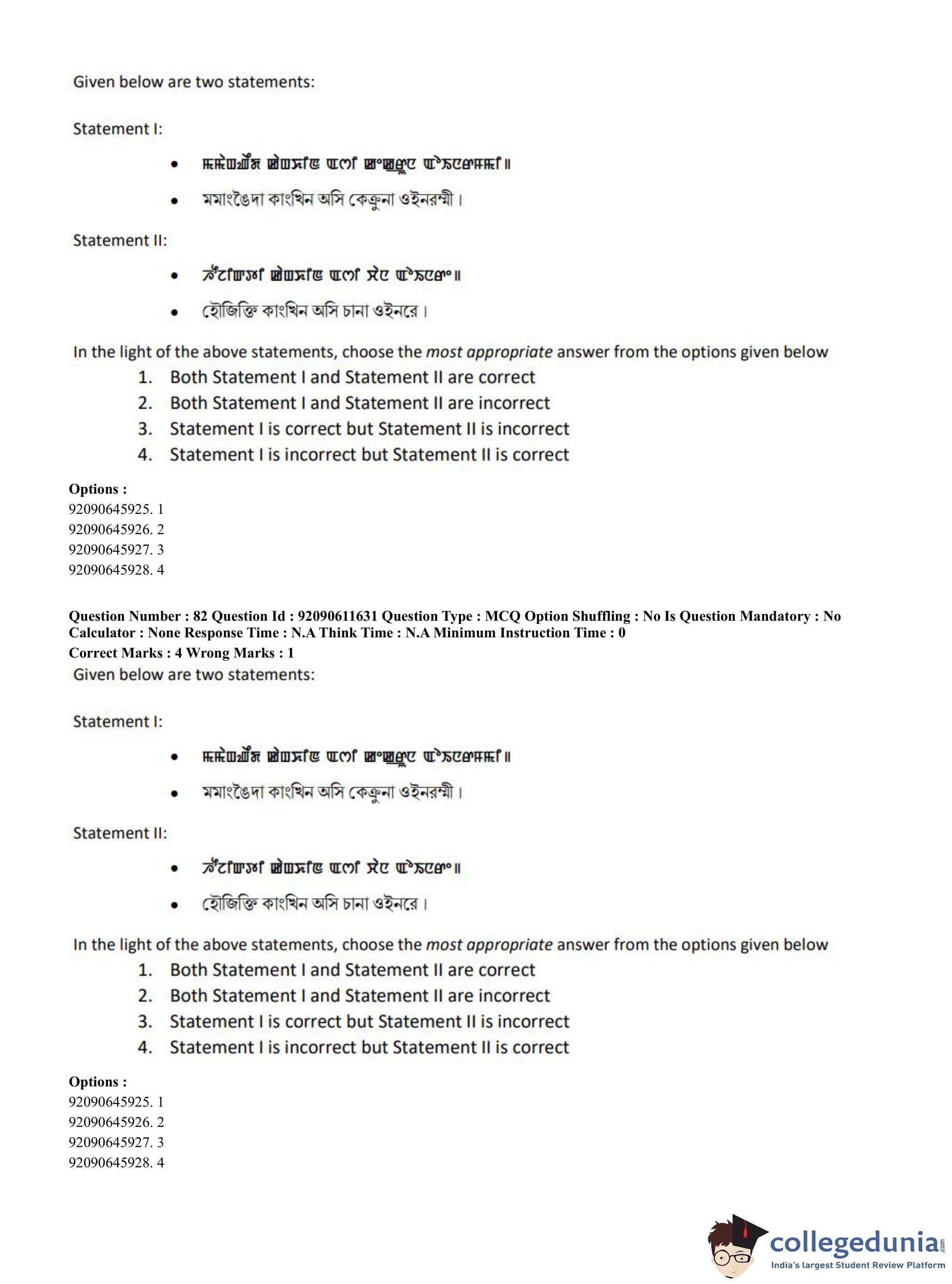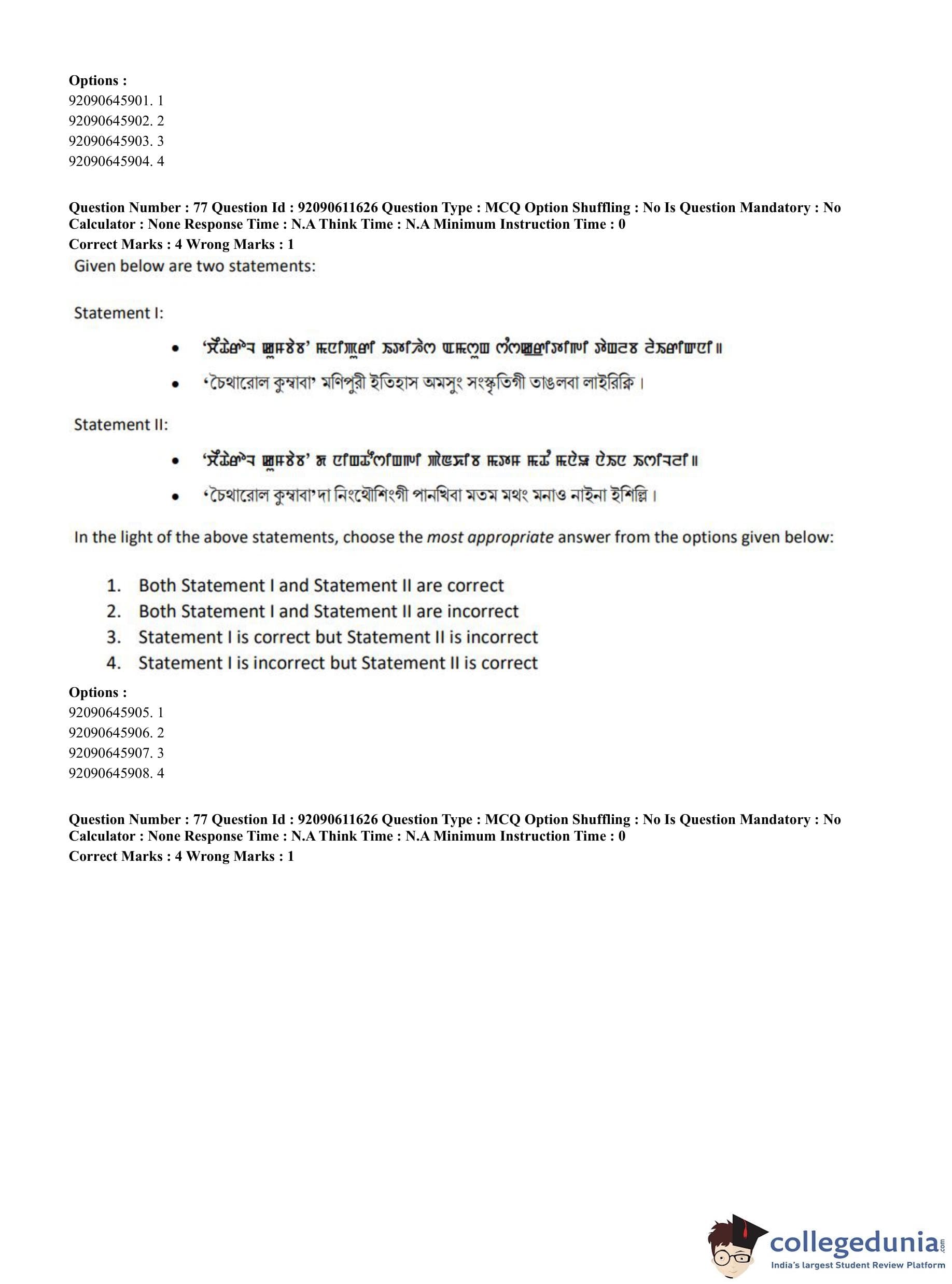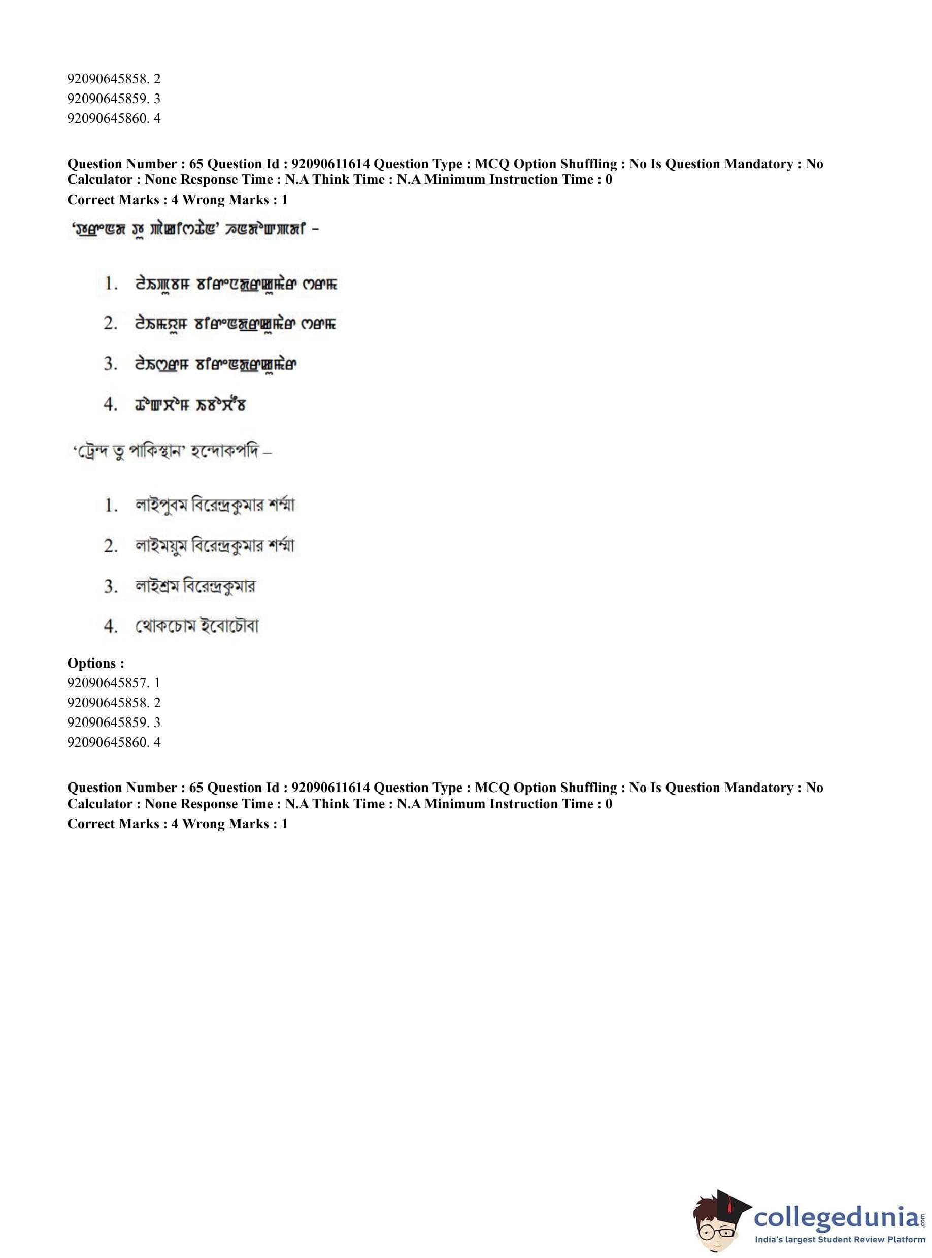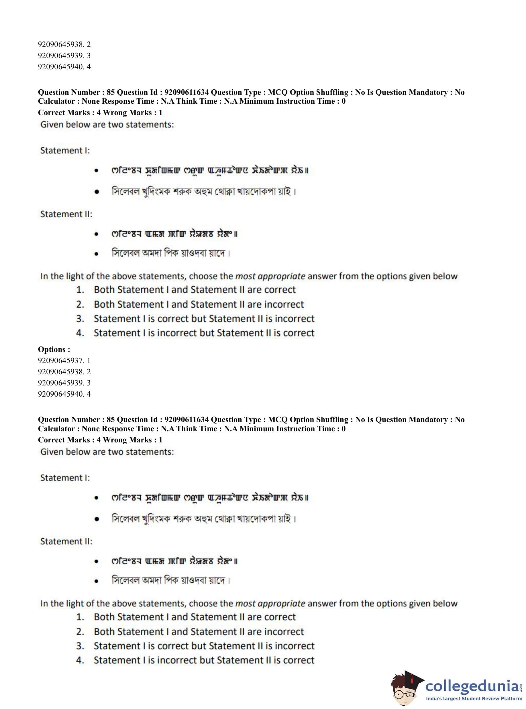 CUET PG 2023 Manipuri Question Paper in English (June 10 - Shift 2)