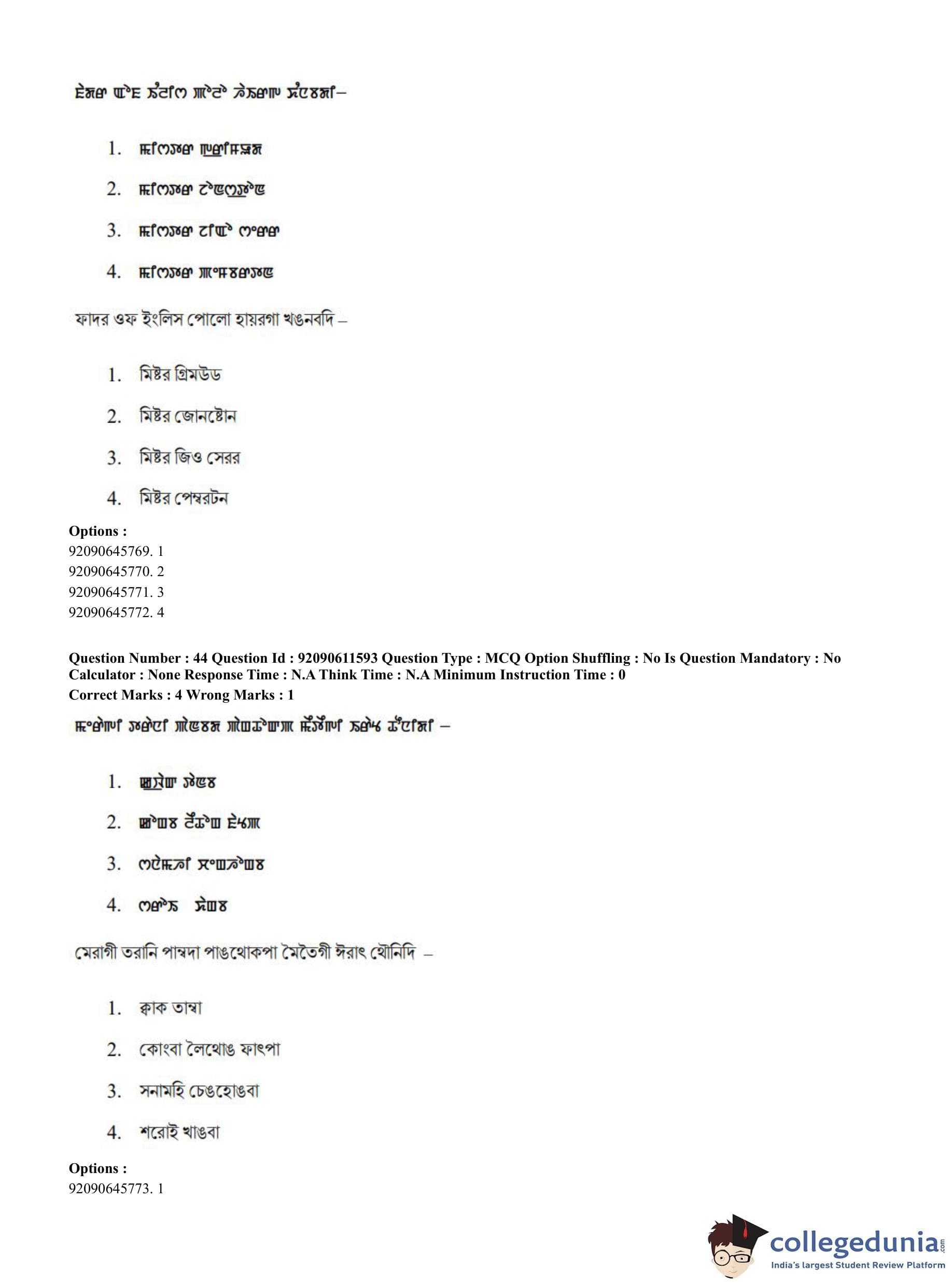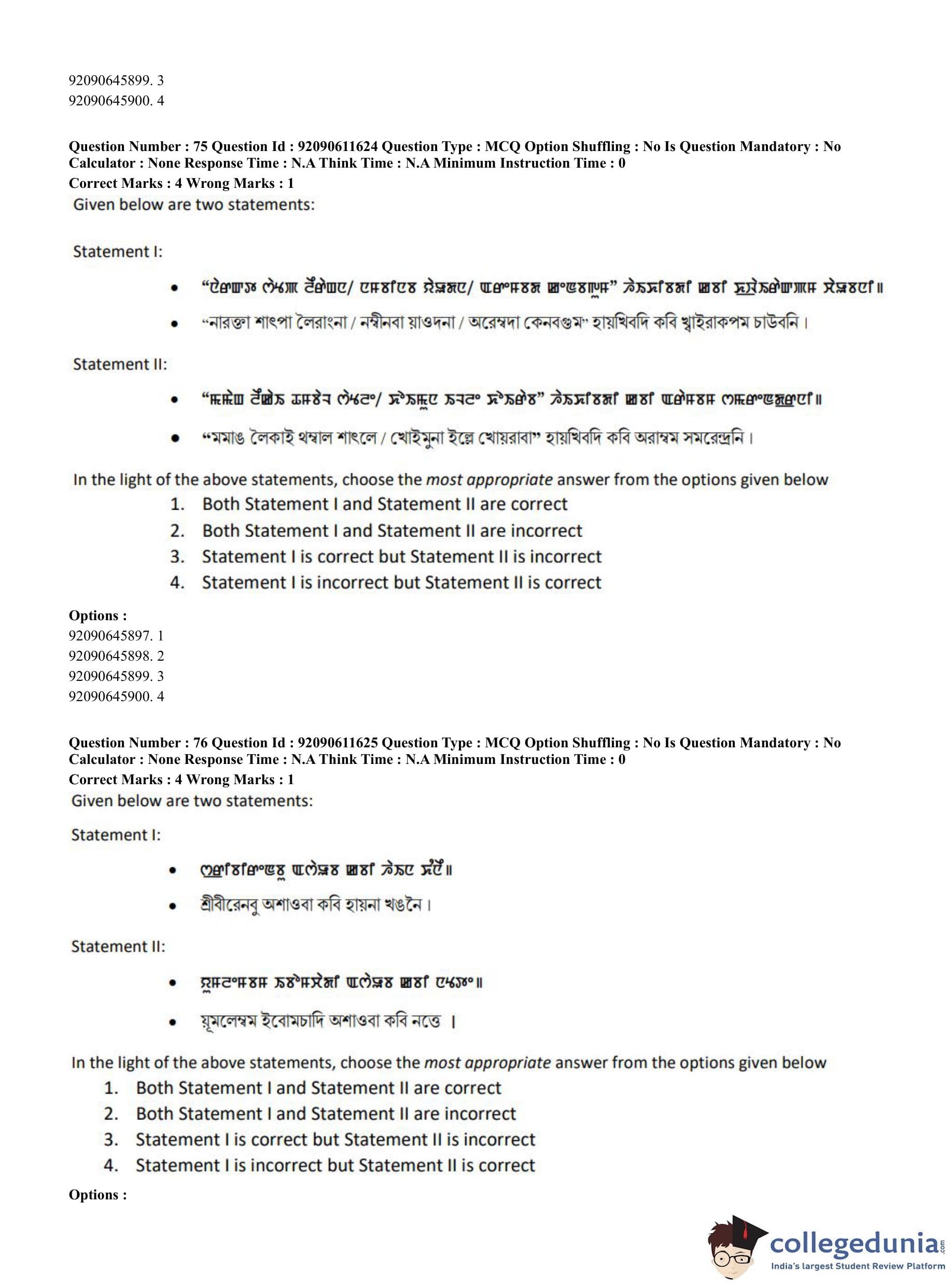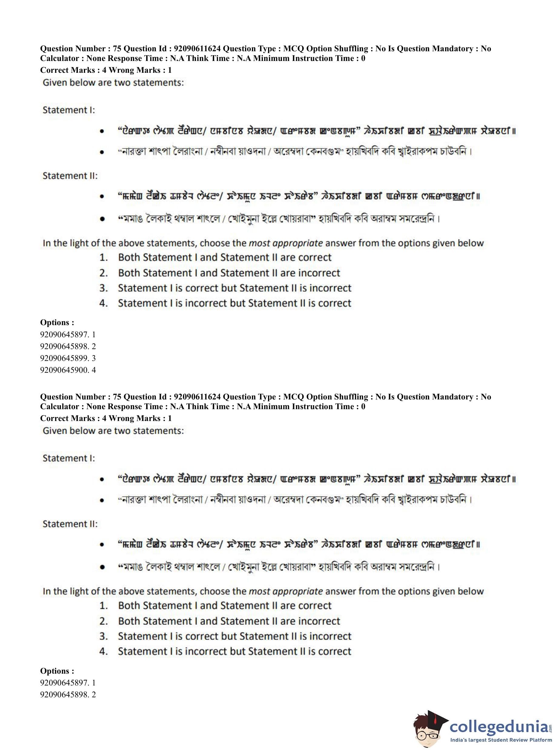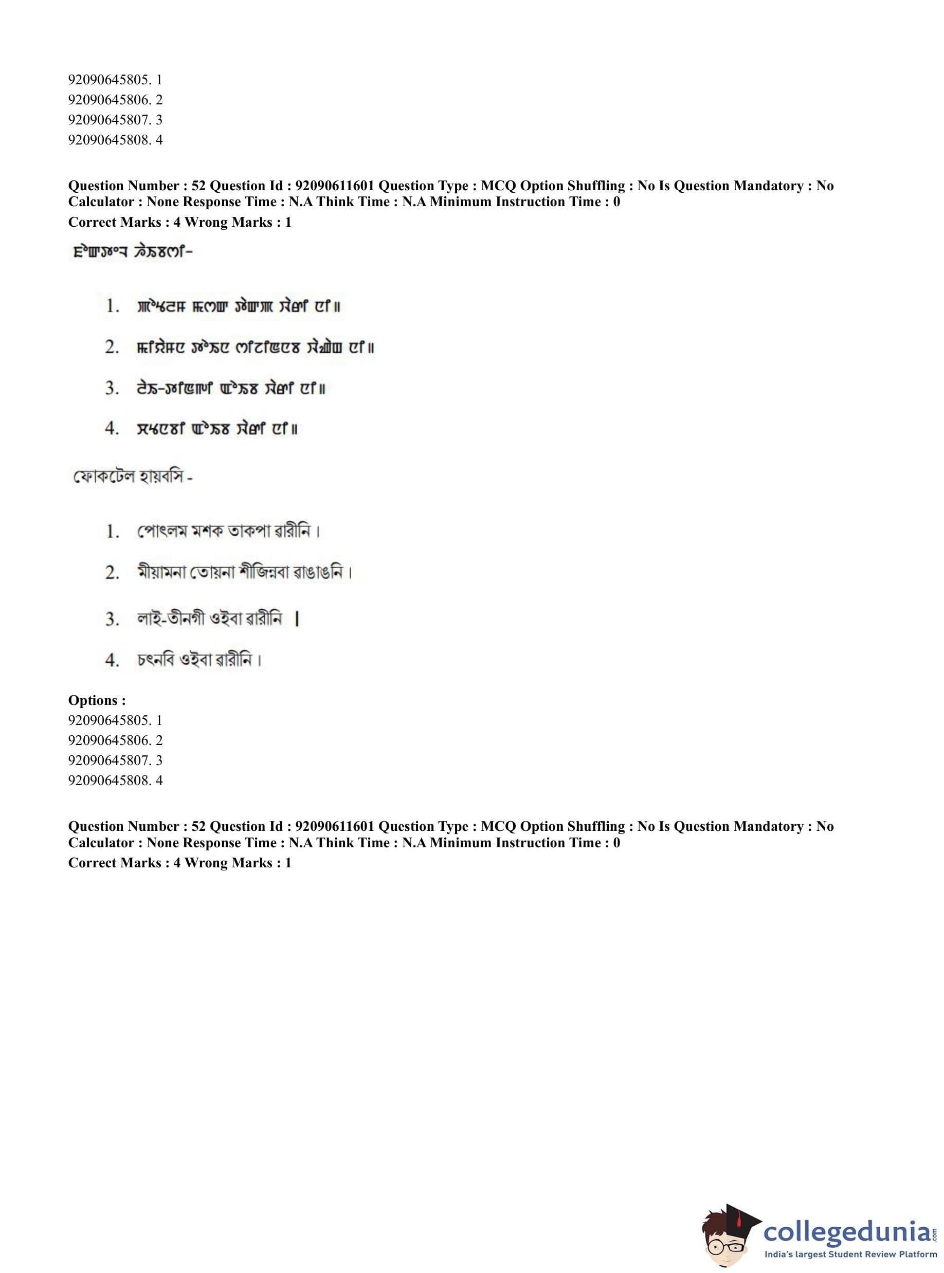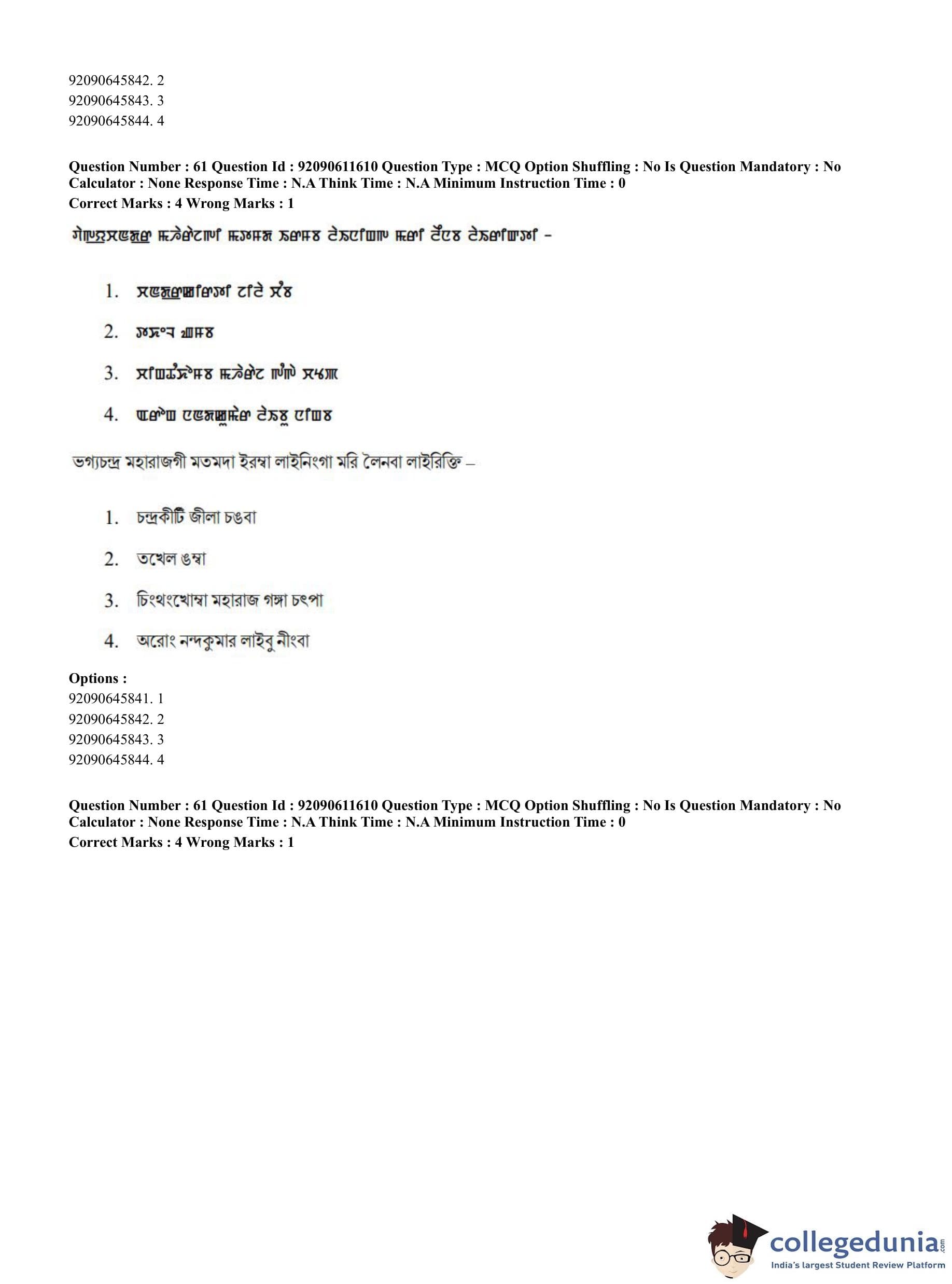 CUET PG 2023 Manipuri Question Paper in English (June 10 - Shift 2)