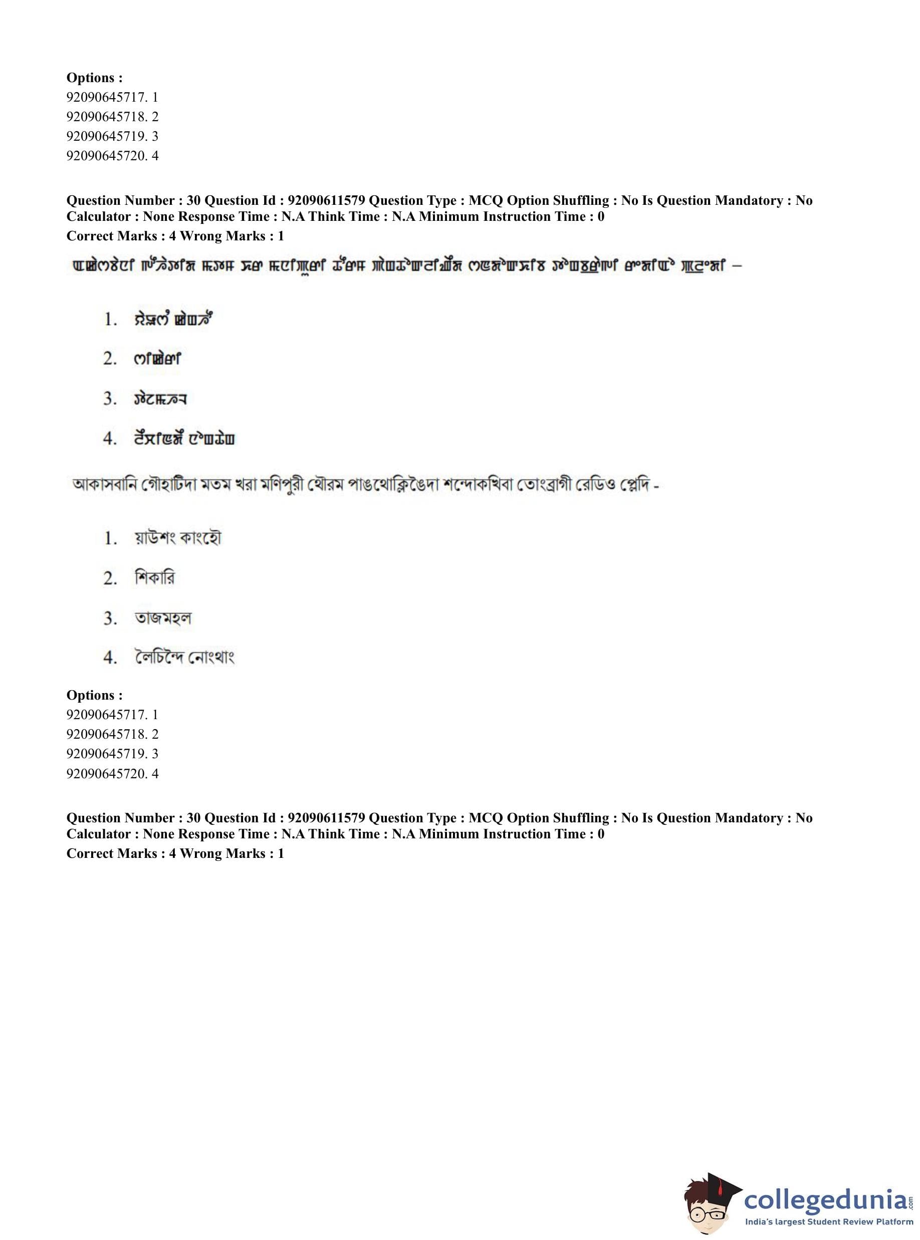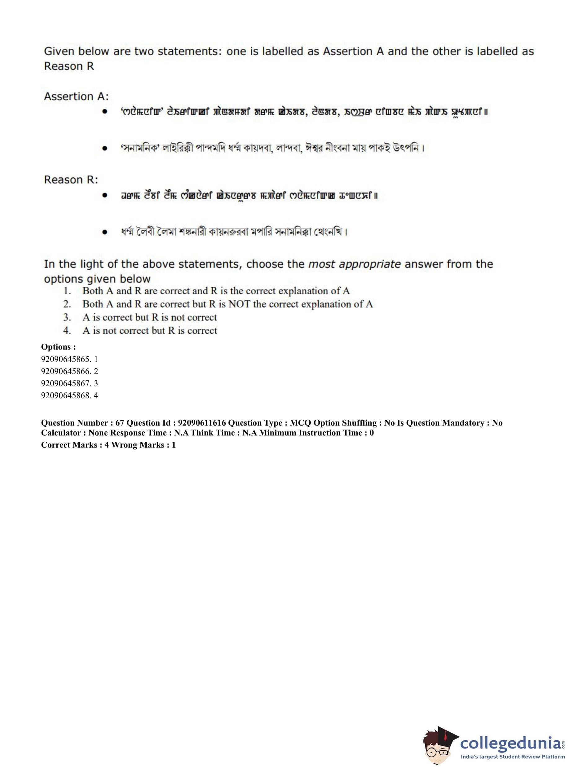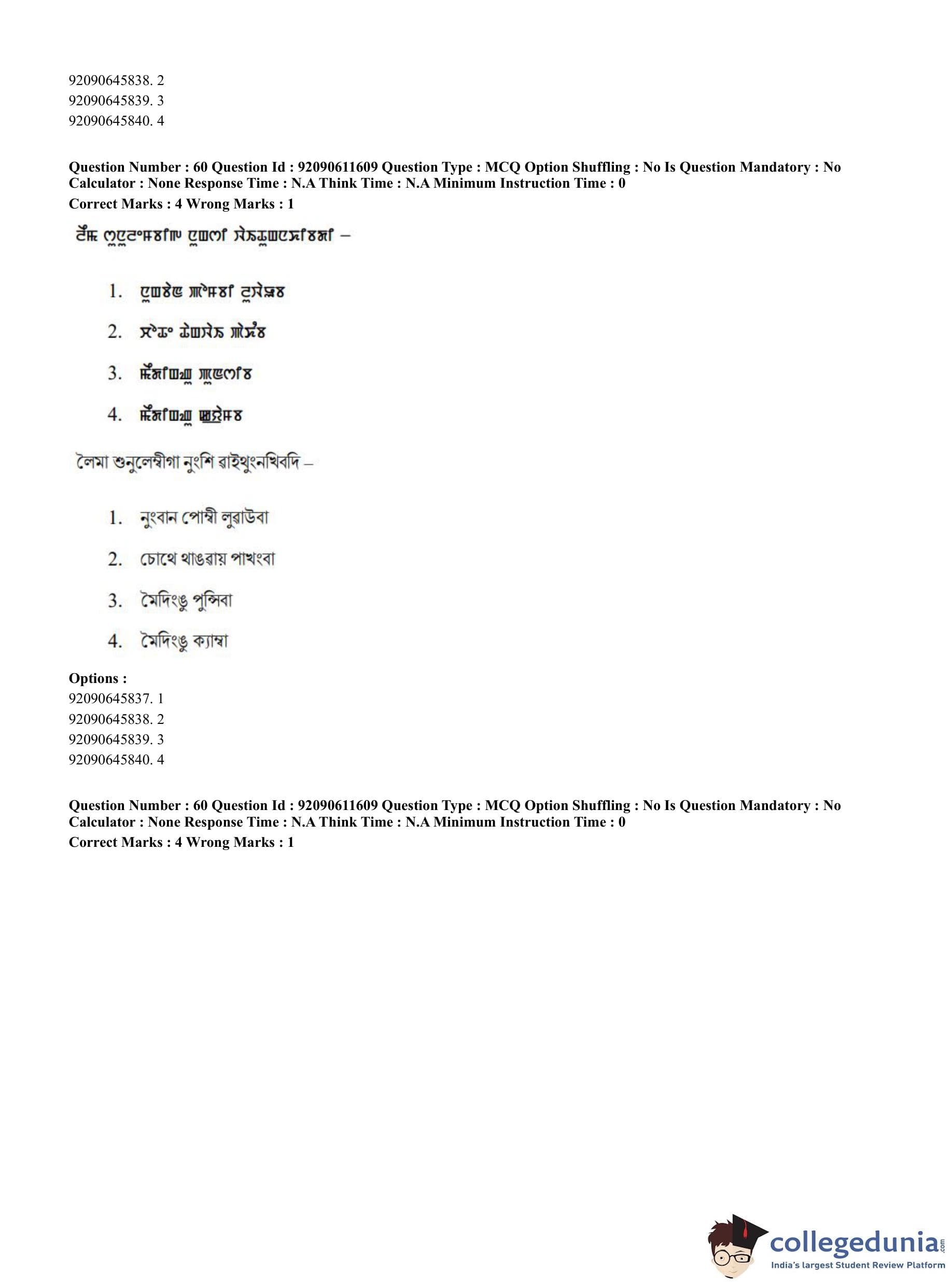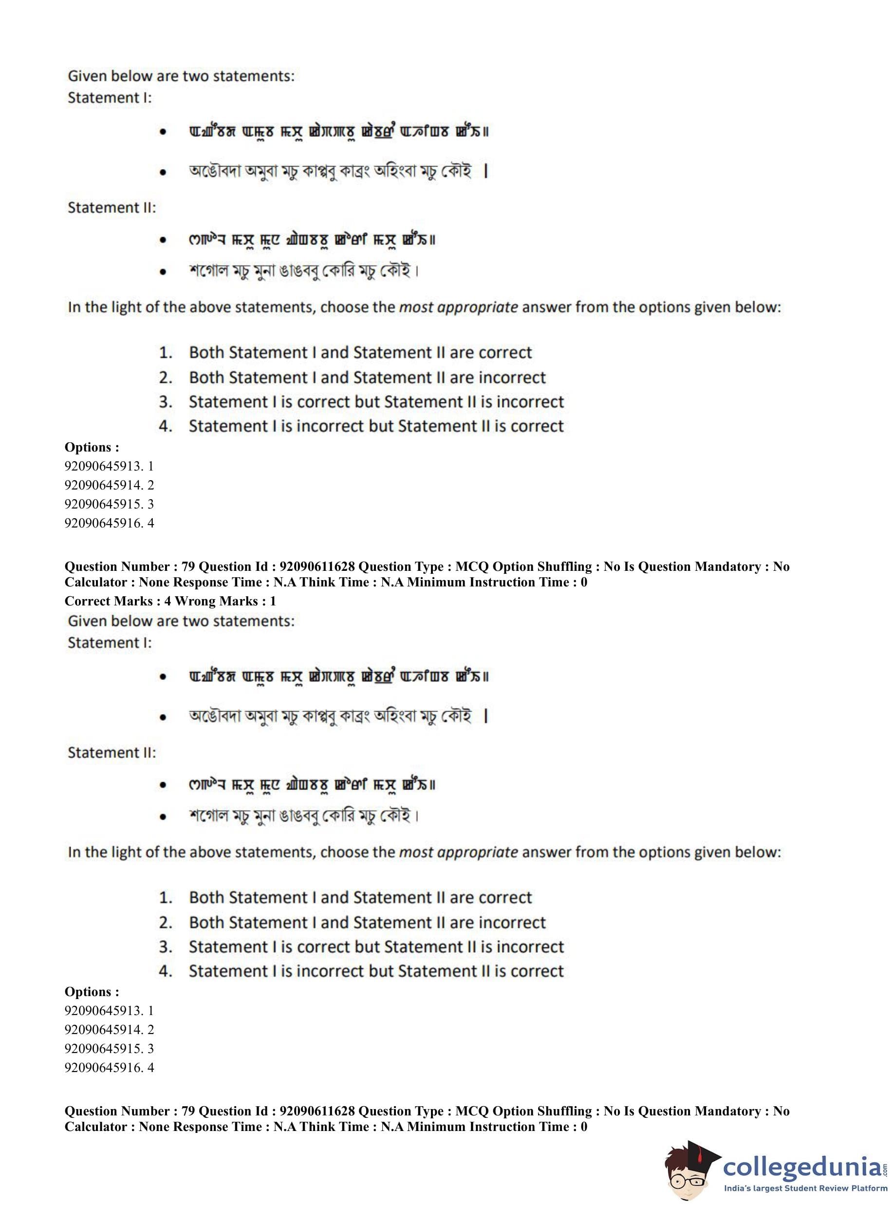 CUET PG 2023 Manipuri Question Paper in English (June 10 - Shift 2)