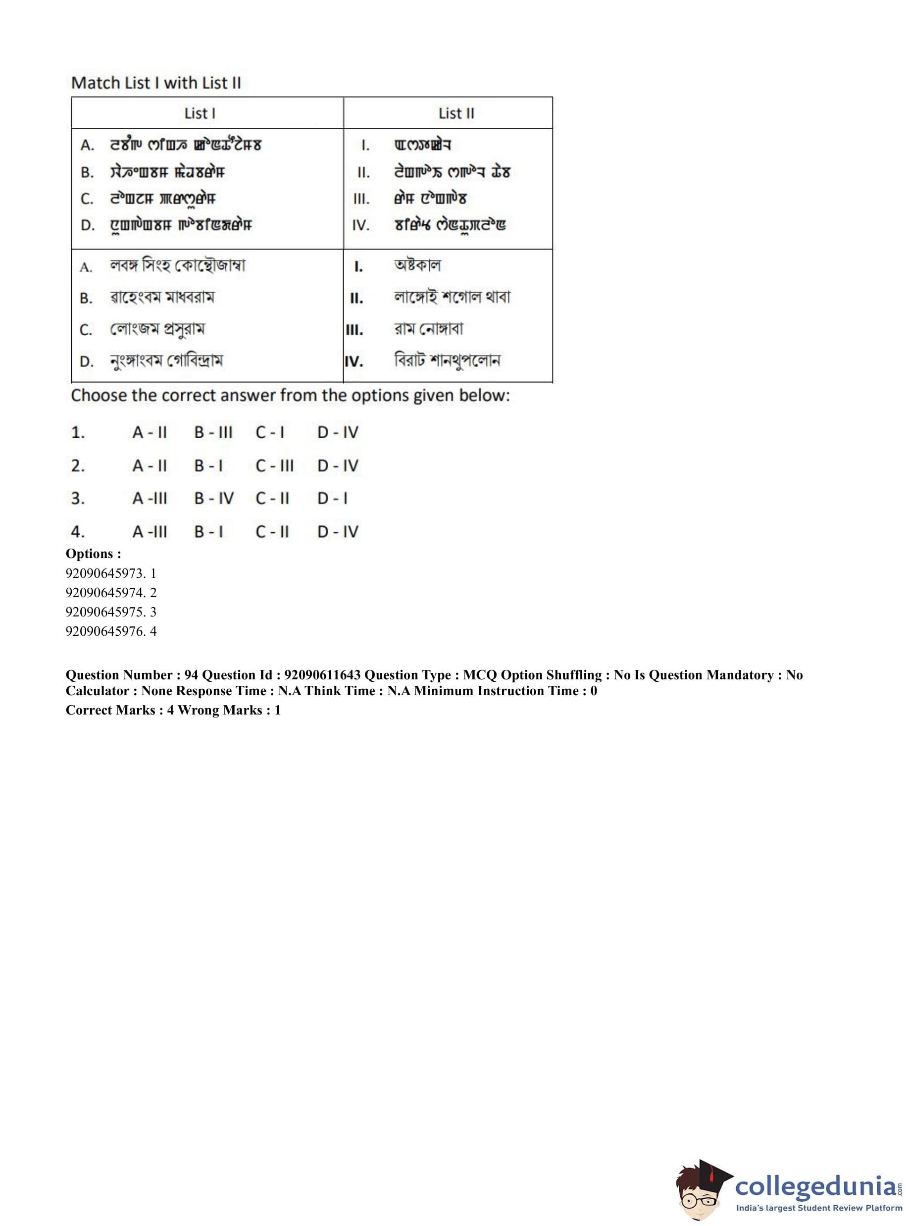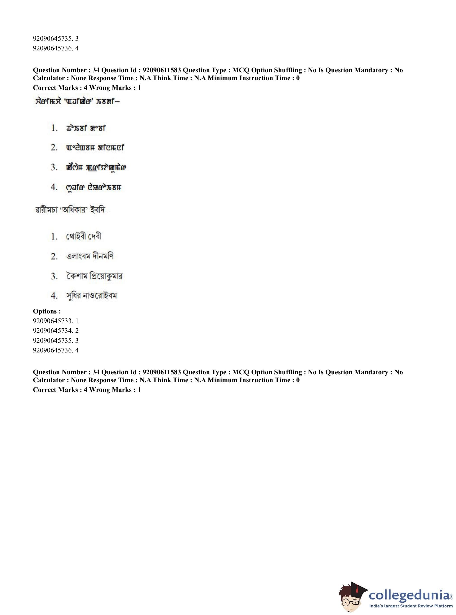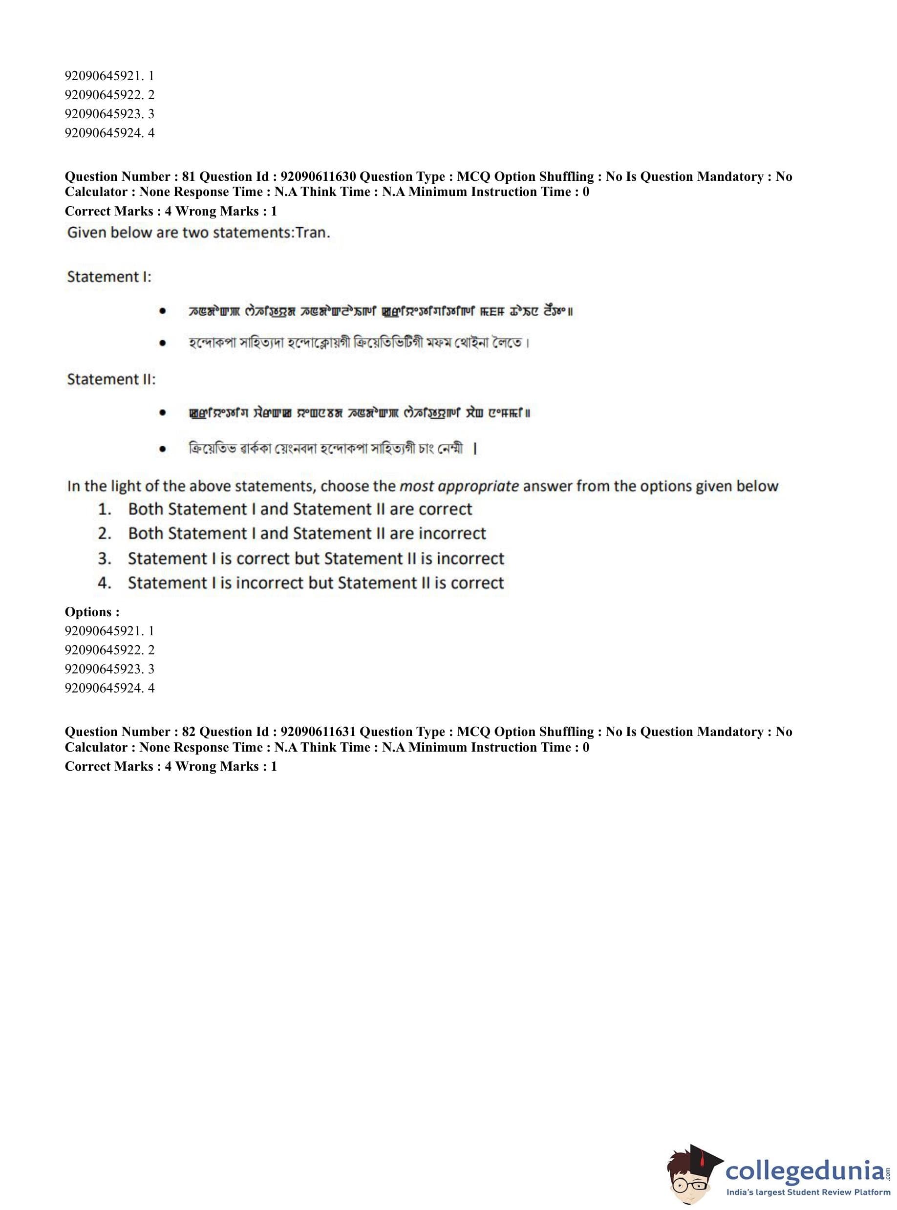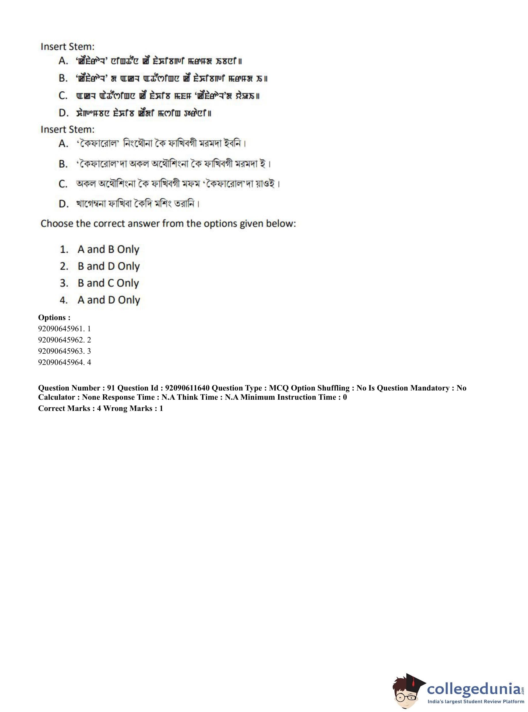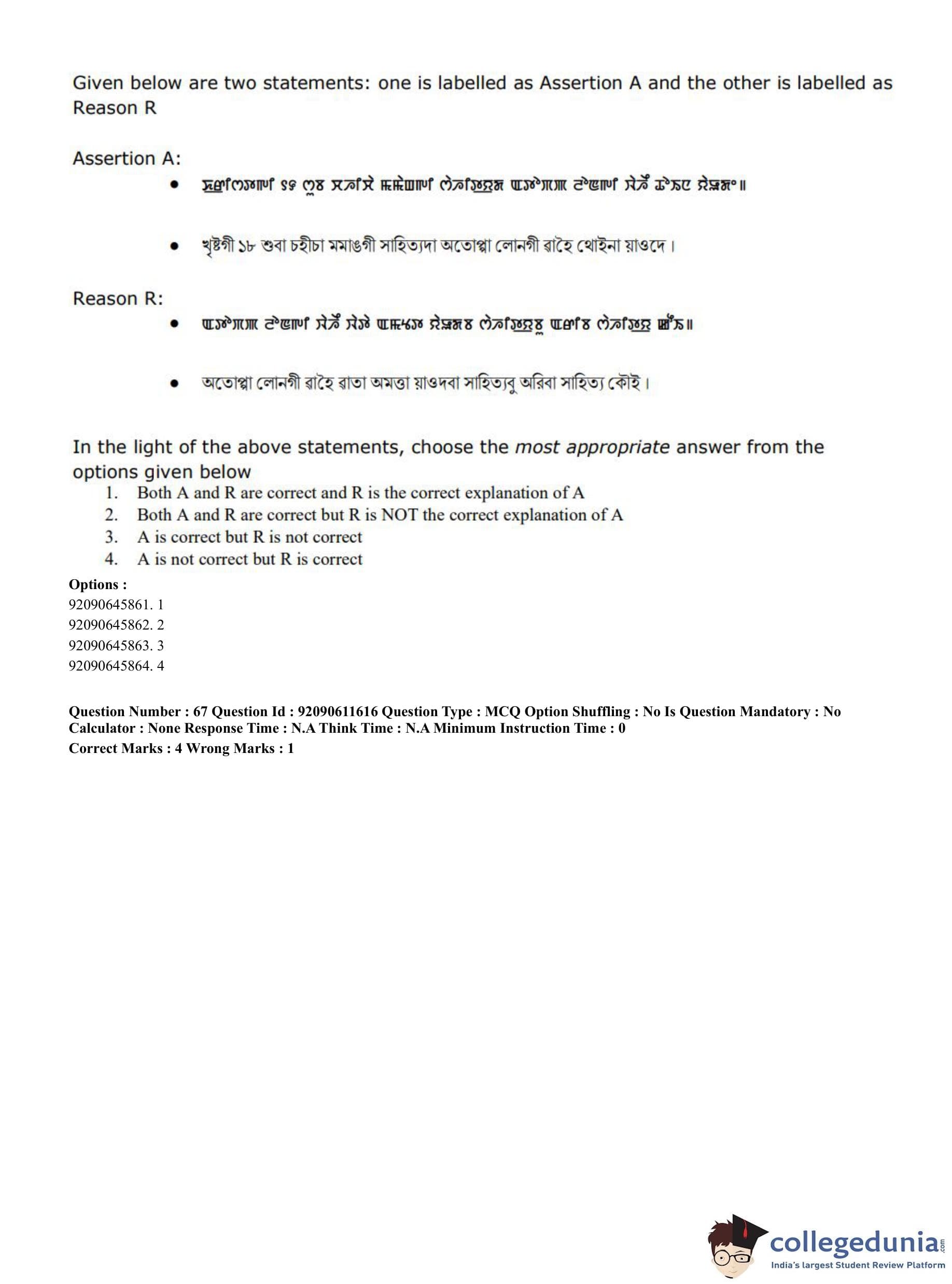 CUET PG 2023 Manipuri Question Paper in English (June 10 - Shift 2)