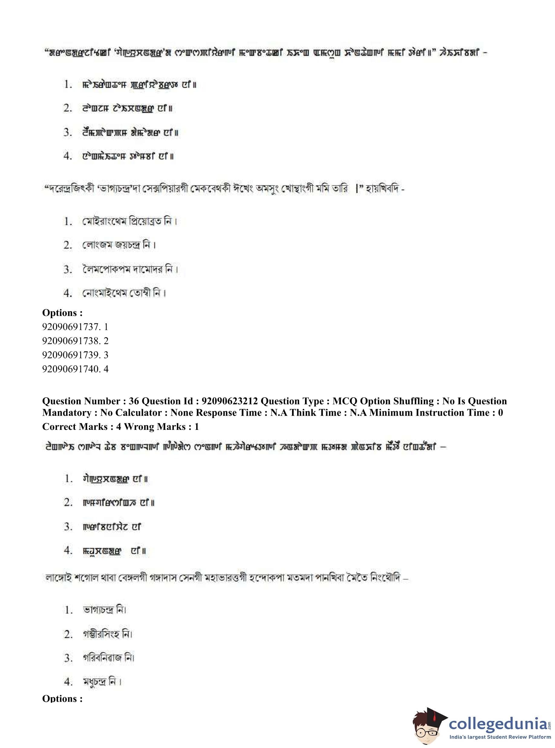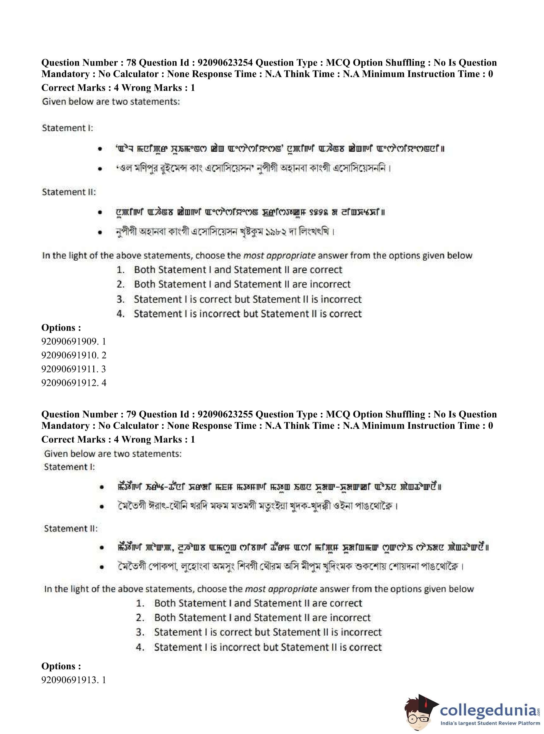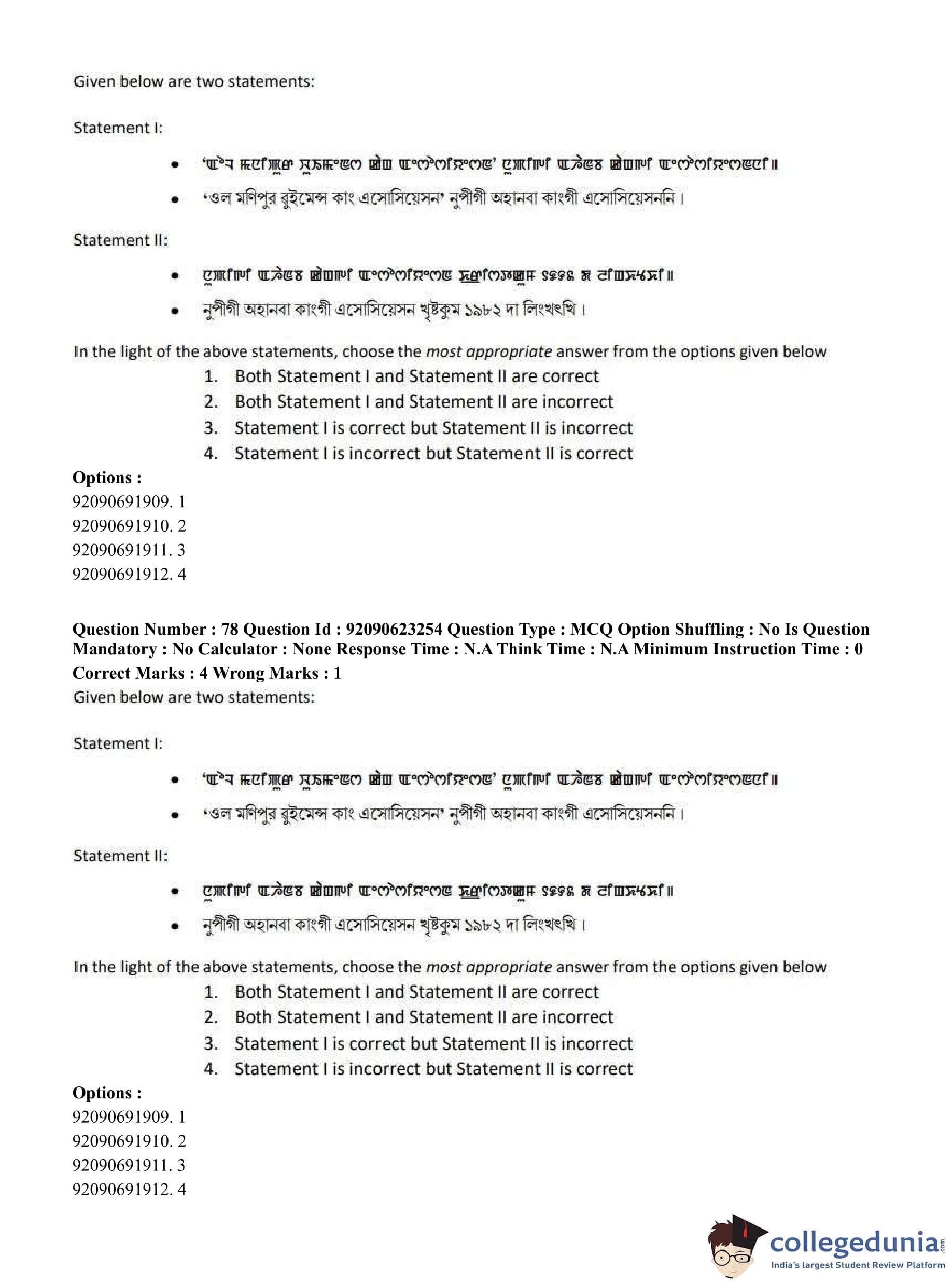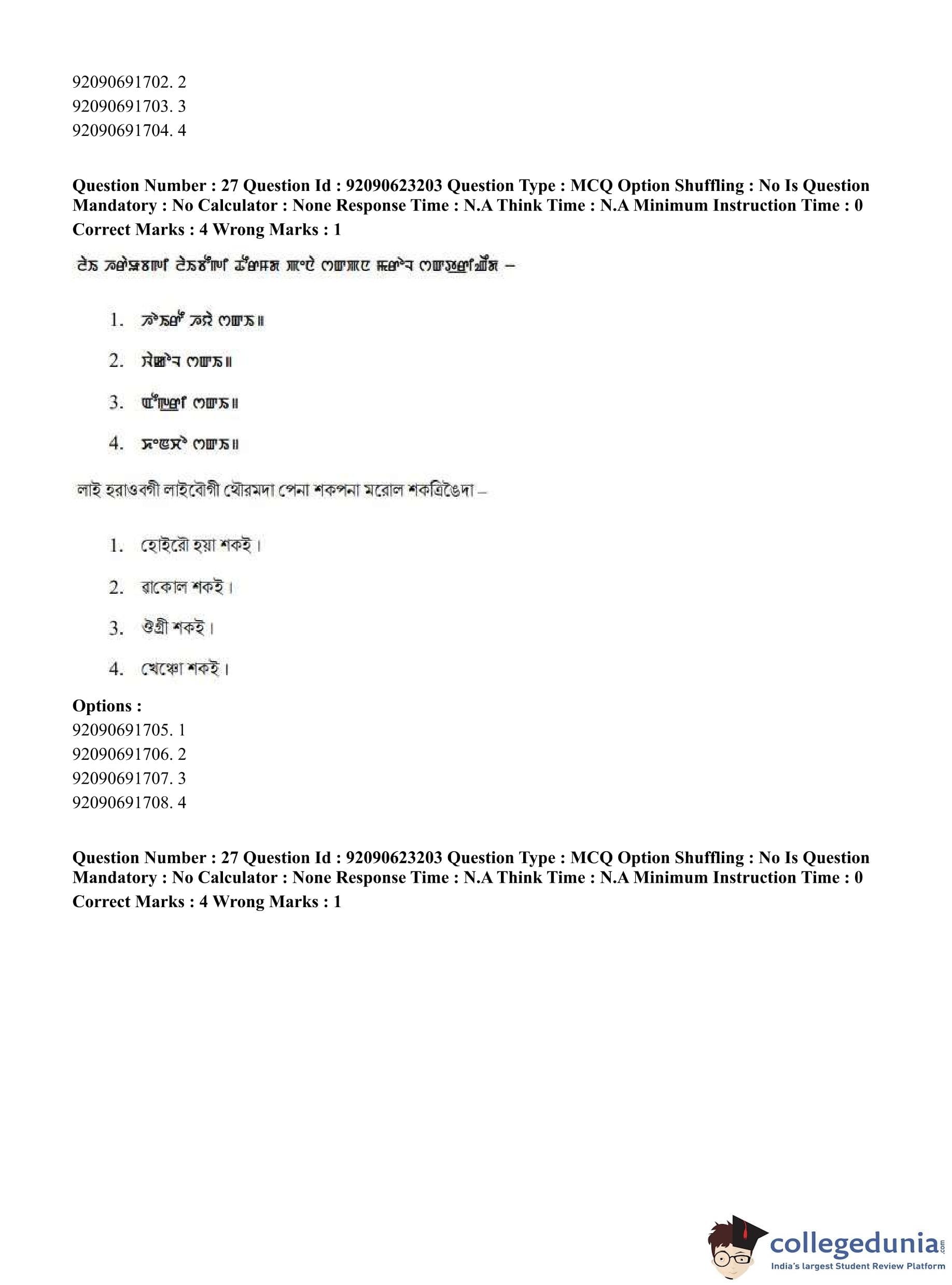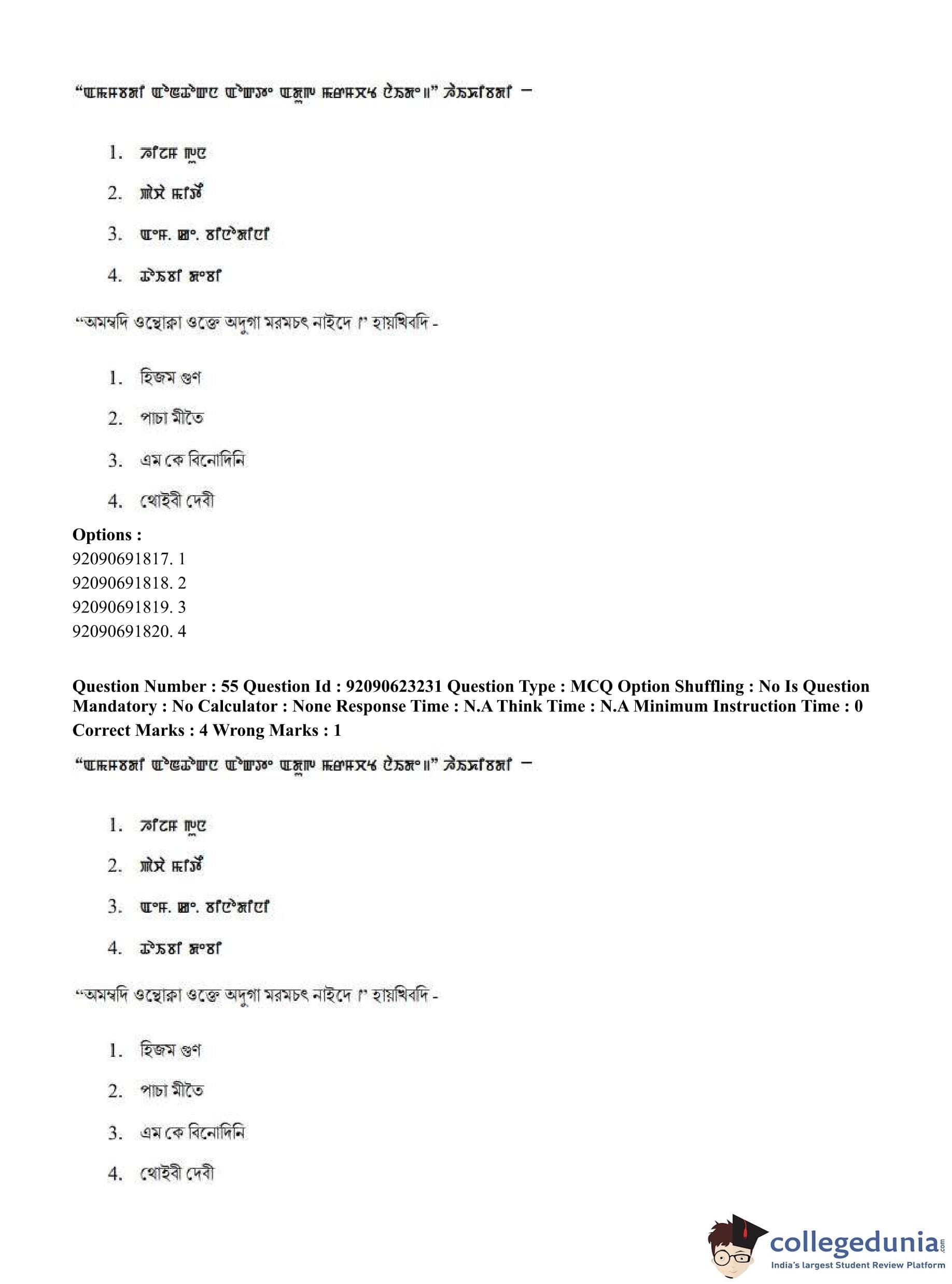 CUET PG 2023 Manipuri Question Paper in English (June 24 - Shift 2)