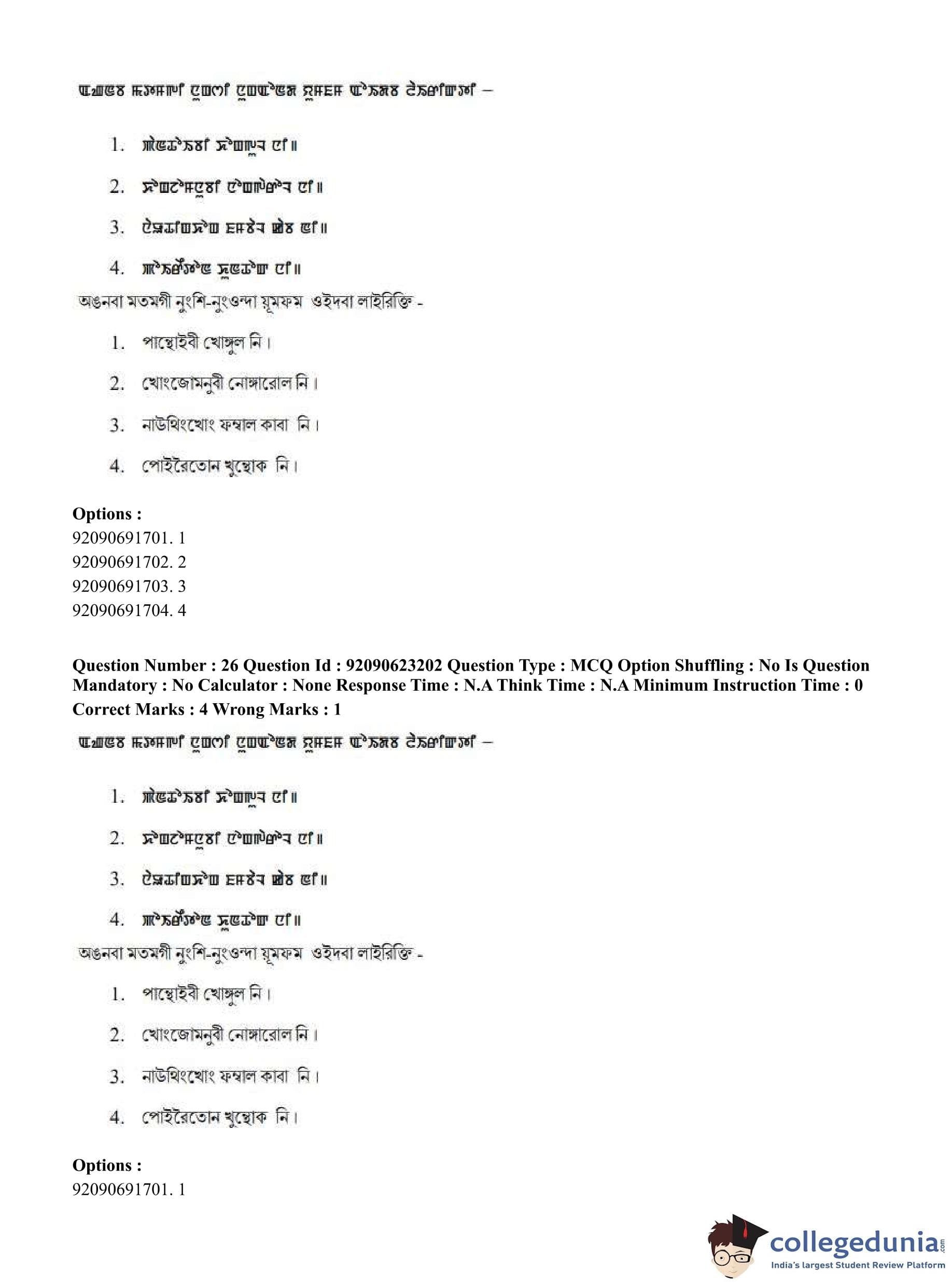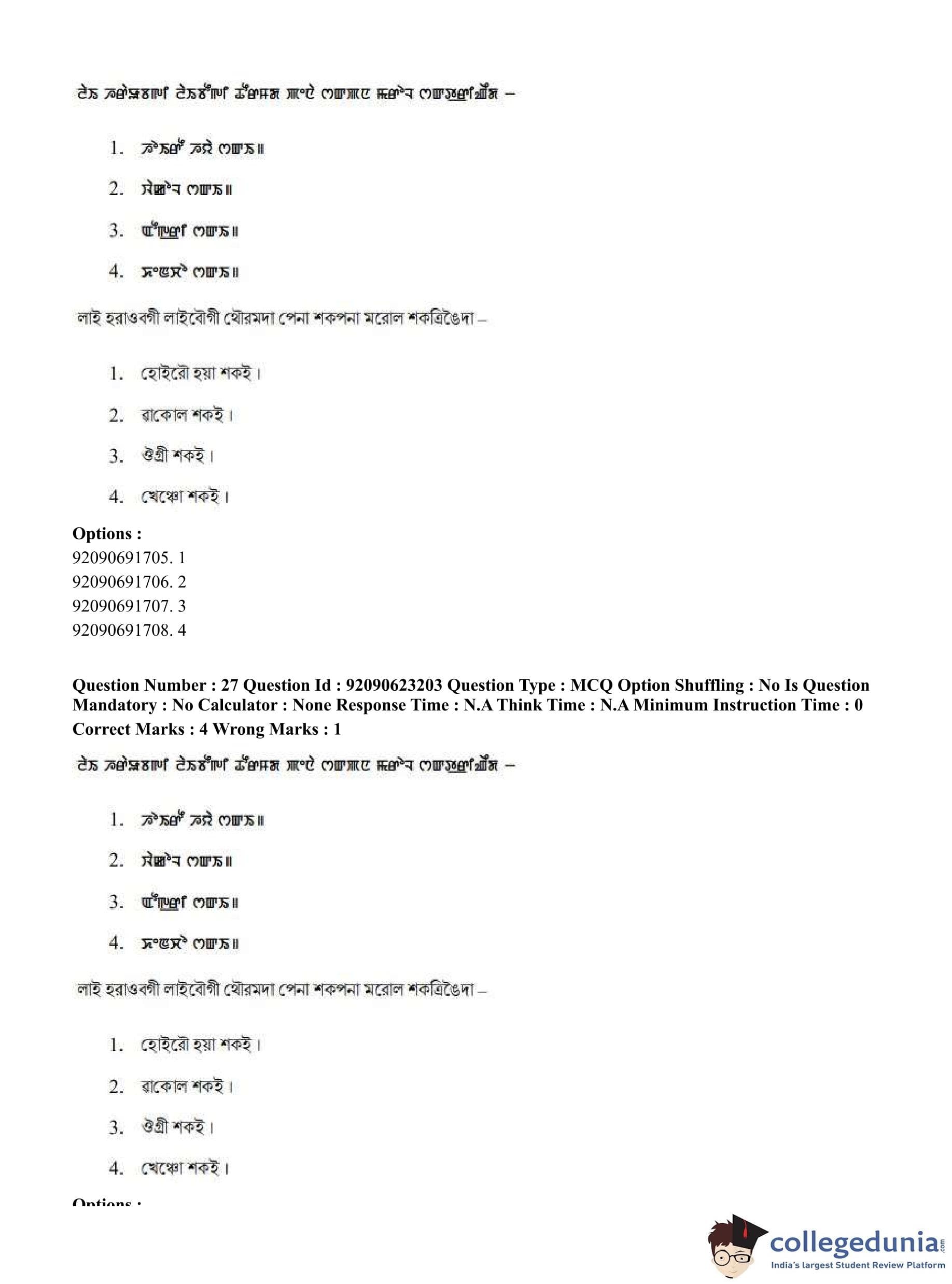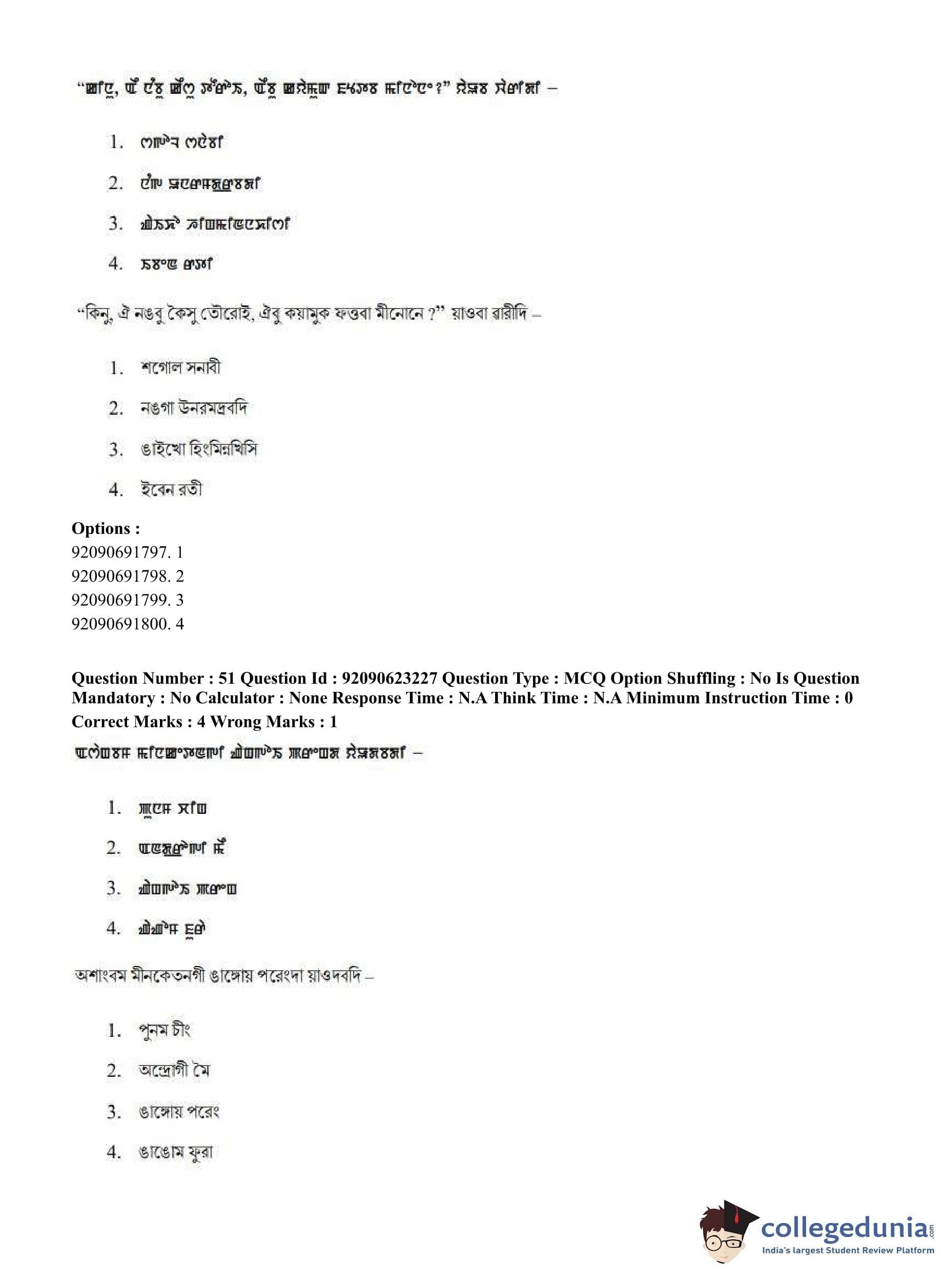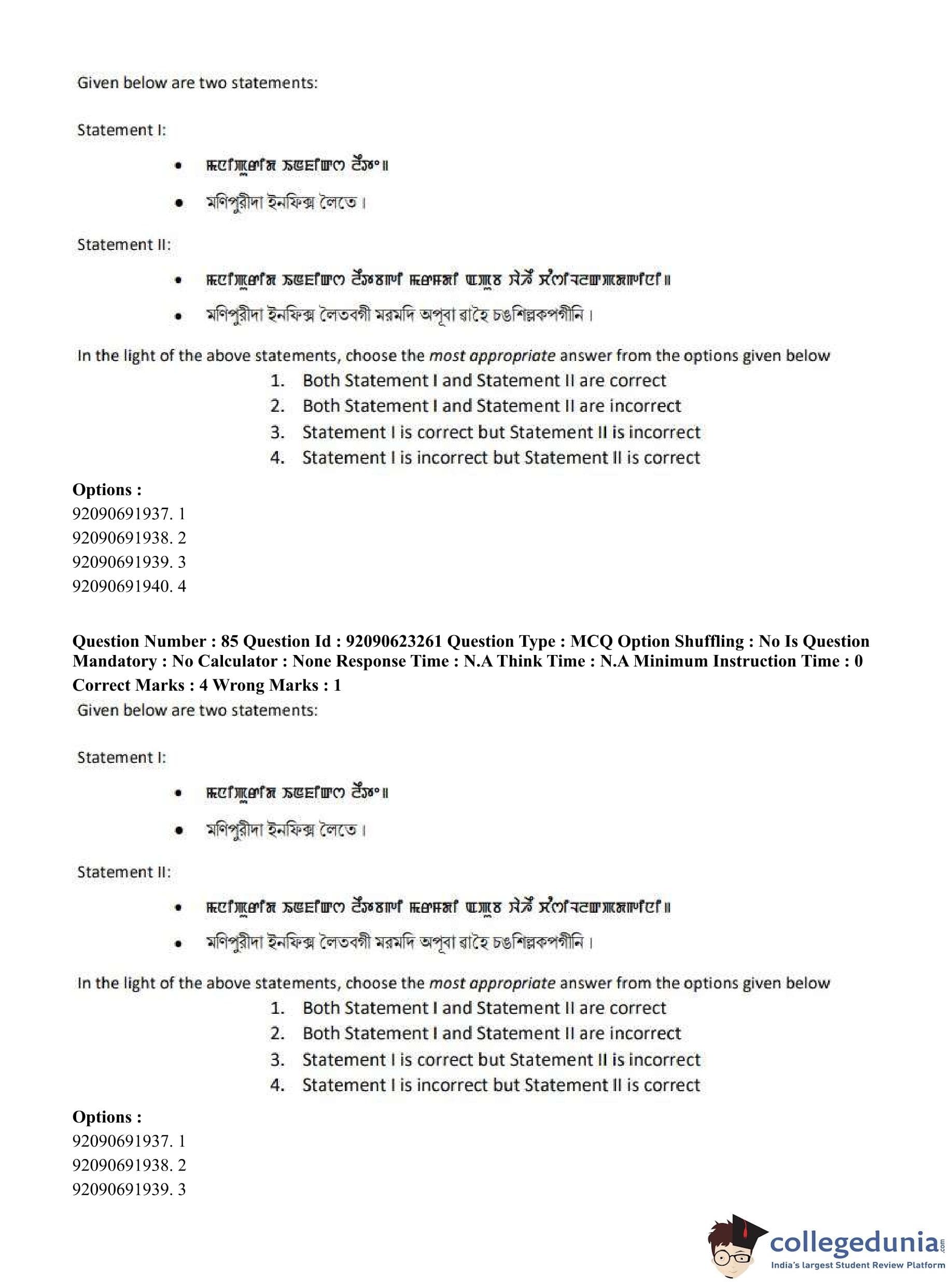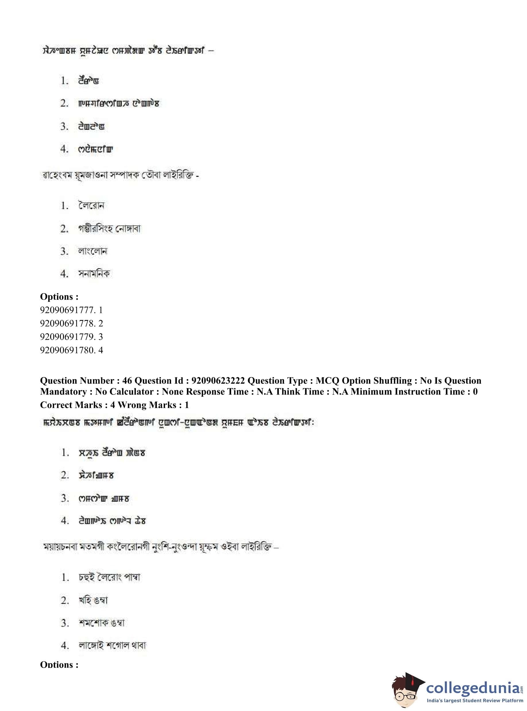 CUET PG 2023 Manipuri Question Paper in English (June 24 - Shift 2)